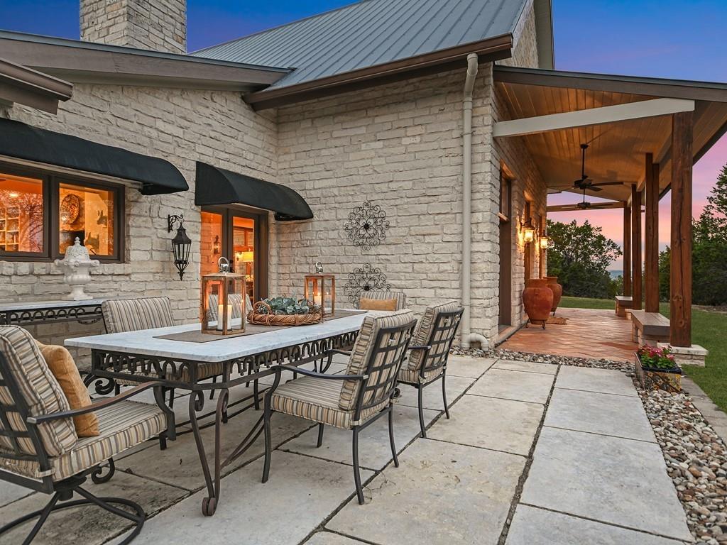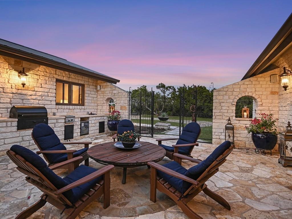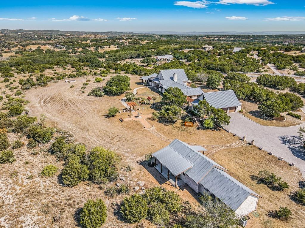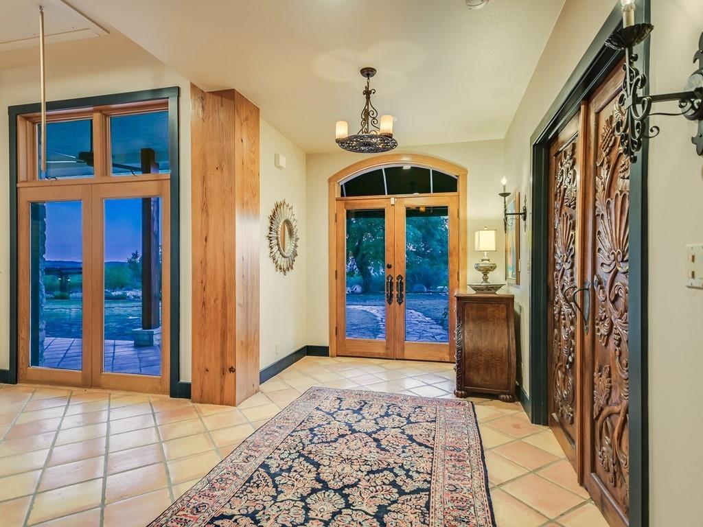 Casa de los Sueños is a refined architectural retreat on 26 acres offering tranquility, privacy, and a peaceful connection to nature. With panoramic views, this property is ideal for those seeking a serene lifestyle on acreage close to Austin. The beautiful stone sculpture "El Sueño" sets the tone for the peaceful atmosphere. Located in the Lake Travis School District, the property is privately gated, fenced, and has a wildlife exemption.  The main house was designed by renowned architectural designer Roger Rasbach, who was acclaimed for his timeless & environmentally friendly contemporary designs. It is a single-story 3 bedroom/3 bath residence with Spanish/European flair: Saltillo tile floors, hand-carved doors from Mexico, & antique long-leaf pine posts. The heart of the home is the spectacular living room with soaring beamed ceilings. A sitting room, study, & master suite flank the main living area. The French-inspired kitchen boasts a commercial Thermador cooktop & an antique marble island. 2 secondary bedrooms in the main house are accessed via the veranda.  The 2nd residence is a spacious 1 bedroom ranch-style home with a living room, kitchen, dining room, laundry, & private patio offering amazing hill country views. Endless possibilities: multi-generational living, a fabulous guest home, studio, etc.  With its beamed & vaulted ceilings, the oversized 3-car garage could also serve as a fantastic party barn. It includes a workshop, storage area, and the well/rainwater equipment room.  Multiple outdoor living spaces invite relaxation. Embrace the beauty and views of this expansive property from one of many covered patios, the courtyard, the fire-pit area, or while hiking.  Water is sourced from both a well and a 20,000-gallon rainwater collection system. Horses & livestock are welcome on the property, making it an ideal location for those with equestrian & gardening/agricultural interests.