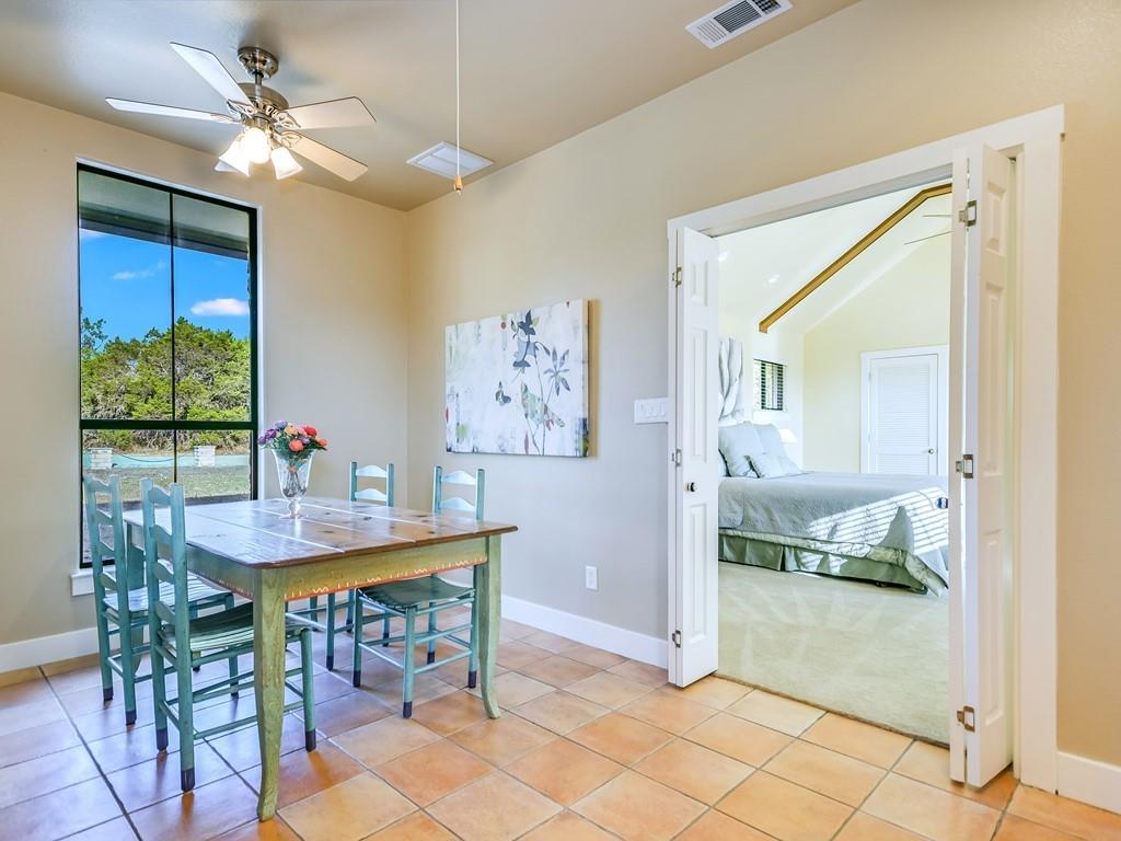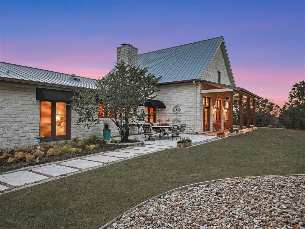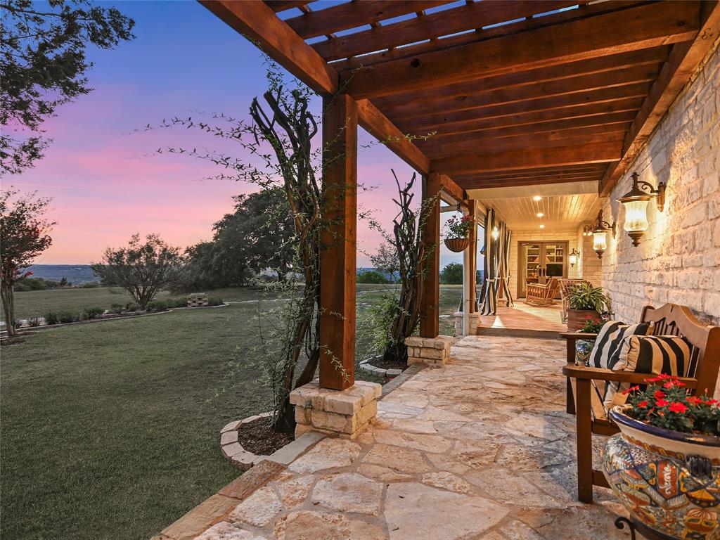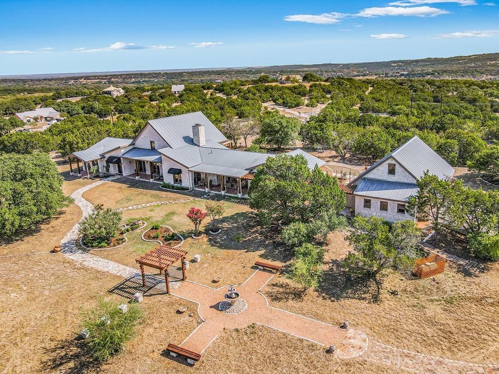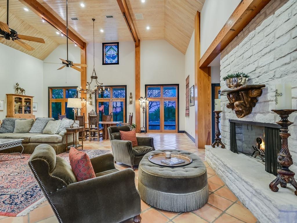 Casa de los Sueños is a refined architectural retreat on 26 acres offering tranquility, privacy, and a peaceful connection to nature. With panoramic views, this property is ideal for those seeking a serene lifestyle on acreage close to Austin. The beautiful stone sculpture "El Sueño" sets the tone for the peaceful atmosphere. Located in the Lake Travis School District, the property is privately gated, fenced, and has a wildlife exemption.  The main house was designed by renowned architectural designer Roger Rasbach, who was acclaimed for his timeless & environmentally friendly contemporary designs. It is a single-story 3 bedroom/3 bath residence with Spanish/European flair: Saltillo tile floors, hand-carved doors from Mexico, & antique long-leaf pine posts. The heart of the home is the spectacular living room with soaring beamed ceilings. A sitting room, study, & master suite flank the main living area. The French-inspired kitchen boasts a commercial Thermador cooktop & an antique marble island. 2 secondary bedrooms in the main house are accessed via the veranda.  The 2nd residence is a spacious 1 bedroom ranch-style home with a living room, kitchen, dining room, laundry, & private patio offering amazing hill country views. Endless possibilities: multi-generational living, a fabulous guest home, studio, etc.  With its beamed & vaulted ceilings, the oversized 3-car garage could also serve as a fantastic party barn. It includes a workshop, storage area, and the well/rainwater equipment room.  Multiple outdoor living spaces invite relaxation. Embrace the beauty and views of this expansive property from one of many covered patios, the courtyard, the fire-pit area, or while hiking.  Water is sourced from both a well and a 20,000-gallon rainwater collection system. Horses & livestock are welcome on the property, making it an ideal location for those with equestrian & gardening/agricultural interests.