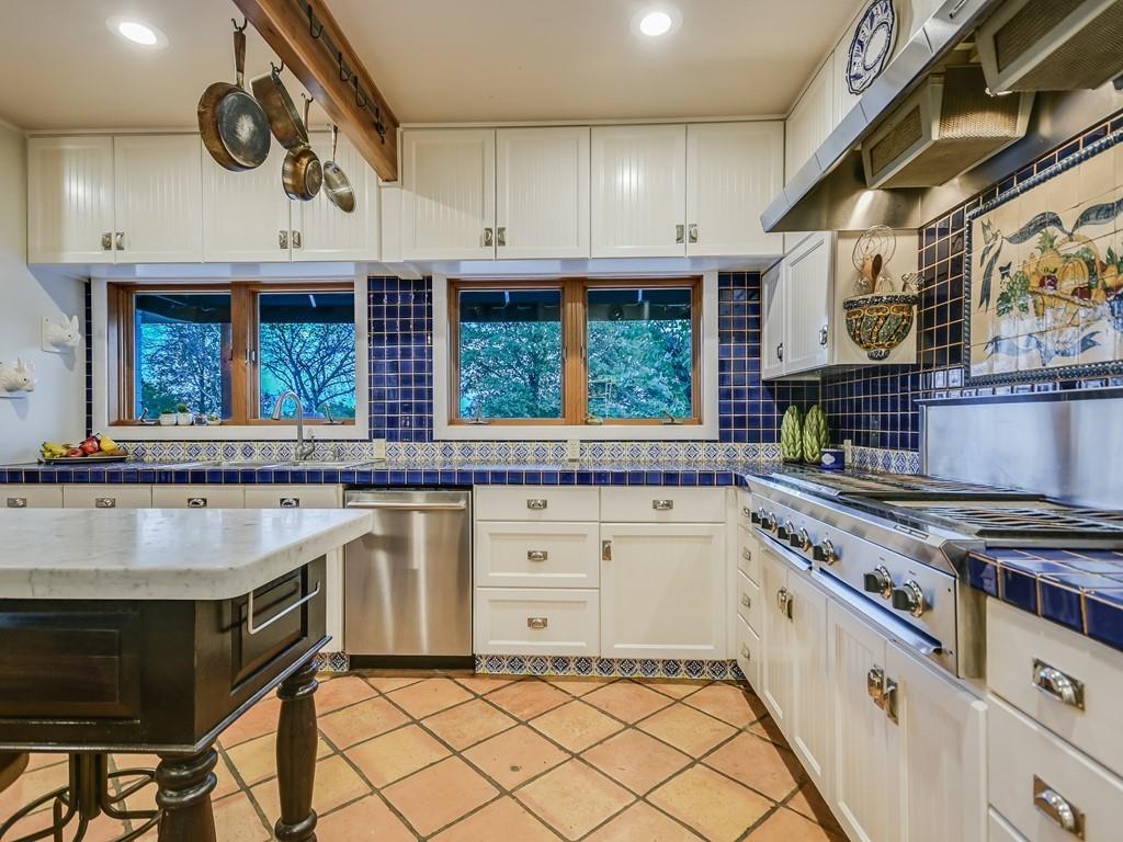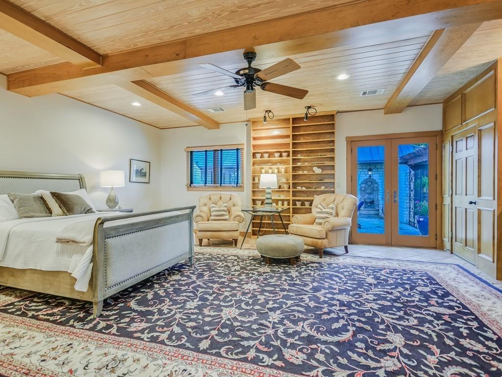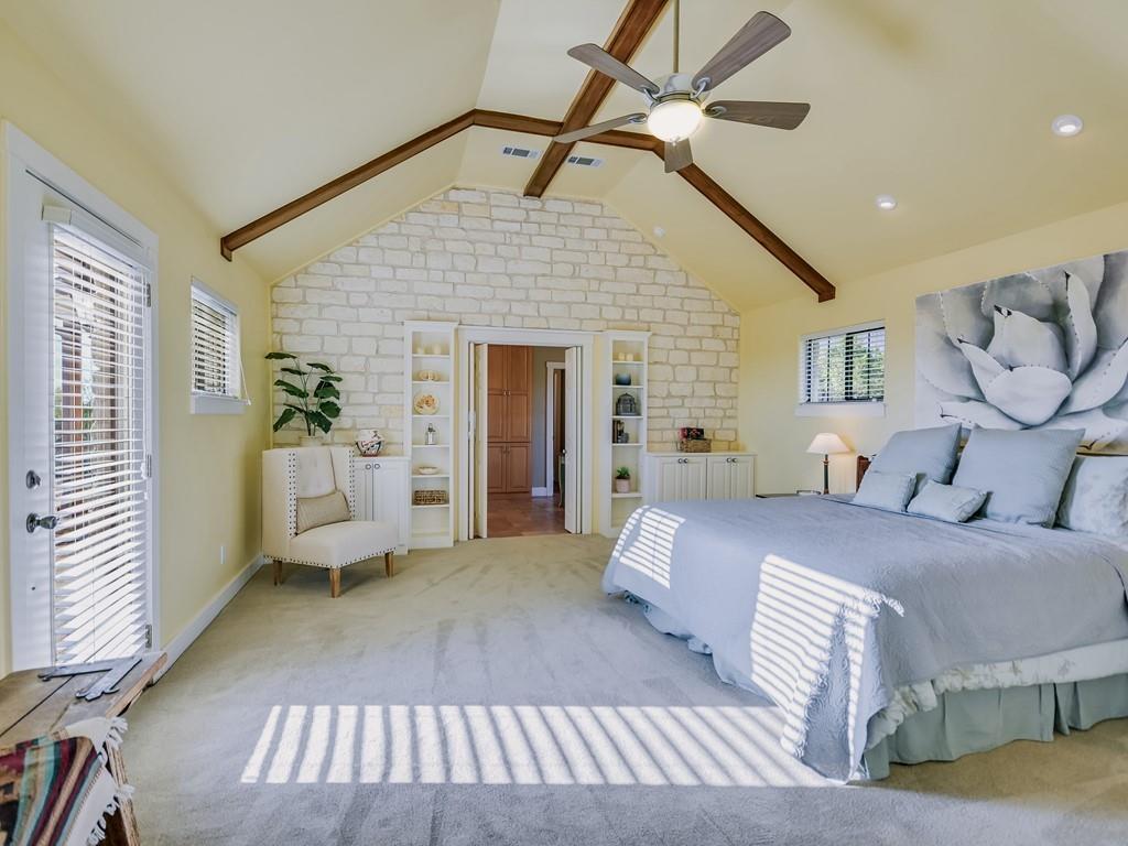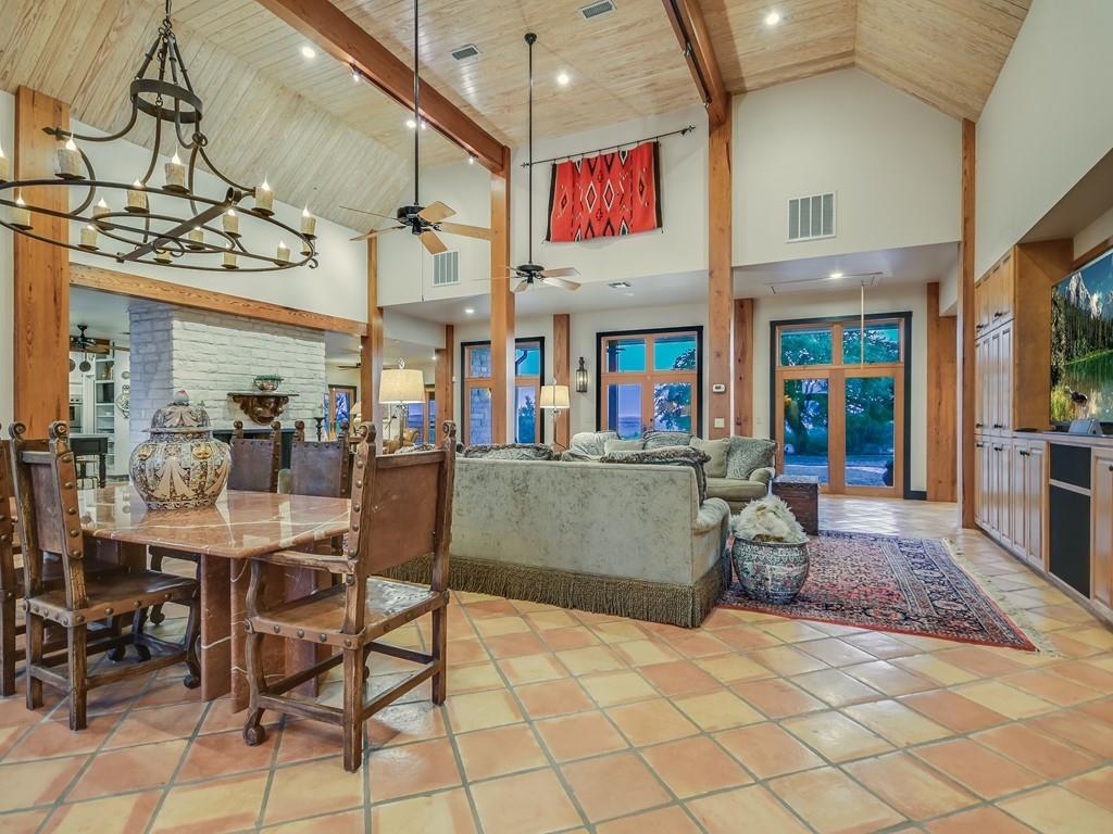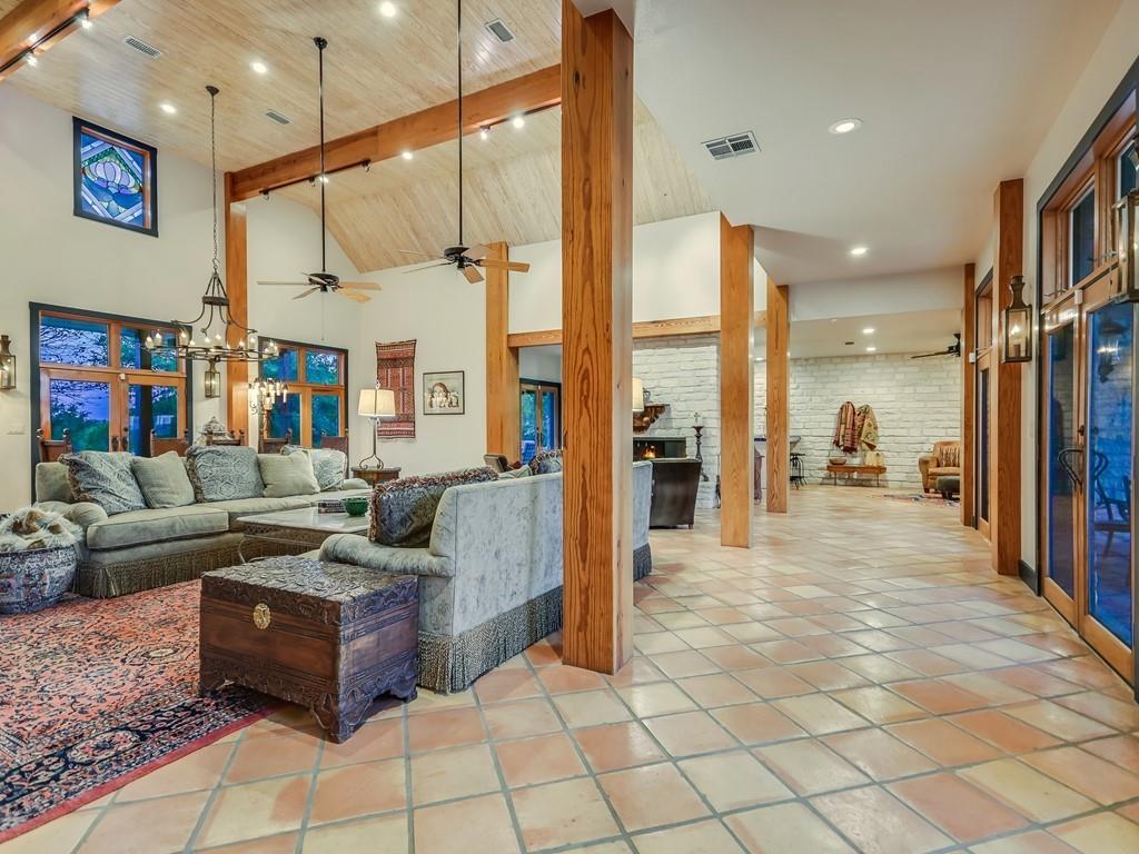 | Interior Features | Bookcases, Breakfast Bar, Ceiling Fan(s), Beamed Ceilings, High Ceilings, Chandelier, Tile Counters, Double Vanity, Electric Dryer Hookup, French Doors, In-Law Floorplan, Kitchen Island, Multiple Living Areas, Natural Woodwork, Open Floorplan, Pantry, Primary Bedroom on Main, Recessed Lighting, Soaking Tub, Track Lighting, Walk-In Closet(s), Wired for Sound | |