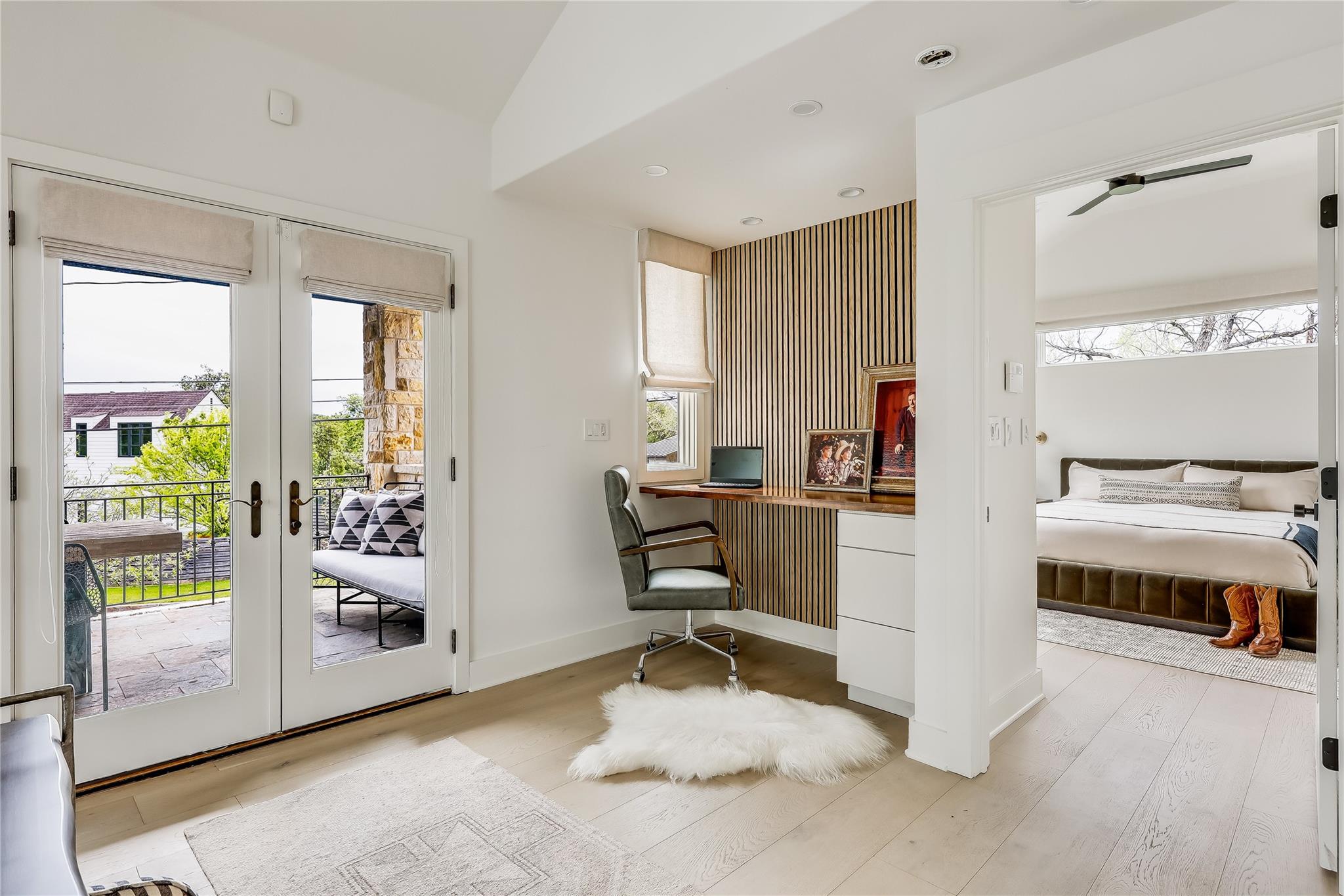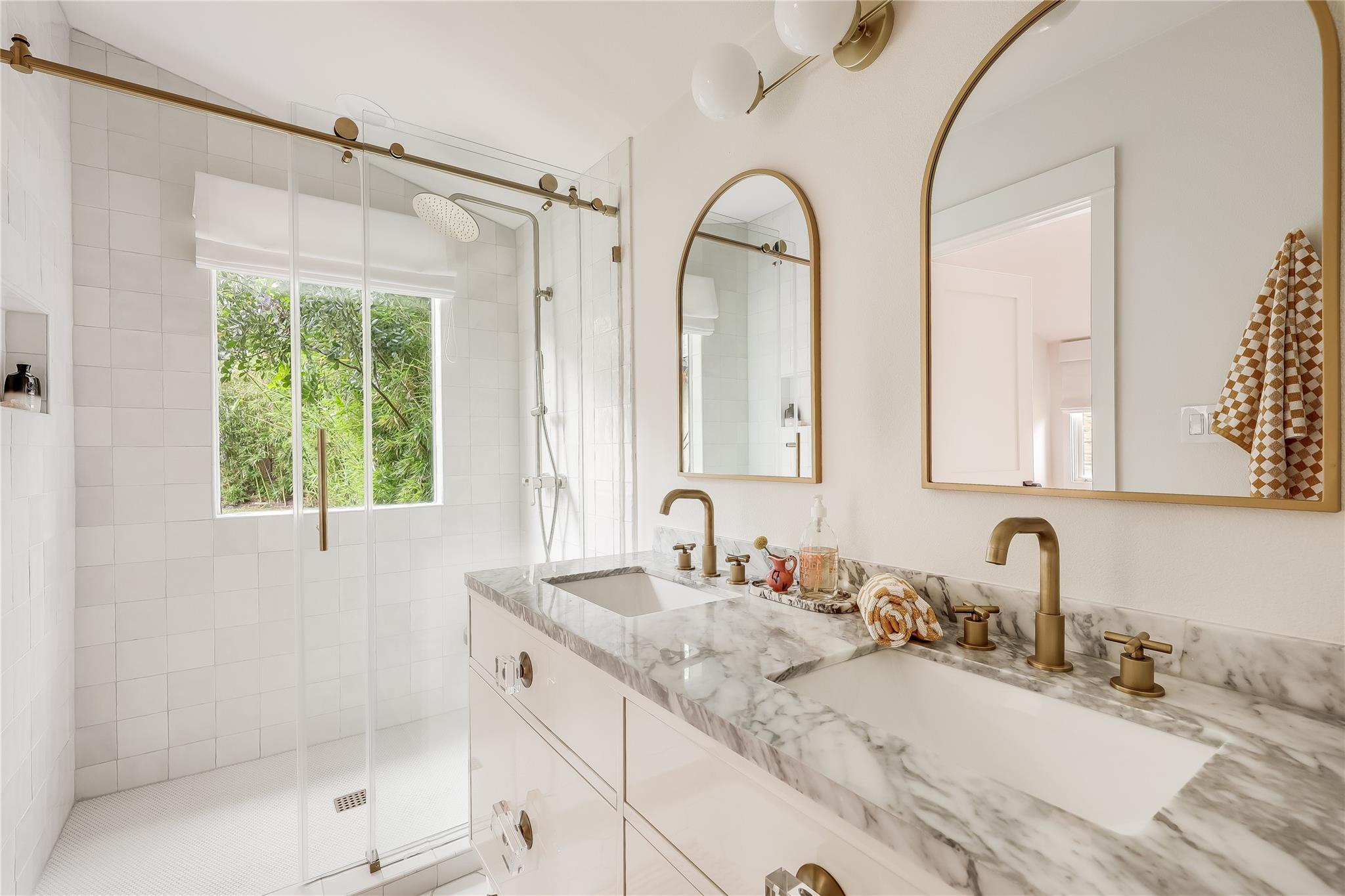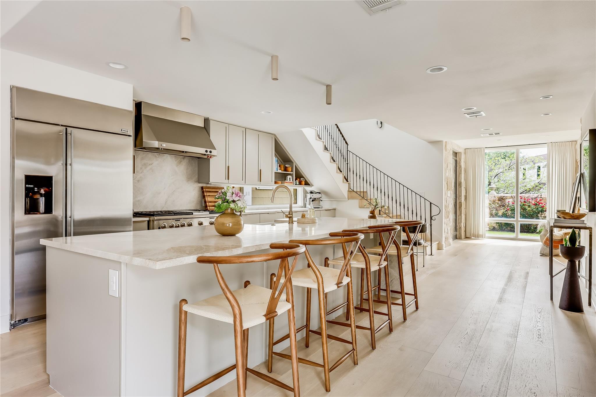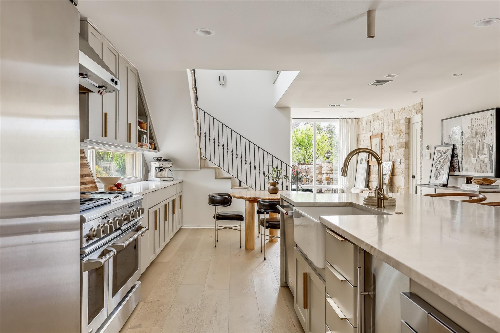 Step into luxury living in the heart of Austin's coveted Zilker neighborhood. Offering an unparalleled blend of comfort and convenience, every detail is meticulously selected. Steps away from South Lamar’s vibrant scene, the serene waters of Barton Springs, and Zilker Park. Every inch of this home has been curated with high-end finishes, from the wide plank white oak floors to the custom recessed lighting that illuminates the expansive kitchen and living areas. Equipped with top-of-the-line appliances, a taj mahal waterfall quartzite island, and abundant storage, the kitchen is a haven for culinary enthusiasts. Cozy up next to the floor-to-ceiling wood-burning tile fireplace located in the living room, open to the kitchen. Discover a secondary master suite on the main level, complete with access to the backyard oasis and a luxurious en-suite bathroom. Two additional bedrooms on the first floor offer ample space and natural light. Ascend the hardwood stairs to a secondary living area, boasting panoramic views of the downtown skyline and a wet bar for effortless entertaining. The primary suite awaits with soaring ceilings, an oversized marble bath, and a custom closet for optimal organization. Outside, enjoy a courtyard style patio, offering a serene escape from the bustling city. An oversized garage and ample driveway provide parking for car enthusiasts and hobbyists alike. Don't miss the chance to own this Zilker showpiece offering unparalleled luxury and convenience in an unbeatable location.