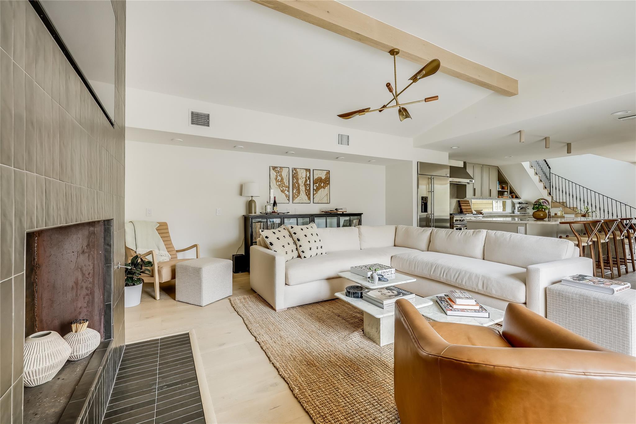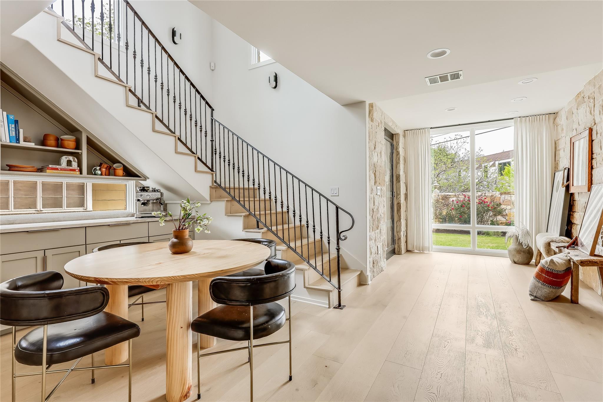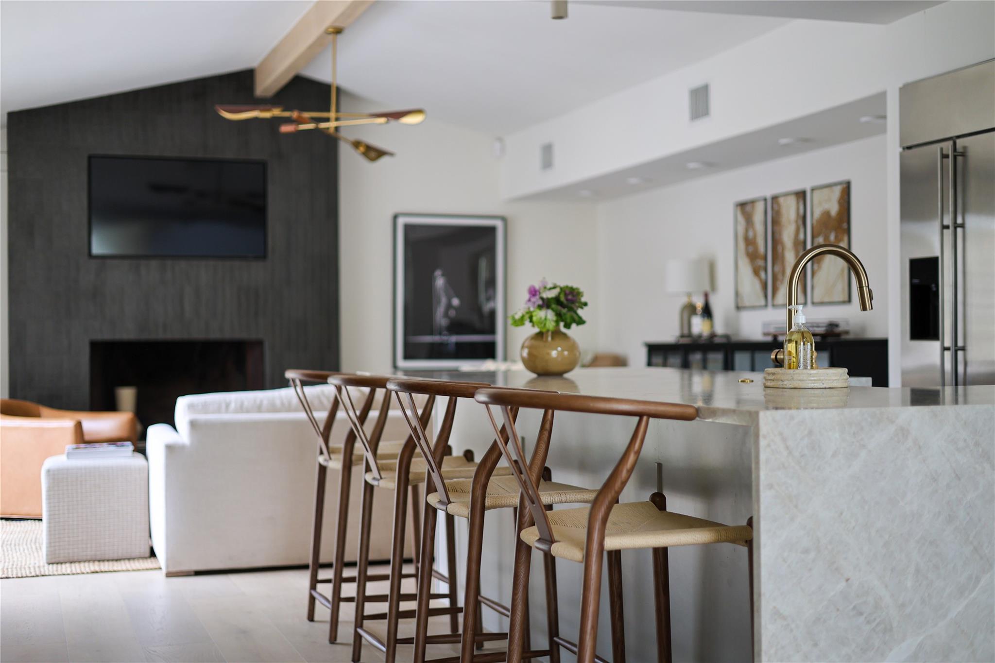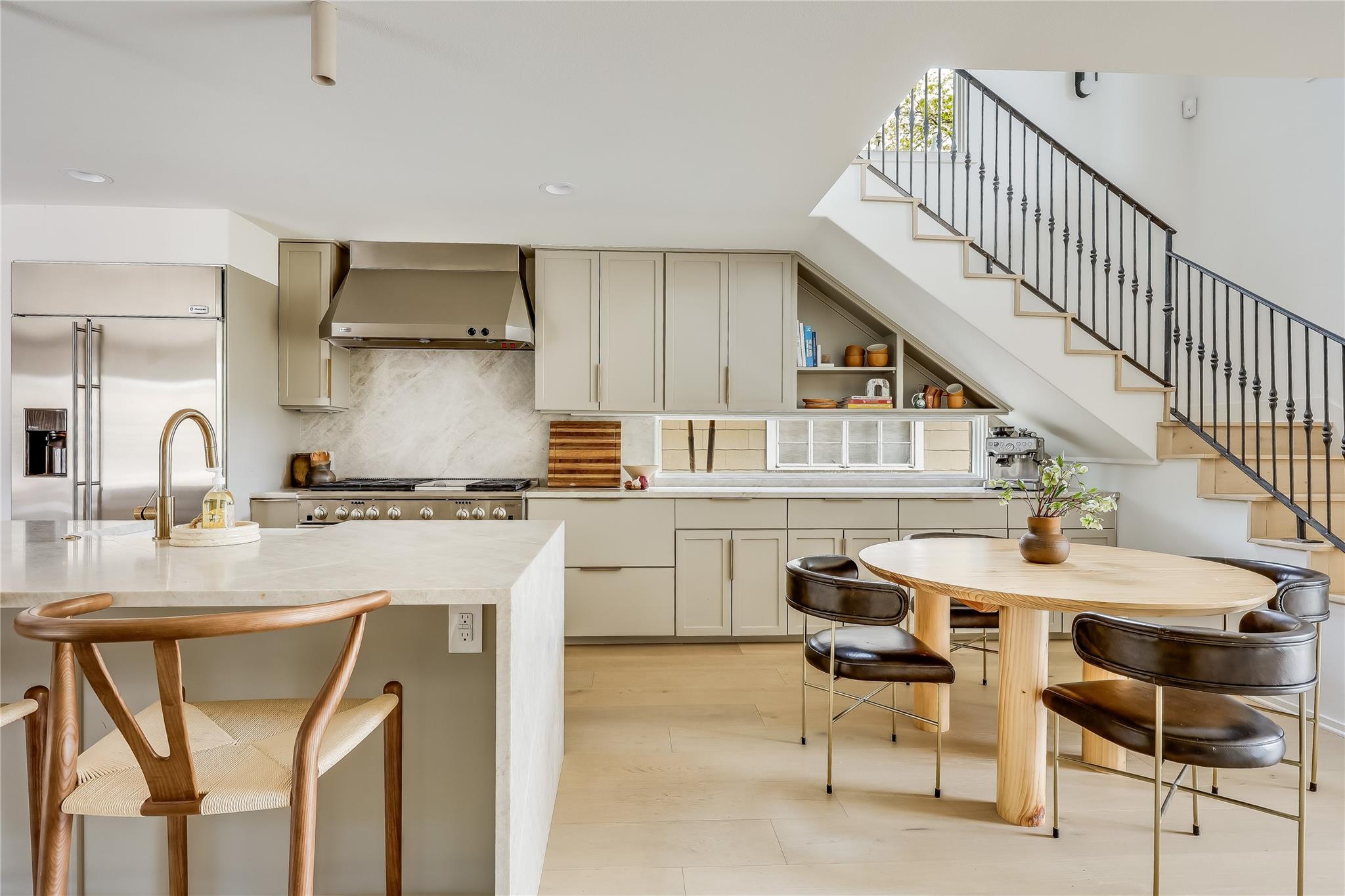 Step into luxury living in the heart of Austin's coveted Zilker neighborhood. Offering an unparalleled blend of comfort and convenience, every detail is meticulously selected. Steps away from South Lamar’s vibrant scene, the serene waters of Barton Springs, and Zilker Park. Every inch of this home has been curated with high-end finishes, from the wide plank white oak floors to the custom recessed lighting that illuminates the expansive kitchen and living areas. Equipped with top-of-the-line appliances, a taj mahal waterfall quartzite island, and abundant storage, the kitchen is a haven for culinary enthusiasts. Cozy up next to the floor-to-ceiling wood-burning tile fireplace located in the living room, open to the kitchen. Discover a secondary master suite on the main level, complete with access to the backyard oasis and a luxurious en-suite bathroom. Two additional bedrooms on the first floor offer ample space and natural light. Ascend the hardwood stairs to a secondary living area, boasting panoramic views of the downtown skyline and a wet bar for effortless entertaining. The primary suite awaits with soaring ceilings, an oversized marble bath, and a custom closet for optimal organization. Outside, enjoy a courtyard style patio, offering a serene escape from the bustling city. An oversized garage and ample driveway provide parking for car enthusiasts and hobbyists alike. Don't miss the chance to own this Zilker showpiece offering unparalleled luxury and convenience in an unbeatable location.