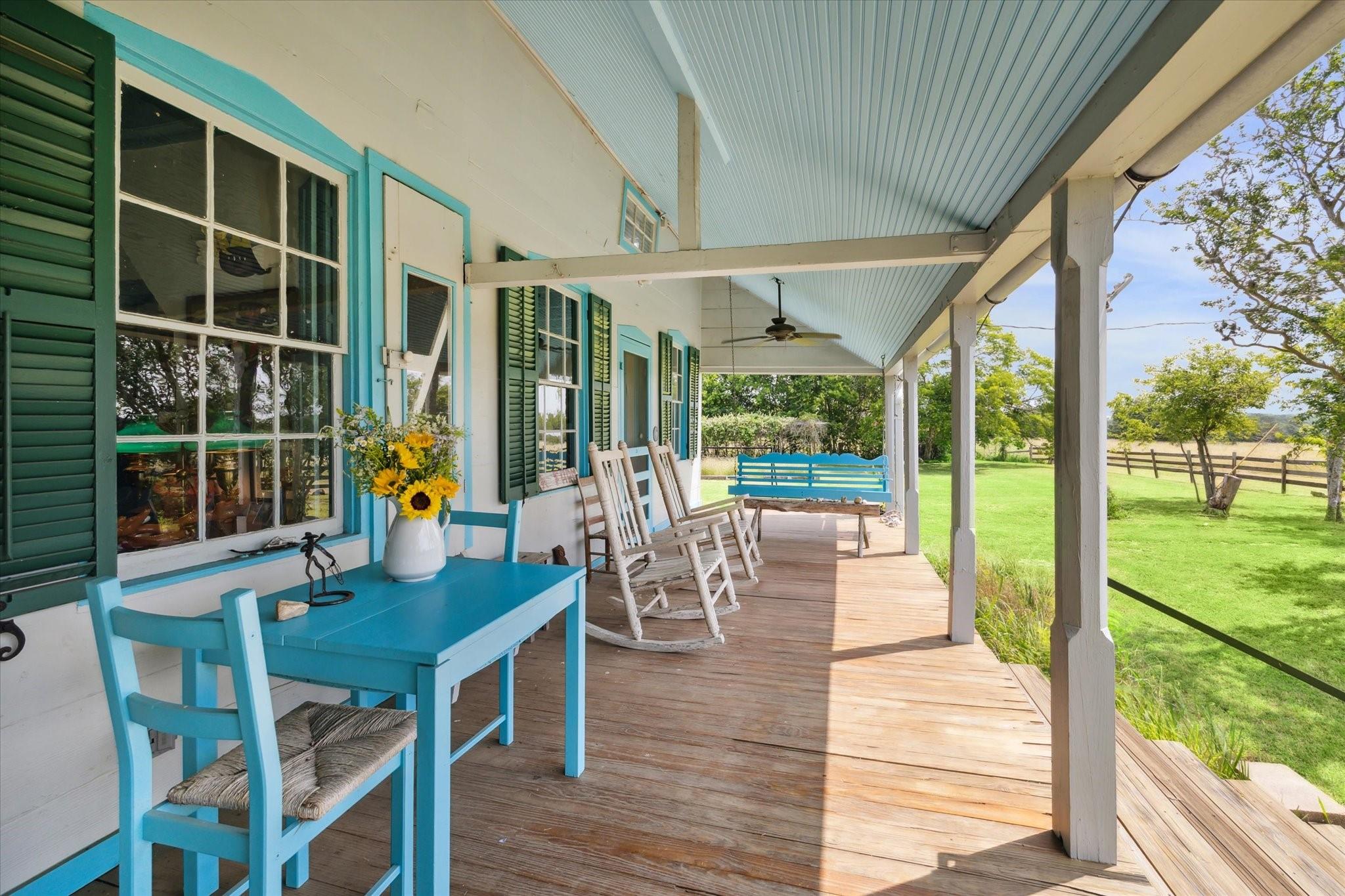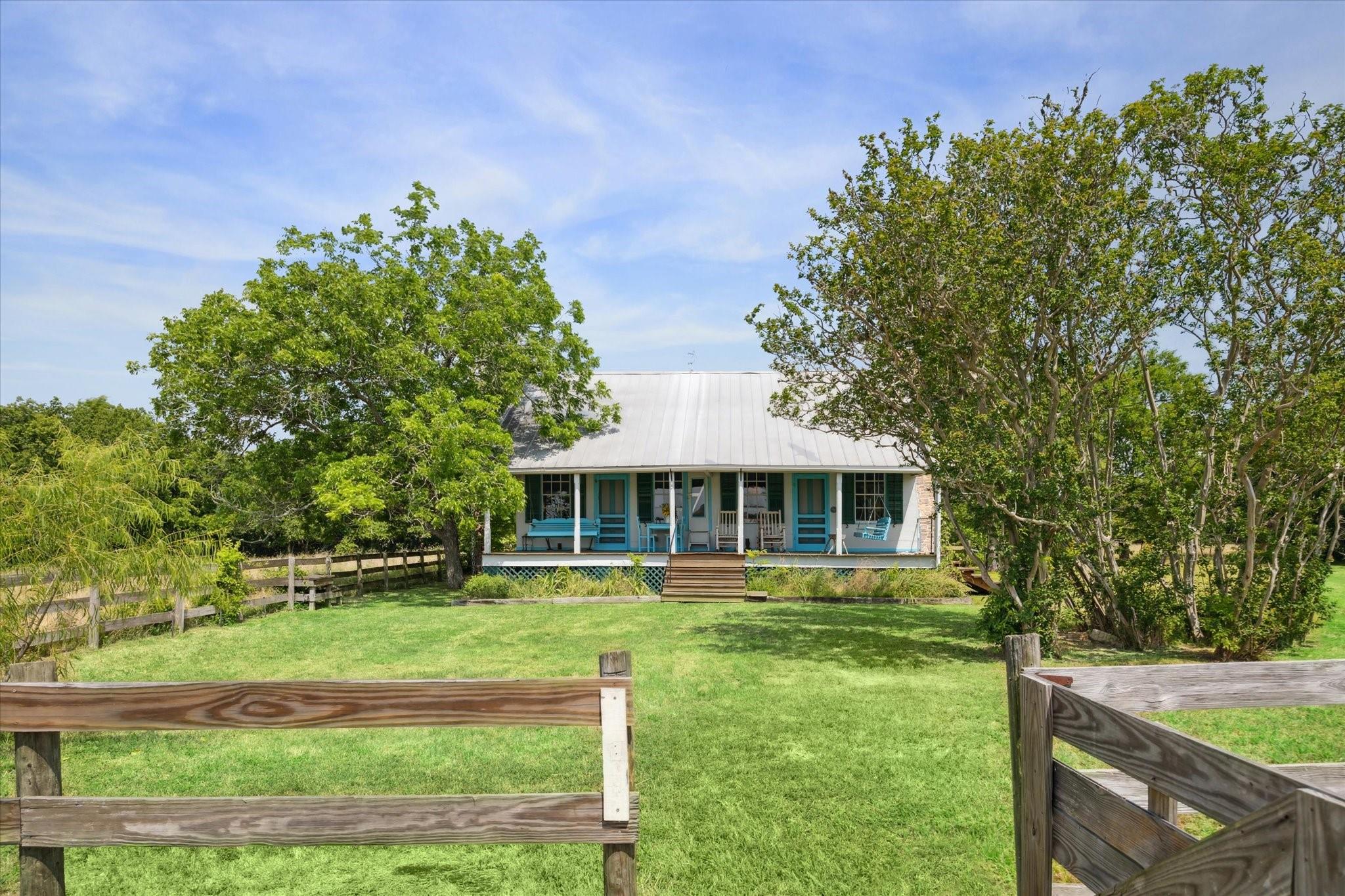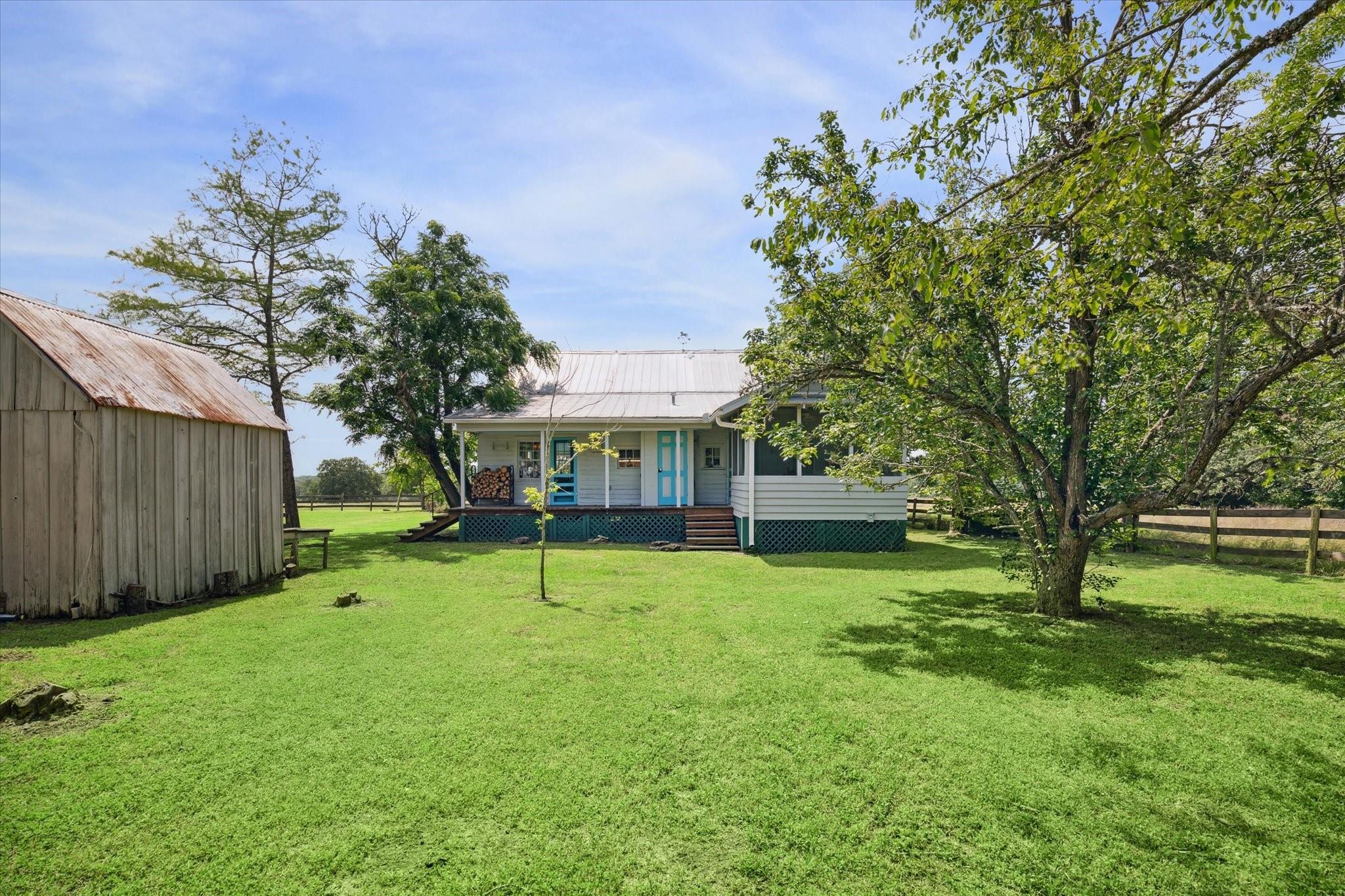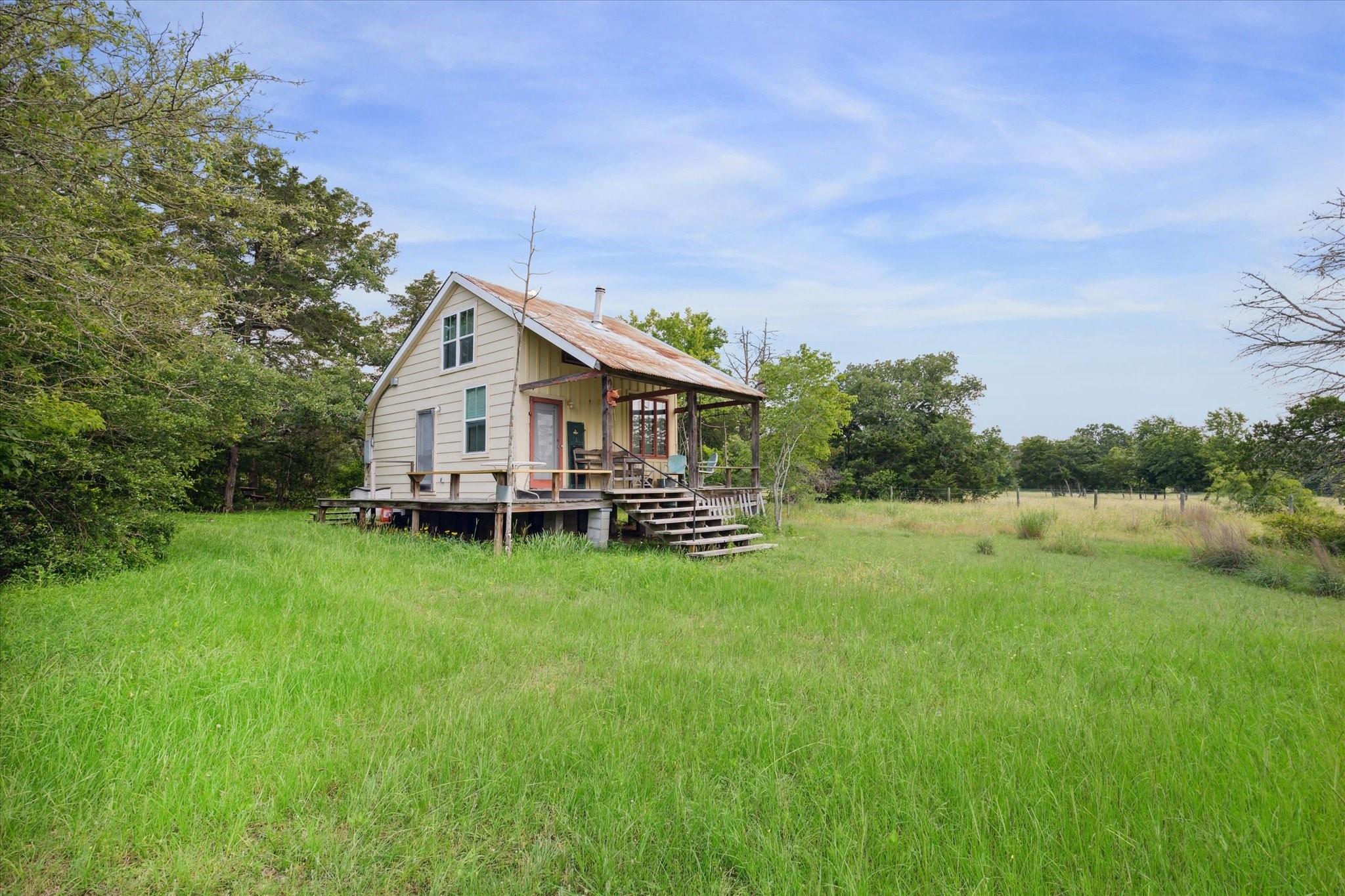 Secluded Retreat in Round Top: Rare large acreage (58 acres) with privacy, rolling hills, and serene ponds. A charming, restored cottage from the 1860s has 1 bedroom, 1 bath, a sleeping porch, and attic space. Enjoy the dual front porch swings overlooking picturesque pastures and pond. A separate 1-room cabin with a sleeping loft sits away from the cottage providing ultimate privacy. Tree-lined Rohde Road leads to this tranquil oasis, where time slows down, and life feels simpler. Ag-exempt and surrounded by oaks, this property invites you to escape to yesteryears—it is a piece of history that endures. Build your own legacy with your dream country home, choosing from any of the amazing building sites. The cottage or cabin provides accommodation while building. When ready to step outside your gate, Round Top does not disappoint with wonderful restaurants, shopping, Round Top Festival Institute and the popular bi-annual Round Top Antique and Design Show.