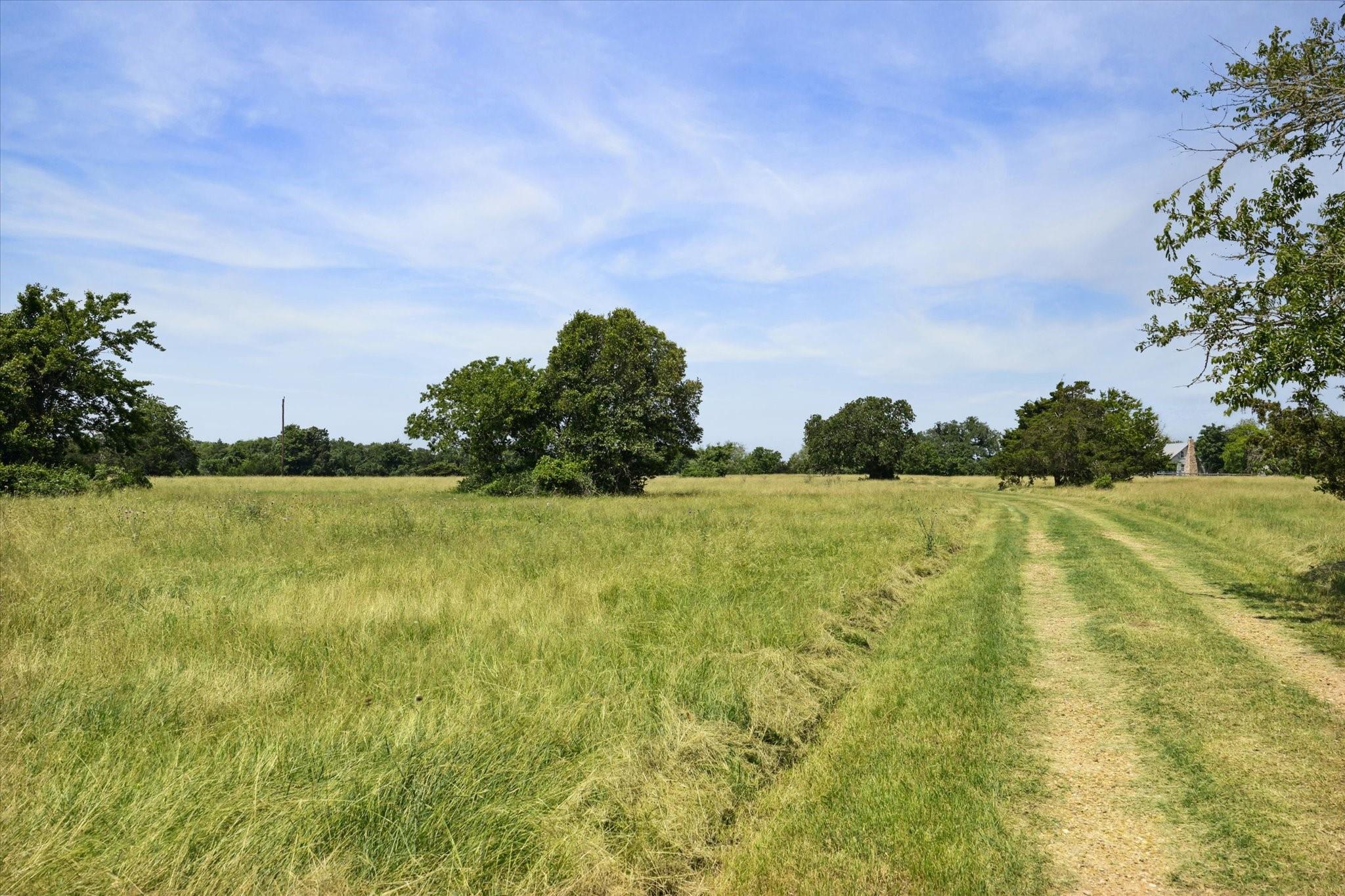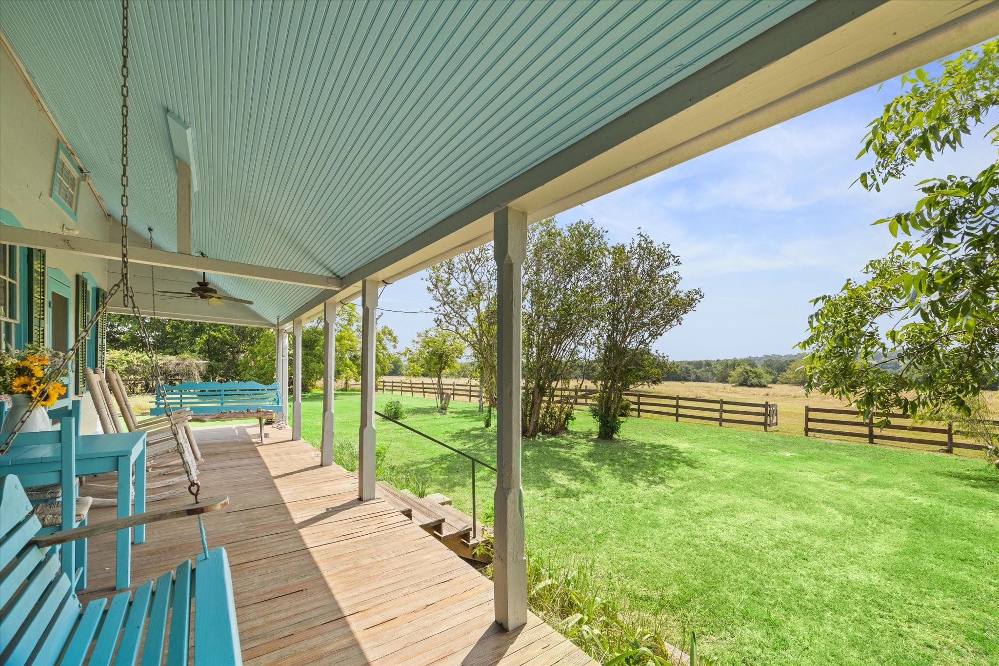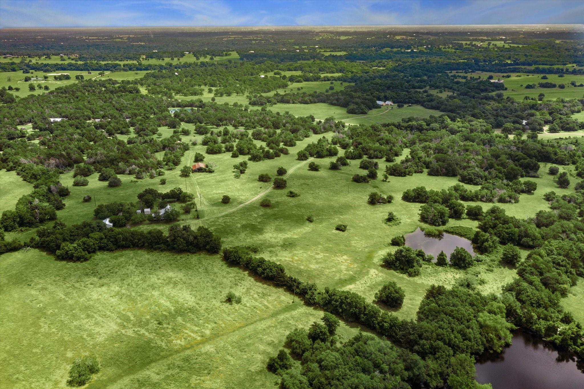 Secluded Retreat in Round Top: Rare large acreage (58 acres) with privacy, rolling hills, and serene ponds. A charming, restored cottage from the 1860s has 1 bedroom, 1 bath, a sleeping porch, and attic space. Enjoy the dual front porch swings overlooking picturesque pastures and pond. A separate 1-room cabin with a sleeping loft sits away from the cottage providing ultimate privacy. Tree-lined Rohde Road leads to this tranquil oasis, where time slows down, and life feels simpler. Ag-exempt and surrounded by oaks, this property invites you to escape to yesteryears—it is a piece of history that endures. Build your own legacy with your dream country home, choosing from any of the amazing building sites. The cottage or cabin provides accommodation while building. When ready to step outside your gate, Round Top does not disappoint with wonderful restaurants, shopping, Round Top Festival Institute and the popular bi-annual Round Top Antique and Design Show.