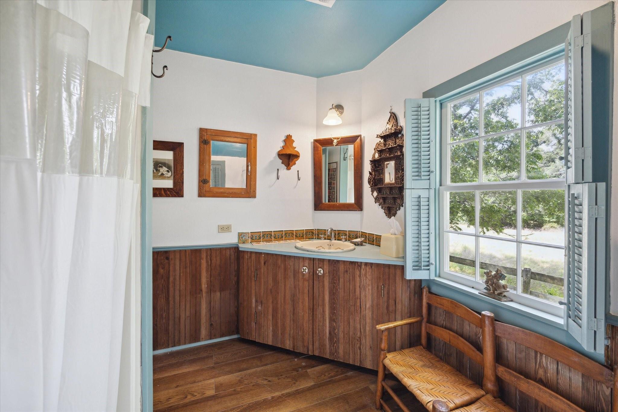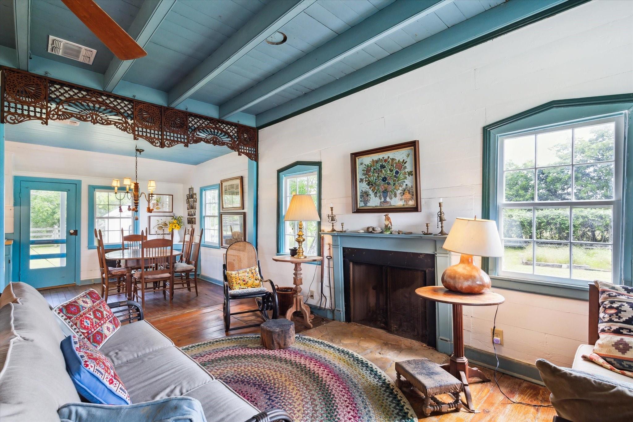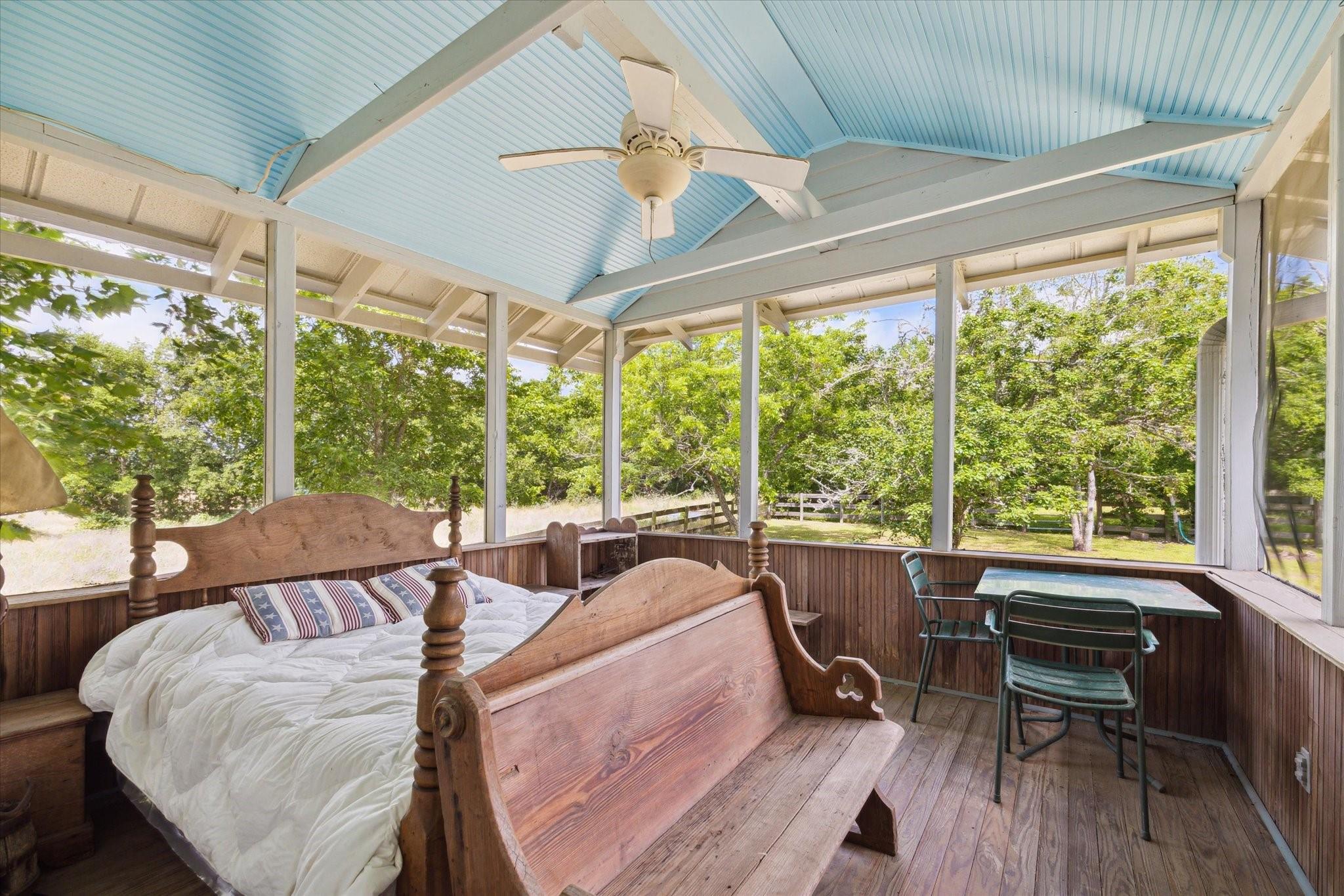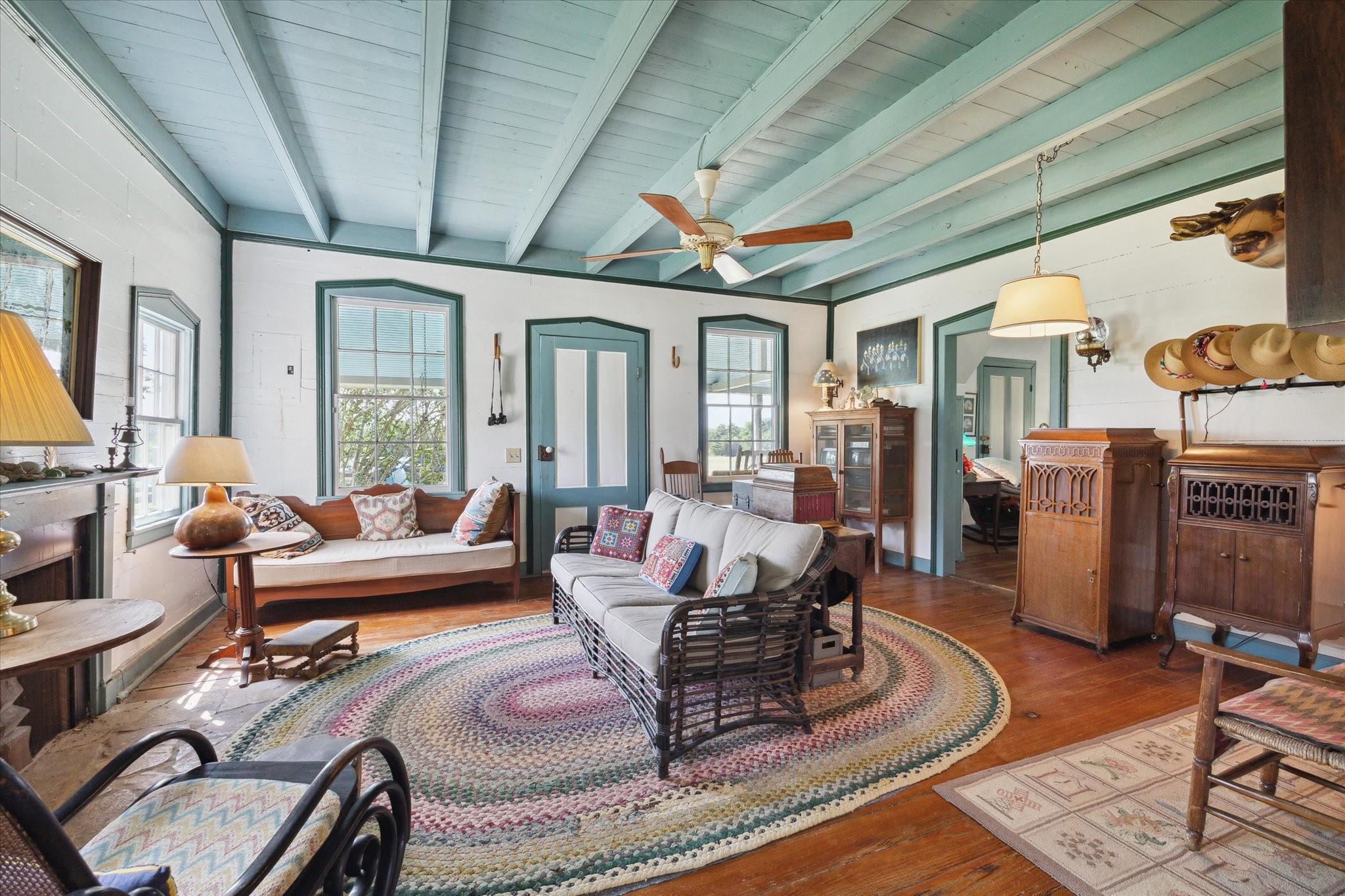Secluded Retreat in Round Top: Rare large acreage (58 acres) with privacy, rolling hills, and serene ponds. A charming, restored cottage from the 1860s has 1 bedroom, 1 bath, a sleeping porch, and attic space. Enjoy the dual front porch swings overlooking picturesque pastures and pond. A separate 1-room cabin with a sleeping loft sits away from the cottage providing ultimate privacy. Tree-lined Rohde Road leads to this tranquil oasis, where time slows down, and life feels simpler. Ag-exempt and surrounded by oaks, this property invites you to escape to yesteryears—it is a piece of history that endures. Build your own legacy with your dream country home, choosing from any of the amazing building sites. The cottage or cabin provides accommodation while building. When ready to step outside your gate, Round Top does not disappoint with wonderful restaurants, shopping, Round Top Festival Institute and the popular bi-annual Round Top Antique and Design Show.