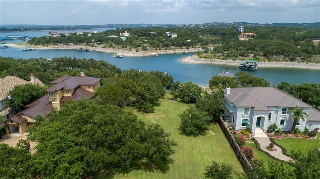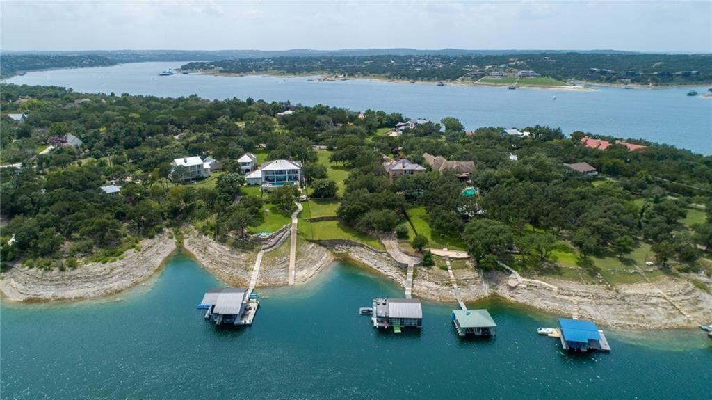 HUGE PRICE REDUCTION for this gorgeous Lakefront property in Lakeway with private dock! With over 200 feet of Lake Travis water frontage, this lot is ready for you to immediately embrace the beauty of the lake life in your fantastic boathouse with 2 boat slips, hydra lift, jet ski dock, wet bar, and spacious upper sun deck. Have fun while you design and build your dream home on the 2.6 acres of gently sloping land, beautiful oak trees and awesome waterfront views. The property also features rock accented terraces towards the waters edge, a storage unit and iron fence all around. Nestled in a private Cul-de-sac and surrounded by beautiful homes, this property offers a sense of exclusivity and community. It's an invitation to a lifestyle where every day feels like a vacation. Whether you're envisioning a peaceful retreat or an entertainer's paradise, this lakefront property provides the perfect canvas for turning your dreams into reality and making lasting memories in your own piece of paradise. Pictures show lake level on Spring 2023 & video is from April 2024. The water is lower now but dock is NOT on dry land. . Buyer to verify all LCRA, flood zone and city building guidelines.