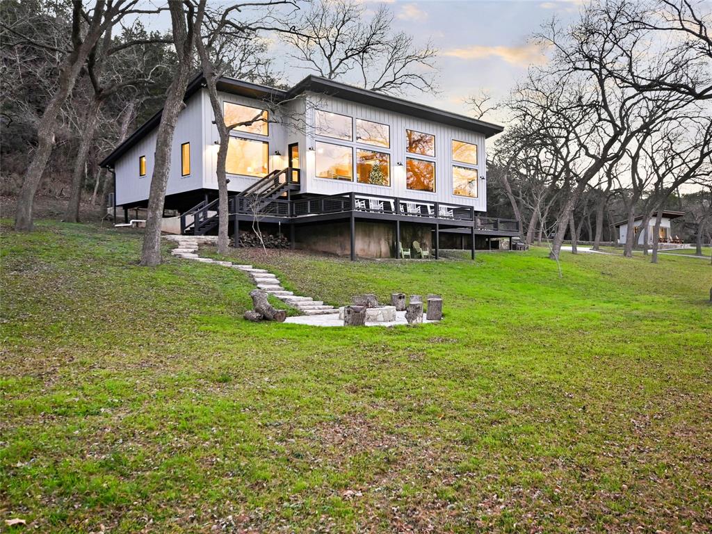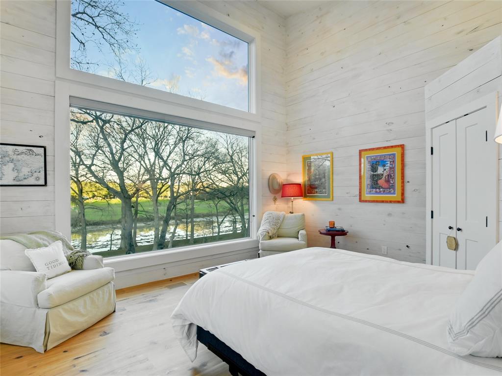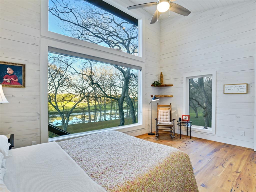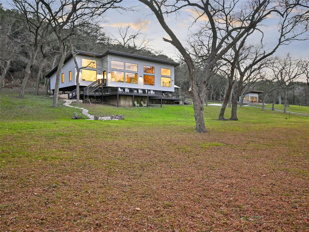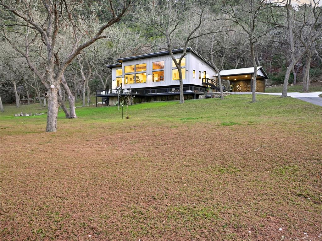 NEW-STARTING IN 2024-AG EVALUATION ON 7 ACRES FOR BEES MEANS LOWER TAXES! Nestled between the Blanco River and the hills of Wimberley is a place that is so serene and private you won't believe such a beautiful property exists a short distance from the historic Wimberley Square. This breathtaking 7.48 acres has over 1200 feet of Cypress and Pecan tree lined river front. The landscape has been meticulously maintained to enhance the views. When you take the private drive across the bridge to enter the property you will see the natural beauty of Wimberley at it's finest. On the right you will see the base of Paradise Hills and to the left the Blanco River. In front of you is an amazing home designed to drink in the views of this awesome setting and a vast green space to enjoy with family and friends. Go for a walk to the massive boulders that line the far boundry or kayak the river under the shade of ancient Cypress trees. The unique custom home was completed in 2020 and was designed and placed to celebrate this outstanding setting. Large picture windows line the front of the house to provide expansive views of the river and manicured grounds. Whether in the kitchen/living area, home office or the front bedrooms you will enjoy unobstructed views of the beauty of nature. The floors are reclaimed Cypress that is perfectly installed and finished. Concrete countertops accentuate natural finishes with understated beauty. The tall ceilings give a sense of space and openness complimented by the massive windows which flood the home with natural light. The interior walls and ceilings are finished in wood and have spray foam insulation which makes for a quiet and energy efficient home. You can use the carport for parking or to host an outdoor gathering. Enjoy the views of the river from the detached cabin. This property is literally at the end of the road with unparalleled privacy and views that almost defy description. Iconic riverfront properties like this are seldom available