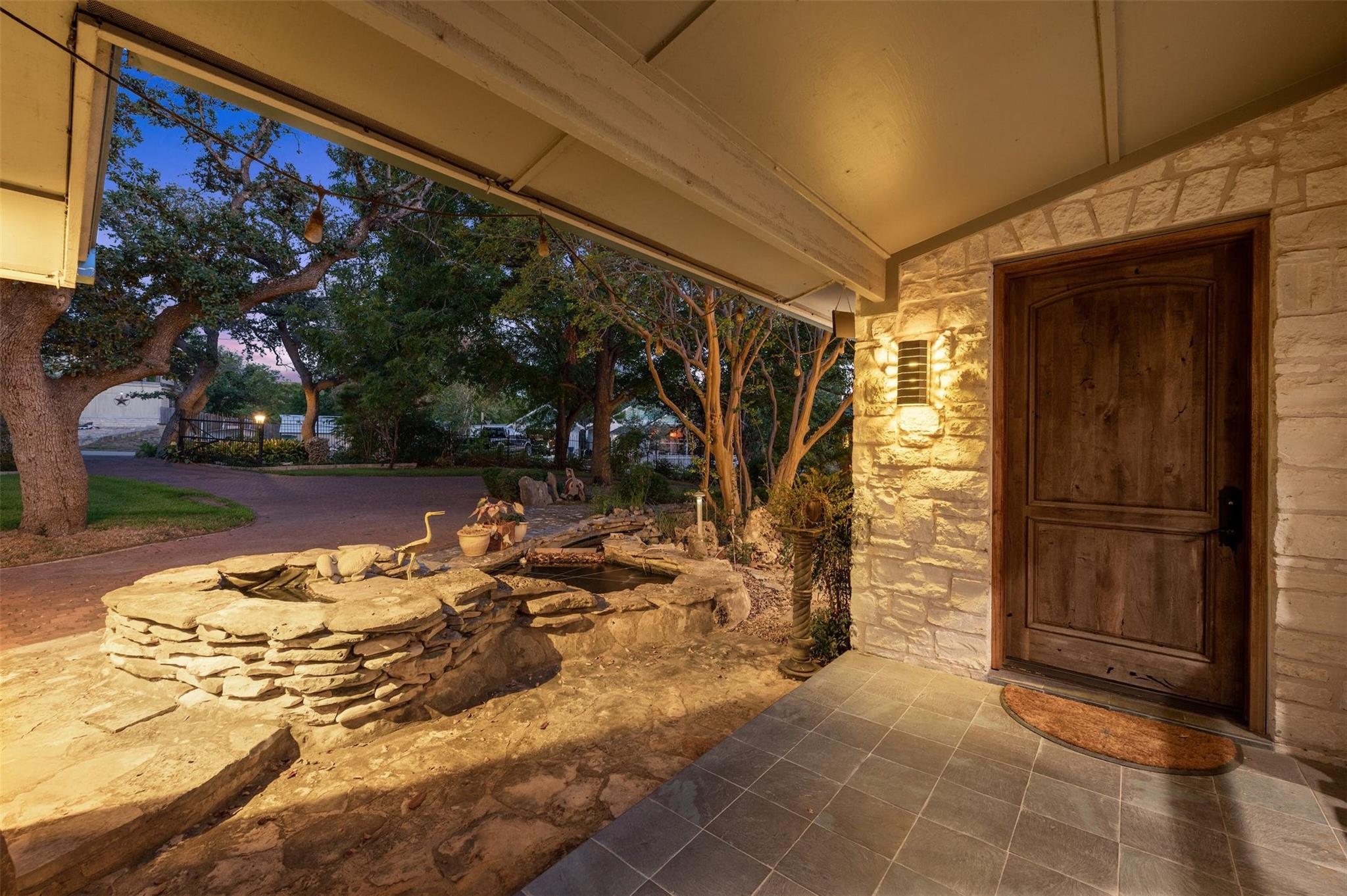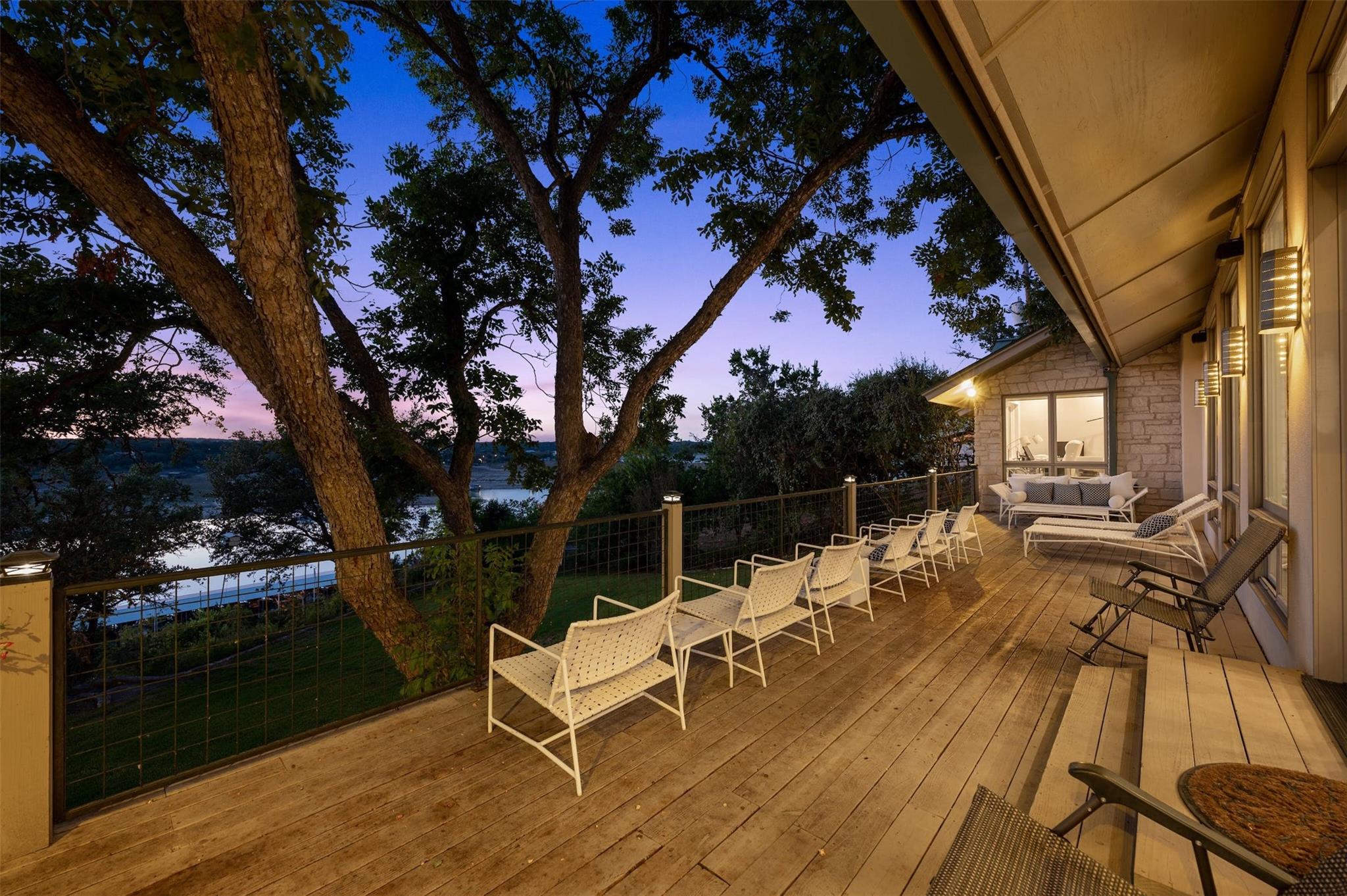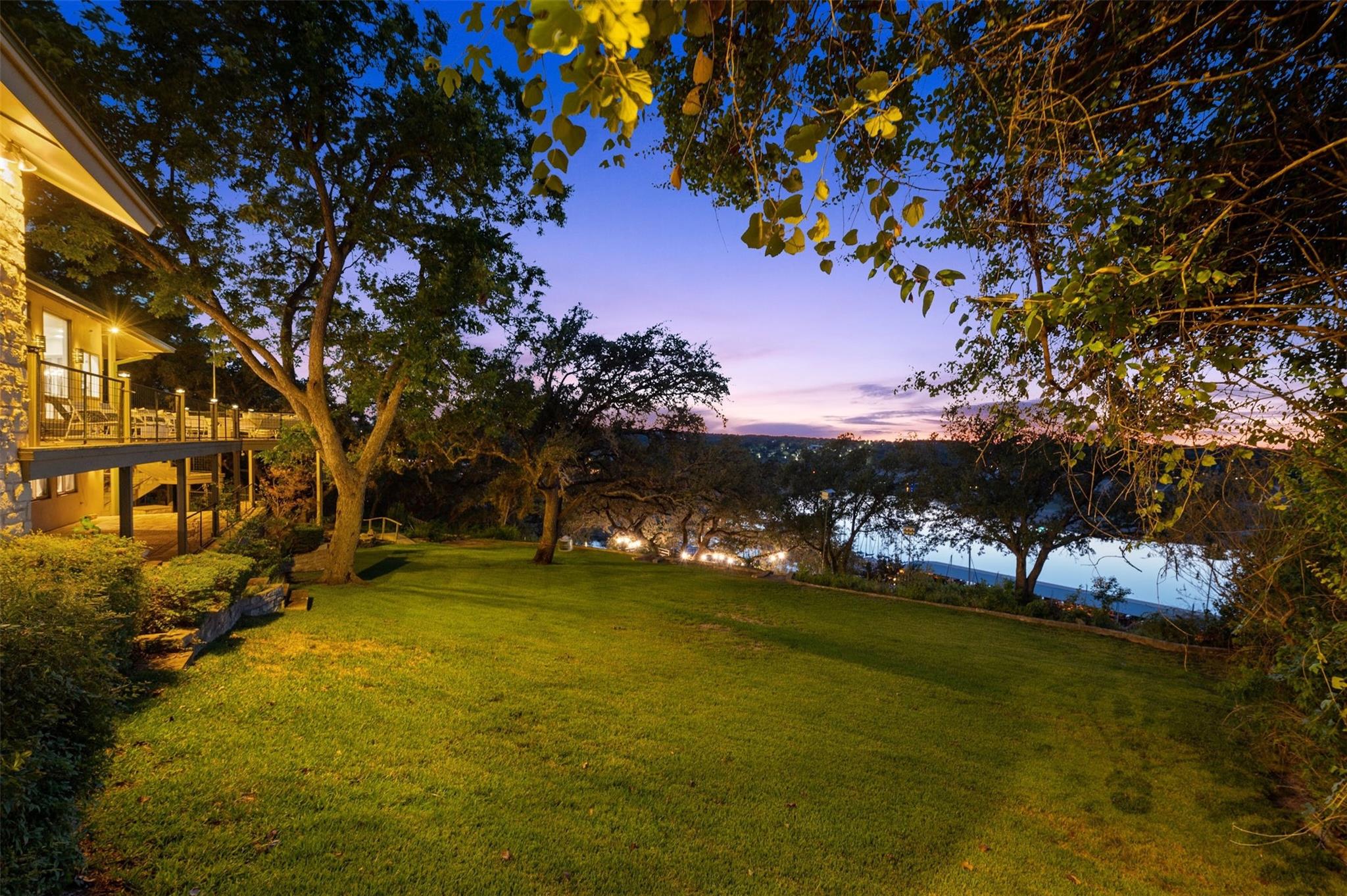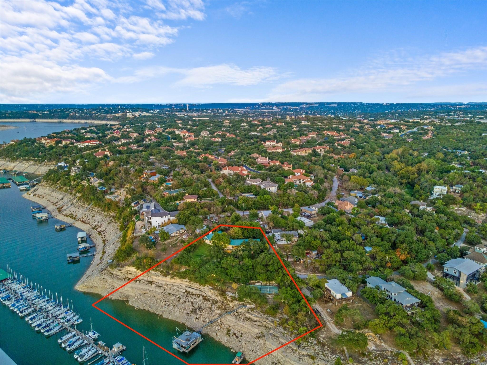 Spectacular Lakefront Oasis on Lake Travis! Situated on 2.23 acres along the Hurst Creek Arm in the well-established Buffalo Gap lakefront community. Consisting of three lots, this sale offers a rare opportunity for possible development. Gorgeous tree-filled property with a full lakefront sports court, shady front and backyards, scenic vistas, several outdoor living spaces, majestic landscaping, and a cascading waterfall. Positioned right on the water, this home comes with a private dock, 400 feet of frontage, and stairs to the water at all lake levels. Frontage is on the no wake, deep water cove, with a depth of 65’ during an average lake level of 681’. The existing home consists of the 2BD/2.5BA main house and a separate 1BD/1BA guest house. There is also a gated back entry with extensive parking, a two-car garage with two glass garage door bays, plus a workshop with two additional glass door bays overlooking the lake. The home features soaring vaulted & beamed ceilings, striking stone fireplaces in the living room and primary suite, sophisticated built-ins, plentiful storage, and a timeless gourmet kitchen with SS appliances. Incredible oversized primary suite with an ensuite bath, walk-in closets, and an attached lake-view office. Downstairs you will find a guest room, a large full bath, a wet room area, a storage room, and the workshop. The 1BD/1BA guest house comes with its own sweeping lake views and is close enough to the main house to be involved but separate enough to give guests a break when needed. Perfect for multi-generational living! This incredible lakefront estate showcases outdoor living at its finest with a deck that runs almost the length of the home overlooking the lake. Featuring lush grounds with enchanting gardens, ponds, a grand lawn, towering mature shade trees, and more. Excellent Lake Travis ISD Schools. Low Tax Rate (1.77). Convenient to both Austin and Lakeway. Come and make your lakefront living dreams a reality today!