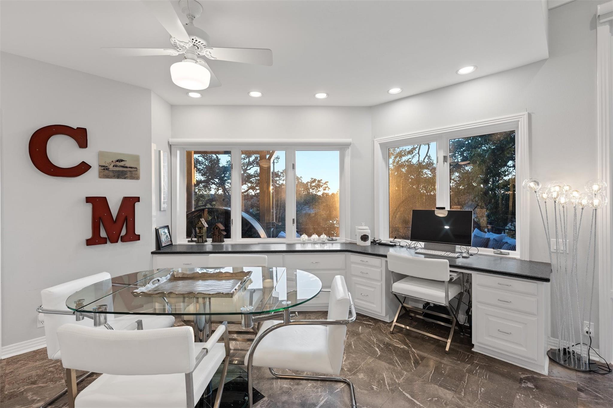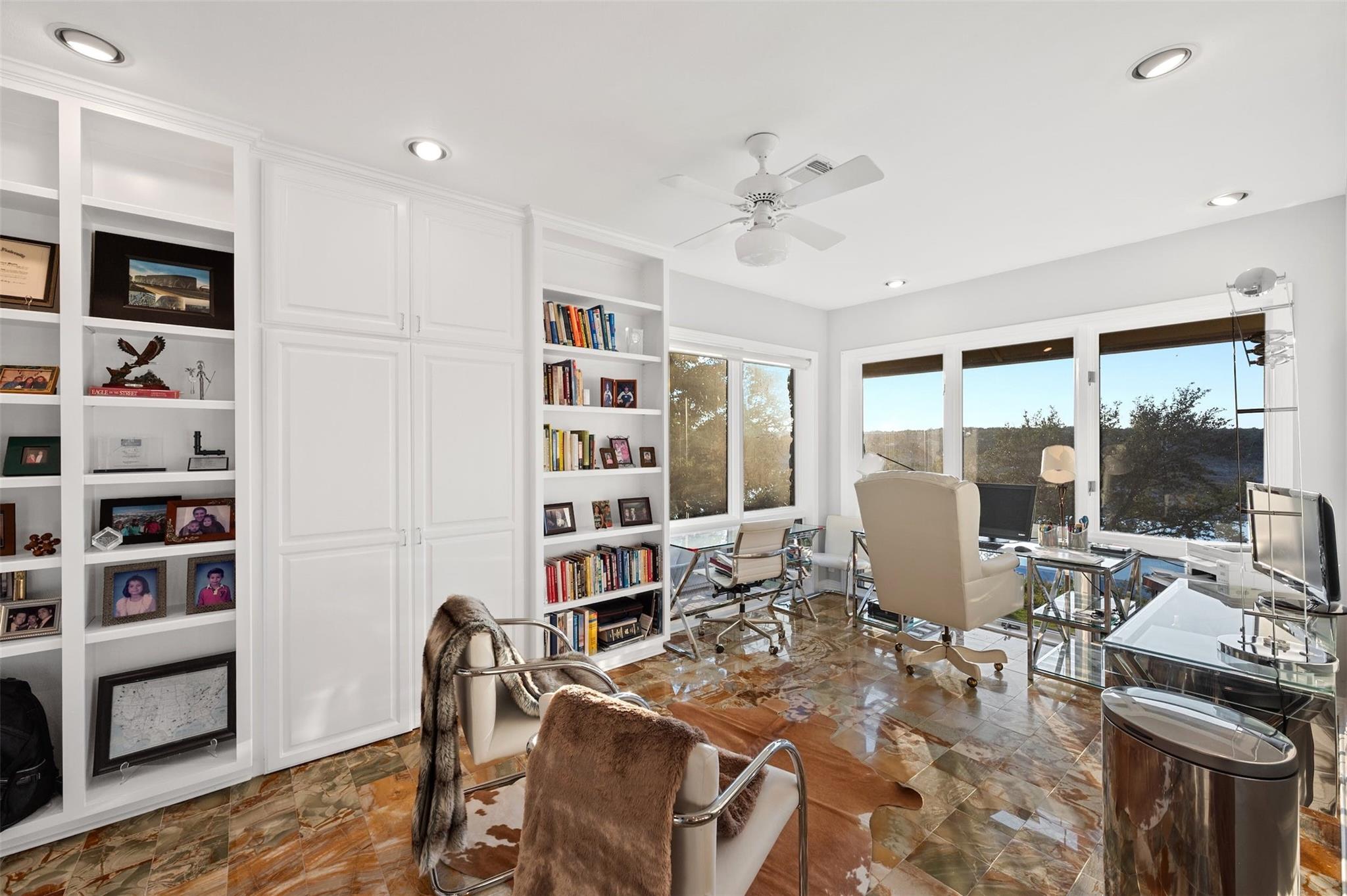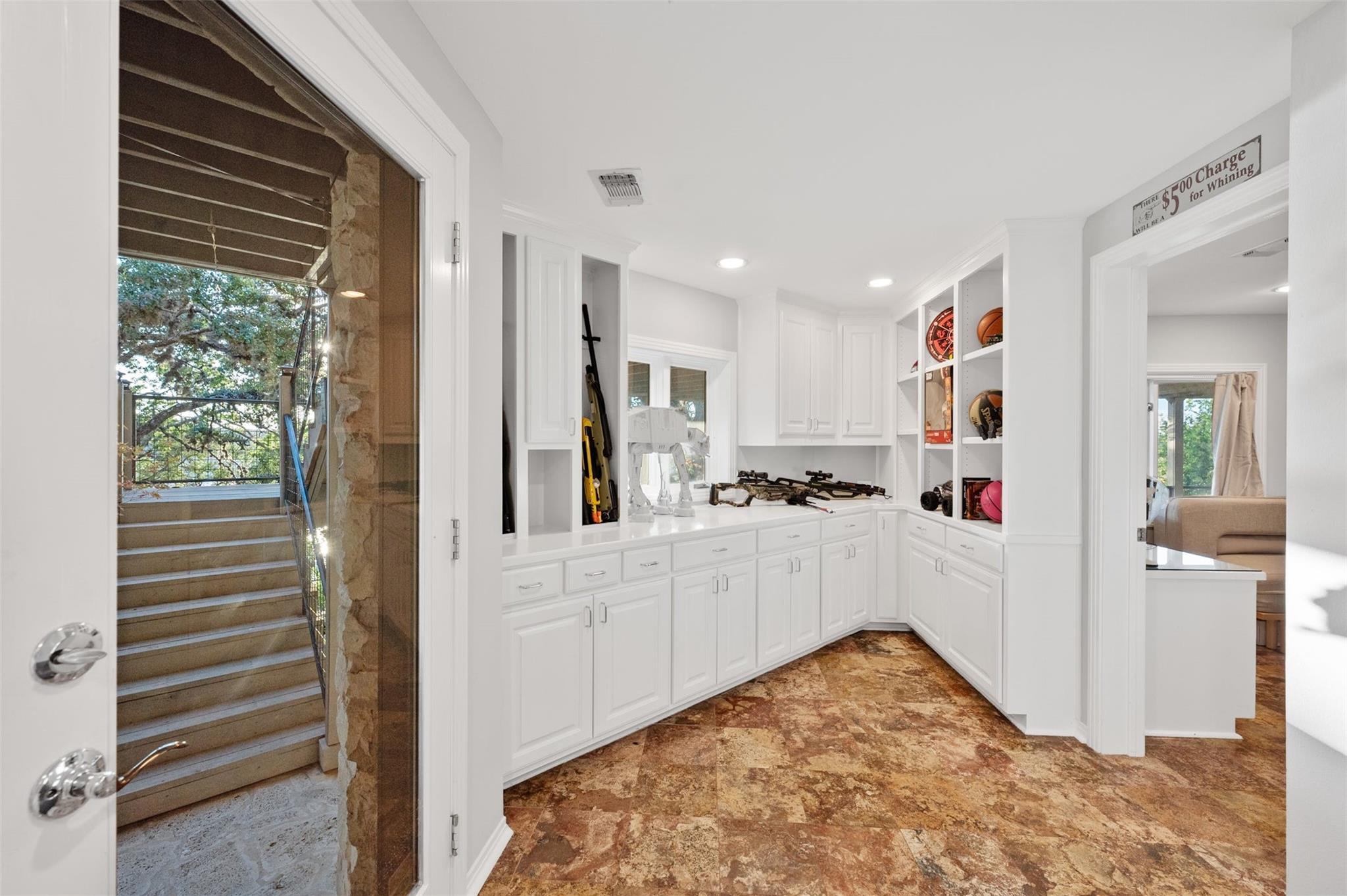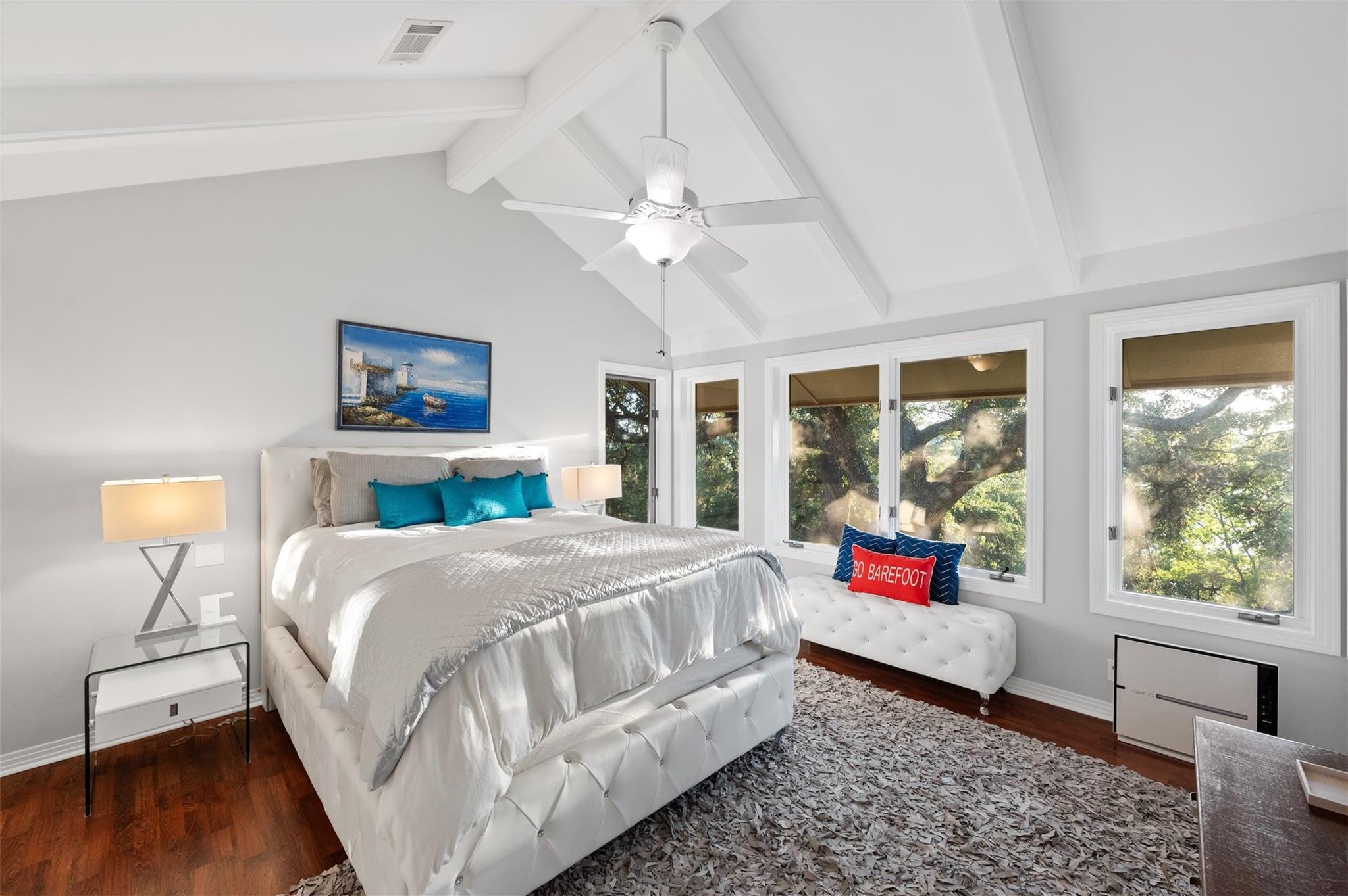 Spectacular Lakefront Oasis on Lake Travis! Situated on 2.23 acres along the Hurst Creek Arm in the well-established Buffalo Gap lakefront community. Consisting of three lots, this sale offers a rare opportunity for possible development. Gorgeous tree-filled property with a full lakefront sports court, shady front and backyards, scenic vistas, several outdoor living spaces, majestic landscaping, and a cascading waterfall. Positioned right on the water, this home comes with a private dock, 400 feet of frontage, and stairs to the water at all lake levels. Frontage is on the no wake, deep water cove, with a depth of 65’ during an average lake level of 681’. The existing home consists of the 2BD/2.5BA main house and a separate 1BD/1BA guest house. There is also a gated back entry with extensive parking, a two-car garage with two glass garage door bays, plus a workshop with two additional glass door bays overlooking the lake. The home features soaring vaulted & beamed ceilings, striking stone fireplaces in the living room and primary suite, sophisticated built-ins, plentiful storage, and a timeless gourmet kitchen with SS appliances. Incredible oversized primary suite with an ensuite bath, walk-in closets, and an attached lake-view office. Downstairs you will find a guest room, a large full bath, a wet room area, a storage room, and the workshop. The 1BD/1BA guest house comes with its own sweeping lake views and is close enough to the main house to be involved but separate enough to give guests a break when needed. Perfect for multi-generational living! This incredible lakefront estate showcases outdoor living at its finest with a deck that runs almost the length of the home overlooking the lake. Featuring lush grounds with enchanting gardens, ponds, a grand lawn, towering mature shade trees, and more. Excellent Lake Travis ISD Schools. Low Tax Rate (1.77). Convenient to both Austin and Lakeway. Come and make your lakefront living dreams a reality today!