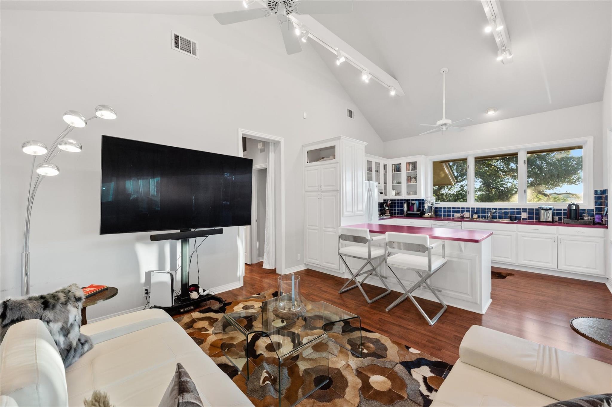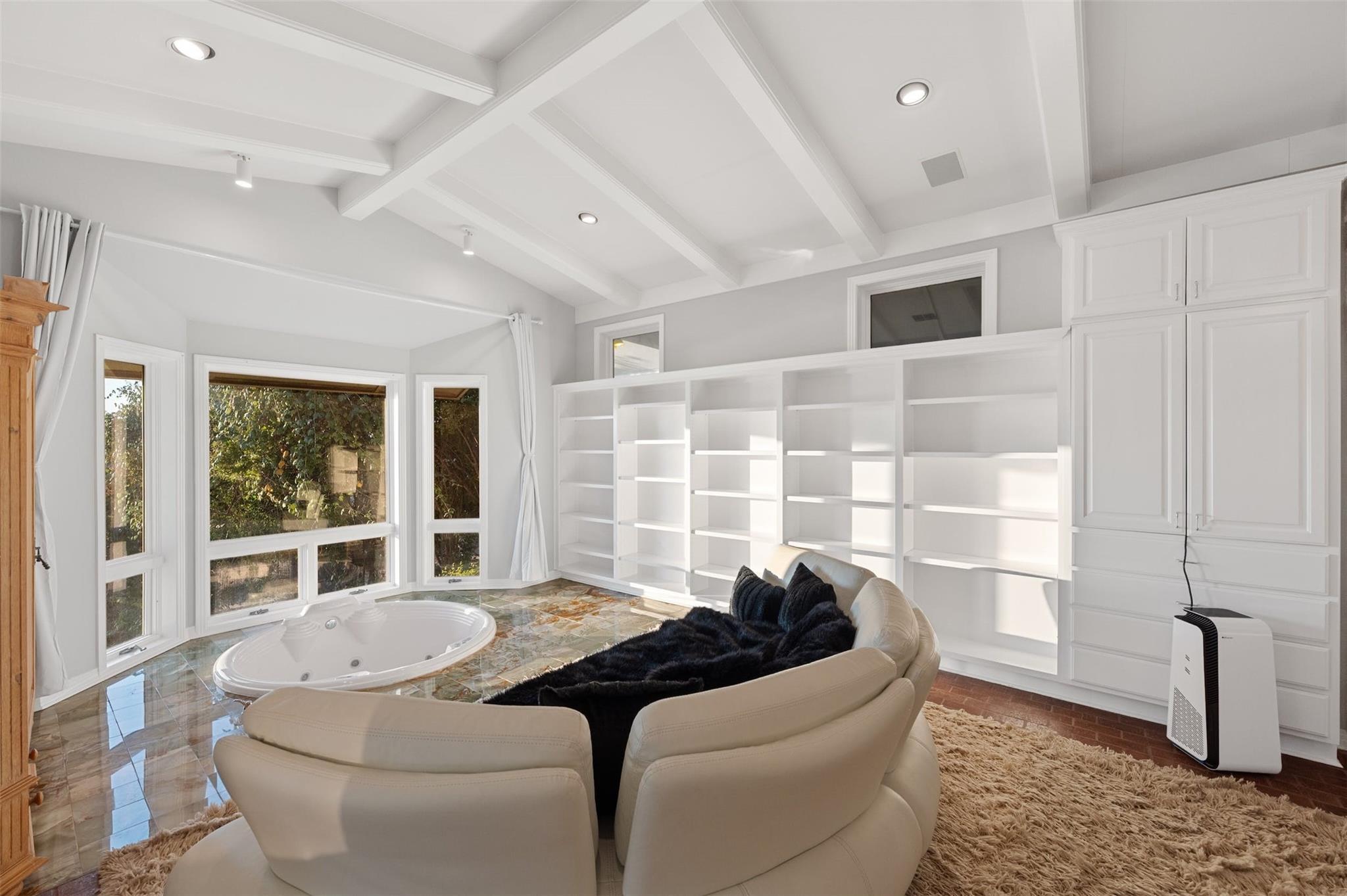 | Interior Features | Bookcases, Breakfast Bar, Built-in Features, Ceiling Fan(s), Beamed Ceilings, High Ceilings, Vaulted Ceiling(s), Electric Dryer Hookup, Eat-in Kitchen, Entrance Foyer, Interior Steps, Primary Bedroom on Main, Recessed Lighting, Soaking Tub, Storage, Walk-In Closet(s), Washer Hookup | |