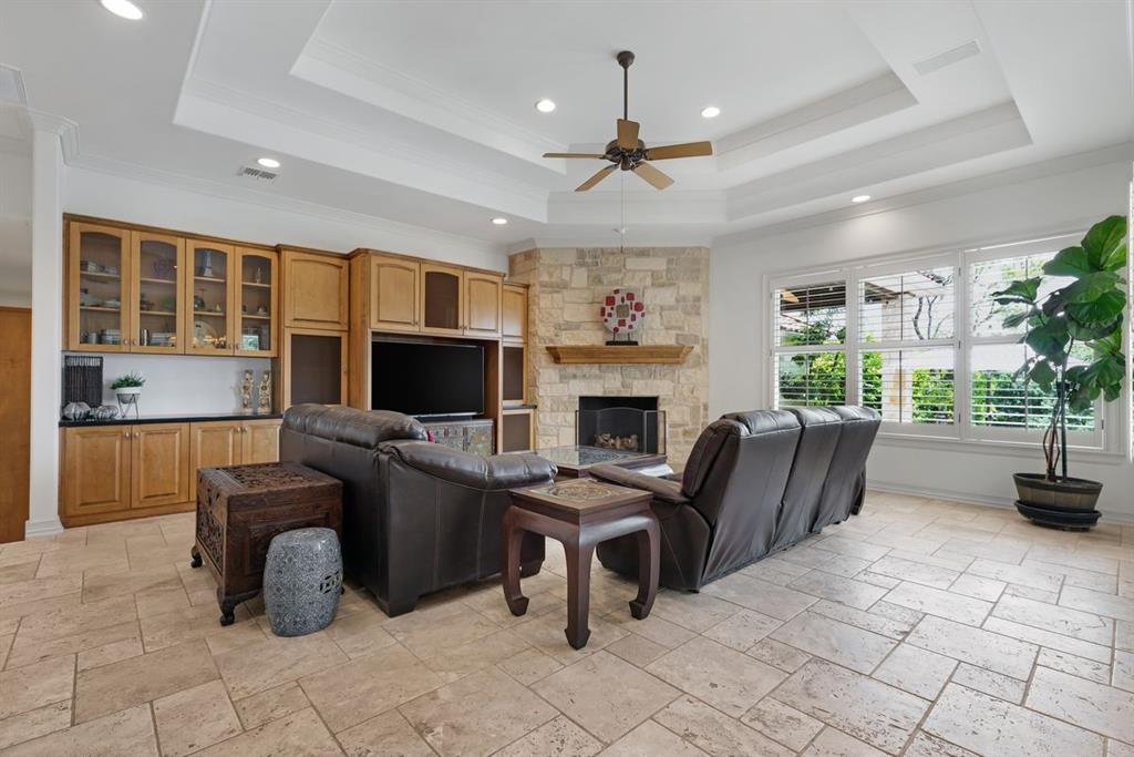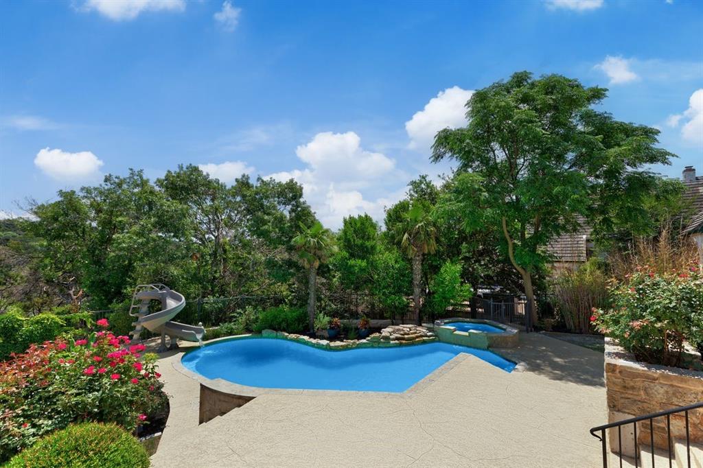 Situated in the picturesque community of Davenport Ranch this single story residence is nestled in nature and delights with its classic architecture. Located on over an acre of land in highly desired Westlake and the renowned school district of Eanes ISD, enjoy the quiet tree- lined streets and gracious views all while being just 20 minutes to downtown Austin. Step inside to discover a spacious and thoughtful floor plan that allows for seamless transitions from room to room, with a well appointed kitchen at the center of it all, encouraging culinary creativity. Whether you're hosting intimate gatherings or preparing meals for your loved ones, the seamless flow between the kitchen, dining area, and living room creates an inviting atmosphere for entertaining. Natural light floods the interior, accentuating the beauty of the surrounding landscape. A spacious primary suite is its own private retreat overlooking the verdant backyard offering a generous bathroom with an expansive double vanity, soaking tub, & European shower along with a large walk-in closet. The property also features an office with fireplace & built-in book shelves in addition to three bedrooms & multiple living and dinning spaces. The outdoors are an extension of the home's beauty, featuring a covered patio and deck where you can unwind and entertain soaking in the pool and greenbelt views, privacy abound. Boasting a seamless blend of comfort and style, this property is a true gem, immerse yourself in its serenity and elegance with breathtaking views.