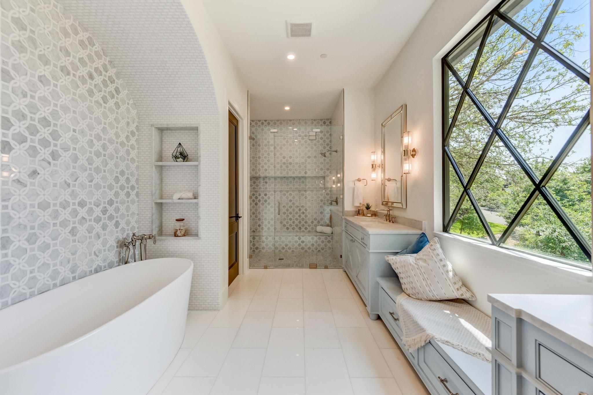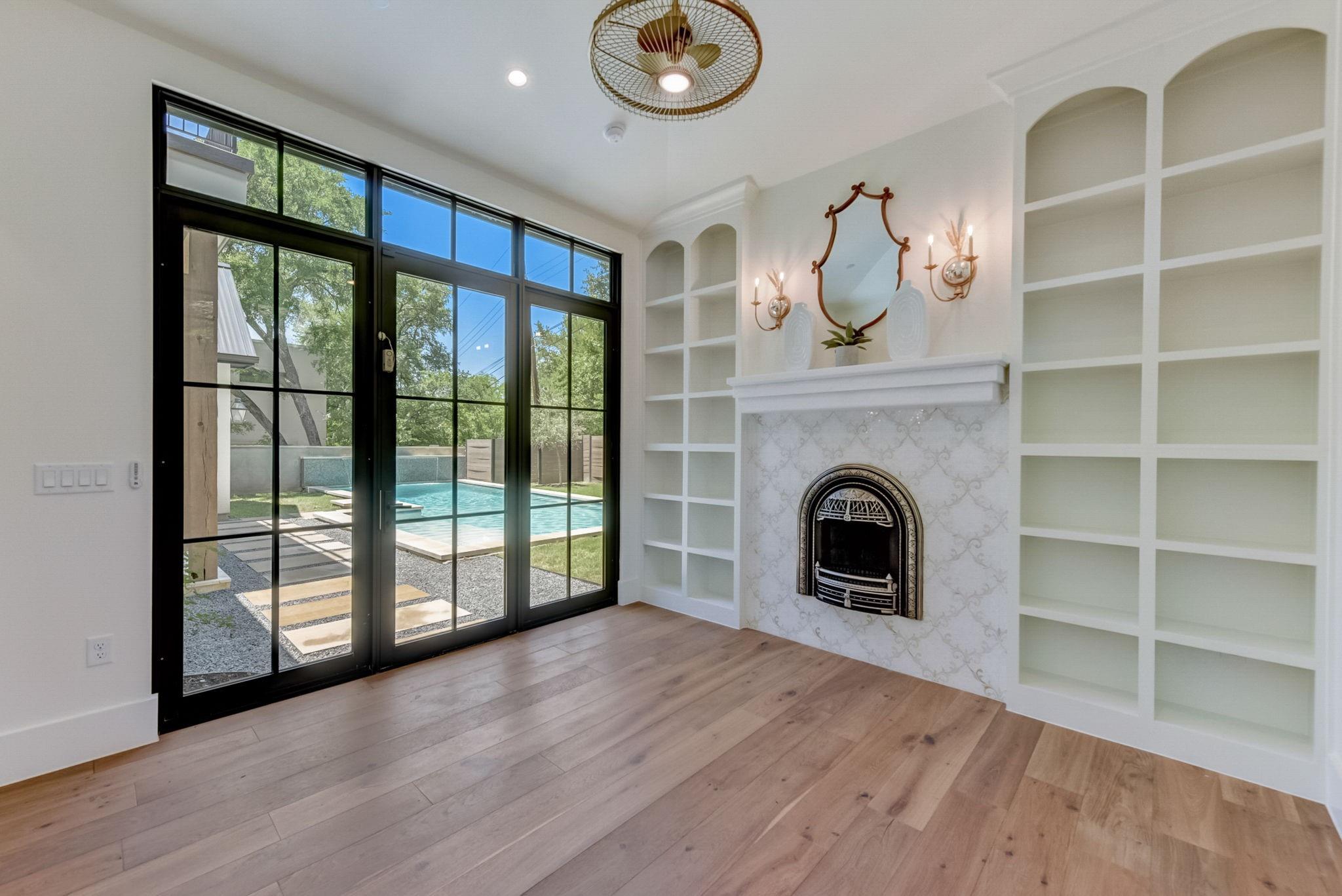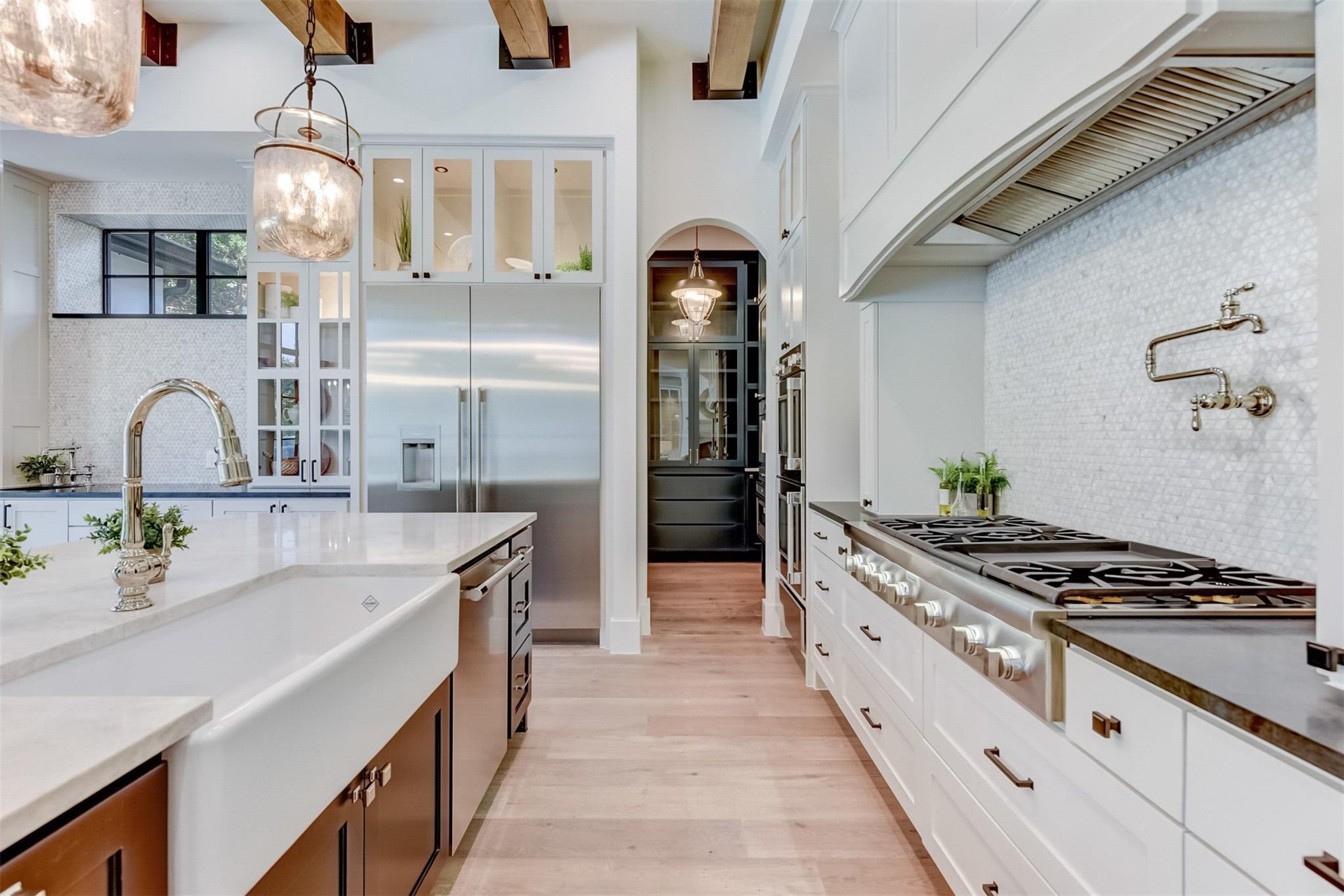 Nestled in the exclusive enclave of Barton Hills, this breathtaking 4-story mansion is the creation of esteemed Urban - ATX Home Builders and design maven, Heather Scott Home Design. It epitomizes a blend of sophisticated luxury and unparalleled craftsmanship, offering a perfect fusion of traditional and modern elements for a bespoke living experience. This estate boasts six expansive suites, each featuring its own lavish en-suite bathroom, spread across the levels with the master suite on the main floor offering vaulted ceilings with wooden beams, expansive windows for panoramic views, and a sumptuous master bath with a luxurious soaking tub and spacious walk-in shower. The entertainment-ready basement is equipped with a high-end bar, wine cellar, fitness room, and a versatile office, including a secret room hidden behind custom cabinetry for an exclusive escape. The gourmet kitchen caters to culinary aficionados with its double ovens, eight-burner gas cooktop, warming drawer, extensive walk-in pantry, dedicated espresso machine, and an inviting morning room. Outdoor living is redefined with a resort-style pool, vast greenspace, and a sizeable covered patio ideal for alfresco dining and upscale entertaining, enhanced by a convenient poolside half-bath. Flooded with natural light and featuring lofty ceilings, the home's open floor plan provides a welcoming atmosphere that balances elite luxury with a warm, inviting ambience, perfect for both intimate family life and extravagant entertaining. This meticulously designed estate seamlessly combines timeless elegance with state-of-the-art amenities to deliver an exceptional living experience for those seeking to own a prestigious and opulent home.ing experience. With its thoughtful layout and top-of-the-line finishes, this property caters to families seeking the epitome of luxury living.