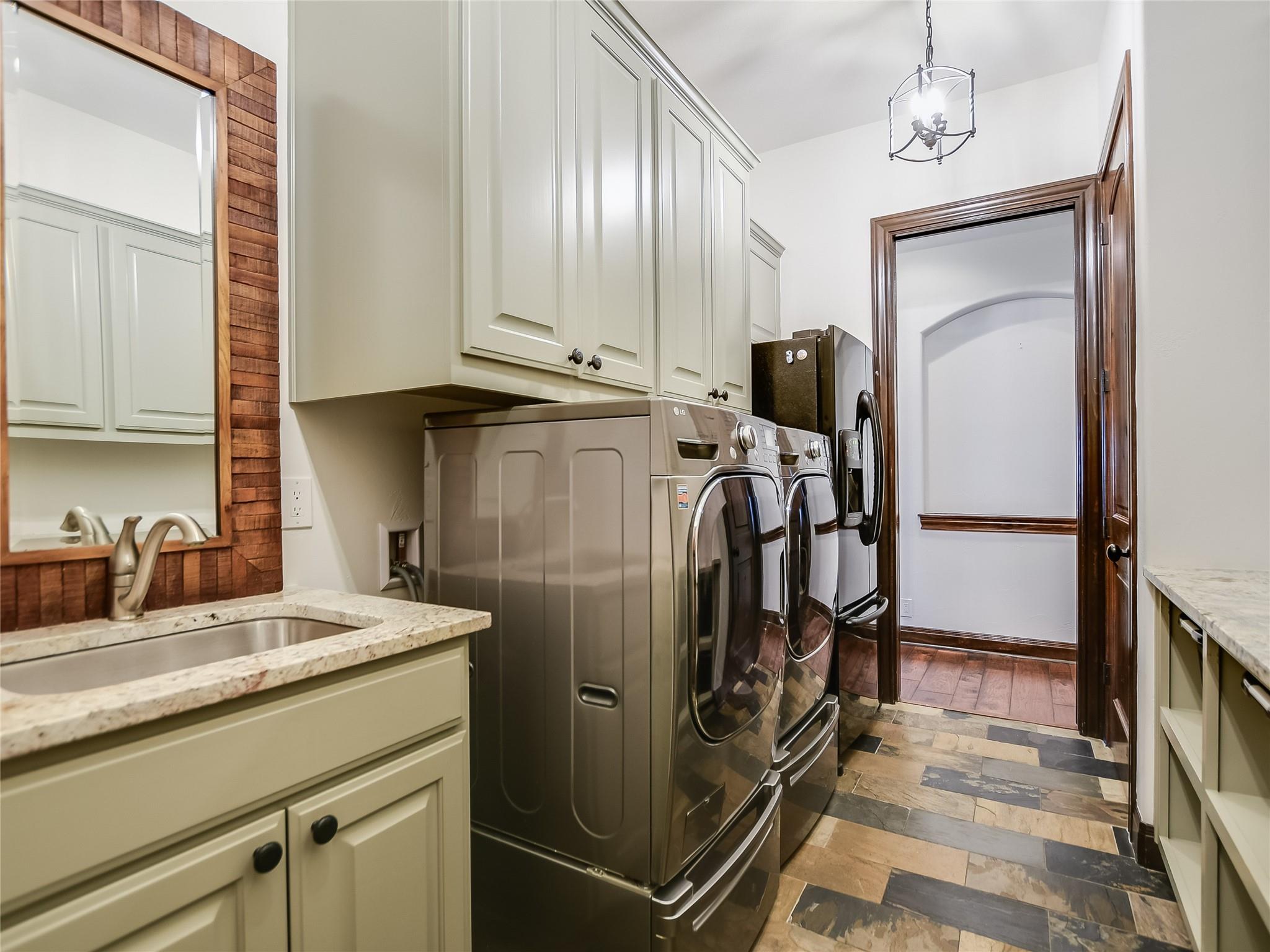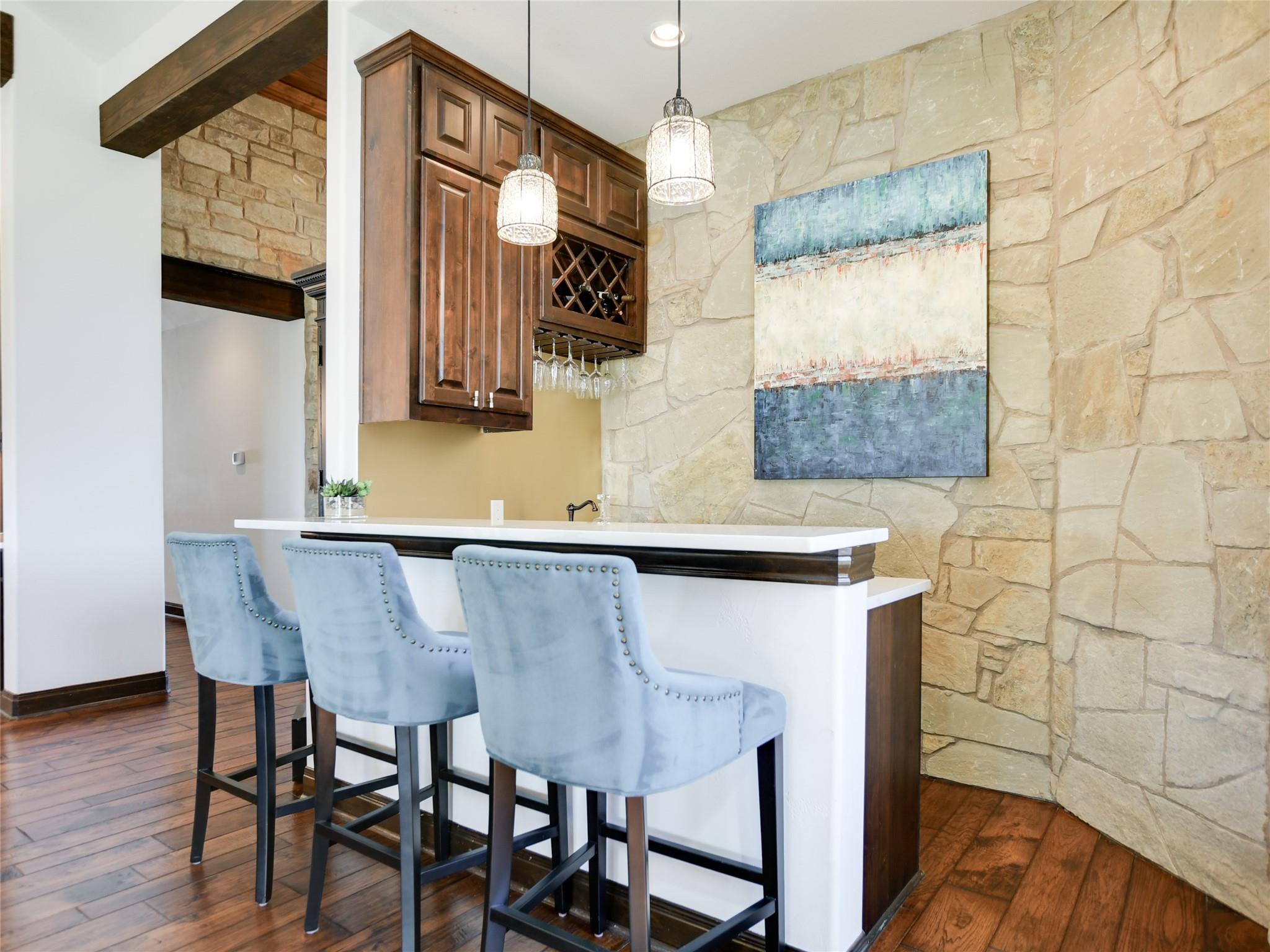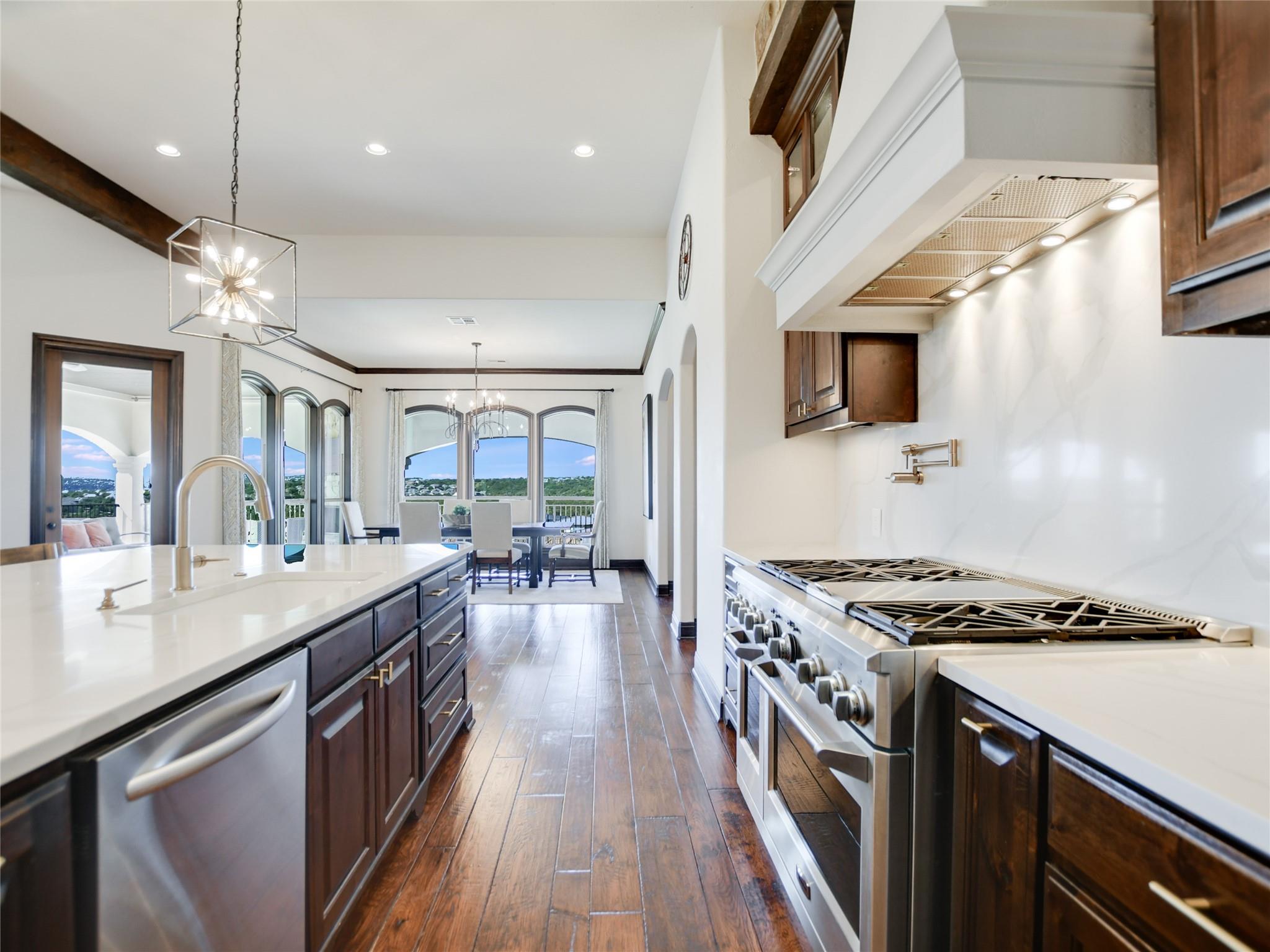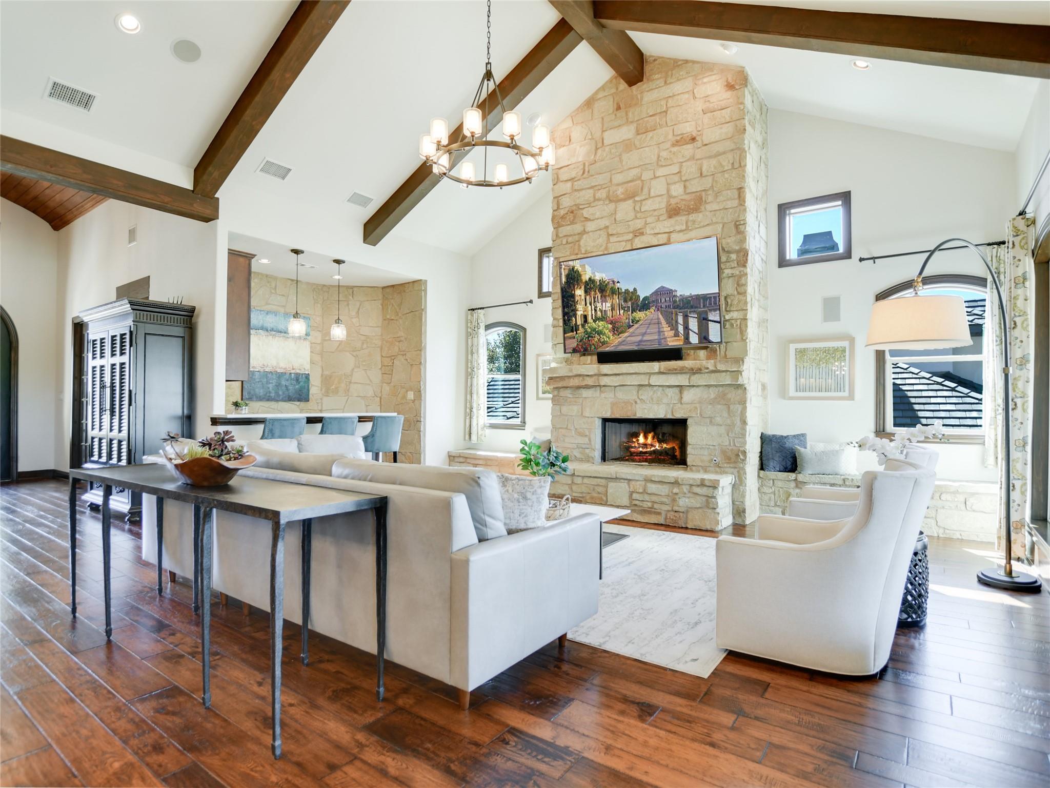 | Interior Features | Two Primary Baths, Breakfast Bar, Ceiling Fan(s), Beamed Ceilings, High Ceilings, Vaulted Ceiling(s), Chandelier, Quartz Counters, Double Vanity, Electric Dryer Hookup, Entrance Foyer, French Doors, Interior Steps, Kitchen Island, Multiple Dining Areas, Multiple Living Areas, Open Floorplan, Pantry, Primary Bedroom on Main, Recessed Lighting, Walk-In Closet(s), Washer Hookup, Wet Bar | |