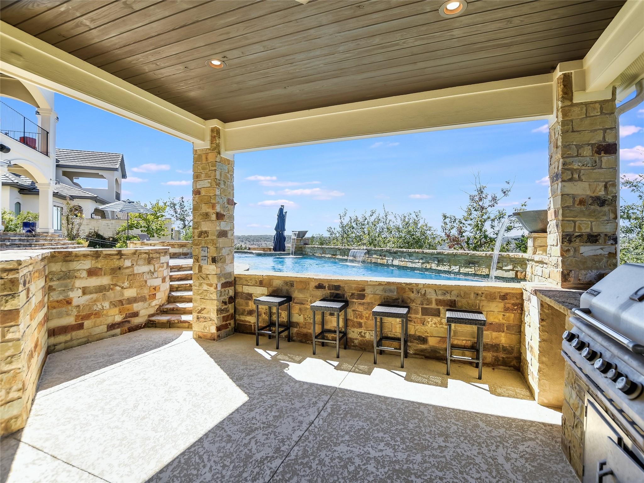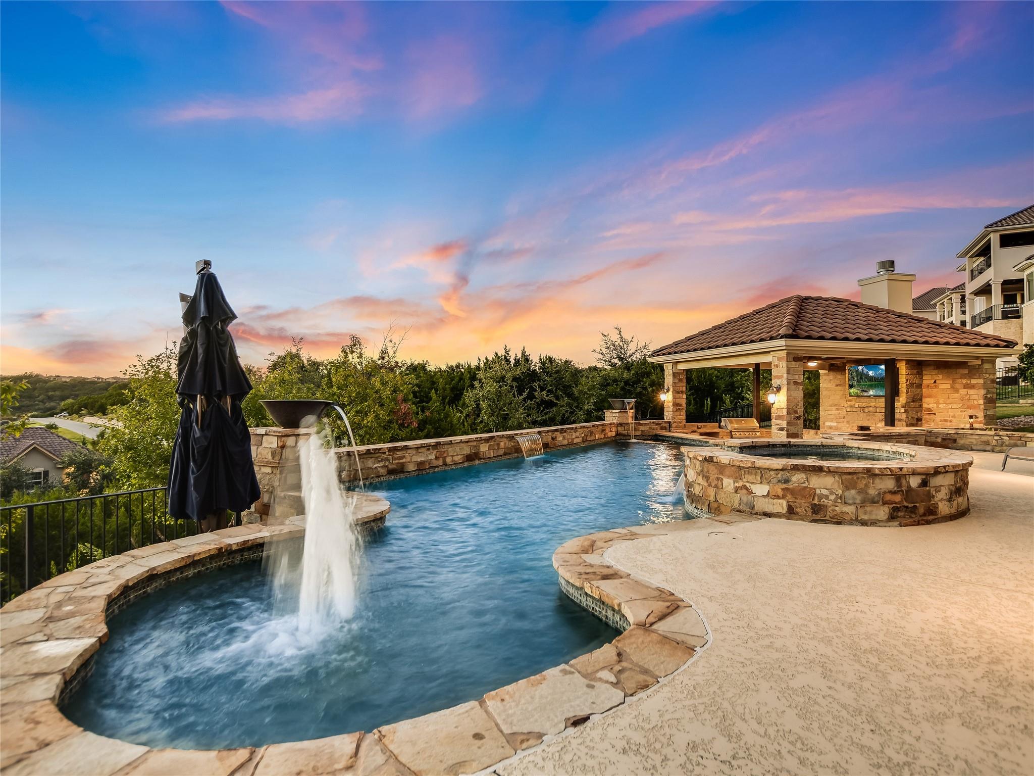 Welcome to 1504 University Club Drive, a stunning custom estate that offers unparalleled views of the Austin hill country and the glistening waters of Lake Austin. This luxurious property is now available for sale, presenting an incredible opportunity to own a truly exquisite home. The chef's kitchen is a culinary dream come true, featuring top-of-the-line GE Monogram appliances and a recently remodeled kitchen with MetroQuartz Calacatta countertops and “countersplashâ€. Whether you're hosting a large gathering or preparing a simple meal for yourself, this kitchen will exceed your expectations. Step into the living room and be greeted by the distinctive and beautiful unobstructed views that surround this property. Immerse yourself in the breathtaking scenery from every angle. The generous size of 5,074 sqft ensures that you'll have plenty of room to spread out and enjoy all that this residence has to offer including 5 bedrooms, 4 bathroom, 2 half-bathrooms, game room, theater, complete wet bar with ice maker, executive office, and a private study off the kitchen. But it's the large covered patio that truly steals the show! With its panoramic views of Austin's rolling hills and the peekaboo view of Lake Austin, you'll find yourself captivated by nature's beauty right from your own home. If relaxation is on your mind, look no further than the enticing pool area. Imagine yourself enjoying the lower level covered patio that has access to pool bathroom or lounging in pool/spa swimming under the water features. Need a refreshing drink? Just swim up to the bar and indulge in your favorite beverages. For those who love entertaining, the cabana with its summer kitchen and gas fireplace is an entertainer's dream come true. Located in desirable UT Golf Course community of Steiner Ranch, this home offers both privacy and convenience. You'll have easy access to shopping, restaurants, and downtown Austin making it an ideal location for those seeking a balanced lifestyle.