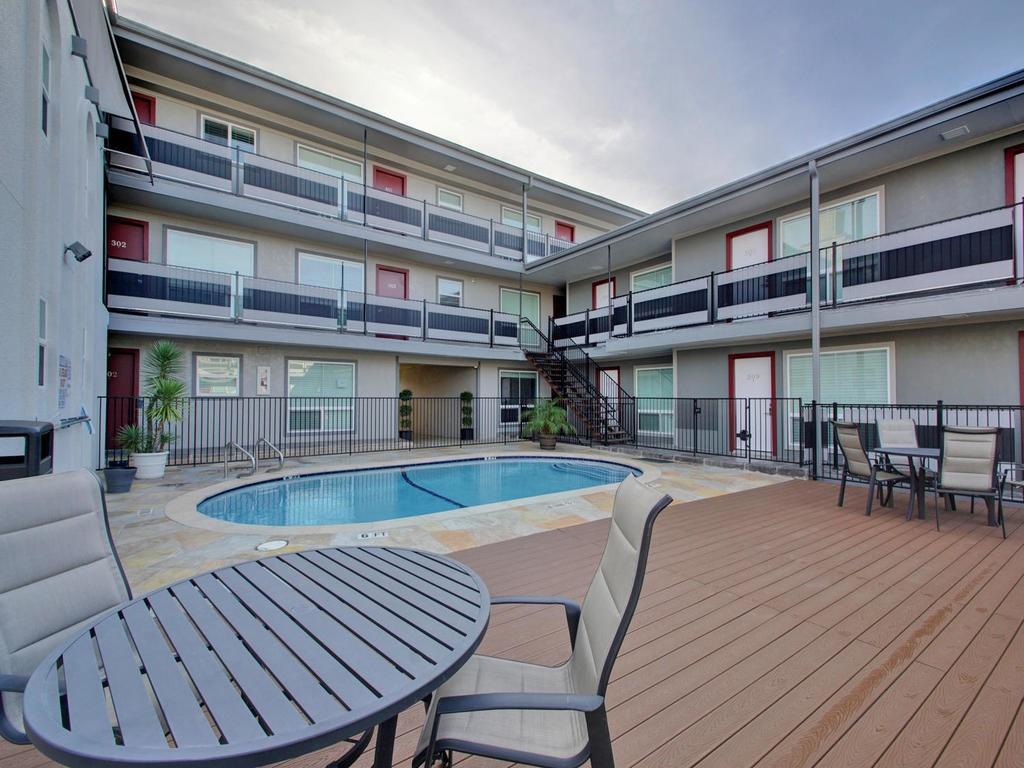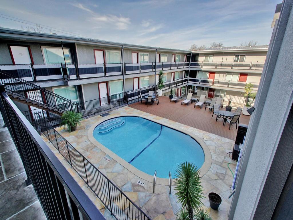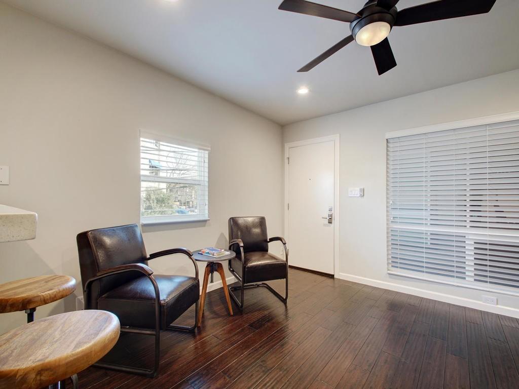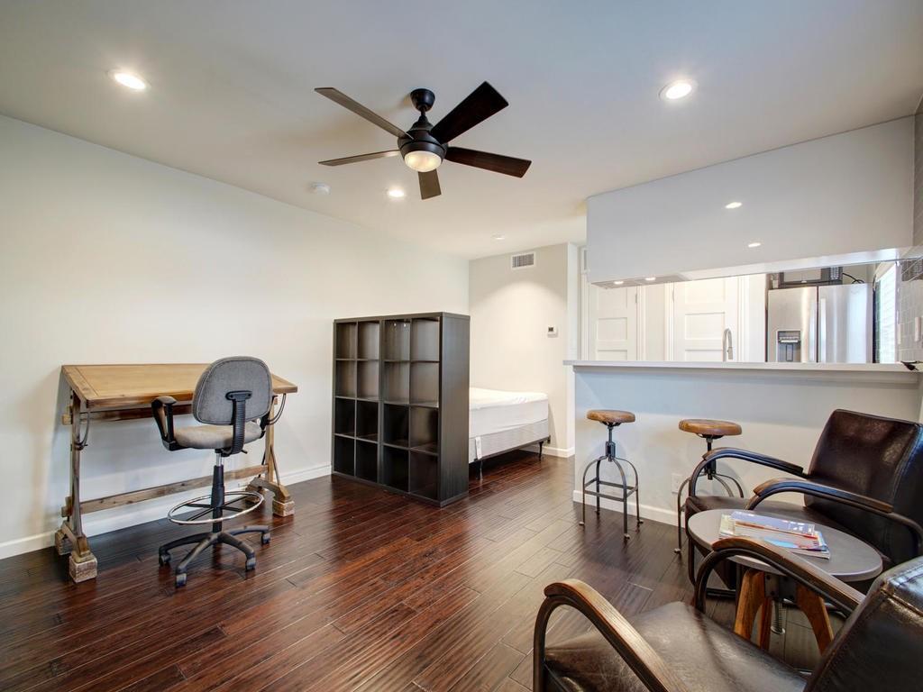 Welcome to this stunning corner-unit studio nestled within a gated community! Gorgeous kitchen boasts quartz counters and sleek stainless steel appliances. Generously sized walk-in closet and laundry area combined leads to the full bathroom with soaking tub. Washer, dryer and refrigerator are included for your convenience. Complex features a private swimming pool, and is located near UT School of Law, St. David's Medical Center, The University of Texas, and more. Dell Seton Medical center is less than 2 miles away. Reserved parking spot in the gated parking lot. On the Metro Bus Line.