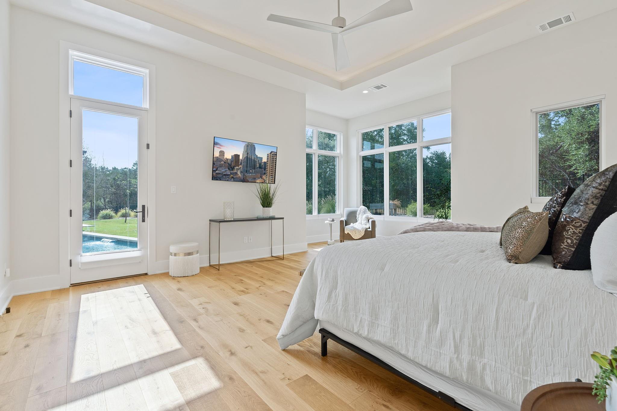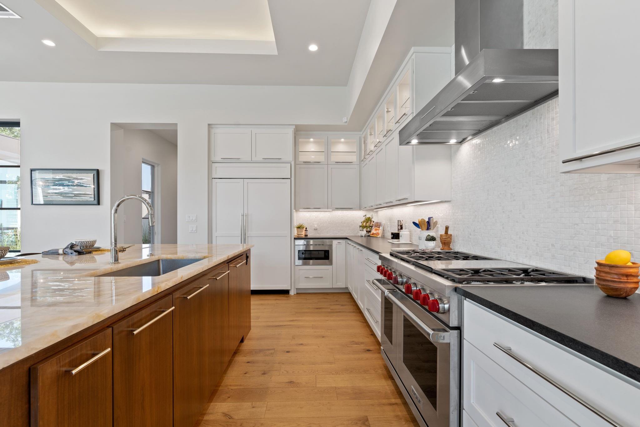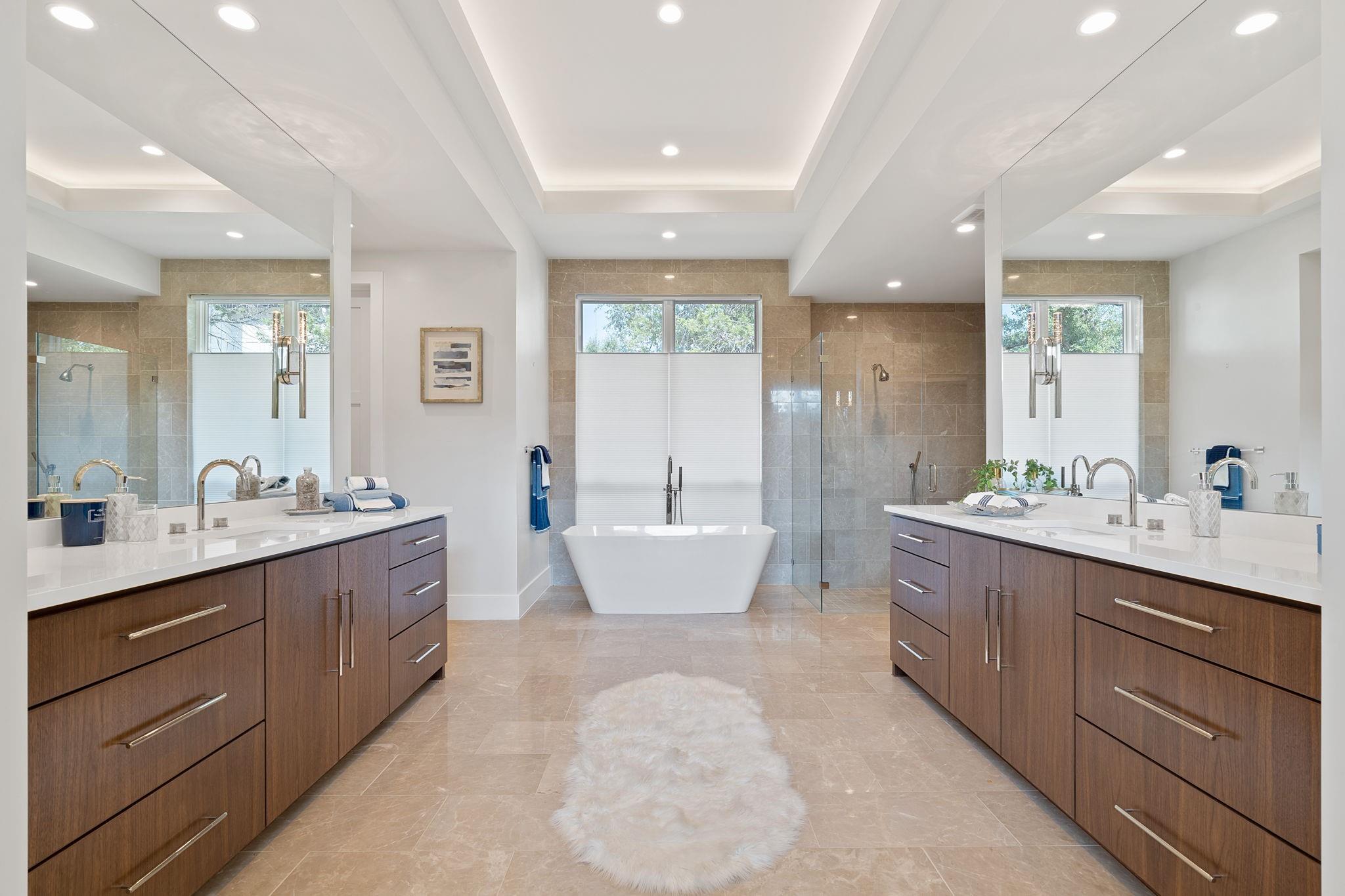 | Interior Features | Breakfast Bar, Ceiling Fan(s), High Ceilings, Tray Ceiling(s), Quartz Counters, Crown Molding, Double Vanity, Electric Dryer Hookup, Gas Dryer Hookup, High Speed Internet, In-Law Floorplan, Kitchen Island, Low Flow Plumbing Fixtures, Multiple Living Areas, No Interior Steps, Open Floorplan, Pantry, Primary Bedroom on Main, Recessed Lighting, Smart Home, Smart Thermostat, Soaking Tub, Two Primary Closets, Walk-In Closet(s), Washer Hookup, Wet Bar, Wired for Data, Wired for Sound | |