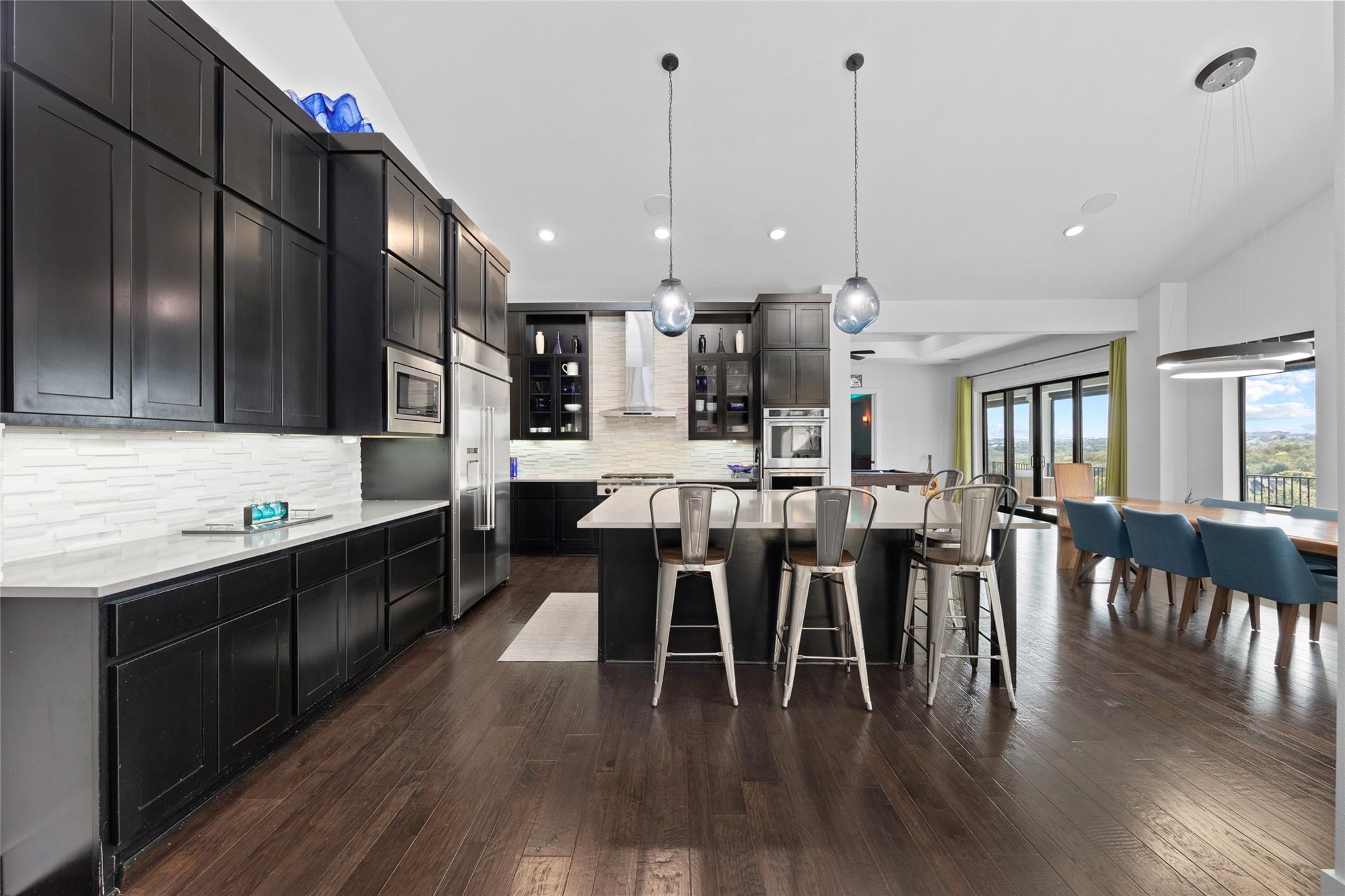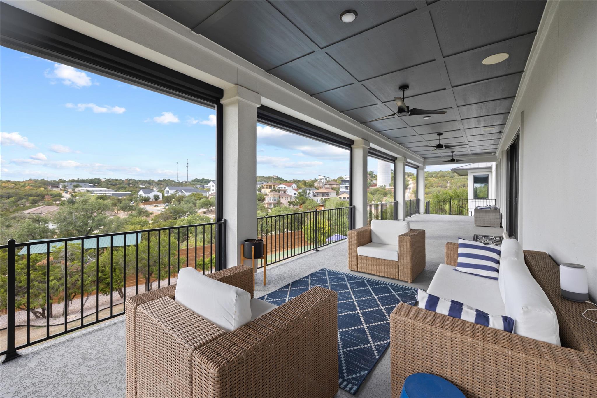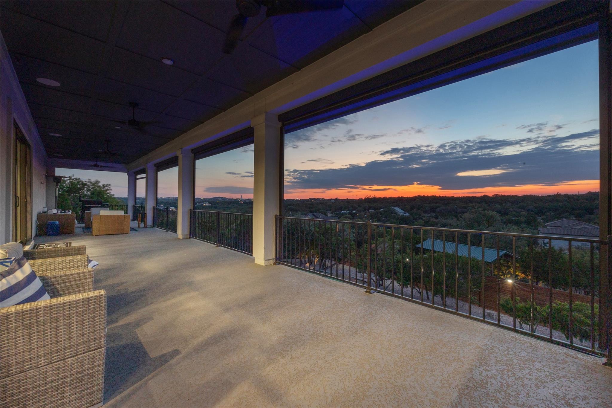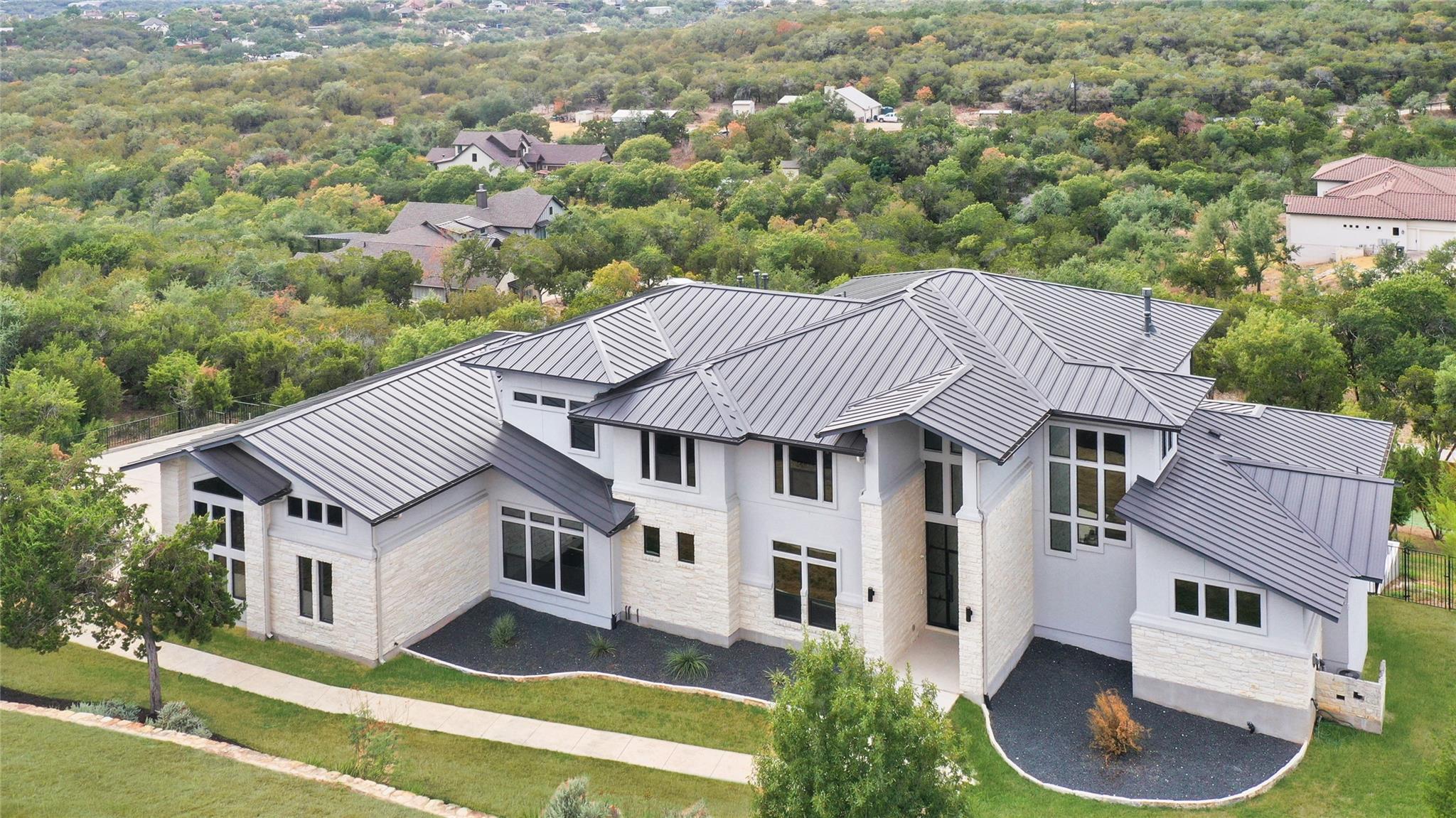 Exquisite Custom luxury home built by the award winning Partners In Building. Situated in a gated enclave w/ stunning hill country views. Take advantage of the LOW tax rate - lower than surrounding communities. Zoned for Lake Travis ISD. You will be captivated by the soaring vaulted ceilings & the expansive wall of windows that flood the home w/ natural light. The vast, open concept living room offers a gorgeous floor to ceiling stone fireplace & breathtaking hill country view that seamlessly flows into the gourmet kitchen complete w/ high-end SS appliances, cabinets galore, a Texas-size island, & dedicated dining space. Designed w/ entertainment in mind, this home features a game room & large theater room, located on the main level away from the bedroom, & leads to an enormous 60-FT long covered deck w/ ceiling fans, electric shade, & the ultimate backdrop for enjoying beautiful sunsets & the breathtaking views. The main level also features 1 bedroom w/ en-suite bath, perfect for guests & the primary suite that includes tray ceilings w/ LED lighting, & a luxury en-suite bath w/ a large frameless shower, stand alone tub, dual vanities, & a generous walk-in closet. The office is a dream come true w/ commercial-grade windows & a door that provides stunning views of a car collector's dream garage. This exceptional property boasts a 4-car garage, prewired & designed to accommodate (4) extra long & tall auto lifts for car enthusiasts looking to expand their collection. Additionally, the spacious driveway provides plenty of parking for guests. Upstairs find a vast study nook, 2 bedrooms that share a full bath, & 3rd bedroom w/ a private bath. Step outside & be mesmerized by the large 1-acre lot, complete w/ a stunning 50’x18’ custom pool/spa & outdoor shower creating a resort-like oasis. The rear & side yard are fenced & include raised garden beds. At almost 5300 square feet of living space, full smart home automation & high-end audio throughout this home is a true dream!