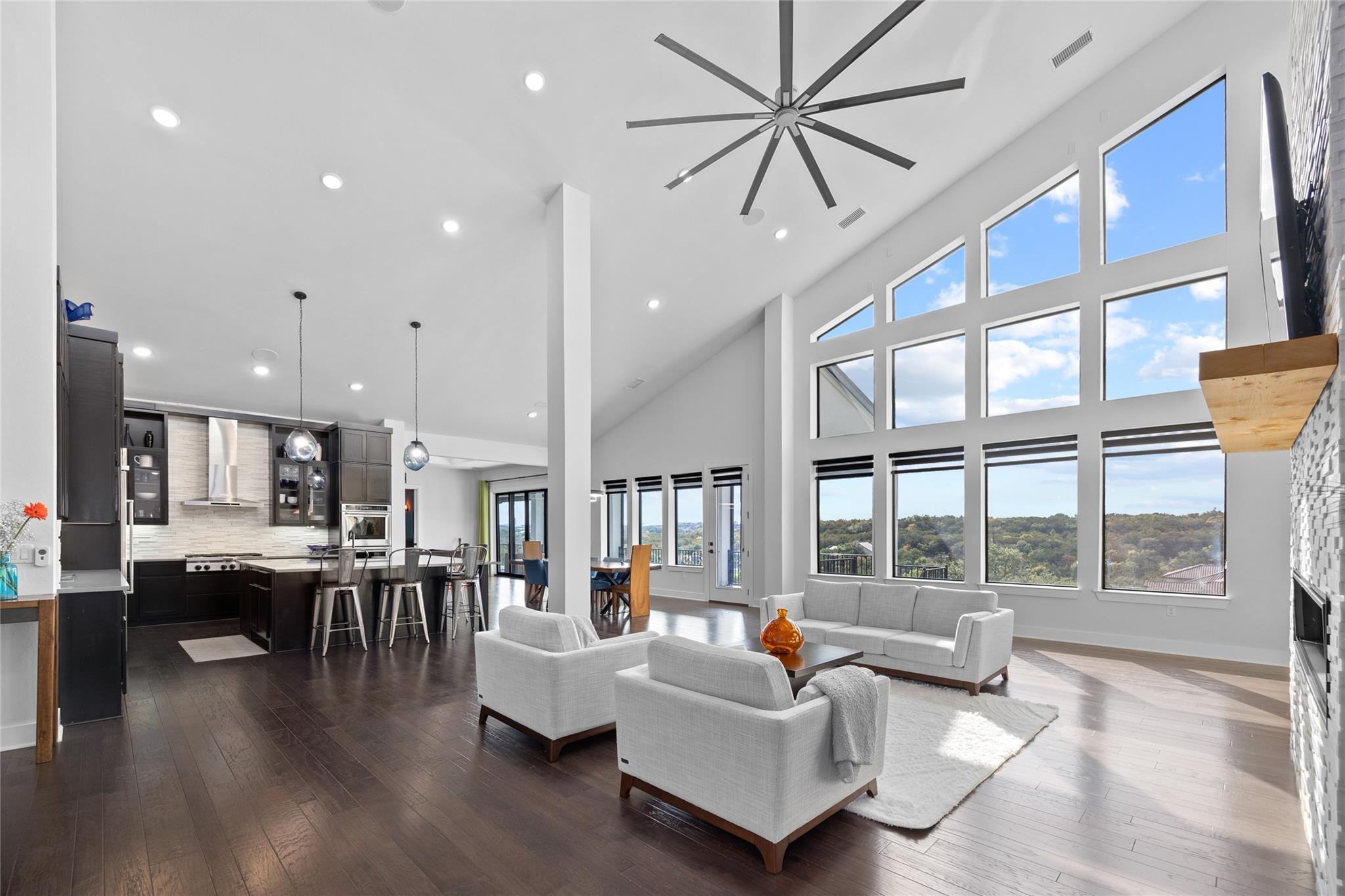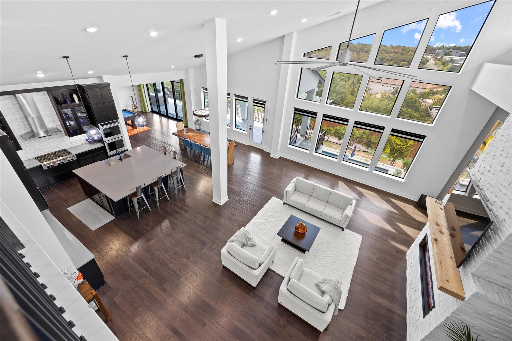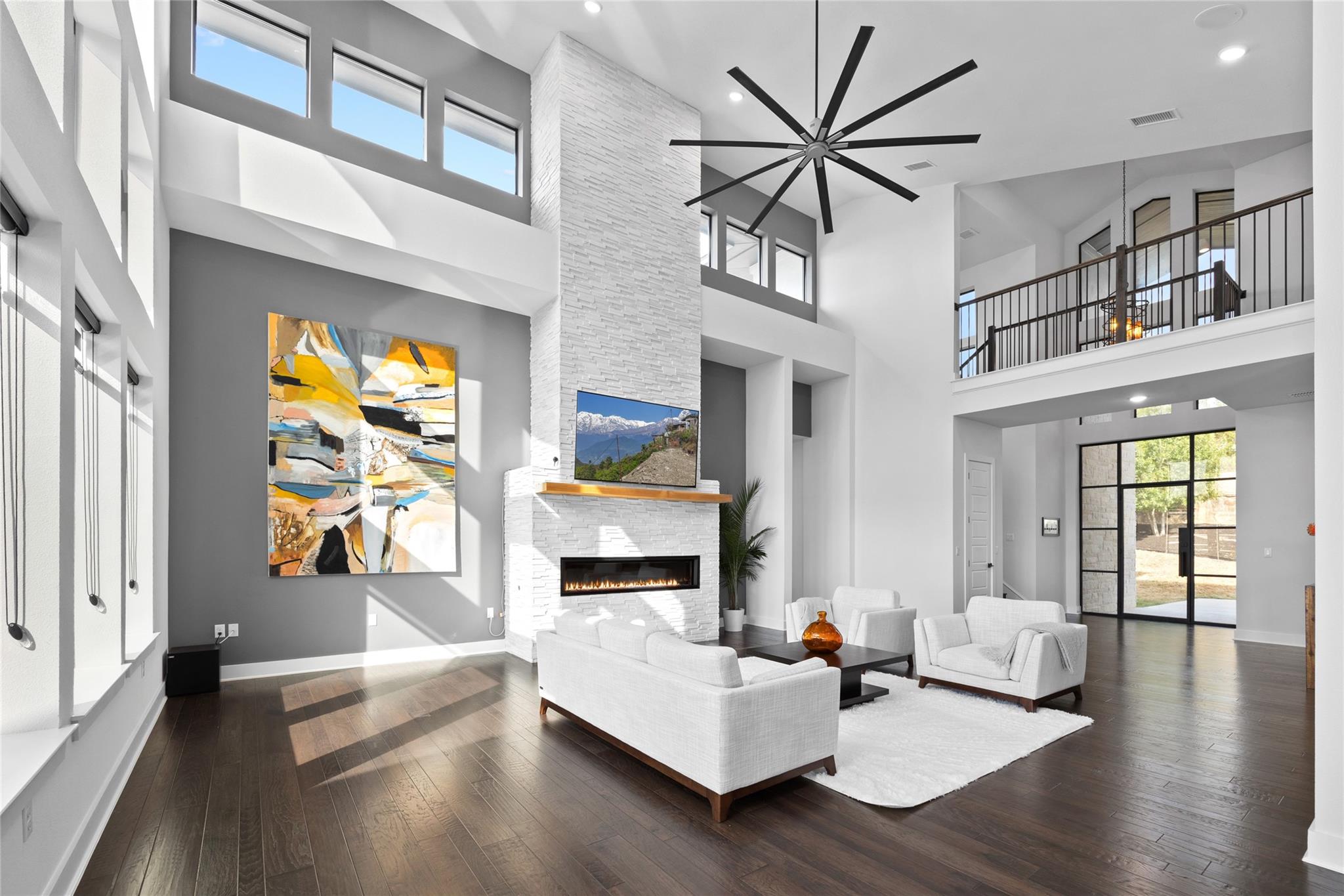 Exquisite Custom luxury home built by the award winning Partners In Building. Situated in a gated enclave w/ stunning hill country views. Take advantage of the LOW tax rate - lower than surrounding communities. Zoned for Lake Travis ISD. You will be captivated by the soaring vaulted ceilings & the expansive wall of windows that flood the home w/ natural light. The vast, open concept living room offers a gorgeous floor to ceiling stone fireplace & breathtaking hill country view that seamlessly flows into the gourmet kitchen complete w/ high-end SS appliances, cabinets galore, a Texas-size island, & dedicated dining space. Designed w/ entertainment in mind, this home features a game room & large theater room, located on the main level away from the bedroom, & leads to an enormous 60-FT long covered deck w/ ceiling fans, electric shade, & the ultimate backdrop for enjoying beautiful sunsets & the breathtaking views. The main level also features 1 bedroom w/ en-suite bath, perfect for guests & the primary suite that includes tray ceilings w/ LED lighting, & a luxury en-suite bath w/ a large frameless shower, stand alone tub, dual vanities, & a generous walk-in closet. The office is a dream come true w/ commercial-grade windows & a door that provides stunning views of a car collector's dream garage. This exceptional property boasts a 4-car garage, prewired & designed to accommodate (4) extra long & tall auto lifts for car enthusiasts looking to expand their collection. Additionally, the spacious driveway provides plenty of parking for guests. Upstairs find a vast study nook, 2 bedrooms that share a full bath, & 3rd bedroom w/ a private bath. Step outside & be mesmerized by the large 1-acre lot, complete w/ a stunning 50’x18’ custom pool/spa & outdoor shower creating a resort-like oasis. The rear & side yard are fenced & include raised garden beds. At almost 5300 square feet of living space, full smart home automation & high-end audio throughout this home is a true dream!