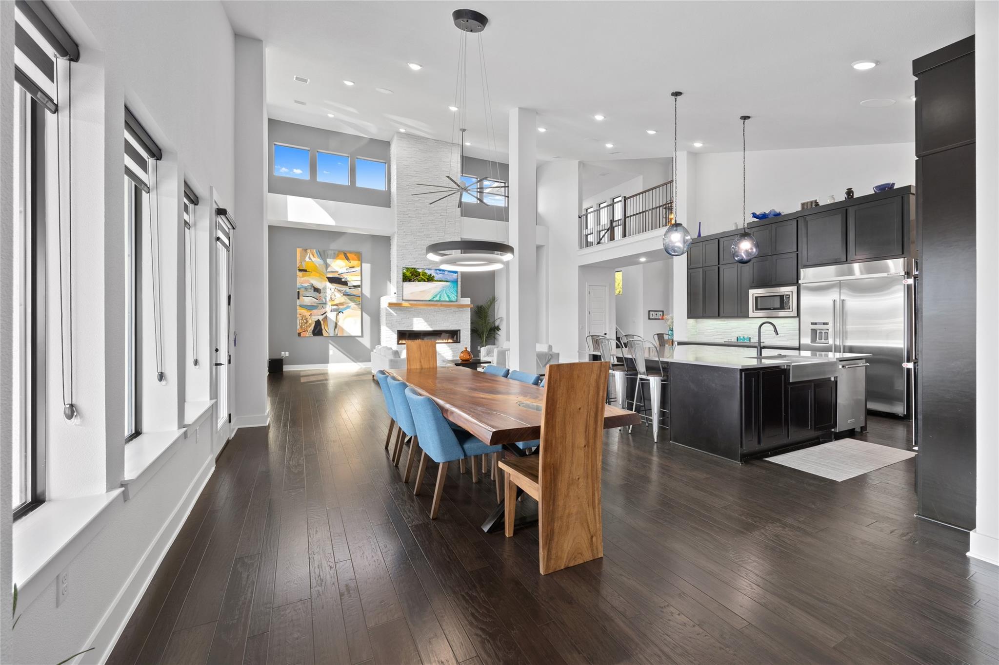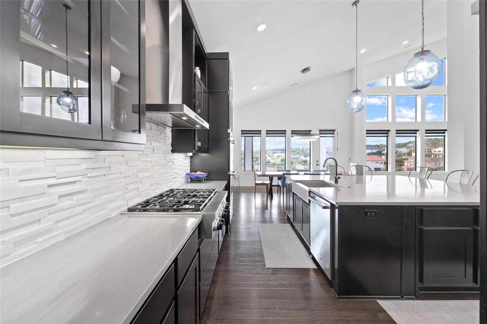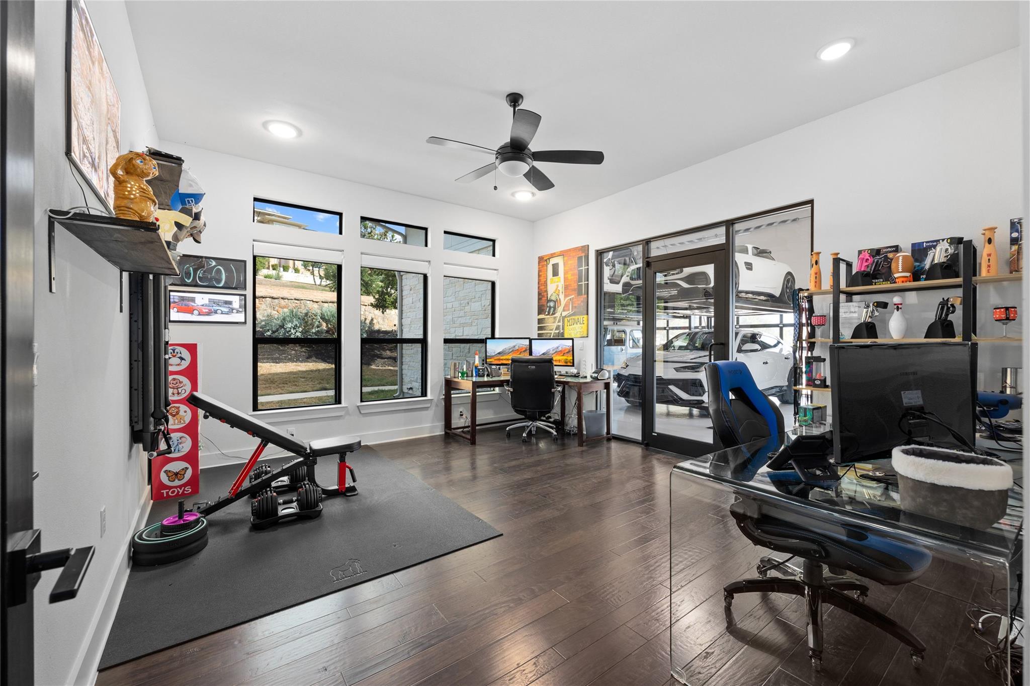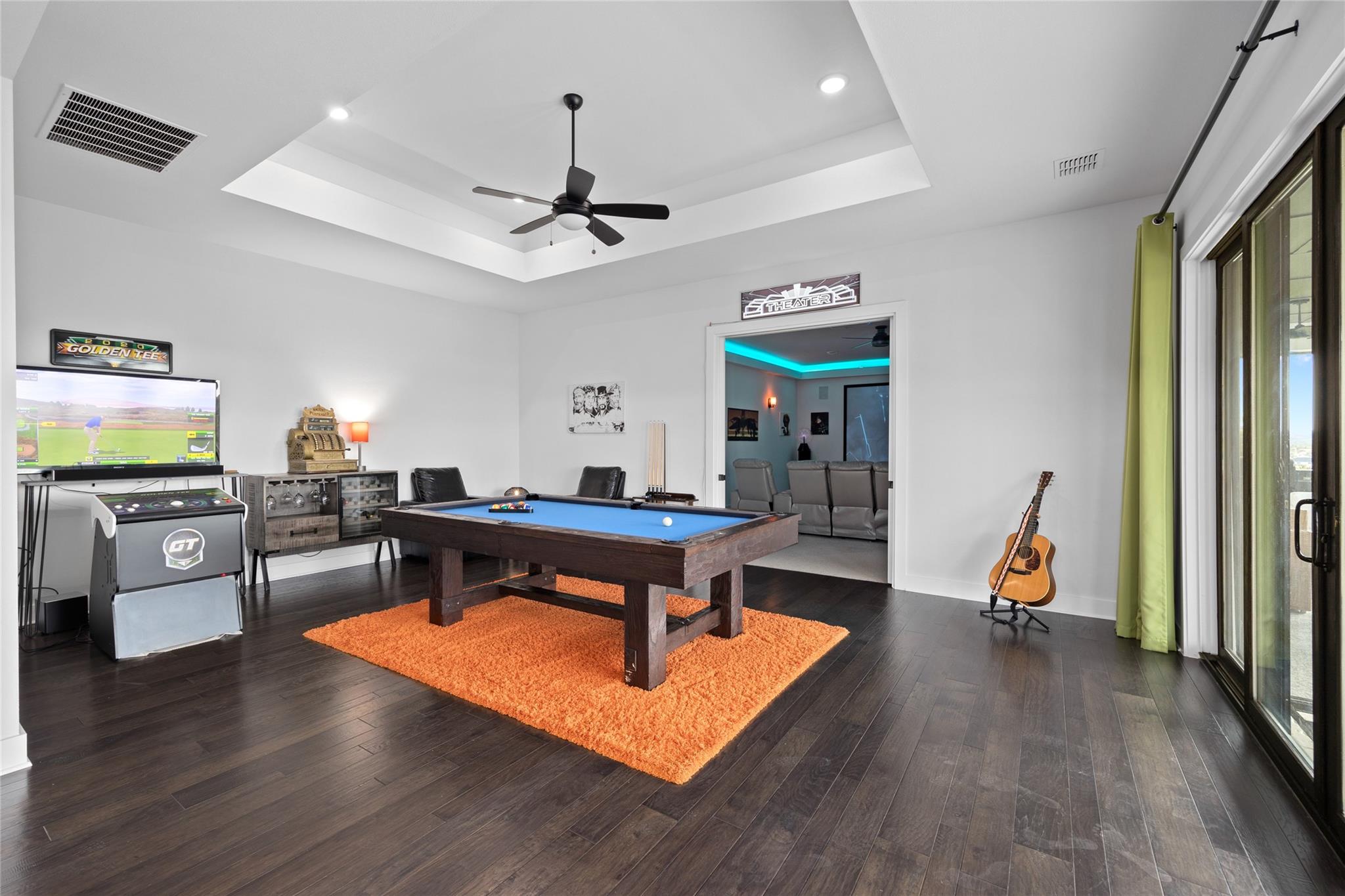 Exquisite Custom luxury home built by the award winning Partners In Building. Situated in a gated enclave w/ stunning hill country views. Take advantage of the LOW tax rate - lower than surrounding communities. Zoned for Lake Travis ISD. You will be captivated by the soaring vaulted ceilings & the expansive wall of windows that flood the home w/ natural light. The vast, open concept living room offers a gorgeous floor to ceiling stone fireplace & breathtaking hill country view that seamlessly flows into the gourmet kitchen complete w/ high-end SS appliances, cabinets galore, a Texas-size island, & dedicated dining space. Designed w/ entertainment in mind, this home features a game room & large theater room, located on the main level away from the bedroom, & leads to an enormous 60-FT long covered deck w/ ceiling fans, electric shade, & the ultimate backdrop for enjoying beautiful sunsets & the breathtaking views. The main level also features 1 bedroom w/ en-suite bath, perfect for guests & the primary suite that includes tray ceilings w/ LED lighting, & a luxury en-suite bath w/ a large frameless shower, stand alone tub, dual vanities, & a generous walk-in closet. The office is a dream come true w/ commercial-grade windows & a door that provides stunning views of a car collector's dream garage. This exceptional property boasts a 4-car garage, prewired & designed to accommodate (4) extra long & tall auto lifts for car enthusiasts looking to expand their collection. Additionally, the spacious driveway provides plenty of parking for guests. Upstairs find a vast study nook, 2 bedrooms that share a full bath, & 3rd bedroom w/ a private bath. Step outside & be mesmerized by the large 1-acre lot, complete w/ a stunning 50’x18’ custom pool/spa & outdoor shower creating a resort-like oasis. The rear & side yard are fenced & include raised garden beds. At almost 5300 square feet of living space, full smart home automation & high-end audio throughout this home is a true dream!