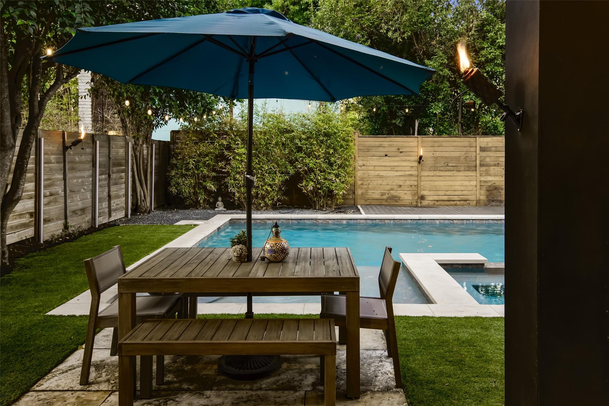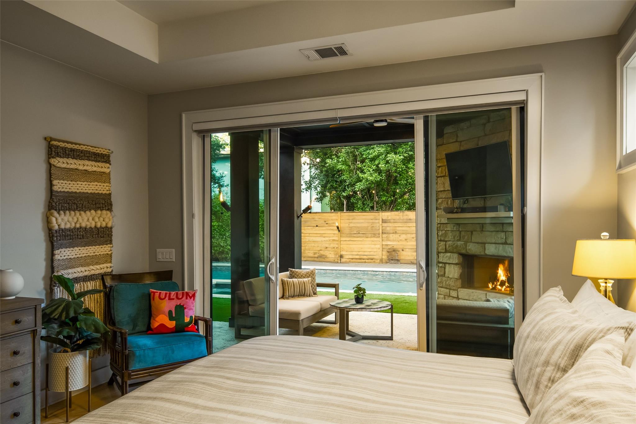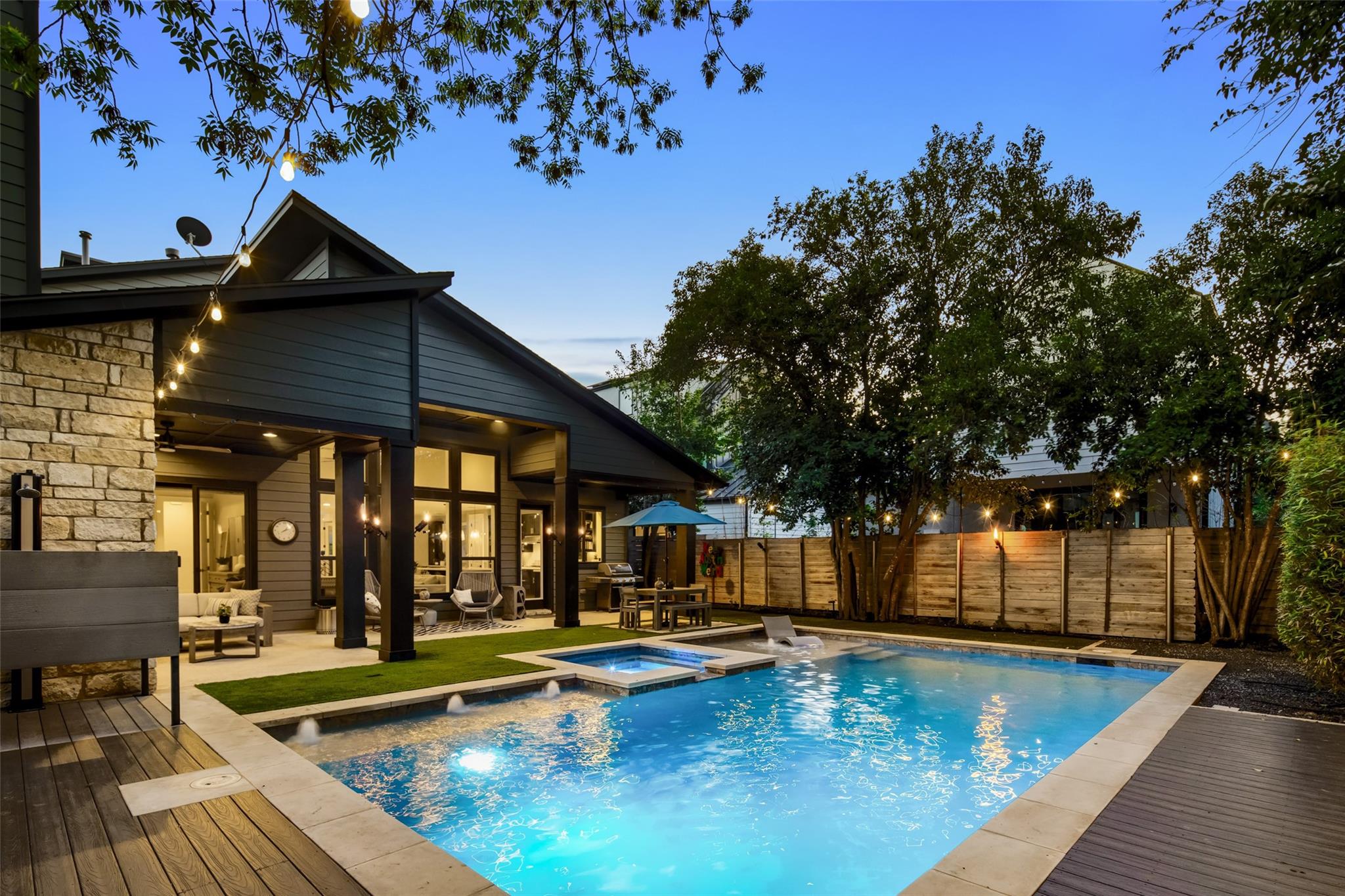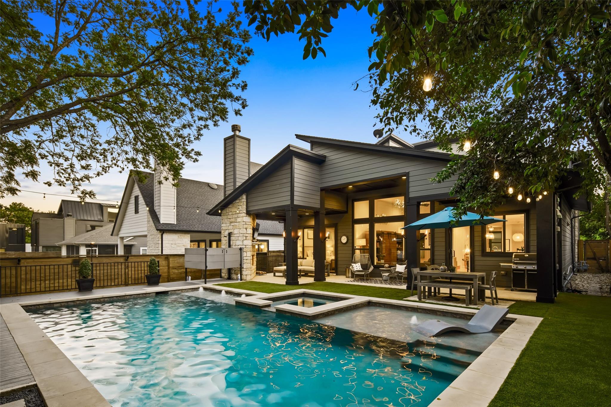 Welcome to your dream oasis in the heart of Austin's coveted Zilker neighborhood! This stunning residence offers unparalleled convenience, just steps away from Zilker Park, Barton Springs, and the vibrant dining and entertainment scene of downtown Austin. The primary suite is a sanctuary, boasting an en suite bathroom, walk-in closet, and direct access to the inviting pool and backyard retreat. Natural light floods the front office on the main level along with the modern open-concept living, dining, and kitchen areas, providing the perfect backdrop for hosting gatherings. Upstairs, two secondary bedrooms, each with en suite bathroom, offer privacy for your family and visitors along with a versatile flex space ideal for a game room or TV lounge. Outside, the backyard is an entertainer's paradise complete with a full-size pool and spa, covered porch and cooling misters, fireplace, tiki torches, a private outdoor shower, and non-toxic mosquito misters ensuring comfort year-round. The fully landscaped front and back yards features no-maintenance, high-performance turf, established plantings, and a bubbling water fountain at the front entrance. Don't miss this opportunity to experience luxury living at its finest in Austin's most desirable neighborhood!