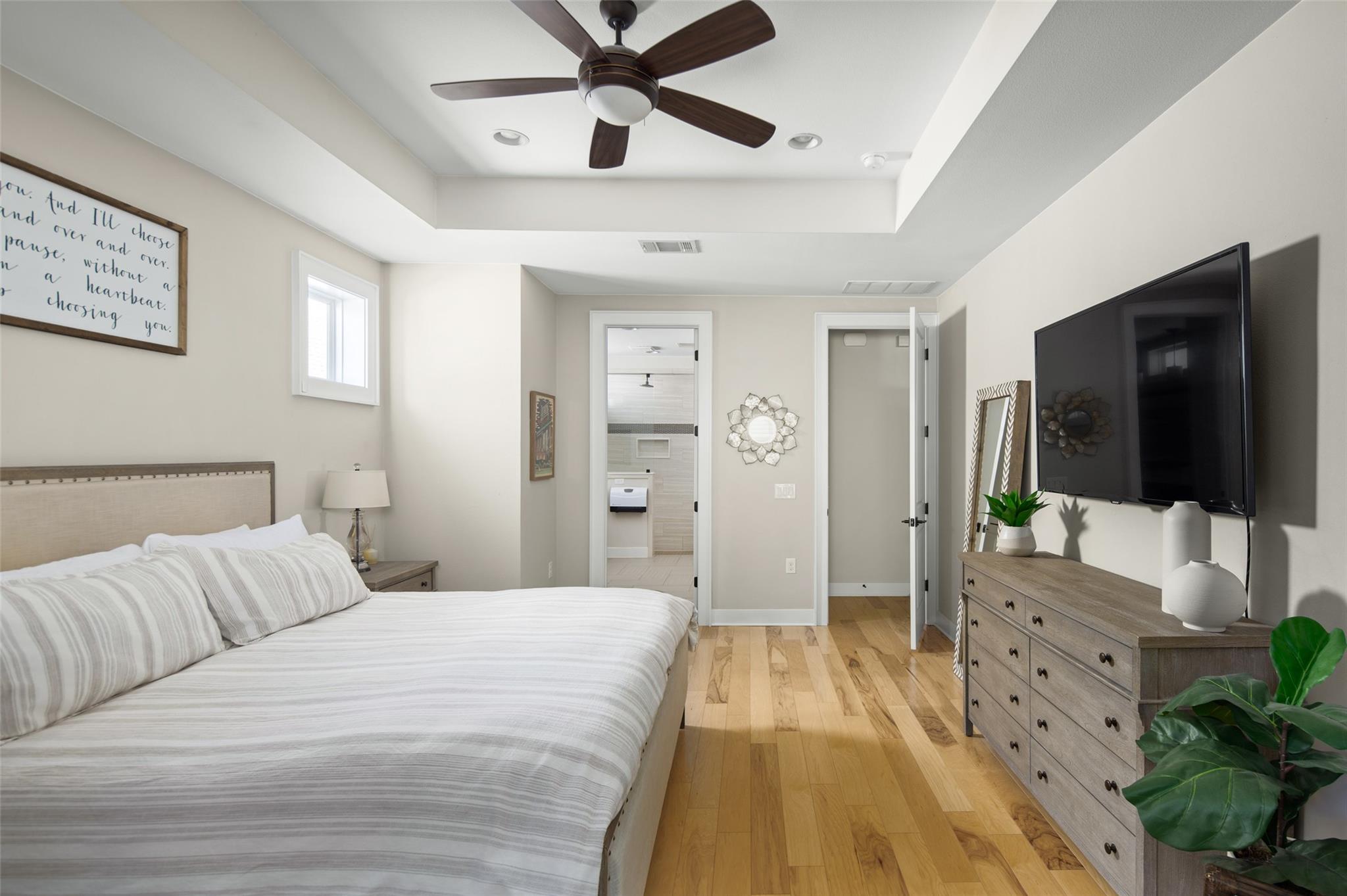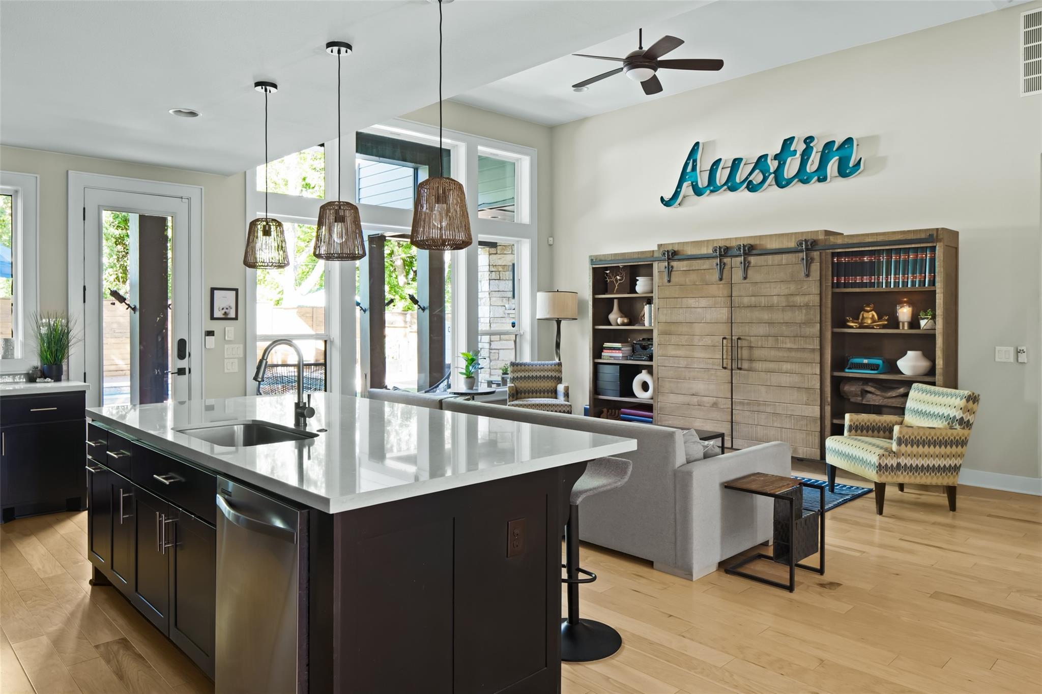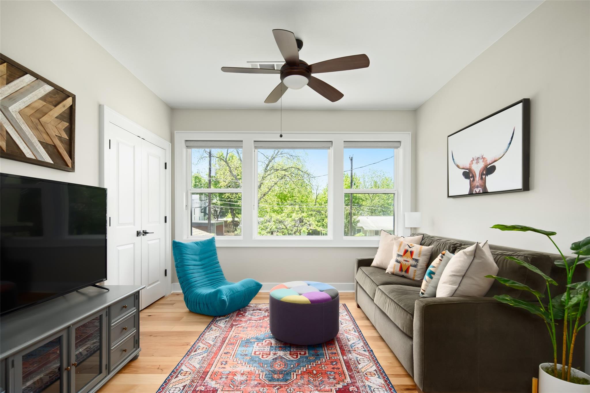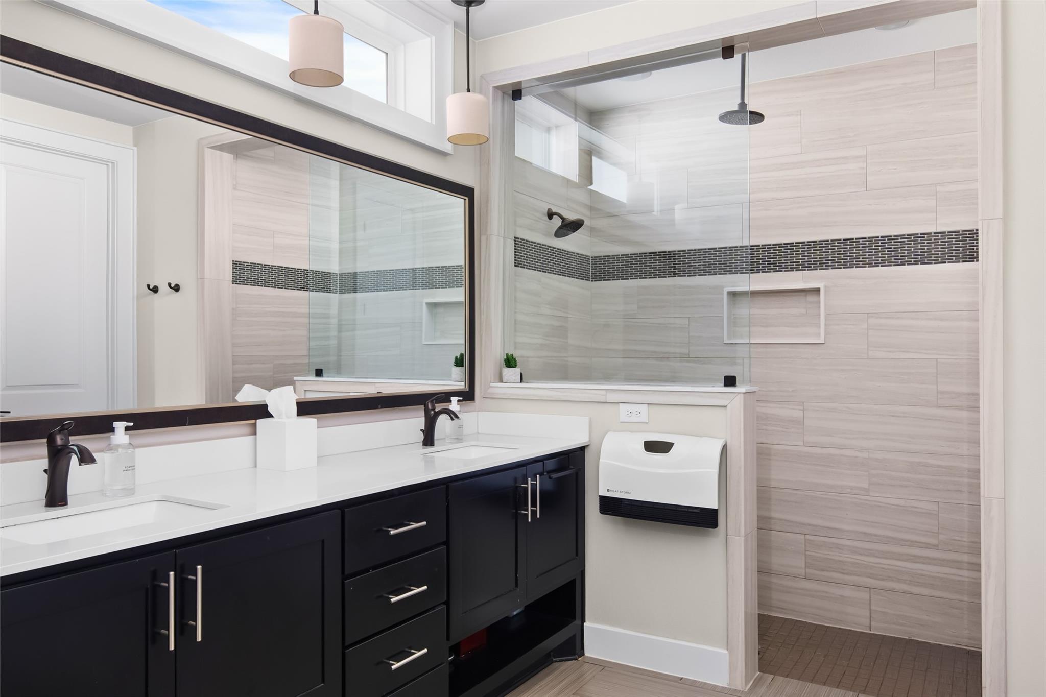 Welcome to your dream oasis in the heart of Austin's coveted Zilker neighborhood! This stunning residence offers unparalleled convenience, just steps away from Zilker Park, Barton Springs, and the vibrant dining and entertainment scene of downtown Austin. The primary suite is a sanctuary, boasting an en suite bathroom, walk-in closet, and direct access to the inviting pool and backyard retreat. Natural light floods the front office on the main level along with the modern open-concept living, dining, and kitchen areas, providing the perfect backdrop for hosting gatherings. Upstairs, two secondary bedrooms, each with en suite bathroom, offer privacy for your family and visitors along with a versatile flex space ideal for a game room or TV lounge. Outside, the backyard is an entertainer's paradise complete with a full-size pool and spa, covered porch and cooling misters, fireplace, tiki torches, a private outdoor shower, and non-toxic mosquito misters ensuring comfort year-round. The fully landscaped front and back yards features no-maintenance, high-performance turf, established plantings, and a bubbling water fountain at the front entrance. Don't miss this opportunity to experience luxury living at its finest in Austin's most desirable neighborhood!