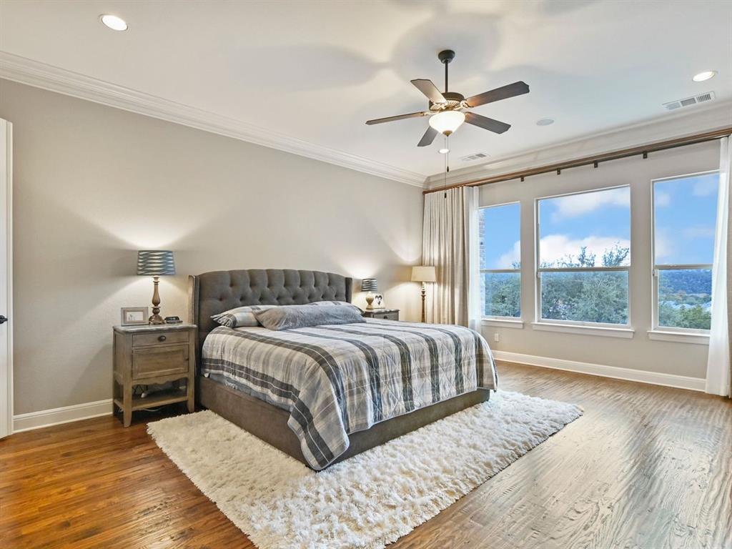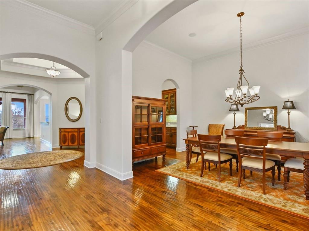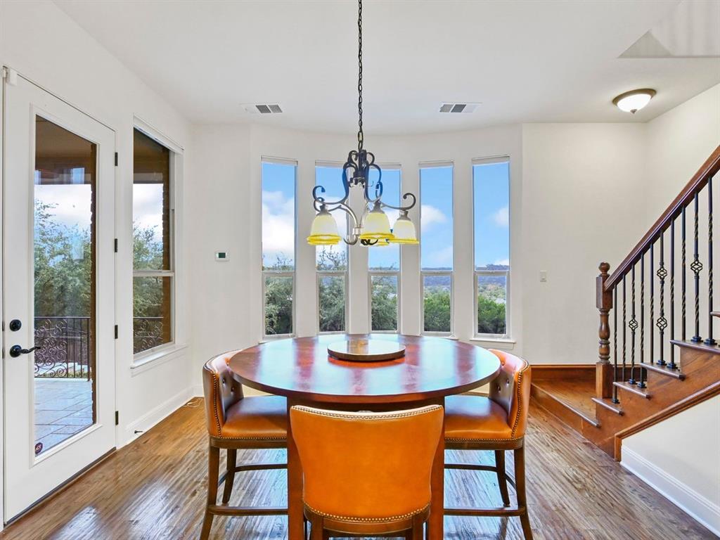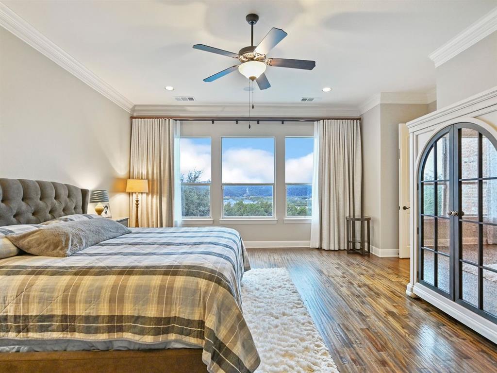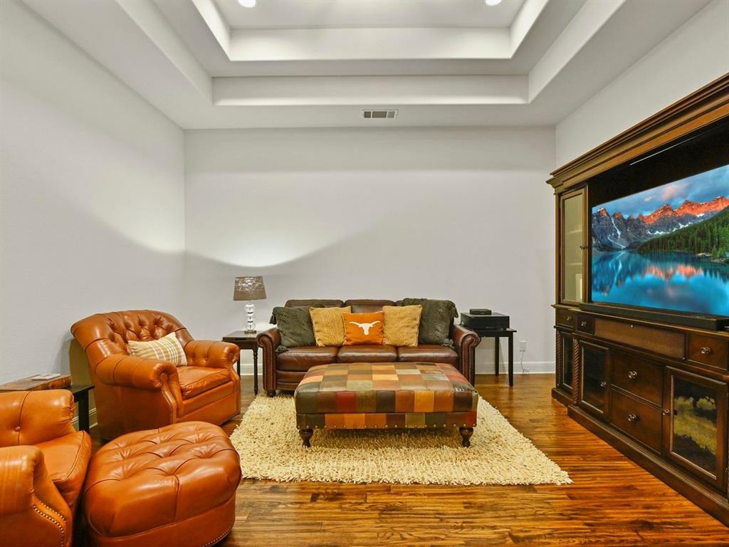 Discover the epitome of luxury living in this stunning estate, meticulously crafted with modern finishes and situated on a sprawling half-acre lot within the prestigious gated community of Santaluz in Steiner Ranch. Surrounded by breathtaking rolling hills and just a stone's throw away from the picturesque Lake Austin, this peaceful neighborhood boasts award-winning schools, local boutiques and restaurants, as well as the UT Golf Club and Lake Travis. From the professionally-designed landscaping, mature trees, and stately brick and stone façade to the impeccably designed interior, this home exudes elegance and sophistication. Upon entry, a grand foyer leads to a formal dining room, elegant home office, main floor media room, and custom bar. The spacious family room, complete with stone-surrounded fireplace and wood beams, welcomes natural light, warmth and comfort, and seamlessly flows into the casual dining room and gourmet chef’s kitchen. Outfitted with top-of-the-line stainless-steel appliances, rich wood cabinetry, and luxurious granite countertops, this culinary haven is sure to impress even the most discerning chef. An entertainer's paradise, the backyard oasis features a covered patio, outdoor kitchen with built-in barbecue and sink, and a built-in fire-pit. The first in-ground pool boasts a swim-up bar, outdoor TV, and comfortable seating for a truly immersive entertainment experience. Upstairs, indulge in the built-in spa and soak in the second in-ground infinity pool, with stunning views of the rolling hills and lush greenery. With every inch of this home exquisitely crafted and meticulously maintained, you’ll feel right at home in this peaceful and private sanctuary.