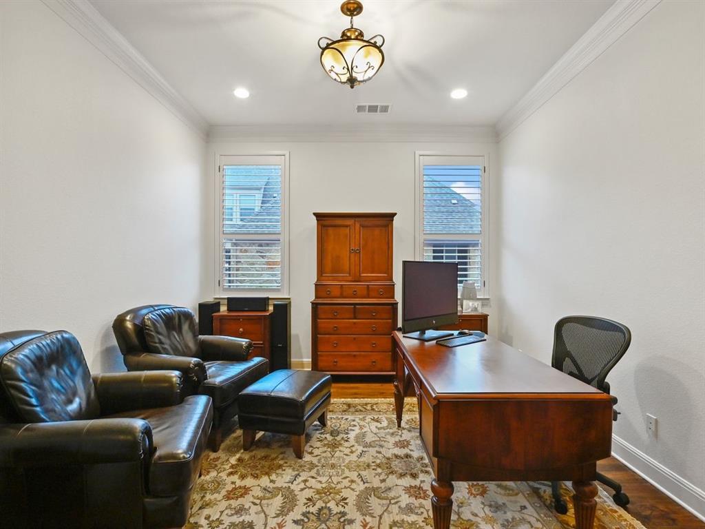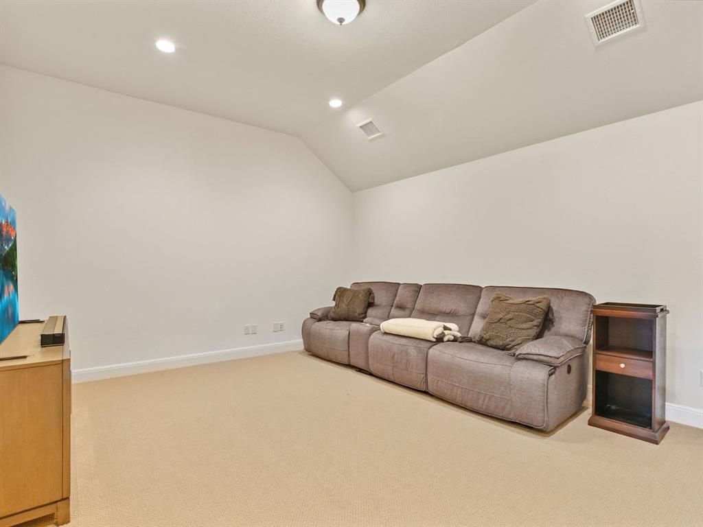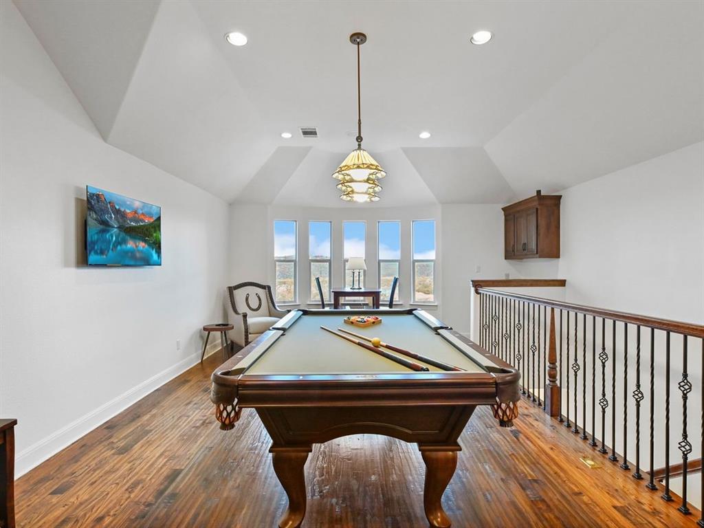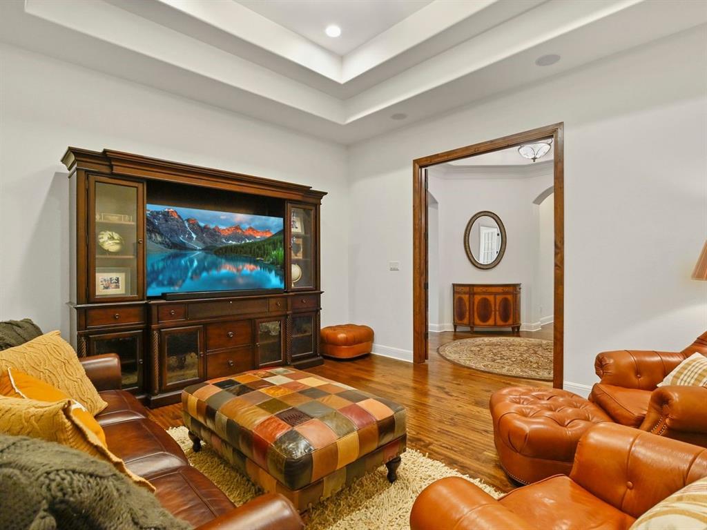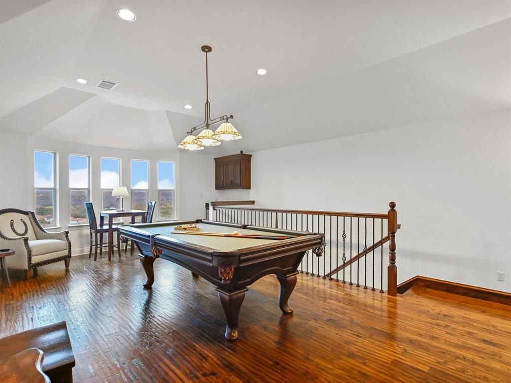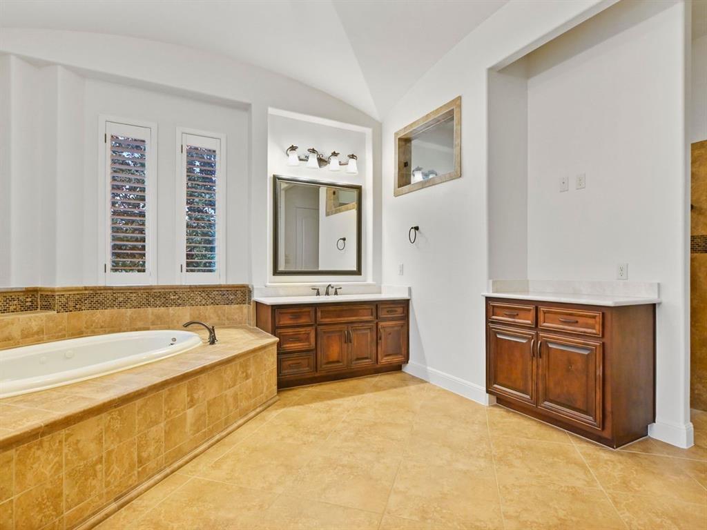 Discover the epitome of luxury living in this stunning estate, meticulously crafted with modern finishes and situated on a sprawling half-acre lot within the prestigious gated community of Santaluz in Steiner Ranch. Surrounded by breathtaking rolling hills and just a stone's throw away from the picturesque Lake Austin, this peaceful neighborhood boasts award-winning schools, local boutiques and restaurants, as well as the UT Golf Club and Lake Travis. From the professionally-designed landscaping, mature trees, and stately brick and stone façade to the impeccably designed interior, this home exudes elegance and sophistication. Upon entry, a grand foyer leads to a formal dining room, elegant home office, main floor media room, and custom bar. The spacious family room, complete with stone-surrounded fireplace and wood beams, welcomes natural light, warmth and comfort, and seamlessly flows into the casual dining room and gourmet chef’s kitchen. Outfitted with top-of-the-line stainless-steel appliances, rich wood cabinetry, and luxurious granite countertops, this culinary haven is sure to impress even the most discerning chef. An entertainer's paradise, the backyard oasis features a covered patio, outdoor kitchen with built-in barbecue and sink, and a built-in fire-pit. The first in-ground pool boasts a swim-up bar, outdoor TV, and comfortable seating for a truly immersive entertainment experience. Upstairs, indulge in the built-in spa and soak in the second in-ground infinity pool, with stunning views of the rolling hills and lush greenery. With every inch of this home exquisitely crafted and meticulously maintained, you’ll feel right at home in this peaceful and private sanctuary.