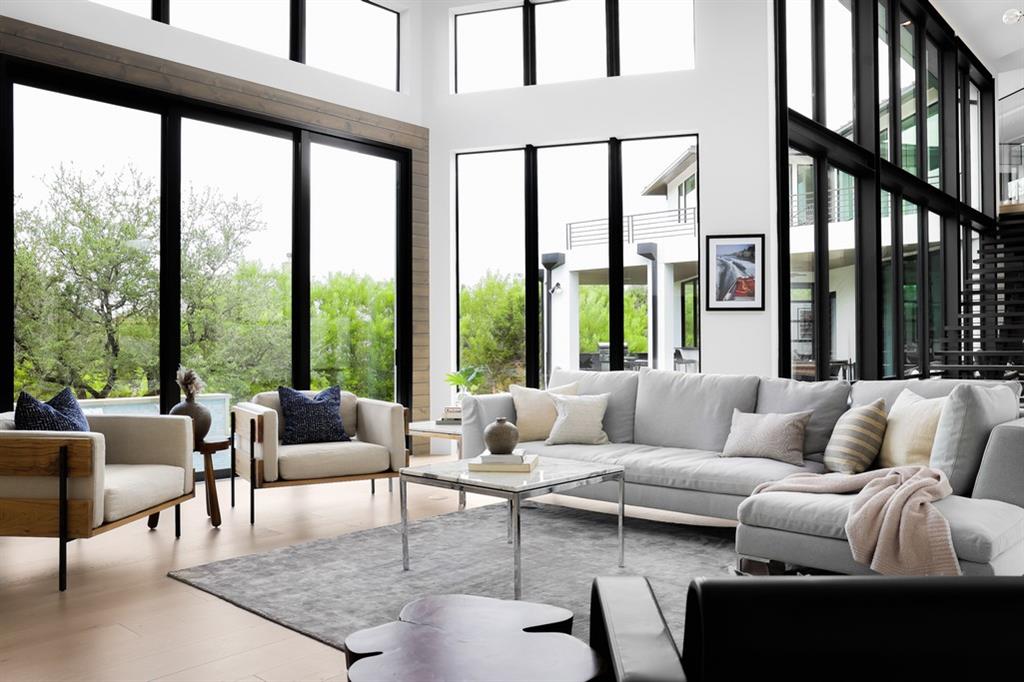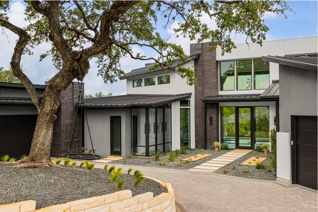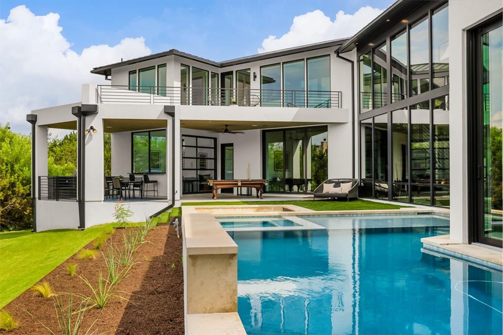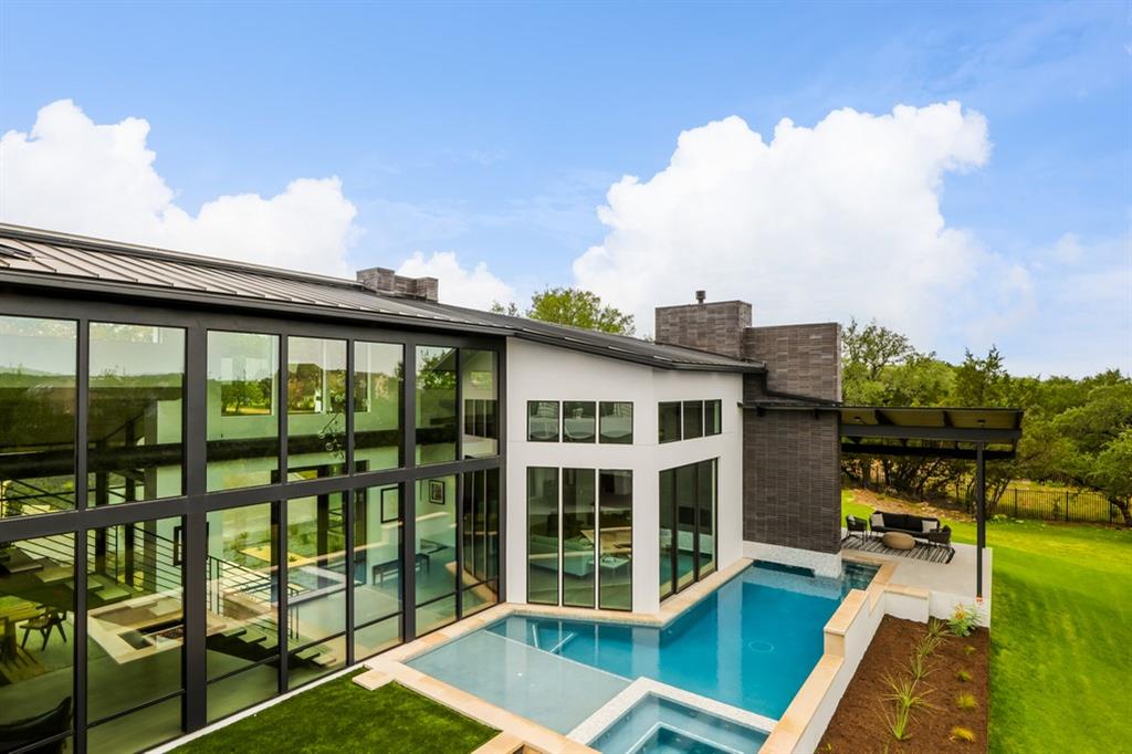 Located in Lakeway;s ultra-private gated Mira Lago, 108 Harbor Hill is a masterpiece in modern architecture and design. Contemporary sleek design defines this impeccably curated home that sits perfectly on a 1-acre lot at the end of a private cul de sac. A 2021 custom build that combines stunning glass and steal elements with European sourced finishes makes 108 Harbor Hill a standout. The first level boasts multiple entertaining spaces and a master suite withs sizable walk-in-closet and spa like features. A custom wine wall is the focal point of the eclectic dining area that is part of the homes unique open concept. An abundance of natural light is a key element with floor to ceiling windows that span over 20 feet. The main level also features a custom chefs kitchen, 2 junior suites, workout-room and 2 separated enclosed garages. The second level showcases a glass enclosed office that sits atop of a stunning steal staircase. The detail of every space is what puts 108 Harbor Hill in a class of its own. The outdoor entertaining areas feature a dramatic limestone pool that wraps a portion of the residence with a sunken fire pit and 2 covered spaces for grilling or relaxing. This is a home to truly enjoy every season and a true Texas sized lifestyle.