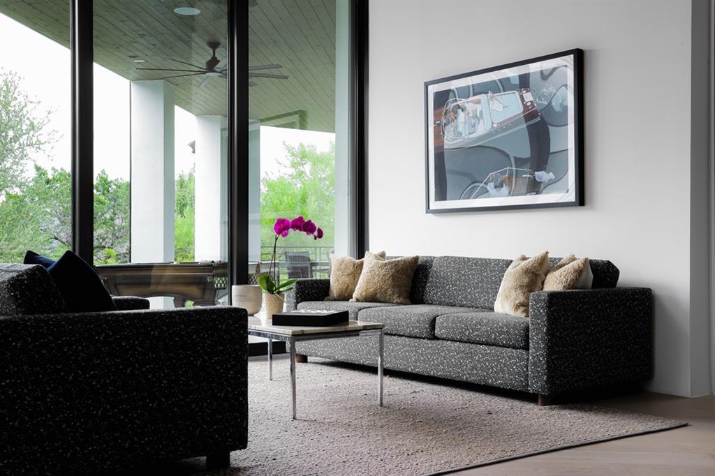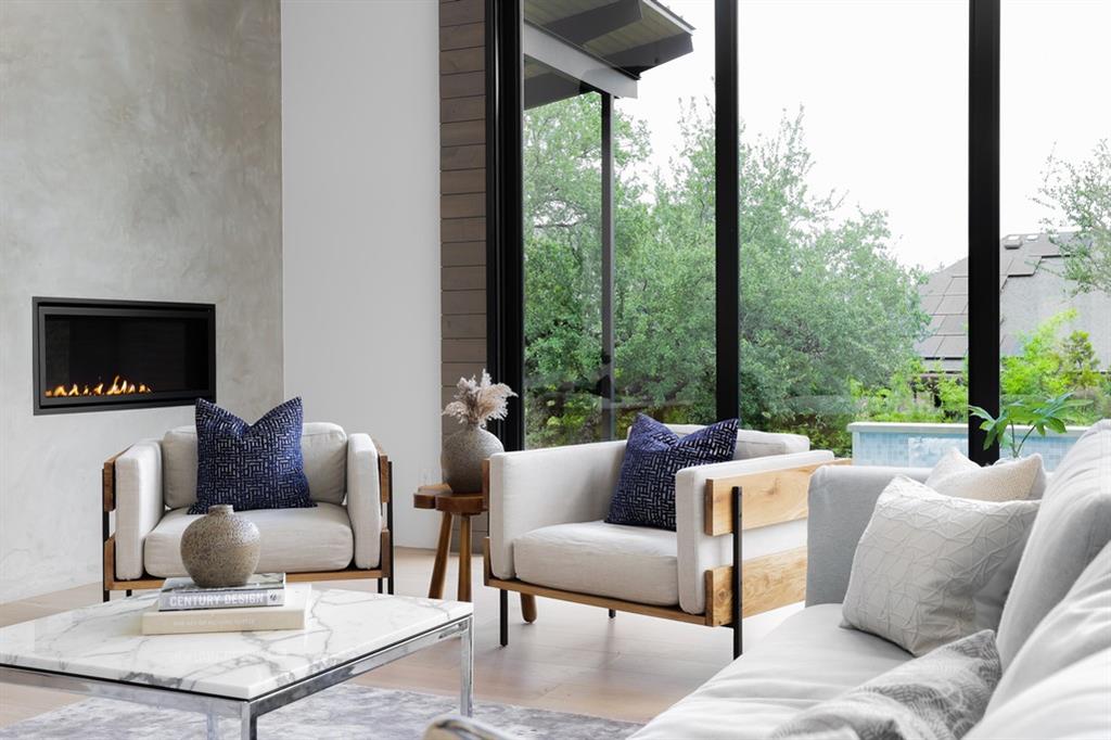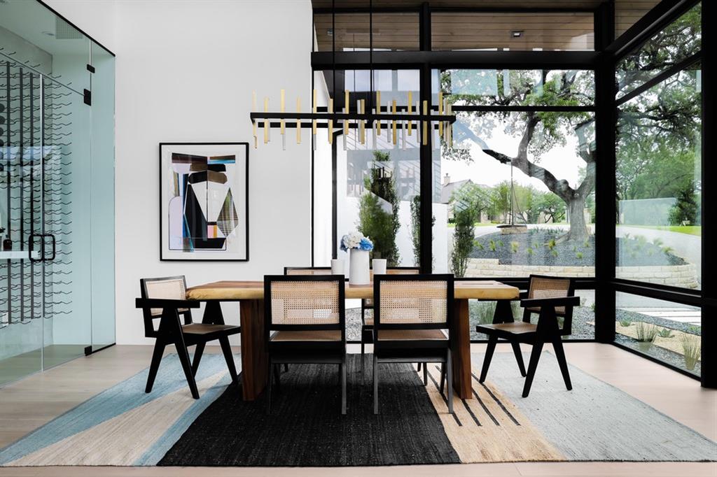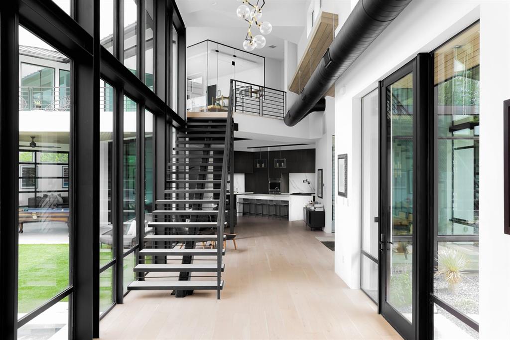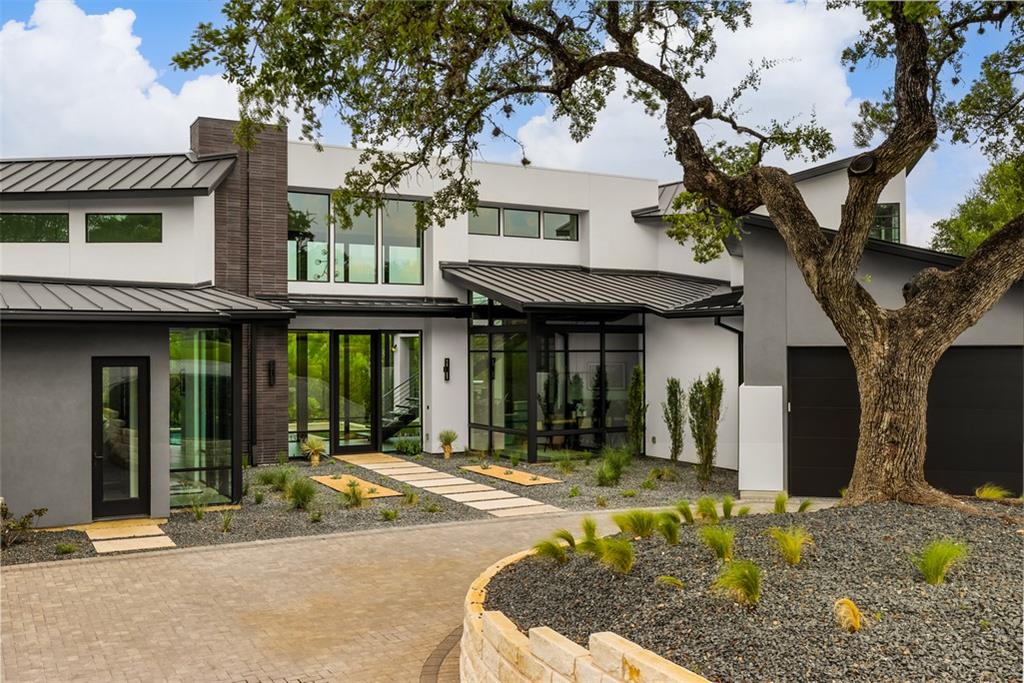 Located in Lakeway;s ultra-private gated Mira Lago, 108 Harbor Hill is a masterpiece in modern architecture and design. Contemporary sleek design defines this impeccably curated home that sits perfectly on a 1-acre lot at the end of a private cul de sac. A 2021 custom build that combines stunning glass and steal elements with European sourced finishes makes 108 Harbor Hill a standout. The first level boasts multiple entertaining spaces and a master suite withs sizable walk-in-closet and spa like features. A custom wine wall is the focal point of the eclectic dining area that is part of the homes unique open concept. An abundance of natural light is a key element with floor to ceiling windows that span over 20 feet. The main level also features a custom chefs kitchen, 2 junior suites, workout-room and 2 separated enclosed garages. The second level showcases a glass enclosed office that sits atop of a stunning steal staircase. The detail of every space is what puts 108 Harbor Hill in a class of its own. The outdoor entertaining areas feature a dramatic limestone pool that wraps a portion of the residence with a sunken fire pit and 2 covered spaces for grilling or relaxing. This is a home to truly enjoy every season and a true Texas sized lifestyle.