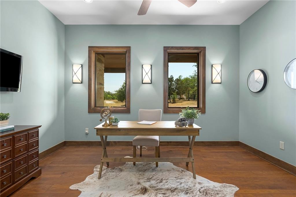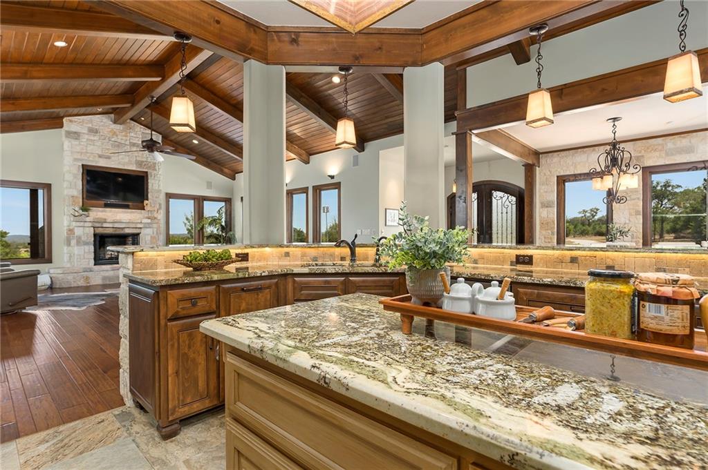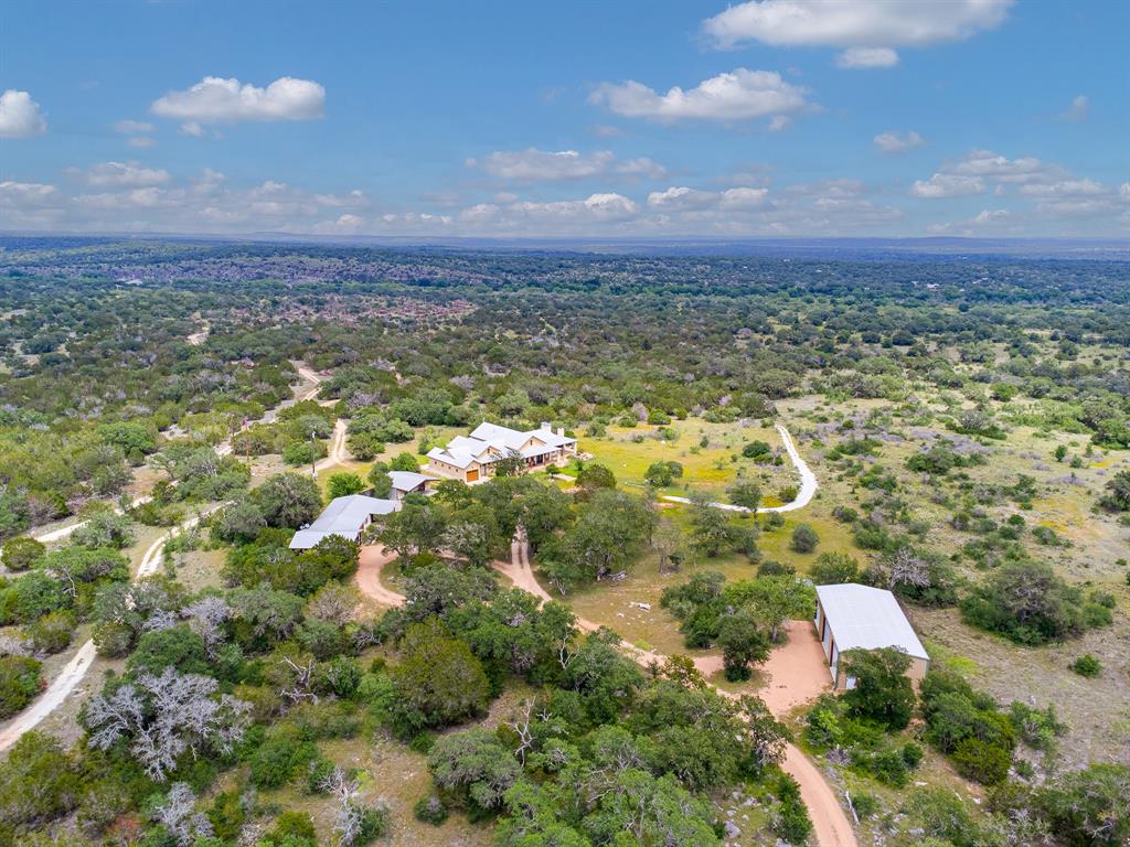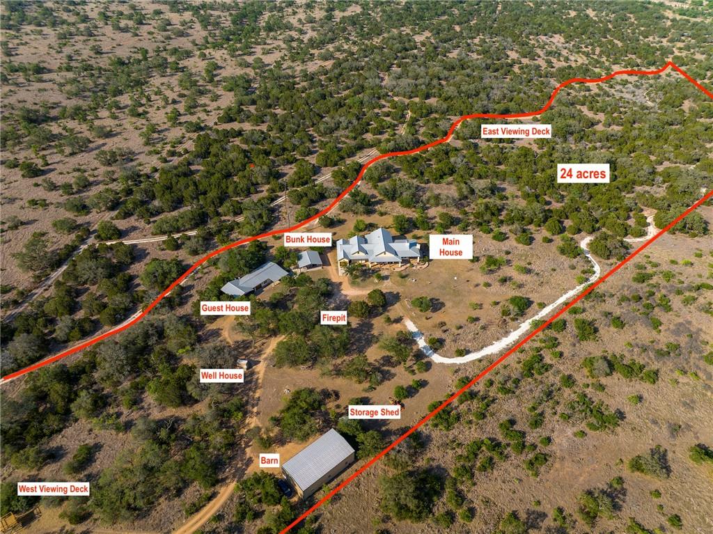 This Hill Country Masterpiece is located on 24 private acres about 45 minutes west of Austin in Johnson City. Property features a 3029 sqft main house, 962sqft guest house, and a 600 sqft bunkhouse. The main house showcases an open floor plan, vaulted - beamed ceilings, wood windows, rock walls, and wood floors throughout. Cooks delight kitchen with center island, upgraded appliance package, pot filler, and floor to ceiling custom knotty alder cabinets. Relax in the master suite with a “his†and “her†side bathrooms featuring separate toilet rooms and double walk-in closets. Study off the kitchen has its own closet so could be converted into a bedroom with a full bathroom across a hall. Incredible storage opportunities throughout the main home and a unique 2 car tandem garage with doors on either side to allow a drive through for vehicles. Guest house is the perfect size for family and friends with a private living and kitchen, two bedrooms, one bathroom, and a mud/laundry area. There is also a one car garage and two car carport attached to the guest house. The bunkhouse features two separate rooms that are joined with a full bathroom in between. Private sink vanities are located in each bunk room perfect for dividing the “cowboys and cowgirlsâ€. A fully insulated barn offers a place to store all of your ranch toys and machinery. A Texas wildlife exemption is in place on the property with Blanco Counties lower tax rate make this gentleman’s ranch the perfect buy!