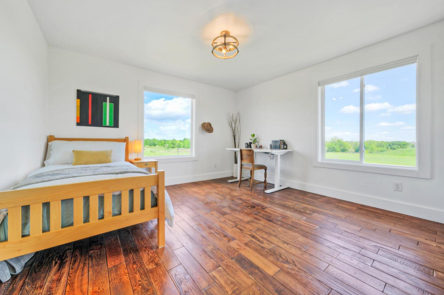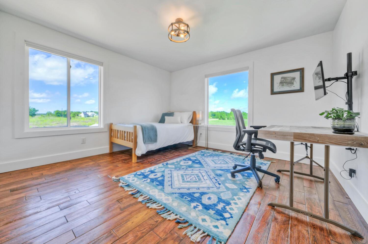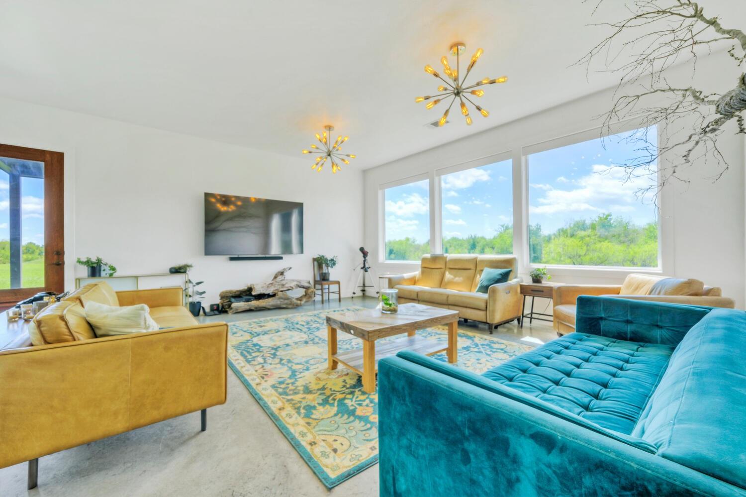 This gated 51-acre wildlife exempt ranch in Southeastern Williamson County offers a perfect escape and incredible location. 35 minutes north of Tesla, 20 minutes south of the new Samsung plant in Taylor, and 40 minutes from Austin Bergstrom International Airport, The ranch boasts a 3,300+/- square-foot Scandinavian-style home, complemented by a detached barndominium featuring large glass garage doors, a living area, and a full bathroom. This retreat is great for hunting enthusiasts, outdoor concerts, large gatherings or weddings. The opportunities are endless. Nestled privately amidst a forest of trees and breathtaking meadows, this sanctuary provides a blend of modern comfort and natural beauty. Watch native whitetail deer graze in your wildflower filled field from the comfort of your own home. The ranch features a large pond perfect for fishing, swimming and canoeing. Another smaller pond fed by seasonal Creek and surrounded by gigantic Cedar elms, post Oaks and Willow trees is nearby. Hiking trails meander throughout the ranch through densely wooded areas and meadows. This gated property is the ultimate haven for those seeking a life in harmony with nature. This property boasts no restrictions and is conveniently located within minutes of Elgin, Coupland, and Taylor.
