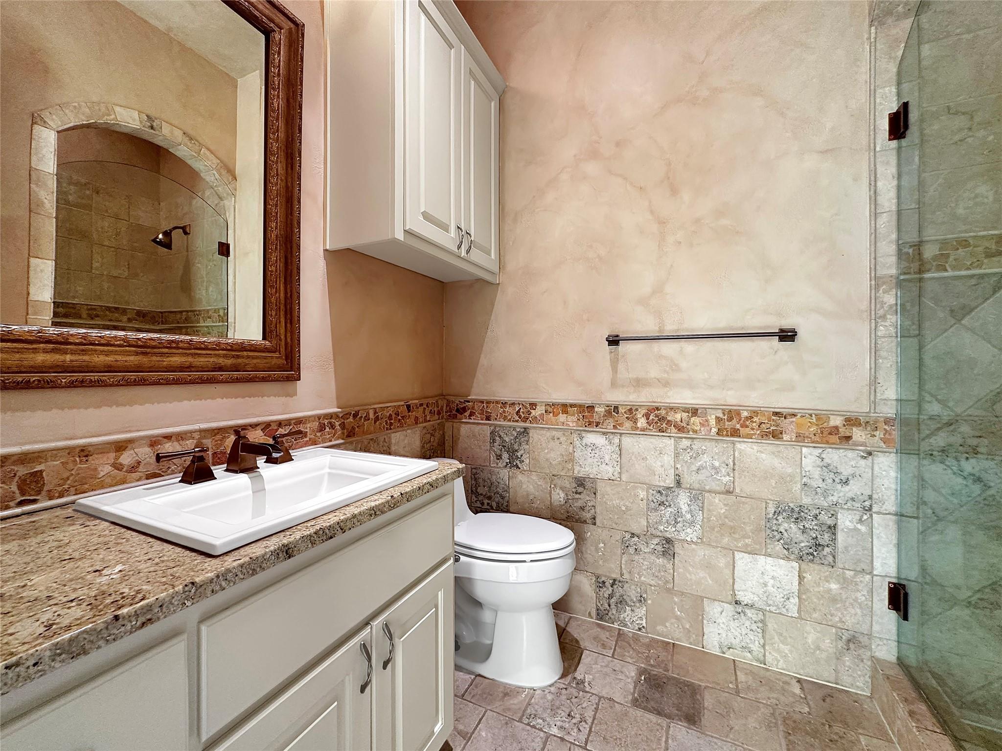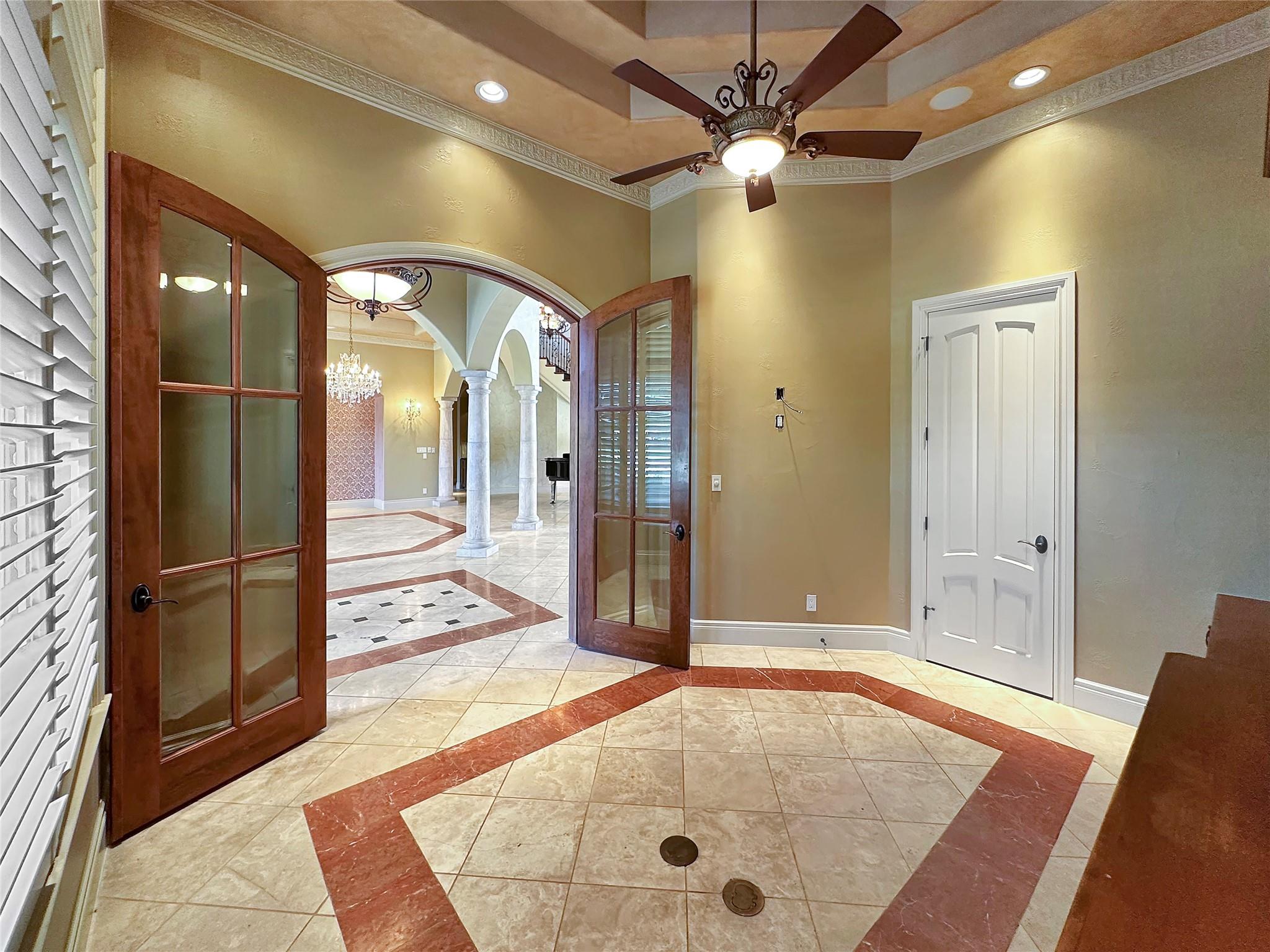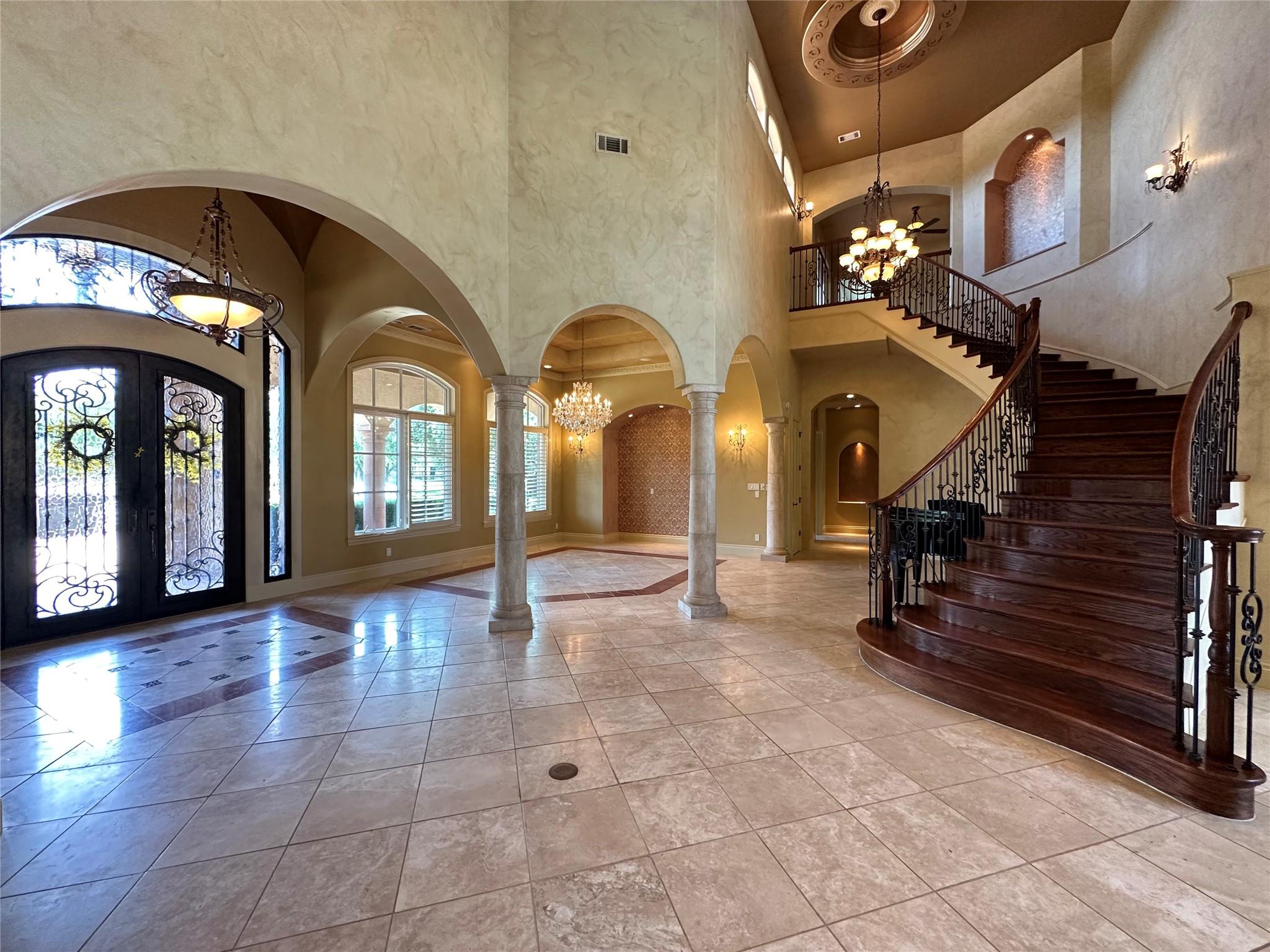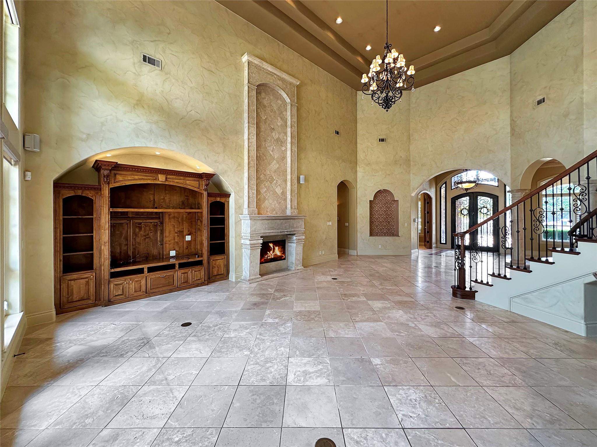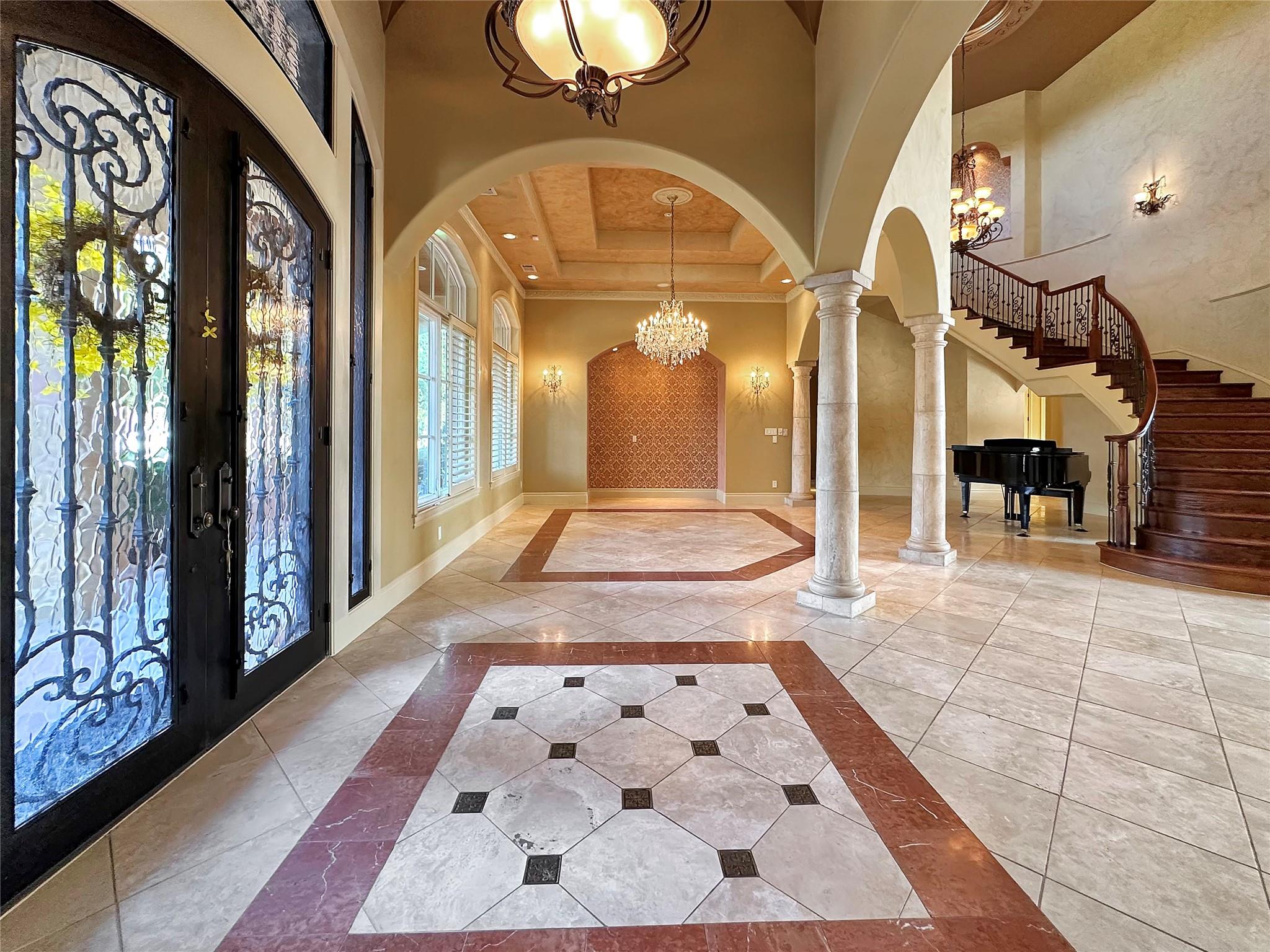 Welcome to this exquisite 5 bed, 6 bath Mediterranean inspired estate on a 1-acre corner lot in the heart of Cedar Park! This masterpiece boasts a captivating blend of Spanish-inspired design elements and modern luxury, offering a lifestyle of unparalleled elegance. As you approach, the eye is drawn to the majestic exterior adorned with Spanish clay roof, meticulously crafted limestone walls, and graceful cantera columns. A driveway at the front welcomes guests, while a secondary expansive driveway leads to the impressive 3-car garage. Step inside and be greeted by an ambiance of grandeur and elegance. High ceilings and abundant windows flood the space with natural light, highlighting the opulent marble pillars, grand fireplace, regal light fixtures, and unmatched staircase that serves as a centerpiece of the home. Luxurious travertine flooring and double tray ceilings adorned with intricate crown molding create an atmosphere of timeless charm. The main level features a thoughtfully designed layout, including a downstairs mother-in-law suite, perfect for accommodating guests in comfort and style. The gourmet kitchen is a chef's dream, equipped with top-of-the-line appliances and ample space for culinary creations. Two wet bars offer effortless entertaining opportunities. Retreat to the lavish primary suite, where a custom "wrap-around" closet provides ample storage, while the en-suite bathroom showcases stunning groin-vaulted ceilings, more marble pillars, and lavish "walk-in" shower. Outside, the backyard paradise beckons with a fully finished out work shed, ideal for hobbies or storage. The covered patio includes soaring ceilings which provide the perfect setting for al fresco dining and relaxation. The pavilion offers granite countertops, built-in sink, grill, and ice maker, creating an outdoor culinary haven. Gather around the chimney fireplace or take a dip in the heated pool and spa, complete with a swim-in grotto waterfall. The epitome of luxury living!