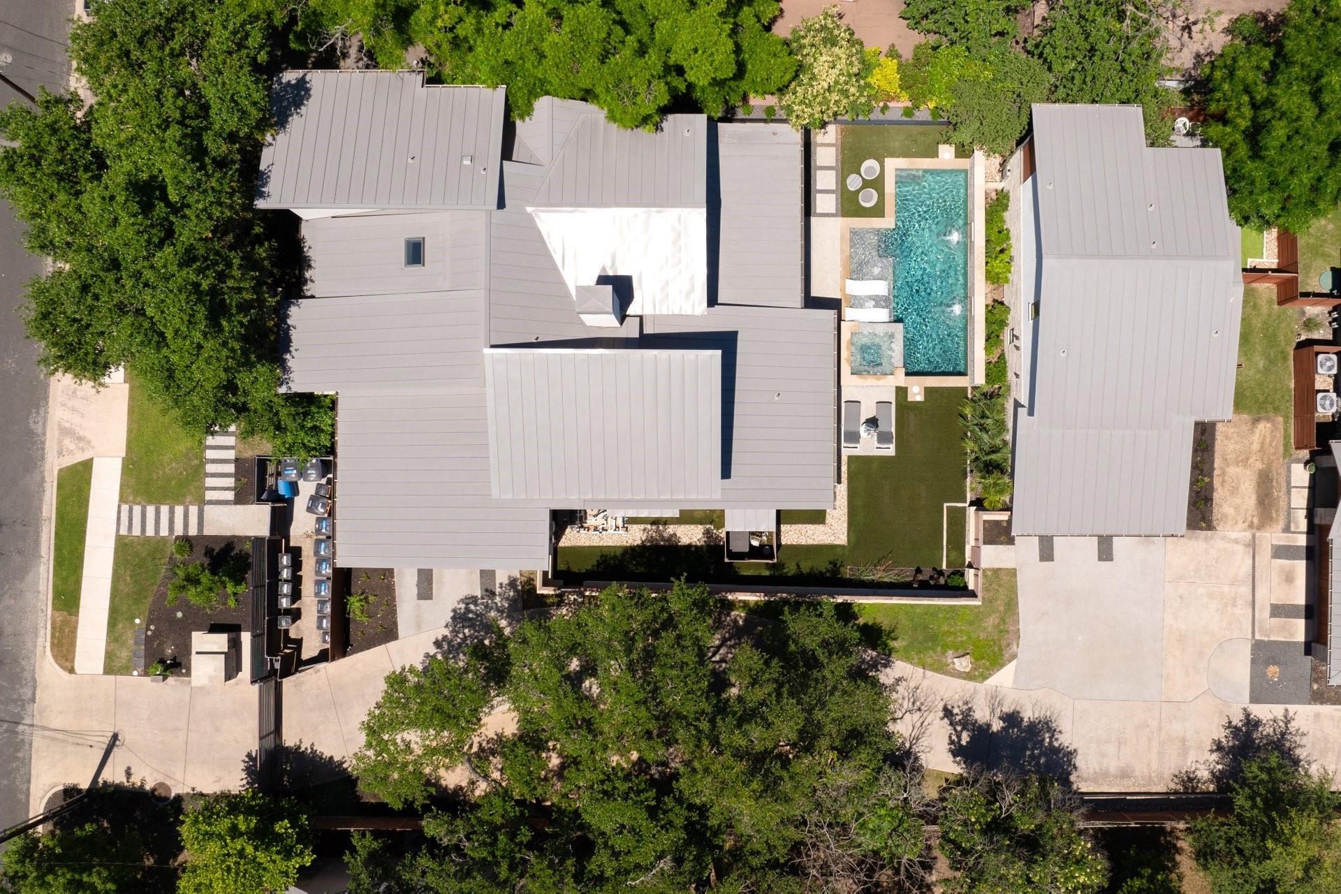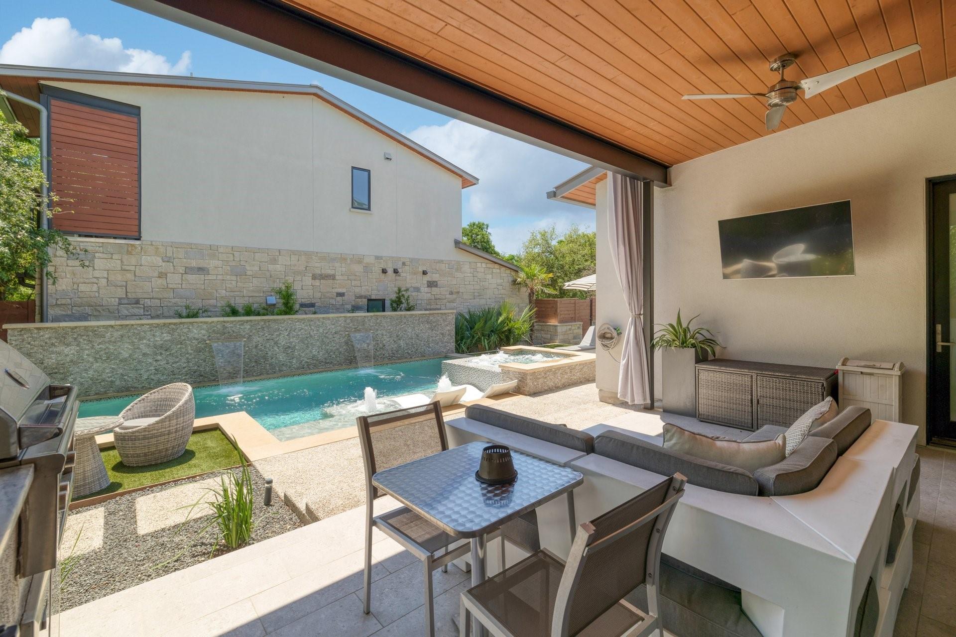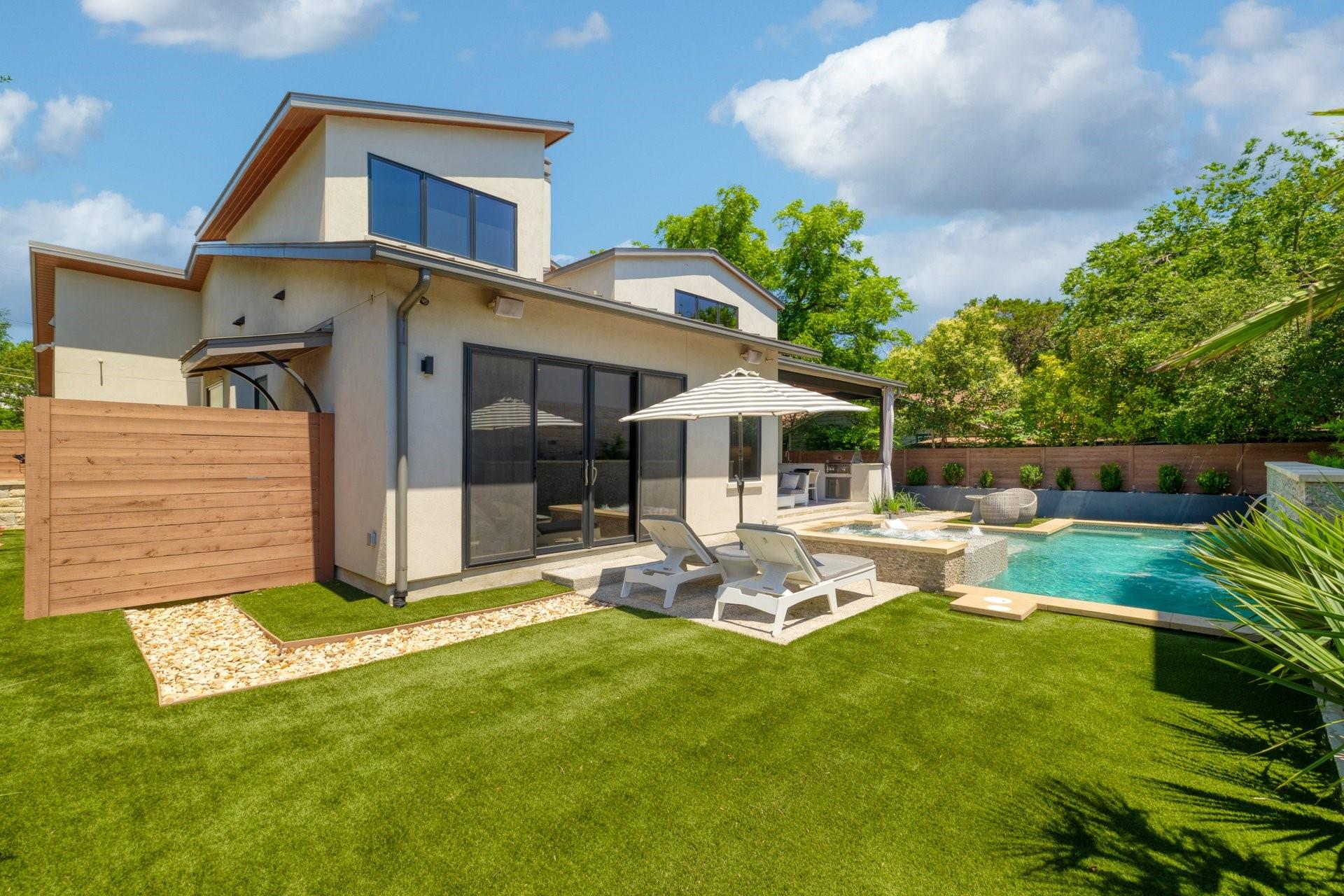 Welcome to a contemporary masterpiece where sophistication meets modern luxury, tucked away in the desirable Bouldin neighborhood. This property exudes elegance and refinement at every turn, offering not one, but two stunning residences designed for the discerning connoisseur. Main House: 4 beds / 3.5 baths / 2 living / 3660sf / 2 offices / 2 car garage / pool/hot tub / full outdoor kitchen Guest House: 2 beds / 2.5 baths / 1025sf / 2 car garage / fenced yard Step into the main house, where sleek lines and premium finishes define the aesthetic. The well designed kitchen features granite countertops, custom cabinetry and has a built in Miele coffee machine along with sub zero appliances including a steam oven. Around the corner, the wet bar has a crushed ice maker, wine cooler and ample seating and storage. The primary bedroom is situated on the main level, offering a pristinely designed spa-like bathroom and connecting utility room. Secondary bedrooms up with game room and additional small office. Step outside and immerse yourself in a resort-like ambiance. A shimmering pool accented with fountains and waterfalls beckons for refreshing dips on warm summer days, while the adjacent hot tub promises relaxation and rejuvenation. Entertain in style at the outdoor kitchen, complete with state-of-the-art appliances and ample seating for gatherings both intimate and grand. The turfed yard is an absolute retreat, perfect for leisurely lounging or vibrant gatherings. And when the day is done, rest easy knowing your vehicles are housed in the convenient 2 car garage with secure access. A second charming residence boasting 2 bedrooms and 2.5 baths, this secondary dwelling offers comfort and privacy for guests or extended family. With its own 2 car garage and gated yard, every aspect is thoughtfully crafted for both luxury and security. Currently leased for $4400/mo. Experience the pinnacle of modern living in this architectural marvel!