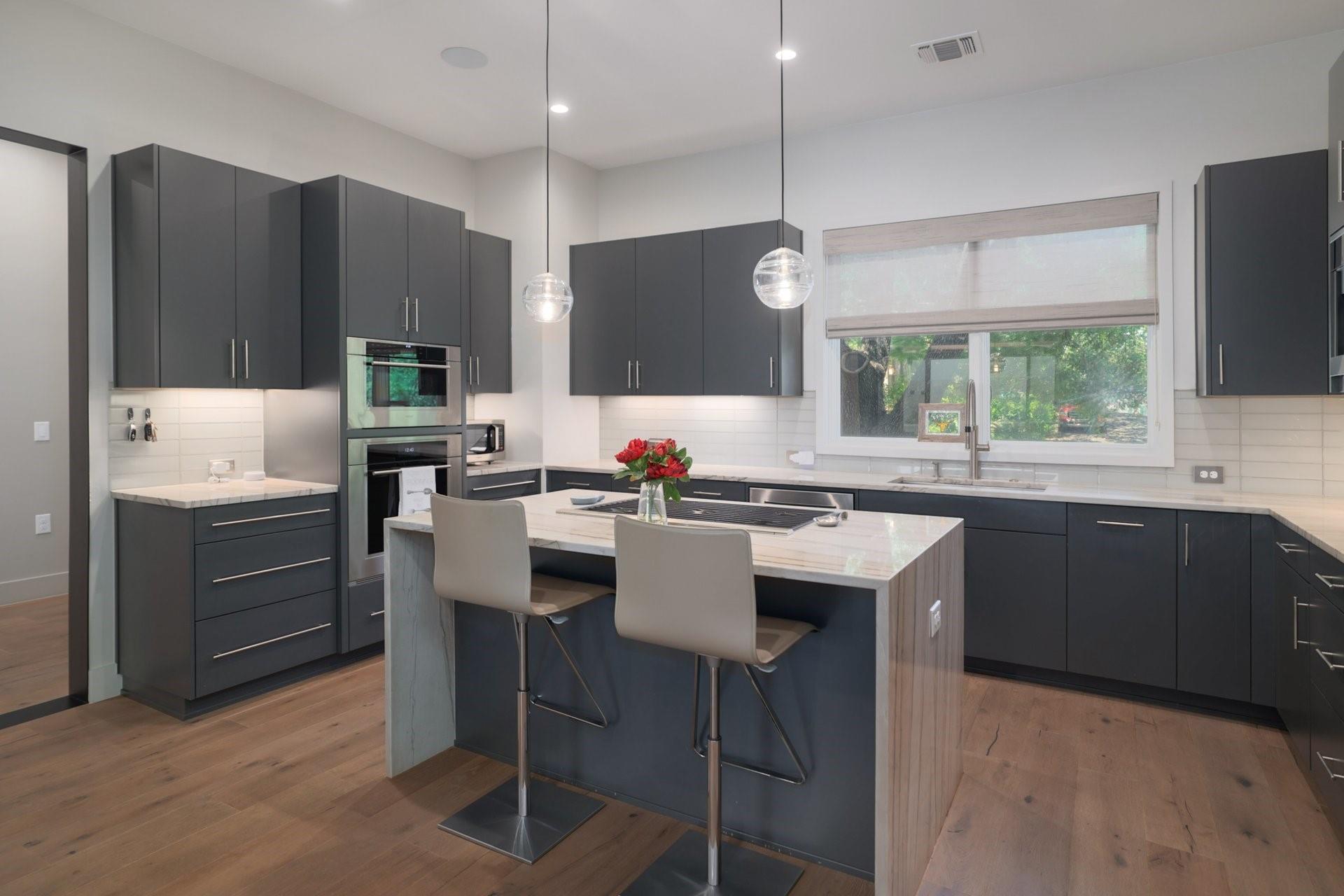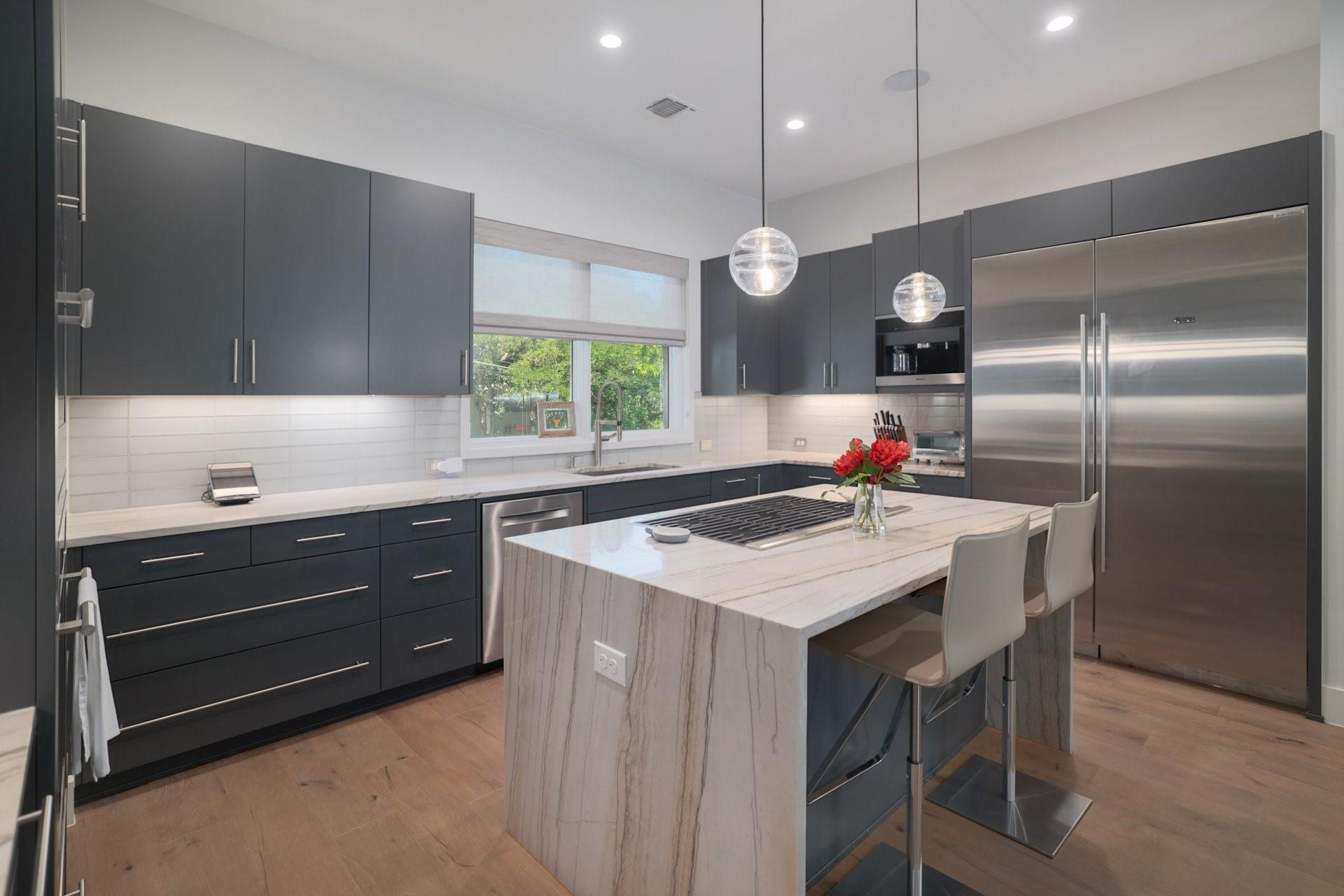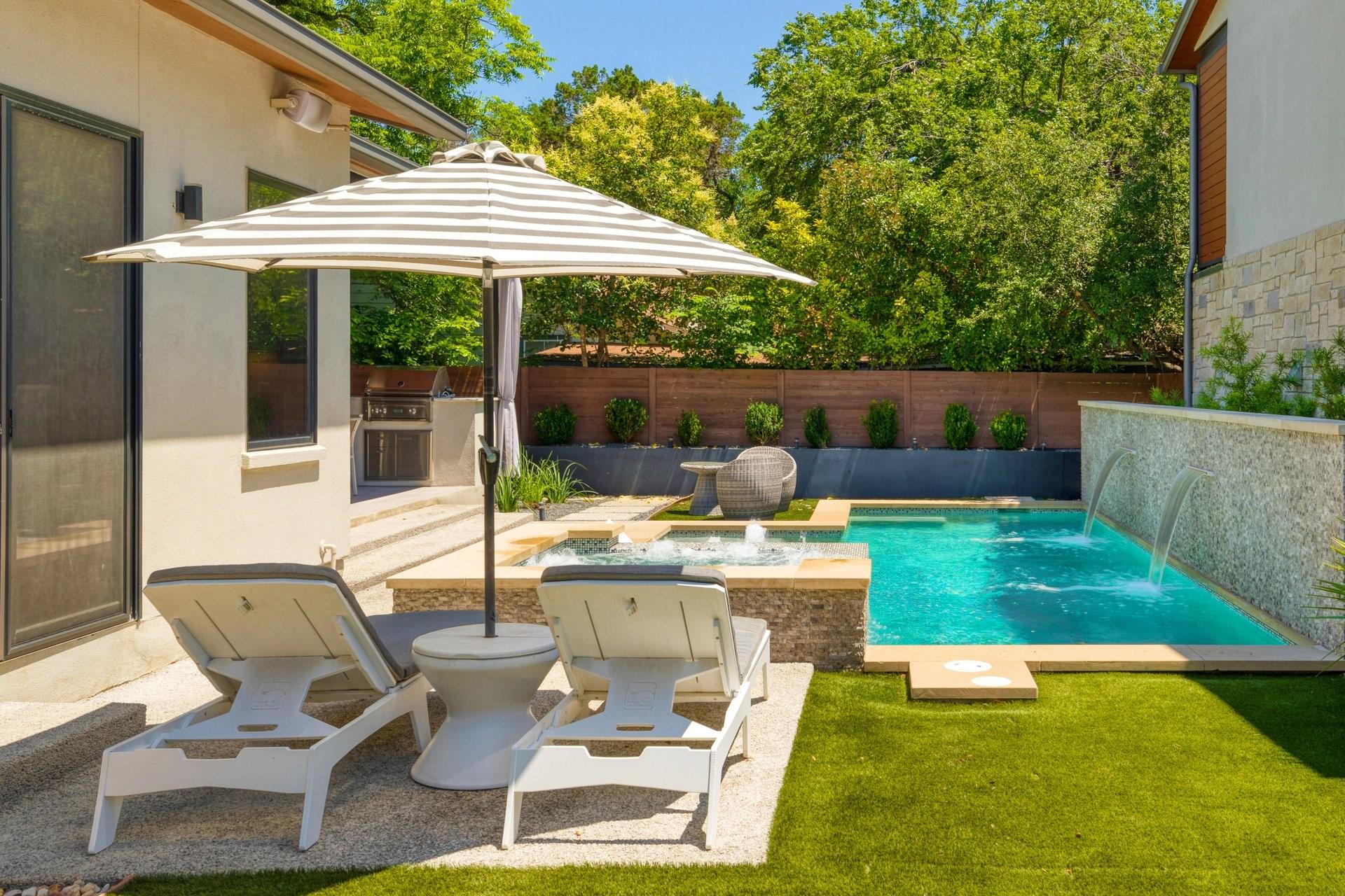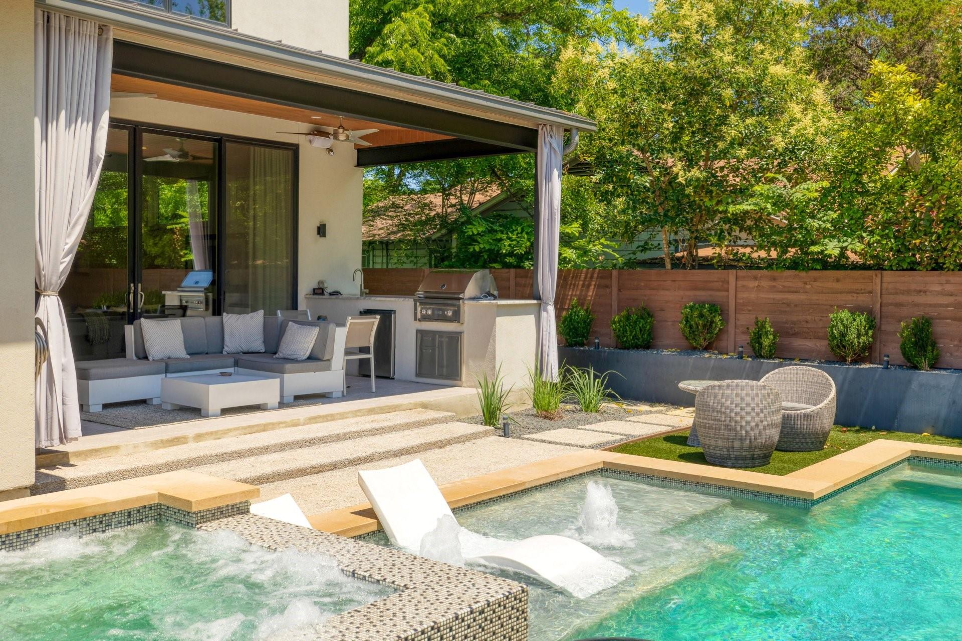 Welcome to a contemporary masterpiece where sophistication meets modern luxury, tucked away in the desirable Bouldin neighborhood. This property exudes elegance and refinement at every turn, offering not one, but two stunning residences designed for the discerning connoisseur. Main House: 4 beds / 3.5 baths / 2 living / 3660sf / 2 offices / 2 car garage / pool/hot tub / full outdoor kitchen Guest House: 2 beds / 2.5 baths / 1025sf / 2 car garage / fenced yard Step into the main house, where sleek lines and premium finishes define the aesthetic. The well designed kitchen features granite countertops, custom cabinetry and has a built in Miele coffee machine along with sub zero appliances including a steam oven. Around the corner, the wet bar has a crushed ice maker, wine cooler and ample seating and storage. The primary bedroom is situated on the main level, offering a pristinely designed spa-like bathroom and connecting utility room. Secondary bedrooms up with game room and additional small office. Step outside and immerse yourself in a resort-like ambiance. A shimmering pool accented with fountains and waterfalls beckons for refreshing dips on warm summer days, while the adjacent hot tub promises relaxation and rejuvenation. Entertain in style at the outdoor kitchen, complete with state-of-the-art appliances and ample seating for gatherings both intimate and grand. The turfed yard is an absolute retreat, perfect for leisurely lounging or vibrant gatherings. And when the day is done, rest easy knowing your vehicles are housed in the convenient 2 car garage with secure access. A second charming residence boasting 2 bedrooms and 2.5 baths, this secondary dwelling offers comfort and privacy for guests or extended family. With its own 2 car garage and gated yard, every aspect is thoughtfully crafted for both luxury and security. Currently leased for $4400/mo. Experience the pinnacle of modern living in this architectural marvel!