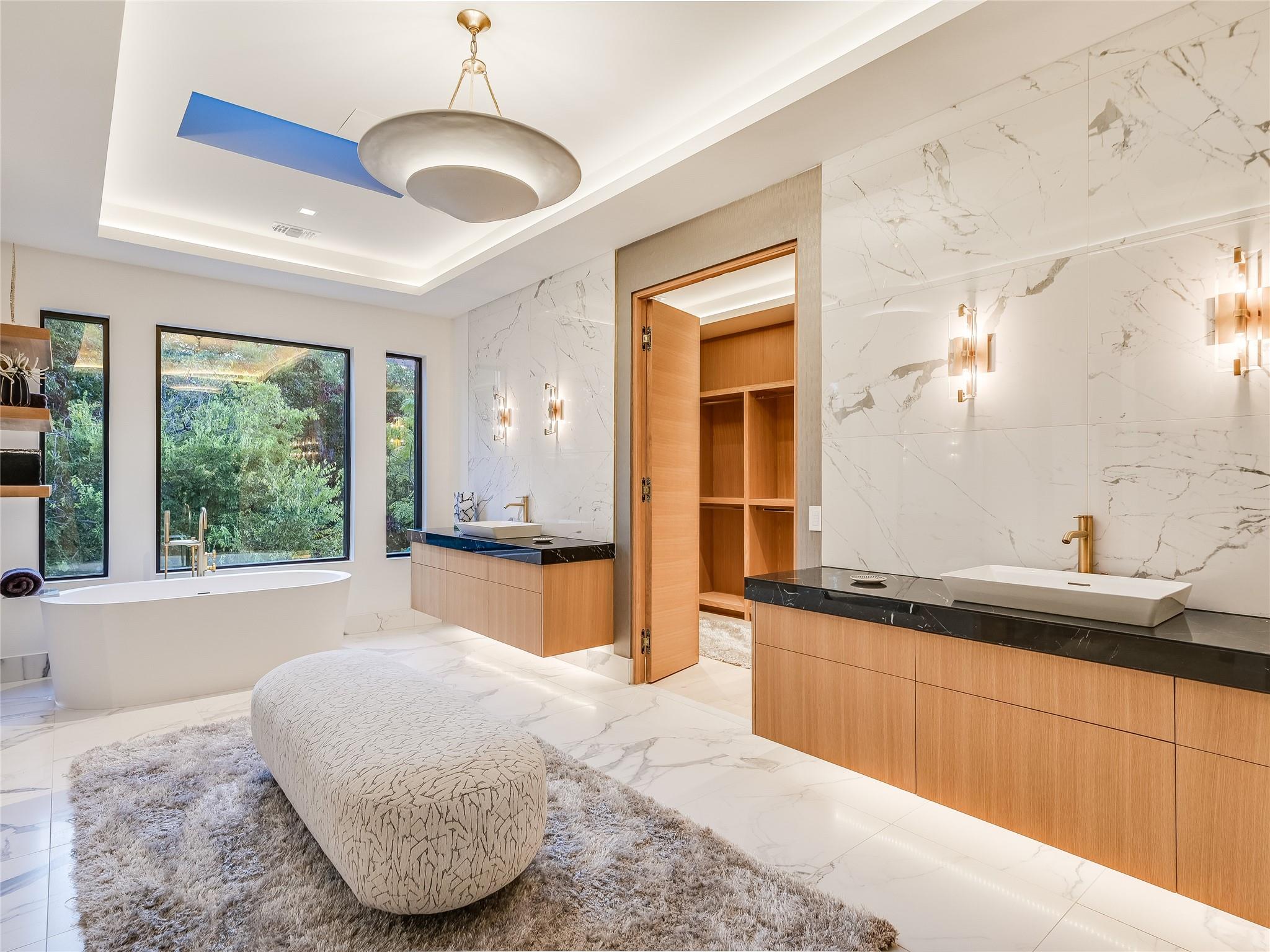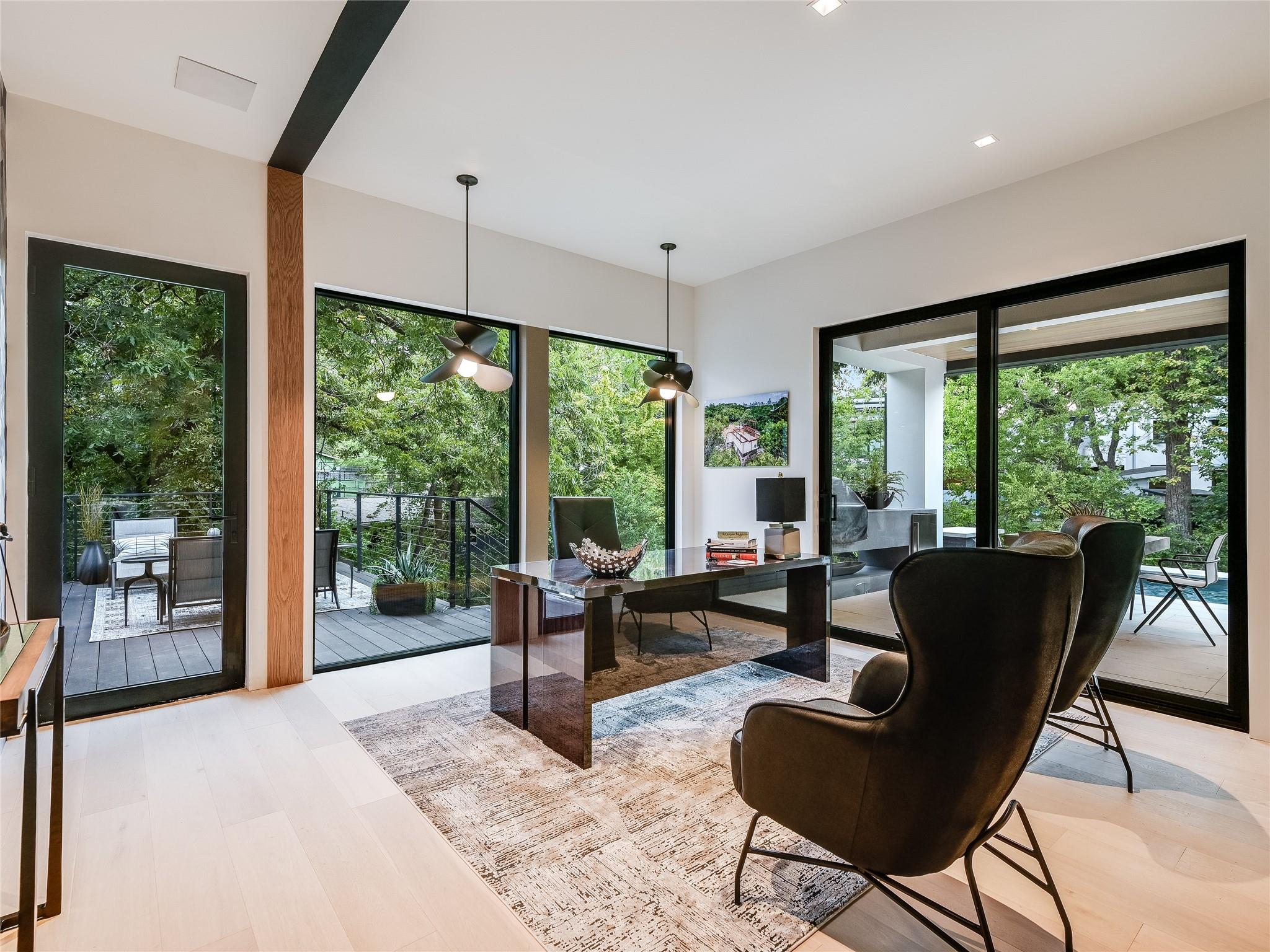 Indulge in refined living with this exceptional newly constructed residence in Austin's prestigious Travis Heights. This opulent home combines striking architectural design, impeccable craftsmanship, & lavish features to offer an unparalleled luxury lifestyle. From the entrance, marvel at the seamless integration of steel construction, creating floating rooms and expansive spaces. Every detail of this residence exudes contemporary elegance & comfort. Inside, experience sophistication with a level 5 finish and custom white oak floors, doors & cabinetry. Floor-to-ceiling windows fill the interiors with natural light, seamlessly blending indoor & outdoor living. The selection of materials & finishes is impeccable, including Italian porcelain & Hubbardton Forge lighting. Sound insulated walls ensure tranquility & recessed ceilings with back-lighting create a captivating atmosphere. The gourmet kitchen is a culinary masterpiece, equipped with top-of-the-line stainless steel appliances & a stunning black & white island with an exquisite leather finish. Step outside to a private oasis enclosed by a privacy walllounge by the poolside, which effortlessly transforms into a spa. The custom waterfall & pond add serenity, while the outdoor poolside TV offers entertainment. The deck, crafted from the finest Trex material, seamlessly extends the living space. A custom privacy screen with a vertical herb garden adds a touch of whimsy and elegance. The home also features a versatile office space that can serve as a fifth bedroom, wired for electronic exterior shades & adorned with Hubbardton Forge lighting. Indulge in sophistication with the temperature-controlled wine display featuring impressive 10' doors, perfect for wine enthusiasts. With its exceptional location in Travis Heights, renowned for its closeness to downtown, Lady Bird Lake and the SoCo district, this residence offers the epitome of sophisticated living. Co-Ownership opportunity for $1,249,000.