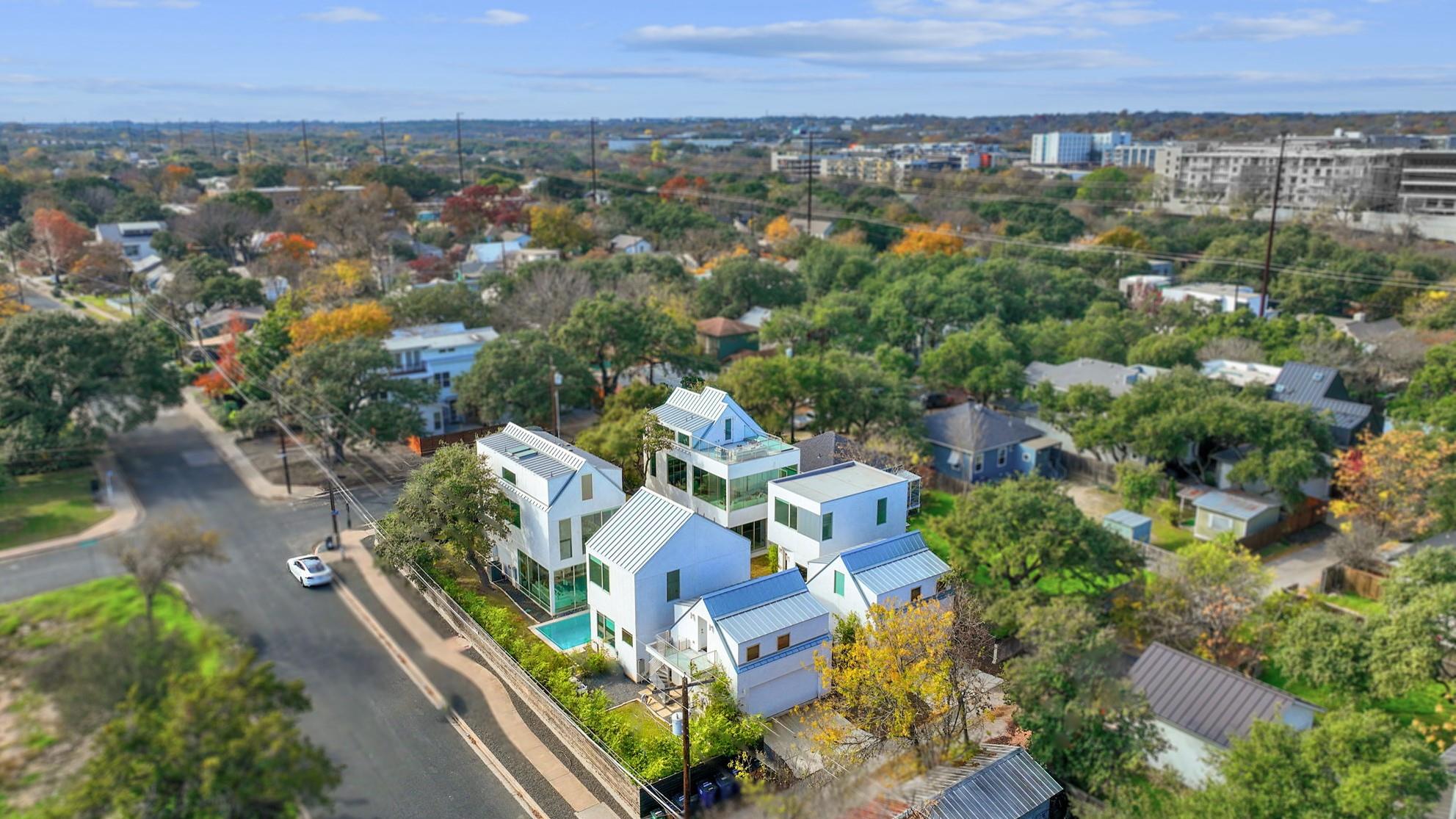 Welcome to this extraordinary compound of custom-built houses inspired by the enchanting architecture of Santorini, nestled in the vibrant Bouldin Neighborhood of Austin, Texas. This exclusive property is a rare gem, blending Grecian charm and modern Austin flair. As you enter the compound, you're immediately greeted by the dazzling white exteriors and iconic stone accents reminiscent of the stunning Greek island. The compound boasts a total of 15 bedrooms spread across multiple residences, making it an ideal investment for both private living and lucrative short-term rental opportunities. Each home features many windows that bathe the interiors in natural light. The open-plan living areas are perfect for entertaining, creating an inviting atmosphere for friends and family gatherings. The interiors exude a minimalist elegance focusing on high-quality finishes and seamless indoor-outdoor living. The centerpiece of the compound is a tranquil, resort-style pool, offering a peaceful oasis where residents can relax and unwind. The pool area is a perfect setting for enjoying Austin's sunny days and starlit nights. The property affords breathtaking views of downtown Austin, allowing residents to soak in the city's dynamic skyline. This urban retreat is surrounded by lush bamboo landscaping, ensuring privacy and a serene environment. Location is key, and this compound is just moments away from some of Austin's most famous local restaurants, including Terry Black’s Barbecue and Uchi. It's a food lover's paradise with a plethora of dining options to explore. Additionally, the proximity to Zilker Park offers endless outdoor activities, from jogging trails to music festivals. For shopping enthusiasts and nightlife seekers, the compound is conveniently located near a variety of local shops and music bars, embodying the vibrant spirit of Austin. This unique property is not just a home offers an unparalleled living experience in one of Austin's most sought-after neighborhoods.