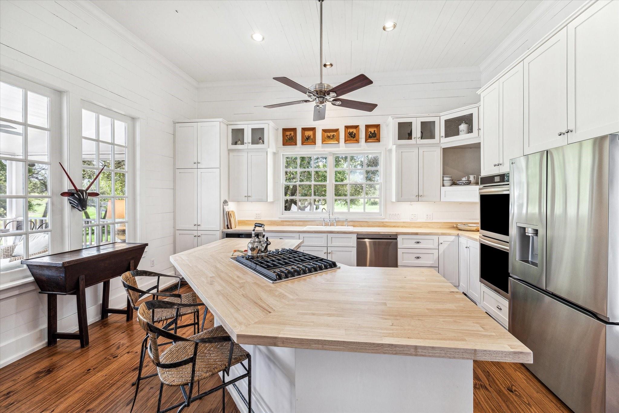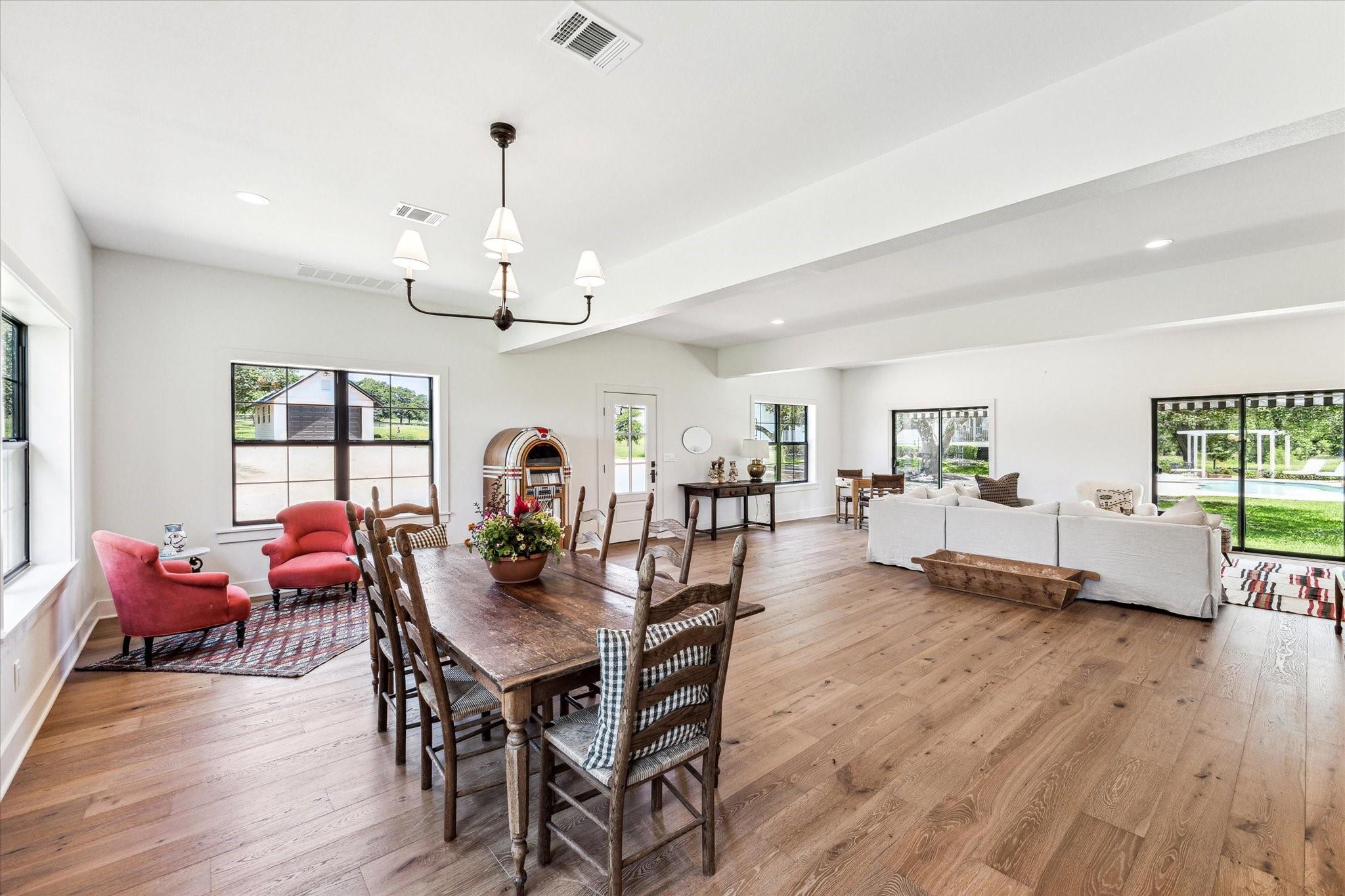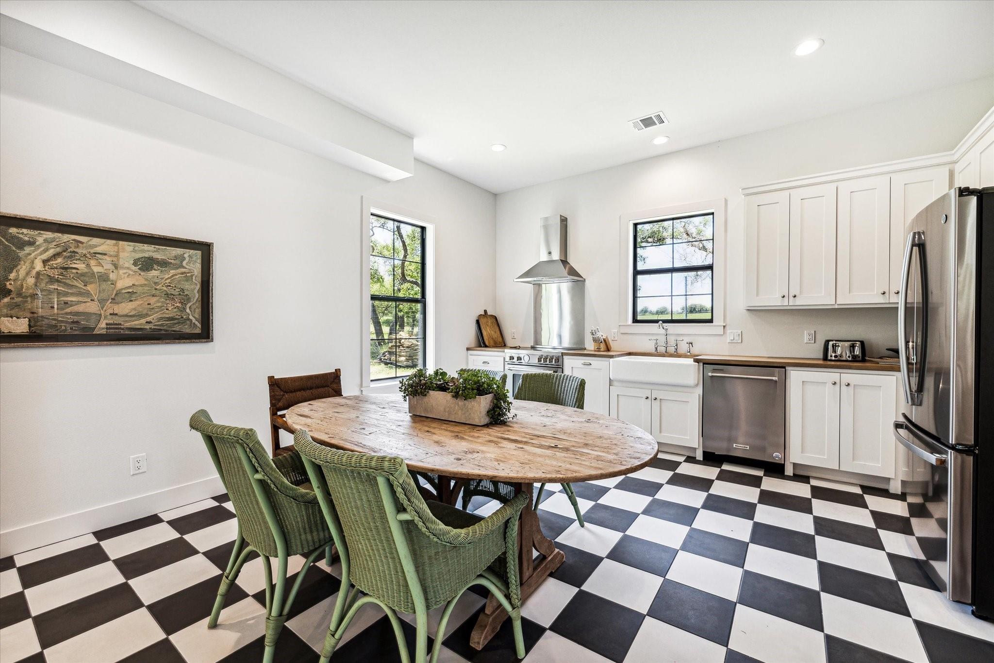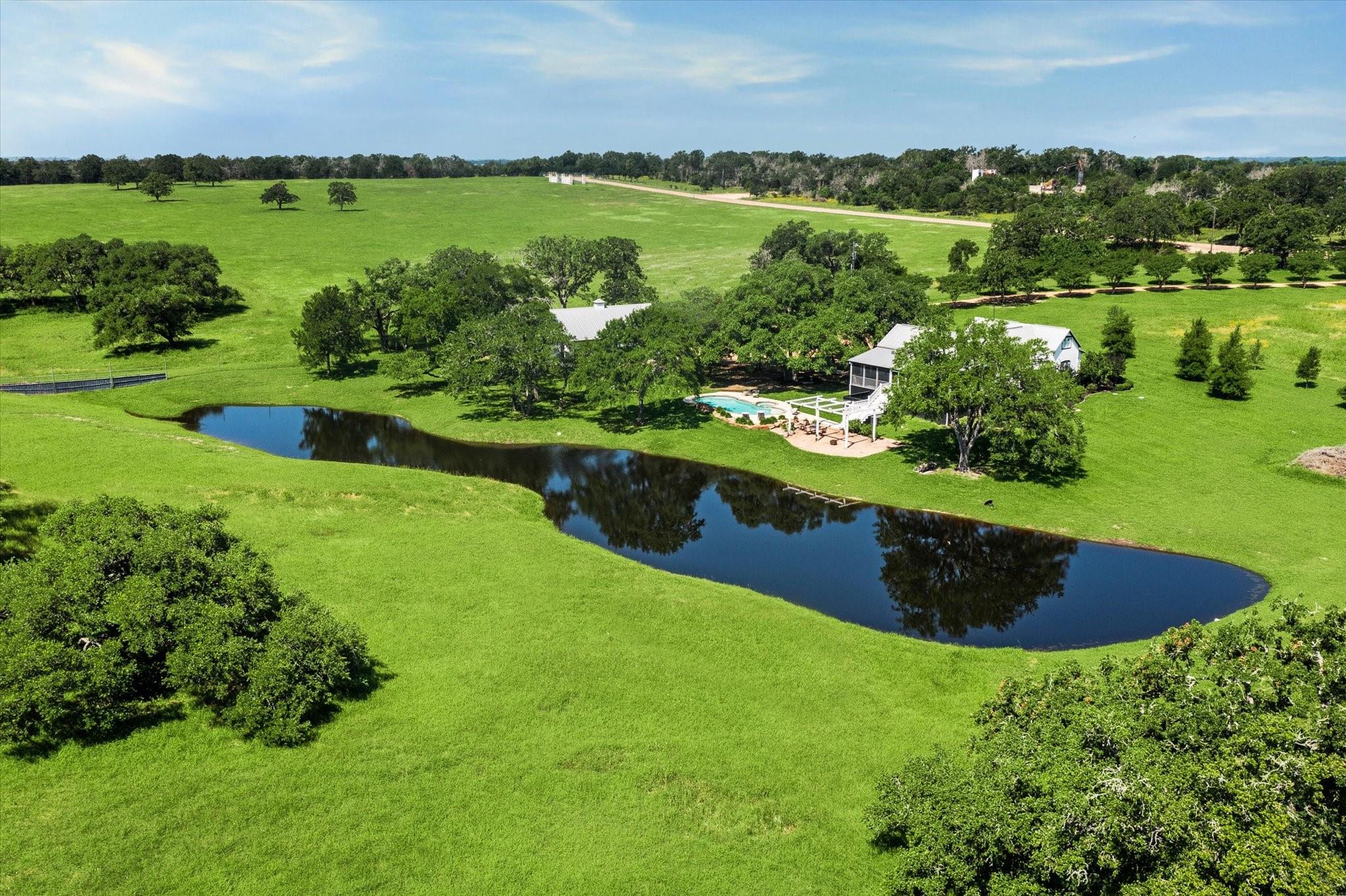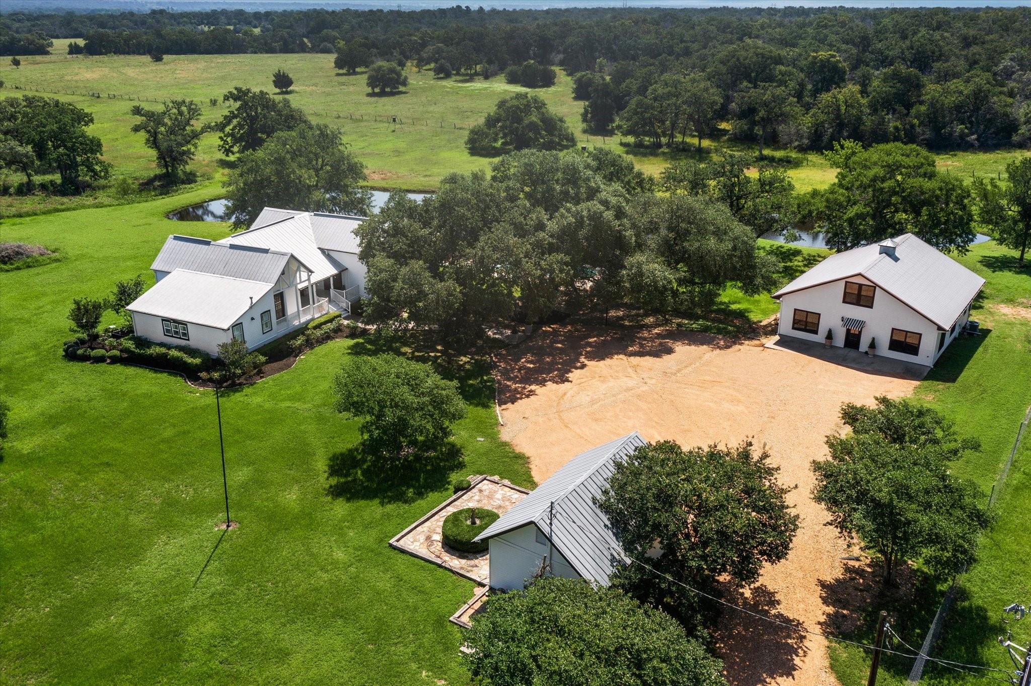 Gorgeous 10-acre country property only 7 minutes from Round Top square. Remodeled 1800’s farmhouse (2334 sf) has 3 bed/2.5 bath with brand new kitchen. All new stainless-steel appliances, farmhouse sink and butcher block countertops. Island with gas cooktop, bar seating and breakfast nook. Guest House (2300 sf) with 2 bed/1.5 bath has large living/dining area and kitchen. The pool is steps away from the main and guest houses. Main house has spacious living room that opens to dining area and kitchen. Off the living room, an inviting screened porch (40x13) overlooking the pond and pool. A lovely pergola sits at the bottom of the porch stairs. The pool with stone decking and waterfall completes this expanded outdoor living space. Primary bedroom downstairs with sitting area, large bathroom with separate shower, jet tub and large walk-in closet. Upstairs there are 2 guest bedrooms, a bunk room, sitting area and full bath. Agricultural tax exemption in place. Excellent rental opportunities.