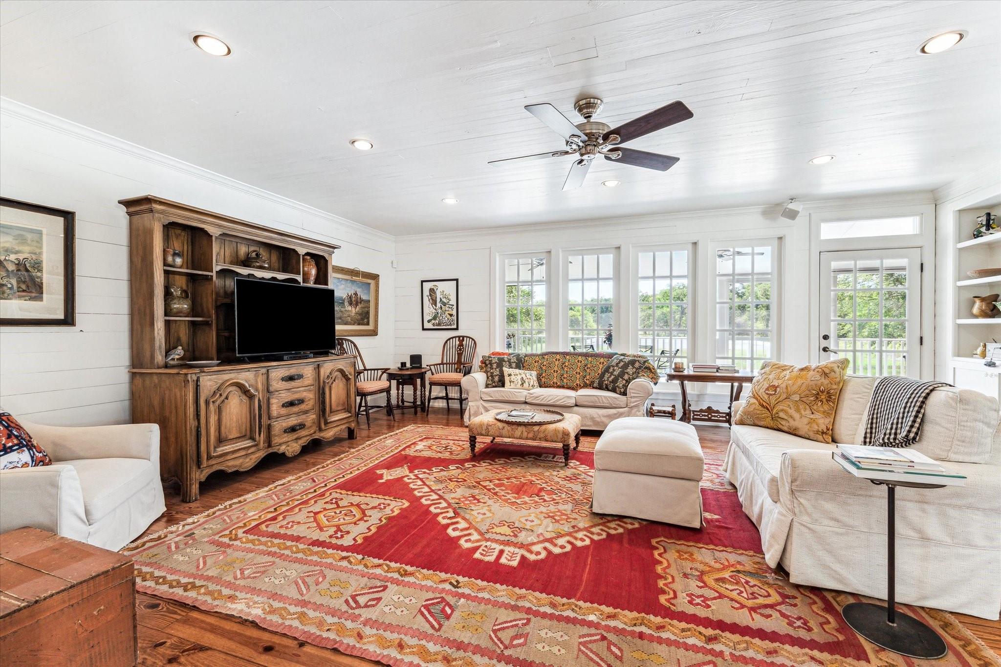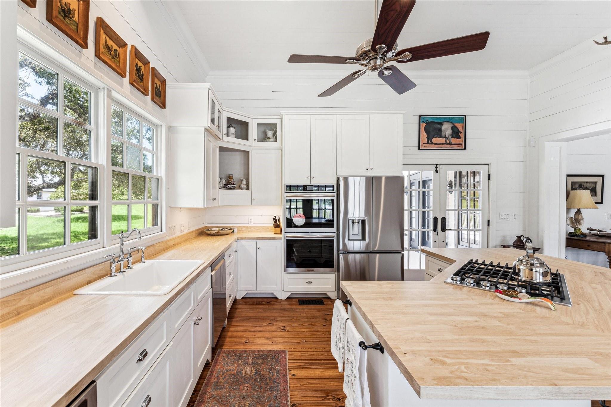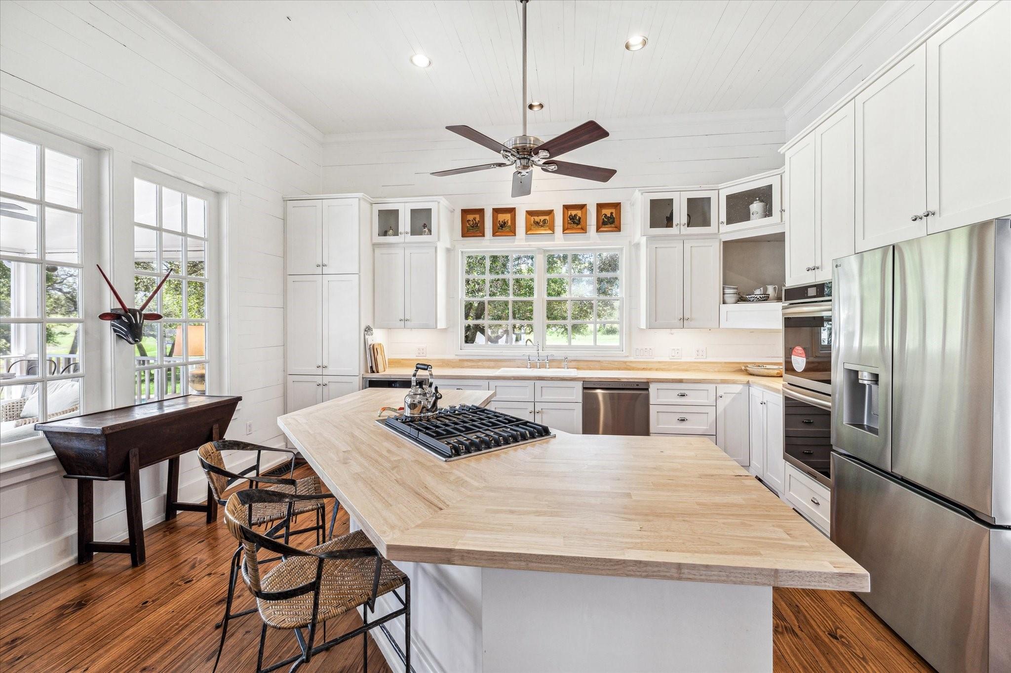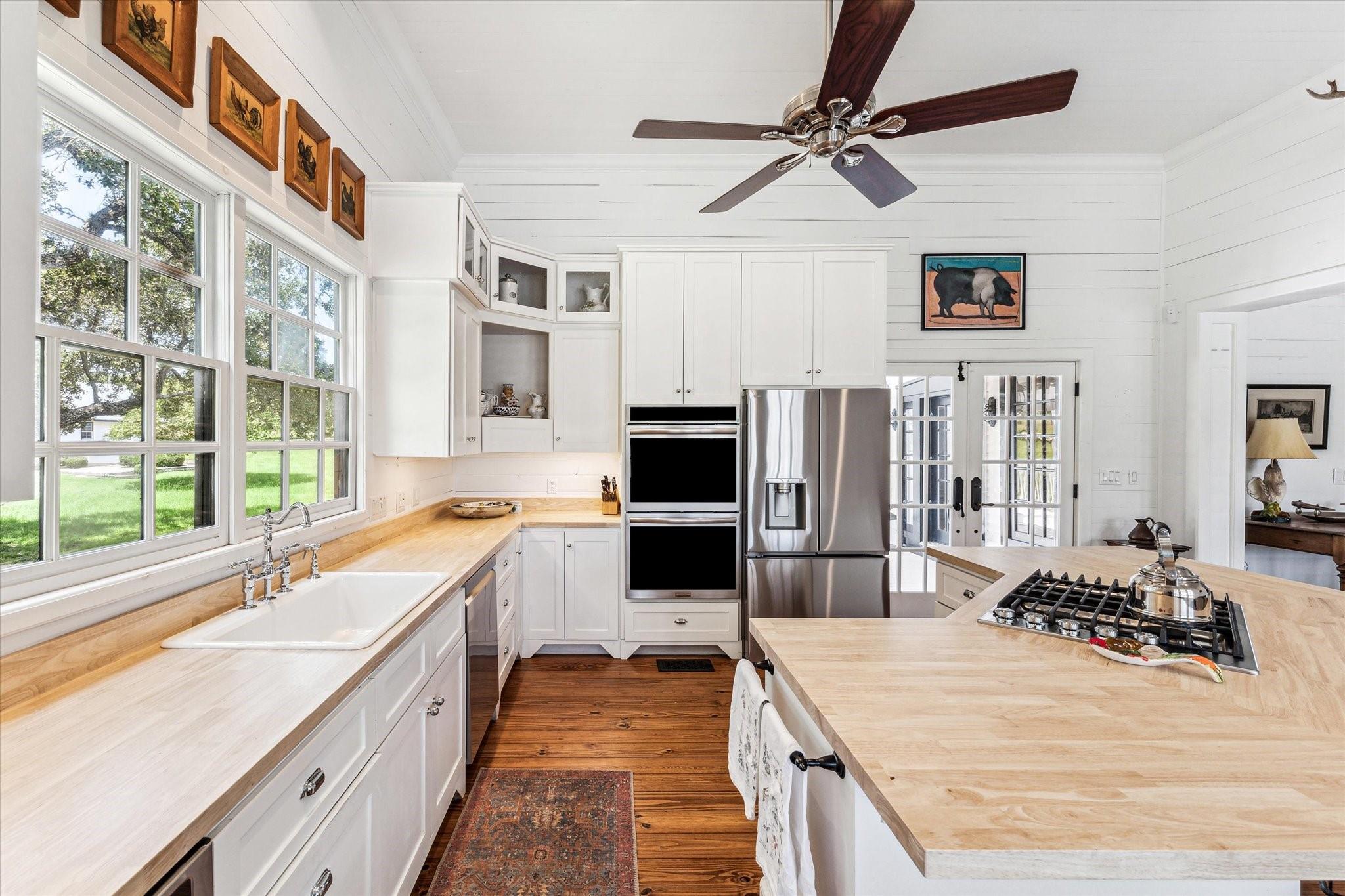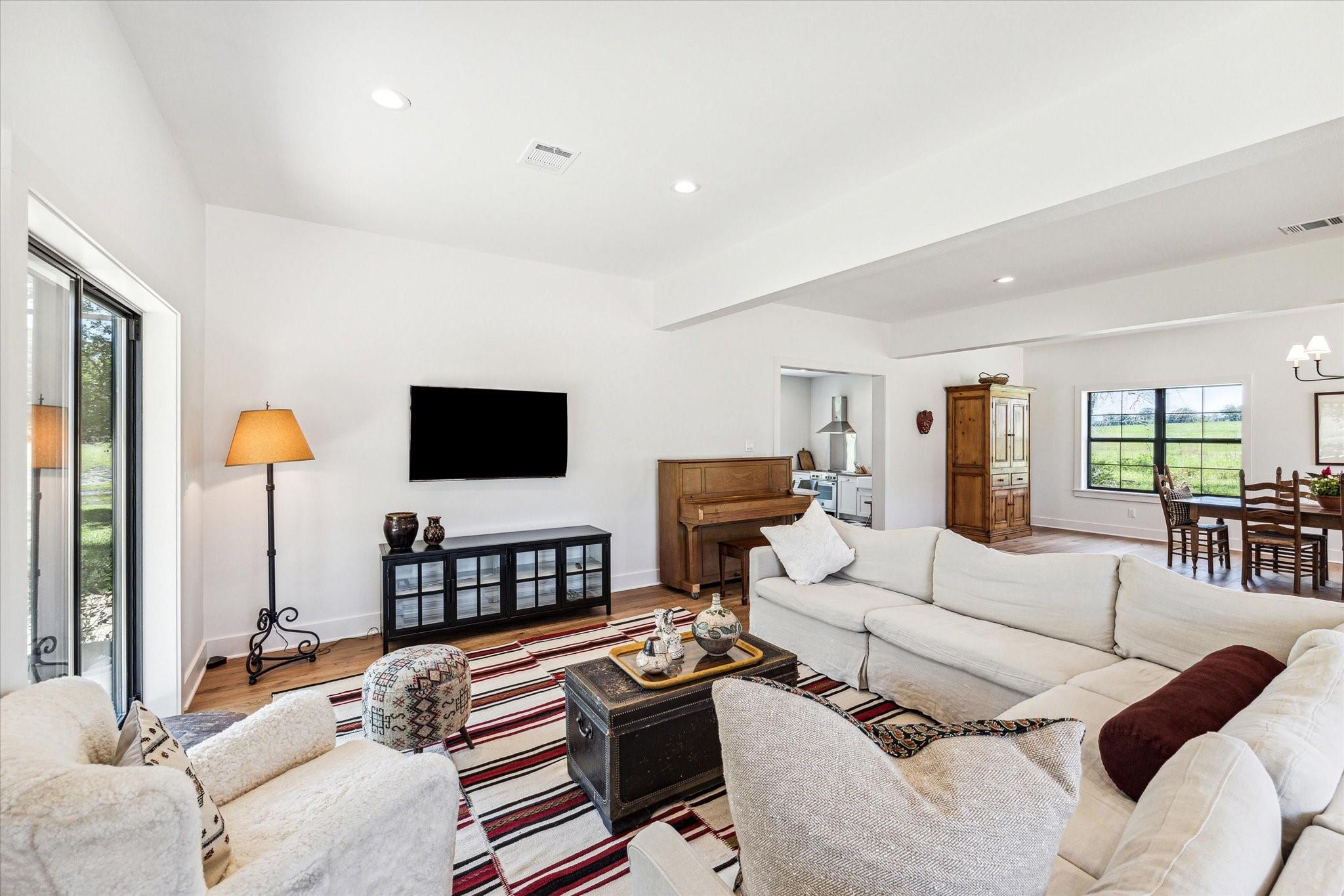 Gorgeous 10-acre country property only 7 minutes from Round Top square. Remodeled 1800’s farmhouse (2334 sf) has 3 bed/2.5 bath with brand new kitchen. All new stainless-steel appliances, farmhouse sink and butcher block countertops. Island with gas cooktop, bar seating and breakfast nook. Guest House (2300 sf) with 2 bed/1.5 bath has large living/dining area and kitchen. The pool is steps away from the main and guest houses. Main house has spacious living room that opens to dining area and kitchen. Off the living room, an inviting screened porch (40x13) overlooking the pond and pool. A lovely pergola sits at the bottom of the porch stairs. The pool with stone decking and waterfall completes this expanded outdoor living space. Primary bedroom downstairs with sitting area, large bathroom with separate shower, jet tub and large walk-in closet. Upstairs there are 2 guest bedrooms, a bunk room, sitting area and full bath. Agricultural tax exemption in place. Excellent rental opportunities.