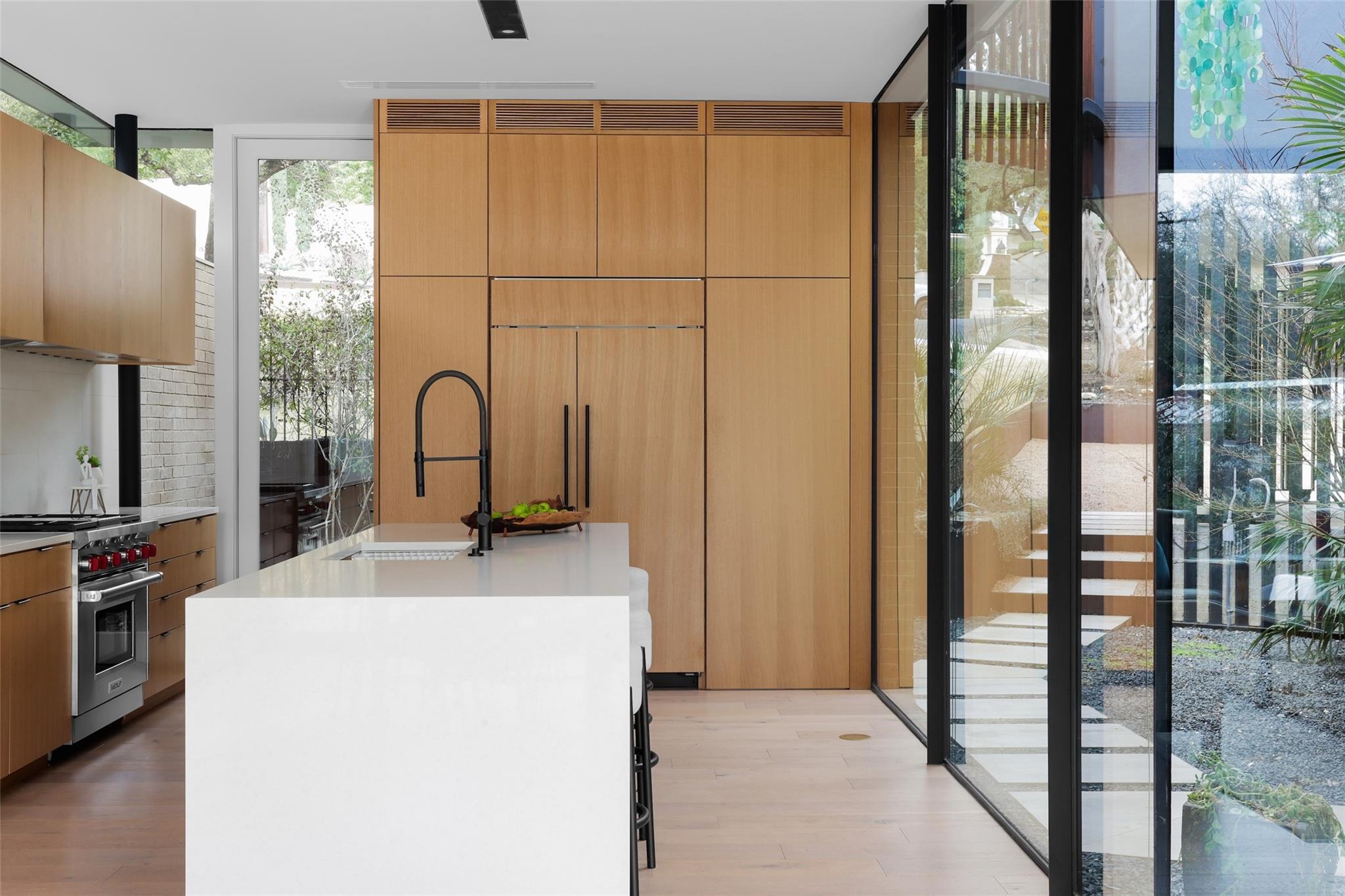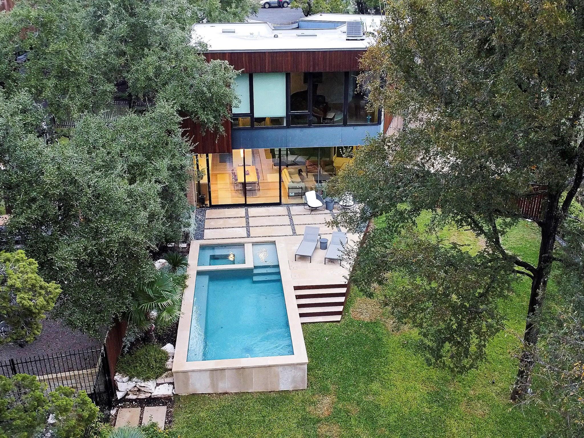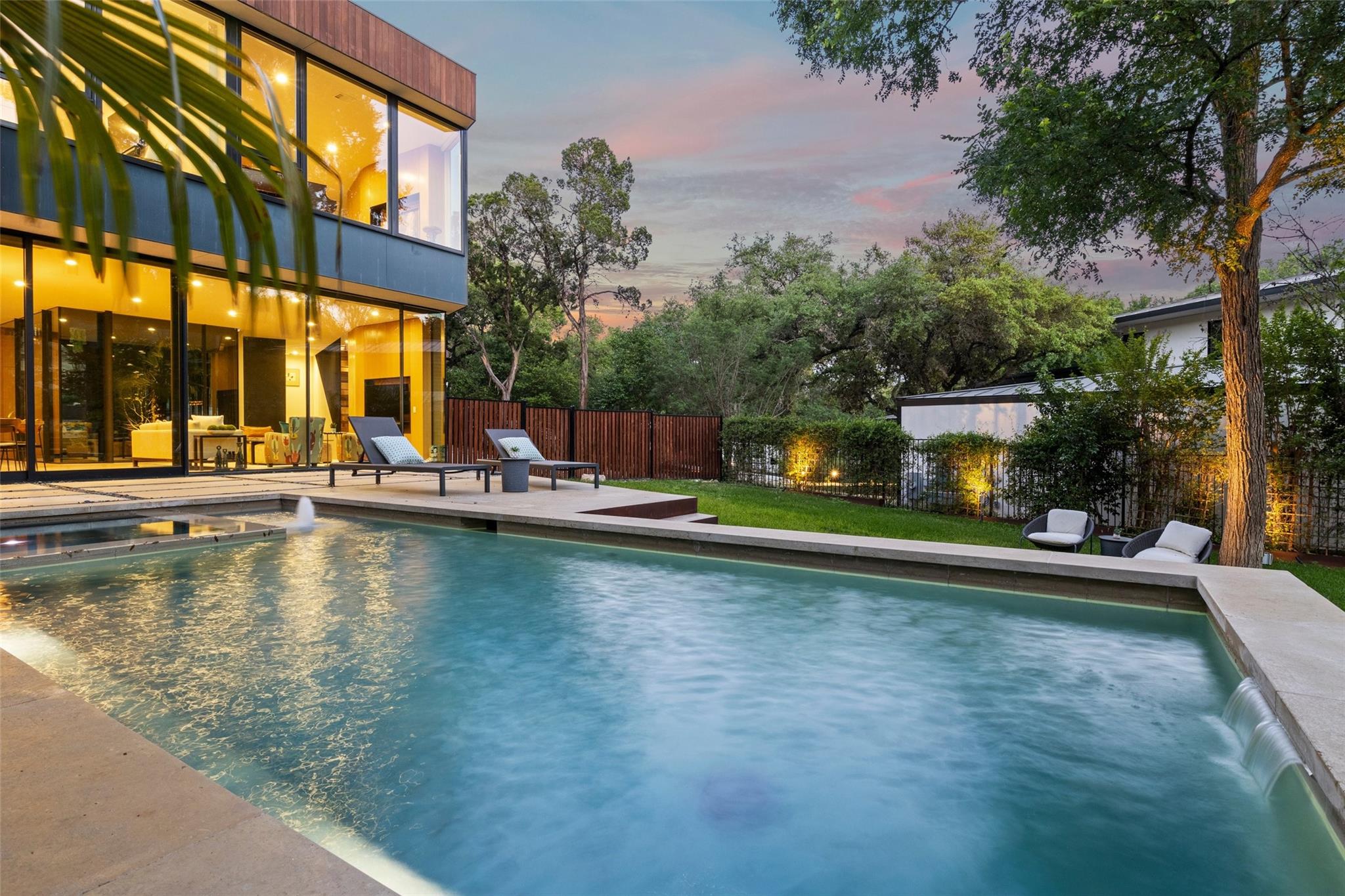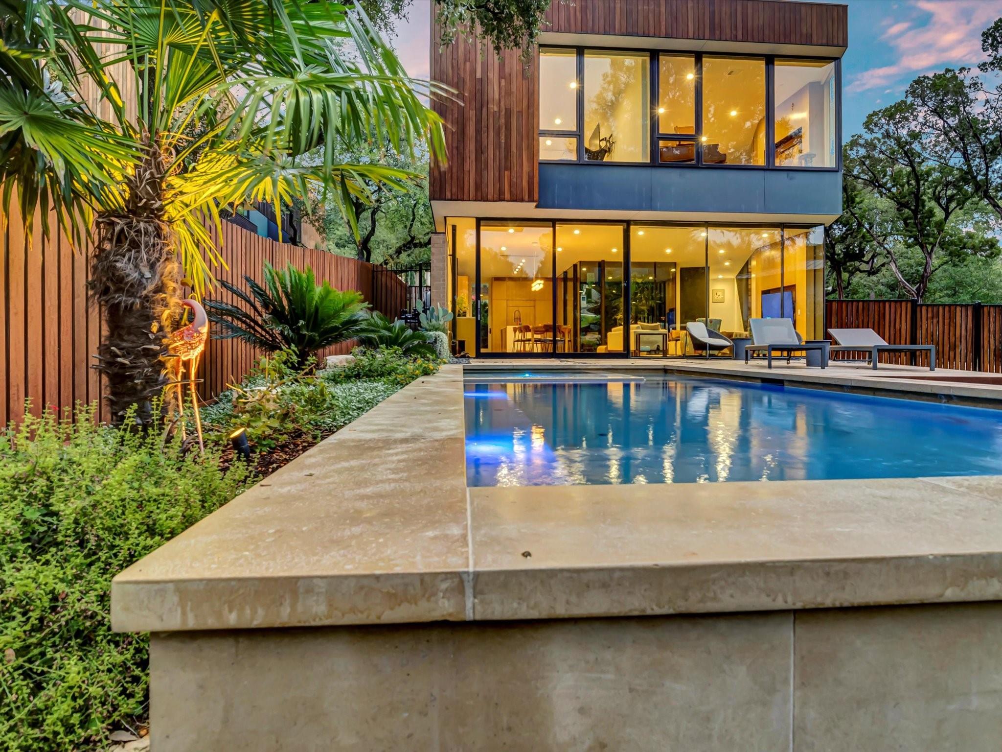 Elegantly nestled next to the coveted hills of Westlake, this contemporary marvel, designed by Alterstudio Architecture and crafted by Abode Modern Homes, epitomizes sophisticated living. Located on the prestigious Stratford Drive, minutes from downtown and a stroll away from Zilker Park, the residence seamlessly blends luxury with an enviable location. Floor-to-ceiling, site-glazed windows grace the entire home, illuminating wide white oak flooring that flows through the living and dining rooms and the kitchen. Equipped with a Sub Zero refrigerator and a Wolf gas range, the kitchen is a culinary sanctuary. Beautiful imported tile and contemporary fixtures add refinement throughout. High-end designer touches are sprinkled throughout the thoughtful floor plan of this home, include the main bathroom created of Silverthorn travertine slabs and Calacatta Lincoln marble countertops. As you walk up the custom architectural staircase, you are greeted by a second living area with more expansive windows overlooking the glistening pool and backyard. Upstairs, you have the main bedroom with two other bedrooms, two full bathrooms and two laundry rooms. What could be more appealing than this huge lot? Past the back fence line, is gorgeous undeveloped land that is also part of this property. It can be used for a future guest home, or keep it as it for all of its natural beauty. Perhaps an ADU? Details would need to be verified with the City of Austin. This is more than a home; it's a haven of sophistication. This residence is a celebration of lifestyle, merging sleek aesthetics with thoughtful functionality. With meticulous craftsmanship and a prime location, this contemporary gem invites you to embrace modern elegance in the heart of Westlake. Don't miss the chance to make this exceptional residence your own.