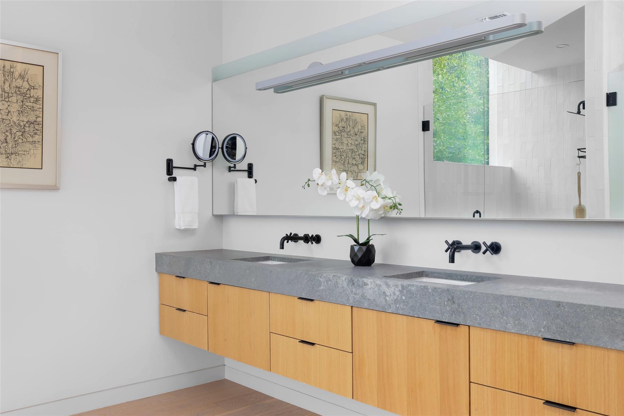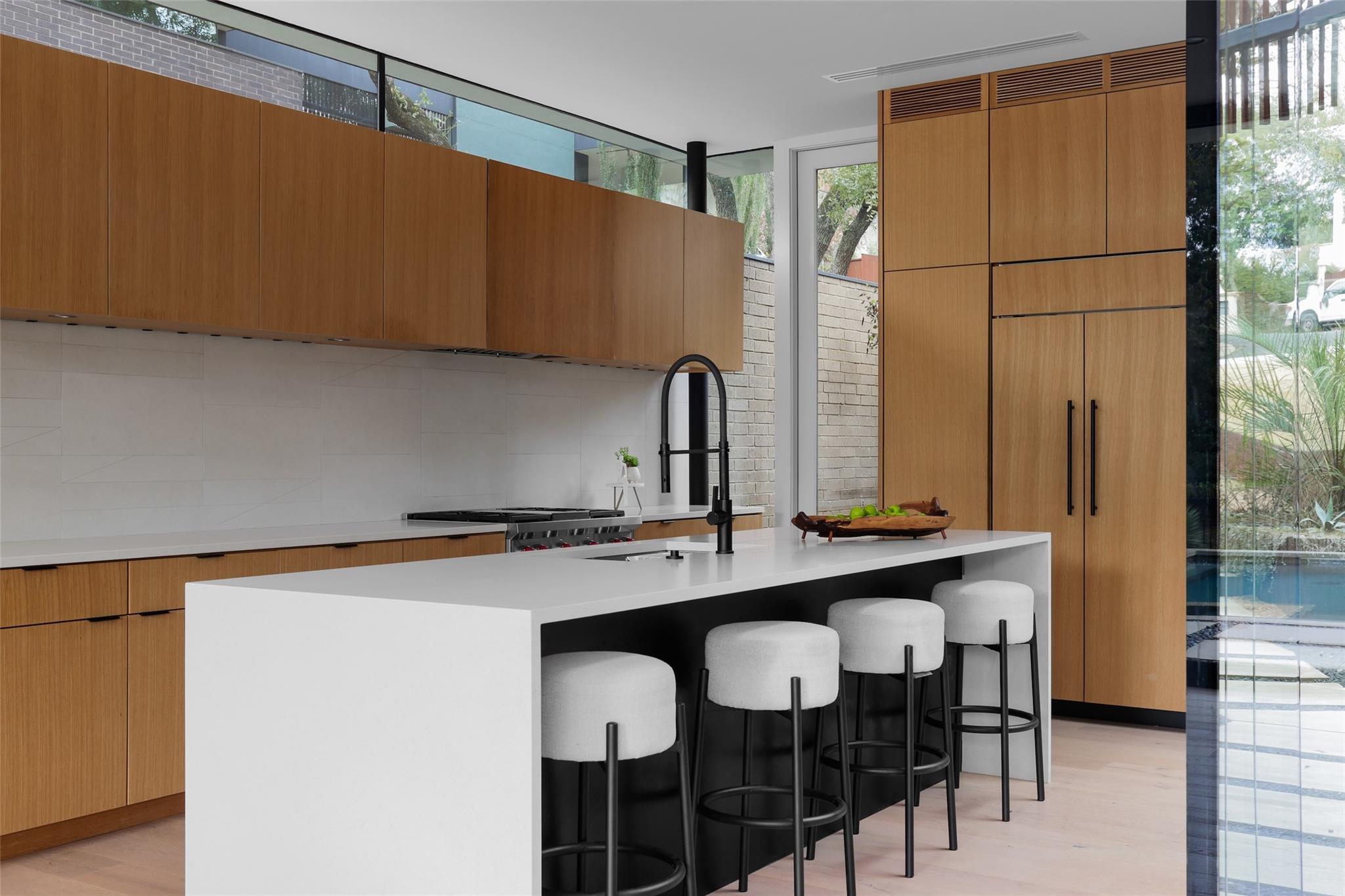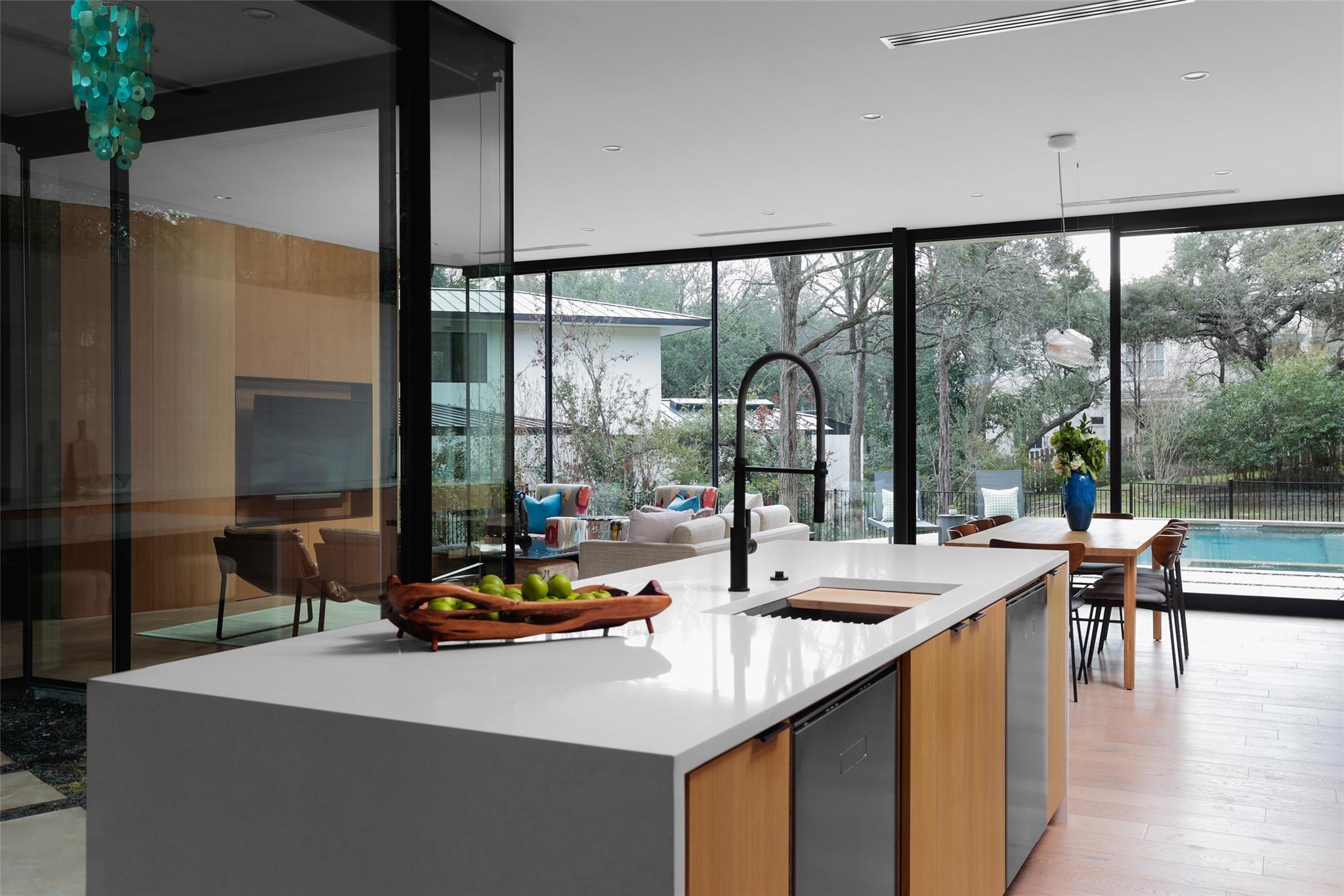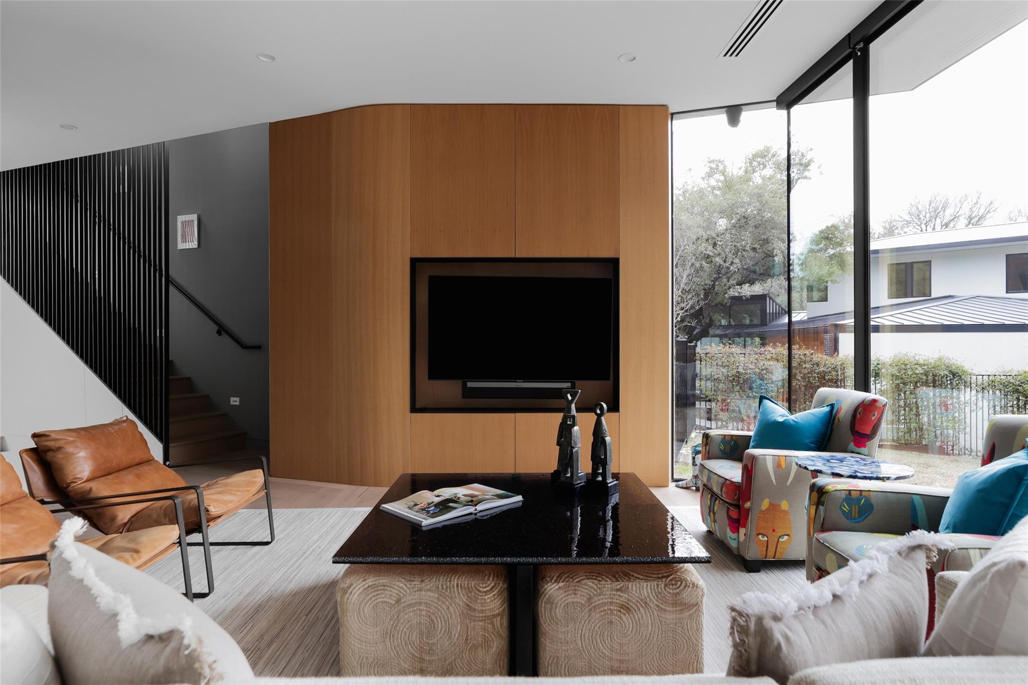 Elegantly nestled next to the coveted hills of Westlake, this contemporary marvel, designed by Alterstudio Architecture and crafted by Abode Modern Homes, epitomizes sophisticated living. Located on the prestigious Stratford Drive, minutes from downtown and a stroll away from Zilker Park, the residence seamlessly blends luxury with an enviable location. Floor-to-ceiling, site-glazed windows grace the entire home, illuminating wide white oak flooring that flows through the living and dining rooms and the kitchen. Equipped with a Sub Zero refrigerator and a Wolf gas range, the kitchen is a culinary sanctuary. Beautiful imported tile and contemporary fixtures add refinement throughout. High-end designer touches are sprinkled throughout the thoughtful floor plan of this home, include the main bathroom created of Silverthorn travertine slabs and Calacatta Lincoln marble countertops. As you walk up the custom architectural staircase, you are greeted by a second living area with more expansive windows overlooking the glistening pool and backyard. Upstairs, you have the main bedroom with two other bedrooms, two full bathrooms and two laundry rooms. What could be more appealing than this huge lot? Past the back fence line, is gorgeous undeveloped land that is also part of this property. It can be used for a future guest home, or keep it as it for all of its natural beauty. Perhaps an ADU? Details would need to be verified with the City of Austin. This is more than a home; it's a haven of sophistication. This residence is a celebration of lifestyle, merging sleek aesthetics with thoughtful functionality. With meticulous craftsmanship and a prime location, this contemporary gem invites you to embrace modern elegance in the heart of Westlake. Don't miss the chance to make this exceptional residence your own.