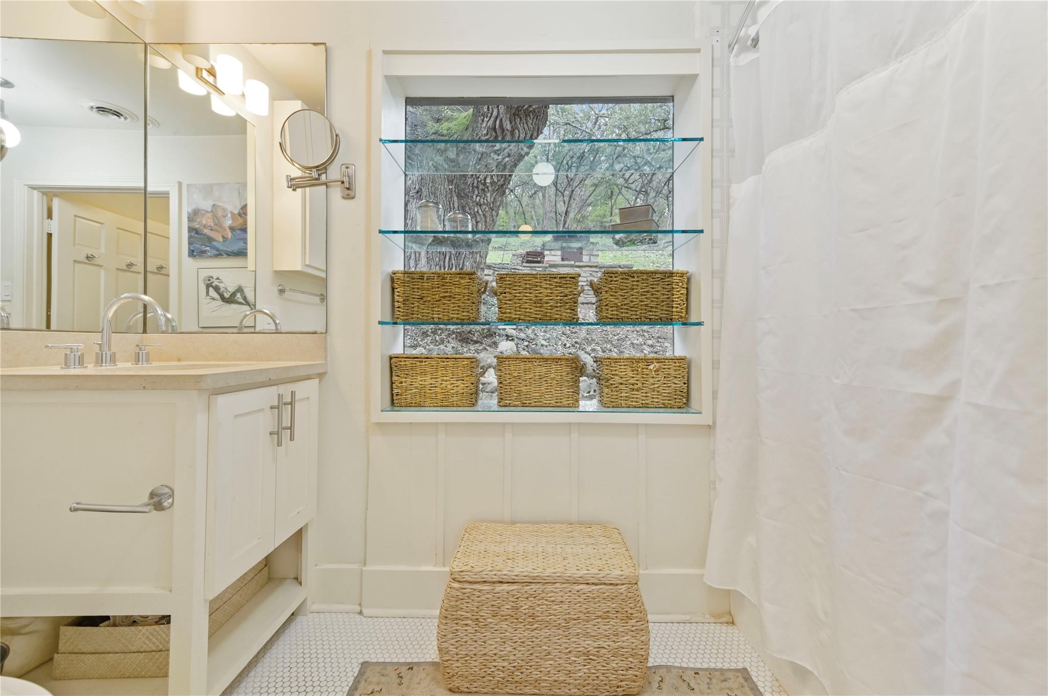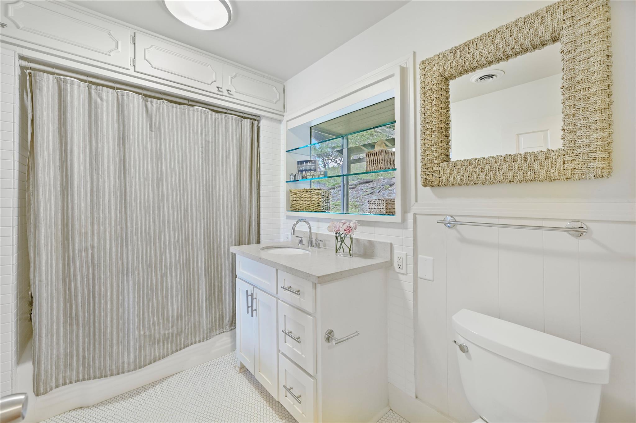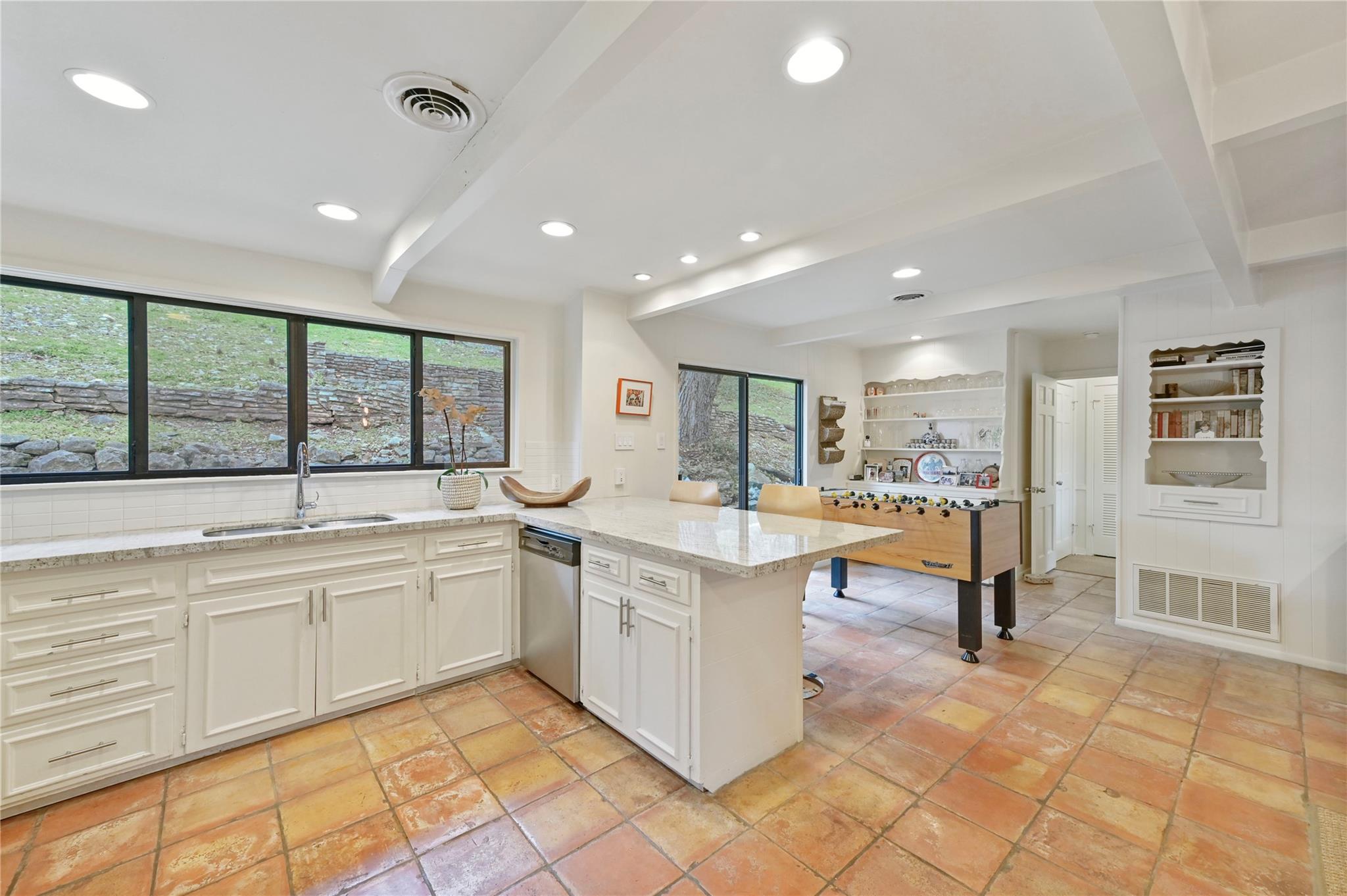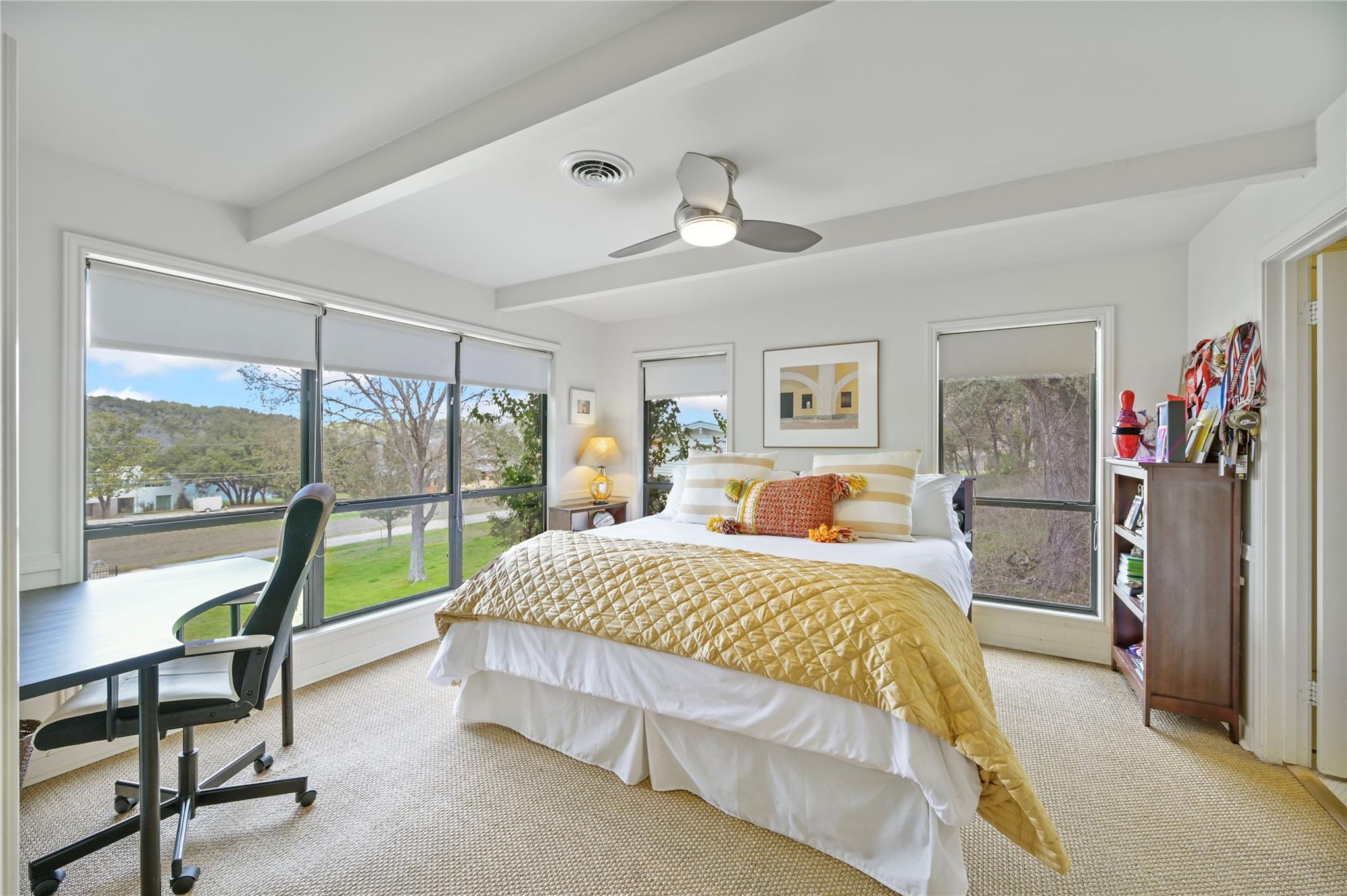 An amazing deal for a boat dock on Lake Austin...with a perfect lake house hangout! Panorama Ranch is made up of just 20 properties. It's at the bottom of picturesque Commons Ford Road, and once you arrive, you're in a world of your own. It feels like a throwback to a community from decades ago where the pace is relaxed, and neighbors look after one another. As you pull into the neighborhood, you'll likely see somebody walking their dog, or kids with their friends playing in the open meadow, or getting suited up to go out on the lake. What makes Panorama Ranch so unique is its private access to Lake Austin. There are 11 homes directly on the water and the remaining homesites all enjoy a private boat slip within the neighborhood. The house is perfectly nice and livable/useable. Upstairs offers 2 bedrooms and 2 baths with a downstairs office/bedrooms/bathroom. There's a little "peek" of a view of the water if you squint just right. Teriffic lot, THE BEST little neighborhood in Austin and the coveted boat dock. You'll never regret buying this and there's no way you'll find a more affordable option in Westlake with access to a boat dock. Call or text me and let's set you up on a tour!