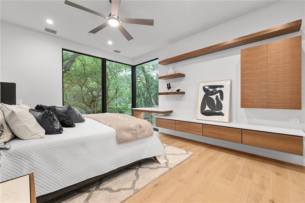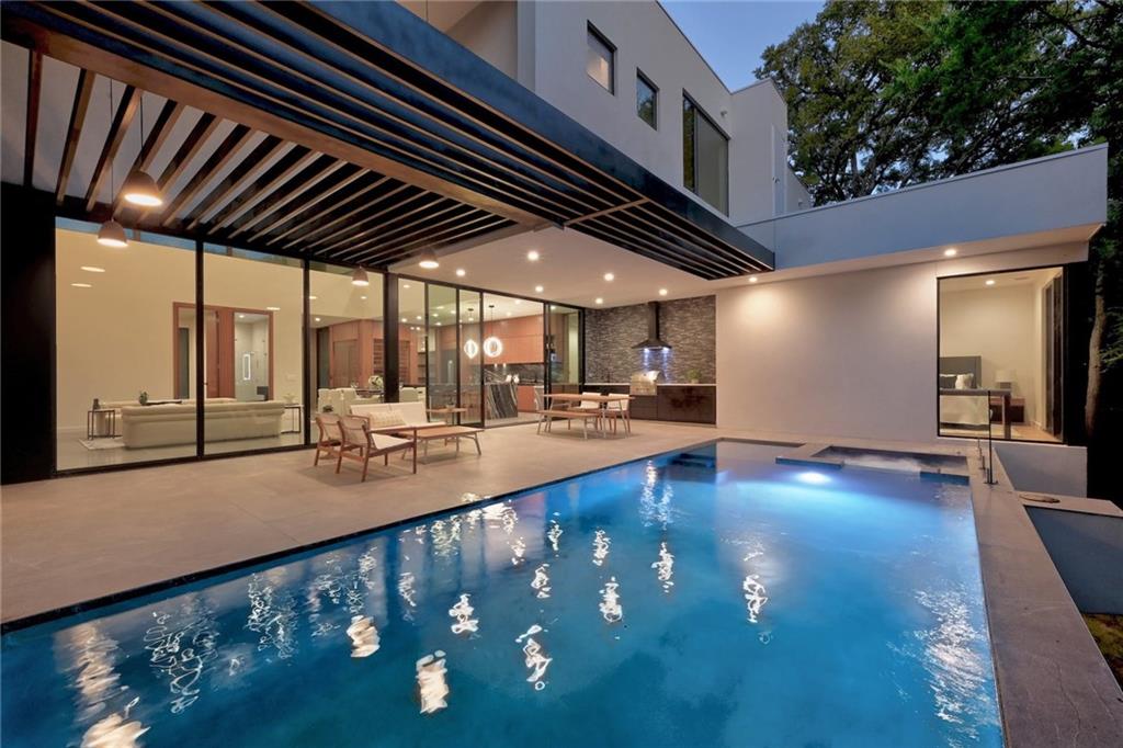 Nestled in the rolling hills of Westlake, this amazing modern new construction home exudes luxury and will reflect the personality and taste of those accustomed to the best in quality design, finishes, and lifestyle. Designed by the acclaimed architect Bernardo Pozas, the home is constructed over 2 levels and boasts 3,720 square feet with quality finishes and modern amenities at every turn. The interior offers open-concept living with soaring ceilings, large scale windows that usher the natural light inside, and gorgeous porcelain tile flooring that seamlessly connects each living space. The incredible custom designed wine cellar near the entry will leave you speechless. Curate delicious meals in the designer kitchen complete with a large center island with a waterfall edge, upgraded quartz countertops, an abundance of custom walnut cabinetry, and upscale stainless-steel appliances including a gas range and refrigerator. The primary retreat is tucked away on the main floor with hardwood flooring, custom-built shelving, and large-scale windows with stunning tree-top views. The sumptuous primary suite is a haven of relaxation with a floating dual quartz-topped vanity, porcelain tile flooring, a make-up vanity, and an impressive frameless modern-style tub/shower combo. Enjoy a massive custom-built closet with tons of built-in storage to display your ensembles. The main floor also hosts a home office with built-in storage - a perfect work-from-home arrangement. A modern floating staircase invites you to the 2nd floor which hosts a 2nd living area, 3 en-suite bedrooms, and a sprawling terrace perfect for hosting elegant gatherings. Enjoy a spectacular completely private backyard backing to Eanes Creek greenbelt featuring a modern outdoor kitchen with a gas grill and a luxurious pool/spa. Fabulous location within walking distance to award-winning Eanes ISD schools and less than 5 miles from Downtown Austin. Don't miss this rare opportunity!
