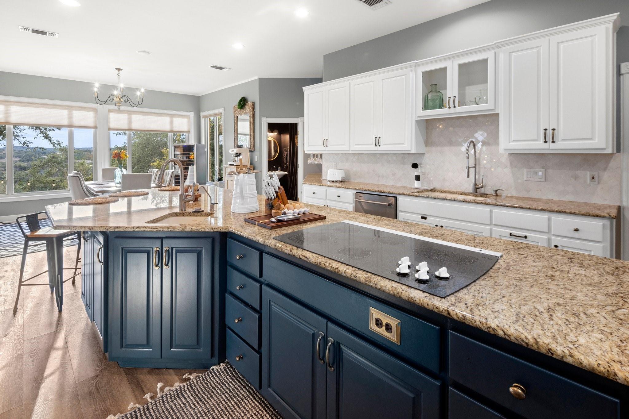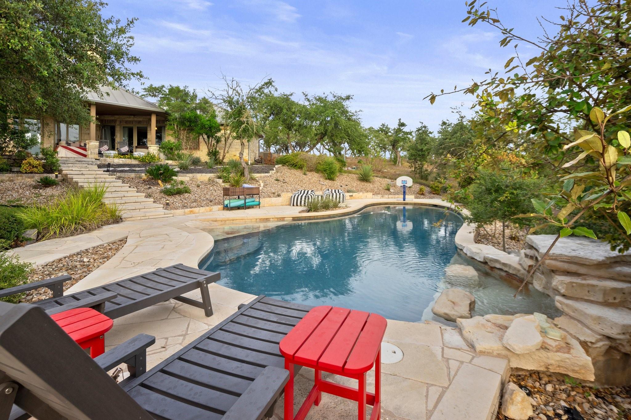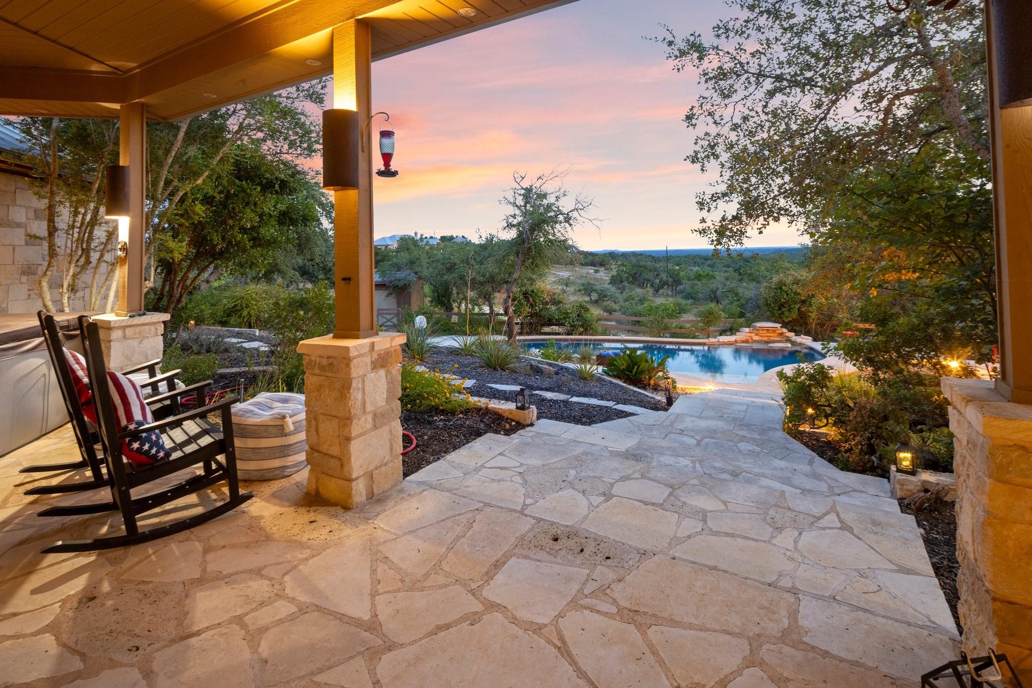 Beautiful Estate Home with privacy, solitude and views for miles! Main home recently updated plus a full 960sf 2/1 guest house/barn added along with a new Wildlife Exemption. Property is 2 legal lots and is centrally located halfway between Wimberley and Dripping Springs. This custom home was architecturally designed to take advantage of the long views beyond Devil's Backbone and spectacular sunsets. Huge covered back porch overlooking the resort style pool, pergola and native landscaping. The main house floor plan has 2 secondary bedrooms on a wing off of the large kitchen and the primary bedroom is separated from the main living areas of the home with a small office area. The kitchen is loaded with storage and can seat six plus people at the expansive center island. The dining/breakfast area has long views though the tall picture windows and is open to the family room. The home has many upgraded custom features and has been immaculately well kept and maintained. RV parking is hidden from the house off of the winding concrete driveway. Minimal restrictions allow for full enjoyment of the property and a Wildlife Exemption saves money on property taxes every year. Gated entry and beautiful heritage live oaks through out the property. Additional Wildlife Exempt 4 acre lot available for purchase to east of Lot 2 (home site).