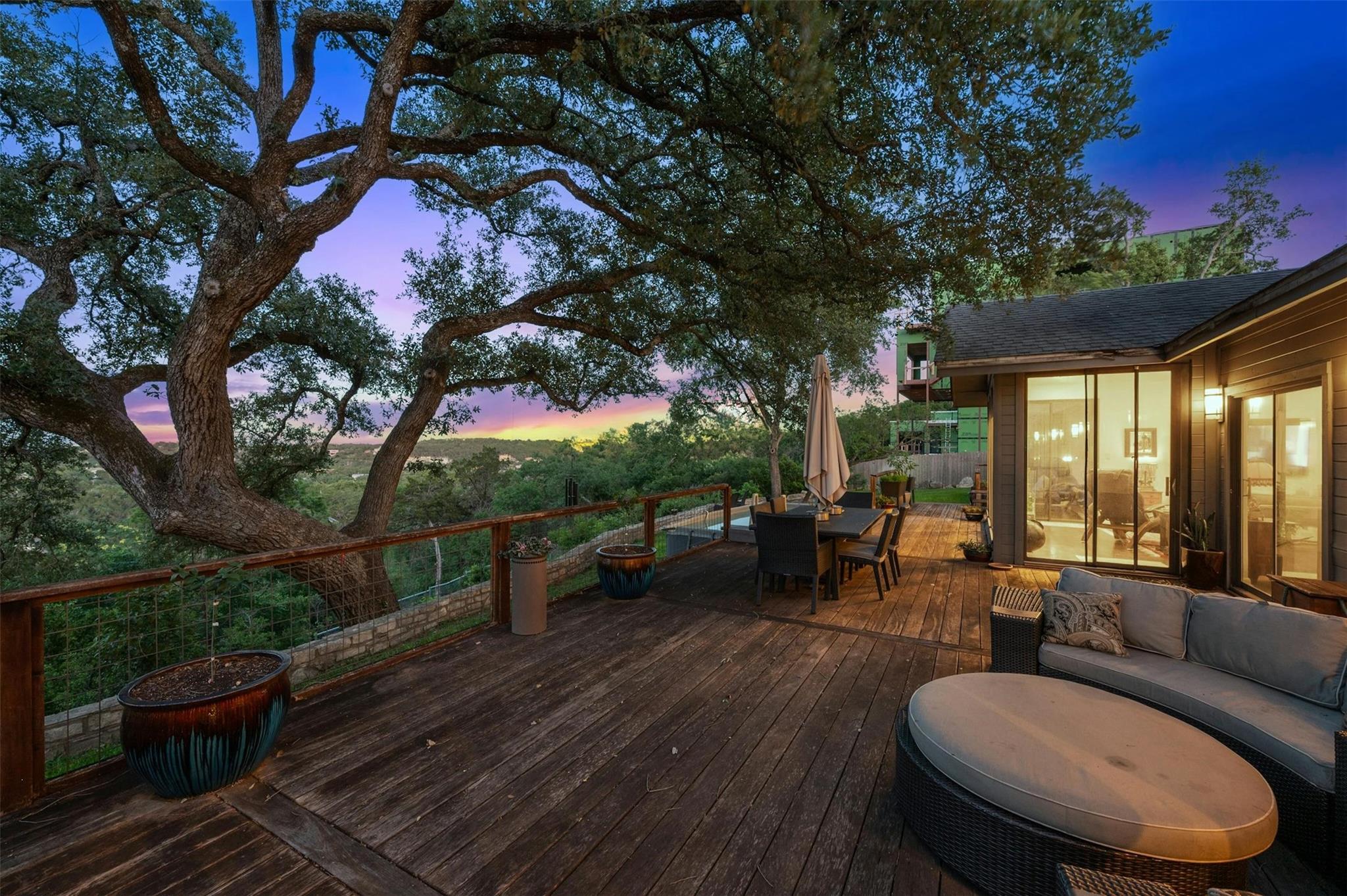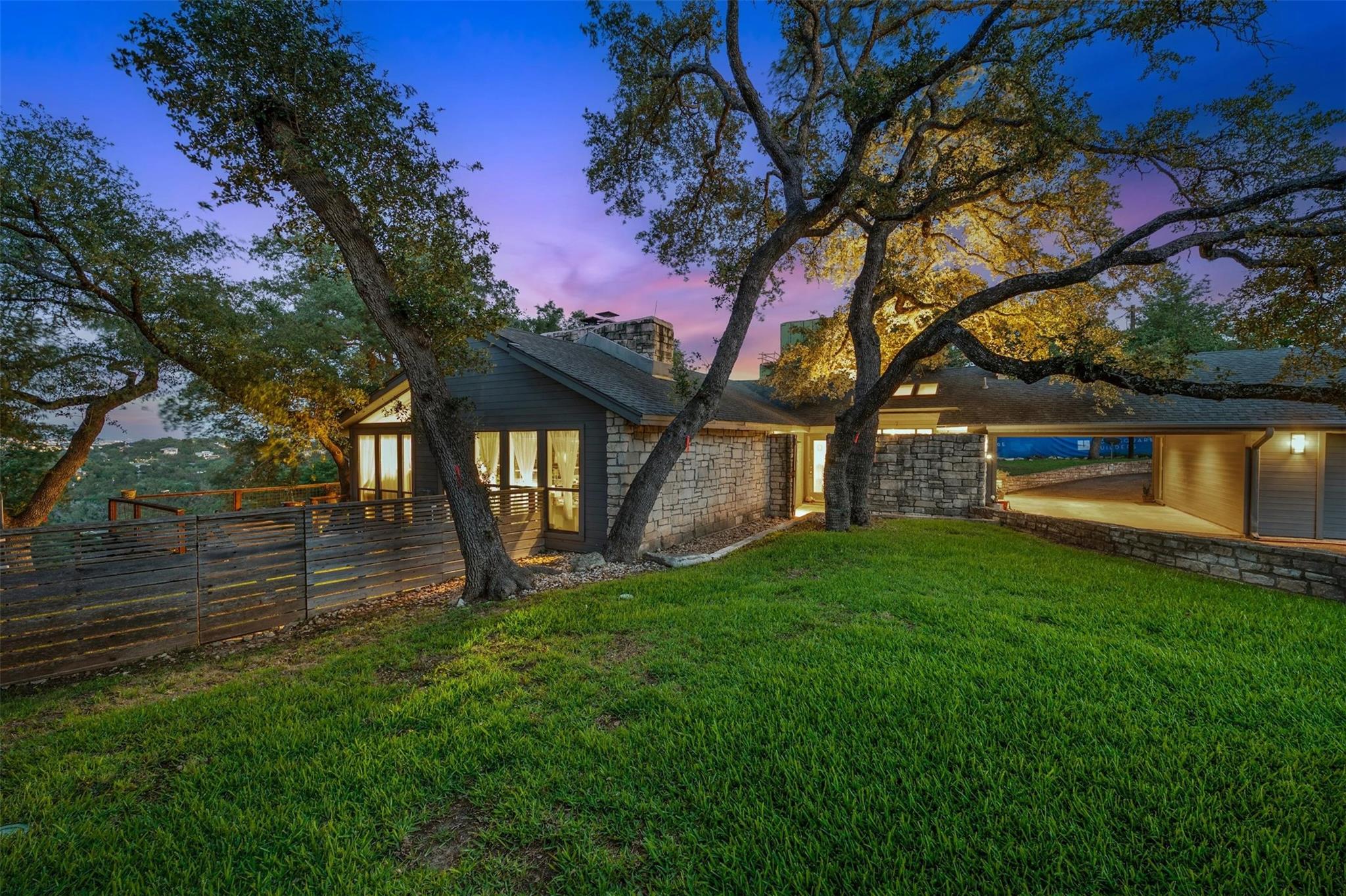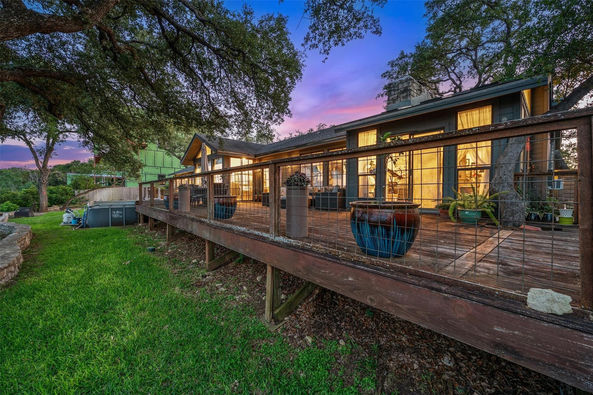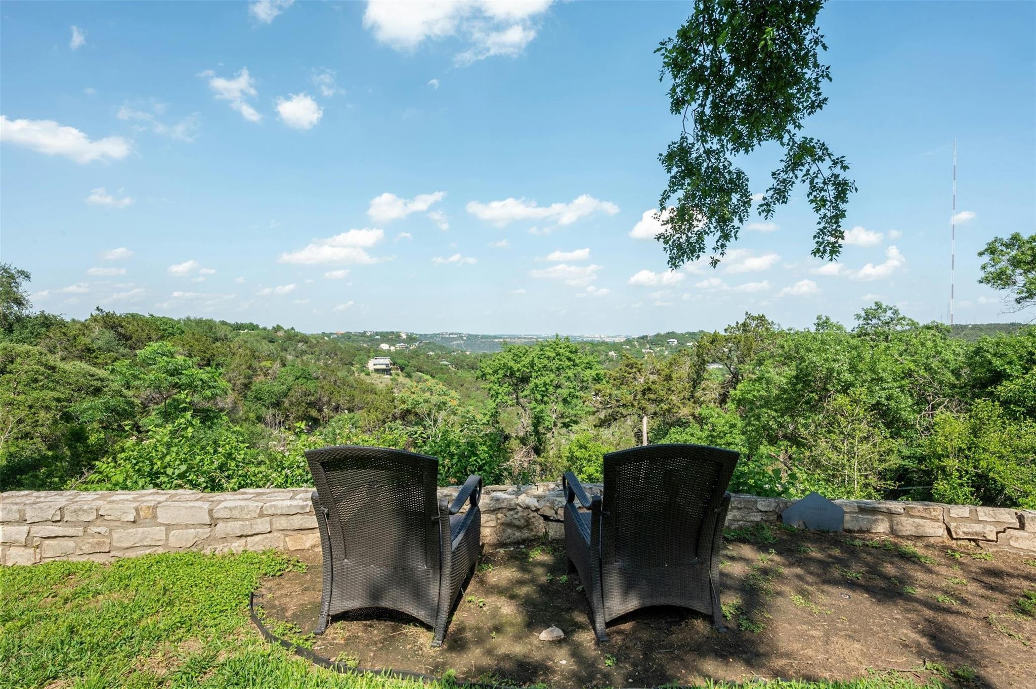 Welcome to this exceptional Westlake Highlands property, boasting unparalleled panoramic views that extend for miles from every room. Situated at one of the highest elevations in Eanes, this .62-acre lot offers sweeping vistas to the east and towards Mount Bonnell Downtown Austin, showcasing the iconic skyline. The property presents a multitude of possibilities - whether you choose to renovate the existing 1-story home or embark on a new construction project to bring your unique vision to life. Perched at one of the highest points in Westlake, this rare gem in Travis County offers a tranquil setting away from the western sun, with refreshing breezes prevailing. The backyard's elevated position is ideal for a stunning negative edge pool, creating a serene oasis for relaxation and entertainment. The permitting process in Travis County and the Highlands is notably more streamlined compared to the City of Austin or Westlake, providing a hassle-free experience for potential buyers. The existing home features an inviting open floorplan, with each room offering breathtaking views of the surrounding landscape. The expansive tiger-wood deck is perfect for hosting gatherings, while the custom kitchen is a chef's dream, designed by Kent Barnes and equipped with St Charles cabinets, double ovens, a gas cooktop, warming drawer, wine fridge, and high-end sub-zero appliances. The family room showcases a striking rock wall with a cozy fireplace, and the study opens up to a sunroom or workout area. Each bedroom is thoughtfully designed to capture canyon views, with vaulted ceilings and doors that lead out to the backyard. The home also has a circle drive with a pull through garage and large attic space. Additionally, the sellers can provide existing plans for a 2-story residence designed by architect Ben May, offering a glimpse into the endless possibilities for this remarkable property.