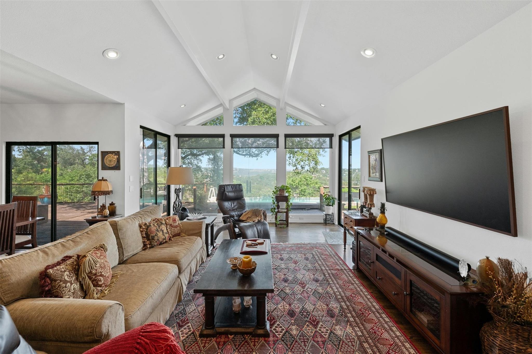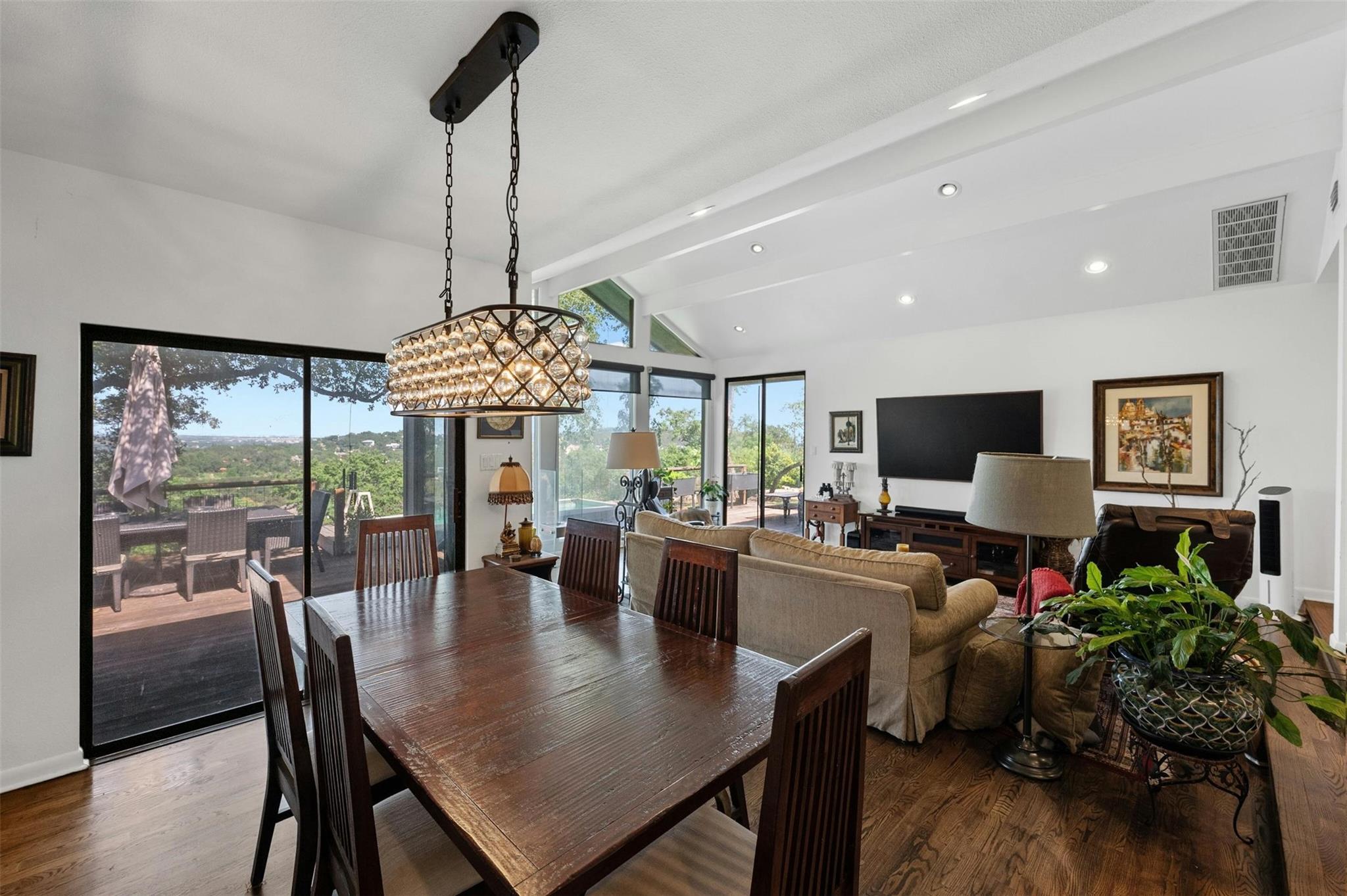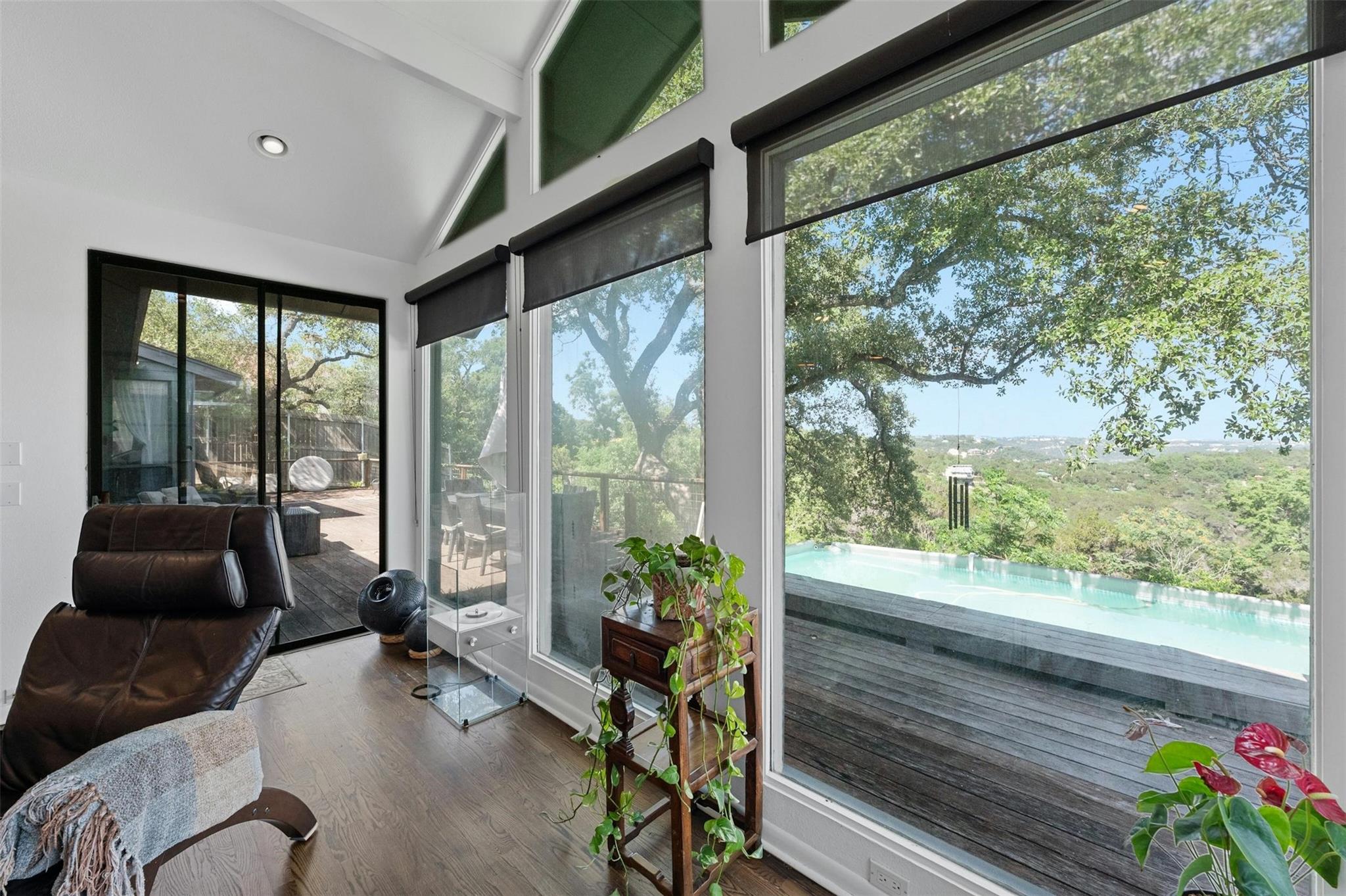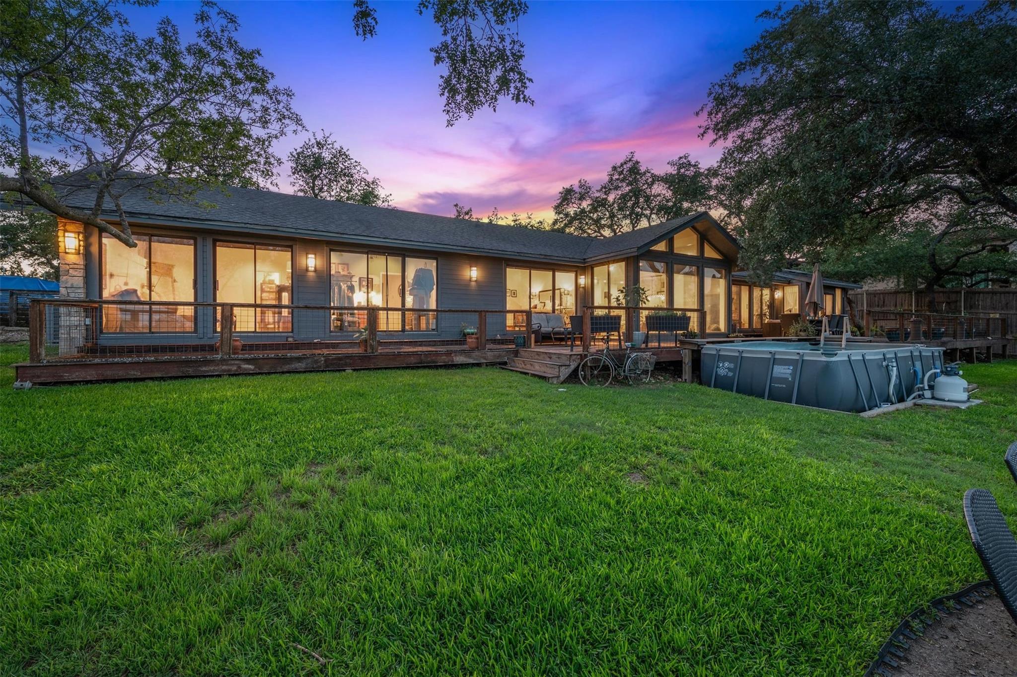 Welcome to this exceptional Westlake Highlands property, boasting unparalleled panoramic views that extend for miles from every room. Situated at one of the highest elevations in Eanes, this .62-acre lot offers sweeping vistas to the east and towards Mount Bonnell Downtown Austin, showcasing the iconic skyline. The property presents a multitude of possibilities - whether you choose to renovate the existing 1-story home or embark on a new construction project to bring your unique vision to life. Perched at one of the highest points in Westlake, this rare gem in Travis County offers a tranquil setting away from the western sun, with refreshing breezes prevailing. The backyard's elevated position is ideal for a stunning negative edge pool, creating a serene oasis for relaxation and entertainment. The permitting process in Travis County and the Highlands is notably more streamlined compared to the City of Austin or Westlake, providing a hassle-free experience for potential buyers. The existing home features an inviting open floorplan, with each room offering breathtaking views of the surrounding landscape. The expansive tiger-wood deck is perfect for hosting gatherings, while the custom kitchen is a chef's dream, designed by Kent Barnes and equipped with St Charles cabinets, double ovens, a gas cooktop, warming drawer, wine fridge, and high-end sub-zero appliances. The family room showcases a striking rock wall with a cozy fireplace, and the study opens up to a sunroom or workout area. Each bedroom is thoughtfully designed to capture canyon views, with vaulted ceilings and doors that lead out to the backyard. The home also has a circle drive with a pull through garage and large attic space. Additionally, the sellers can provide existing plans for a 2-story residence designed by architect Ben May, offering a glimpse into the endless possibilities for this remarkable property.