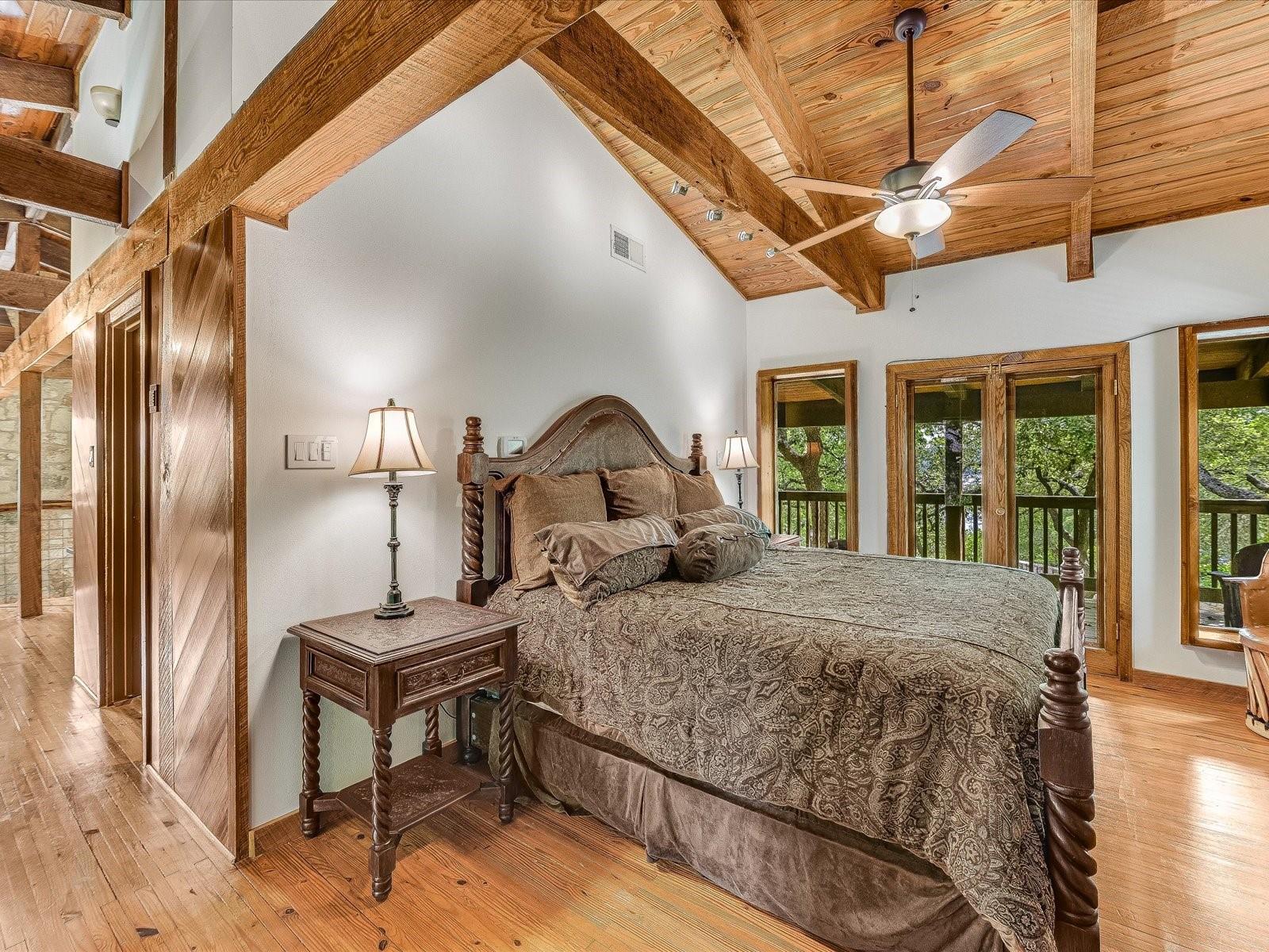 | Interior Features | Two Primary Baths, Built-in Features, Ceiling Fan(s), Beamed Ceilings, High Ceilings, Vaulted Ceiling(s), Chandelier, Granite Counters, Double Vanity, Electric Dryer Hookup, French Doors, Natural Woodwork, Open Floorplan, Pantry, Recessed Lighting, Storage, Two Primary Closets, Walk-In Closet(s), Washer Hookup | |