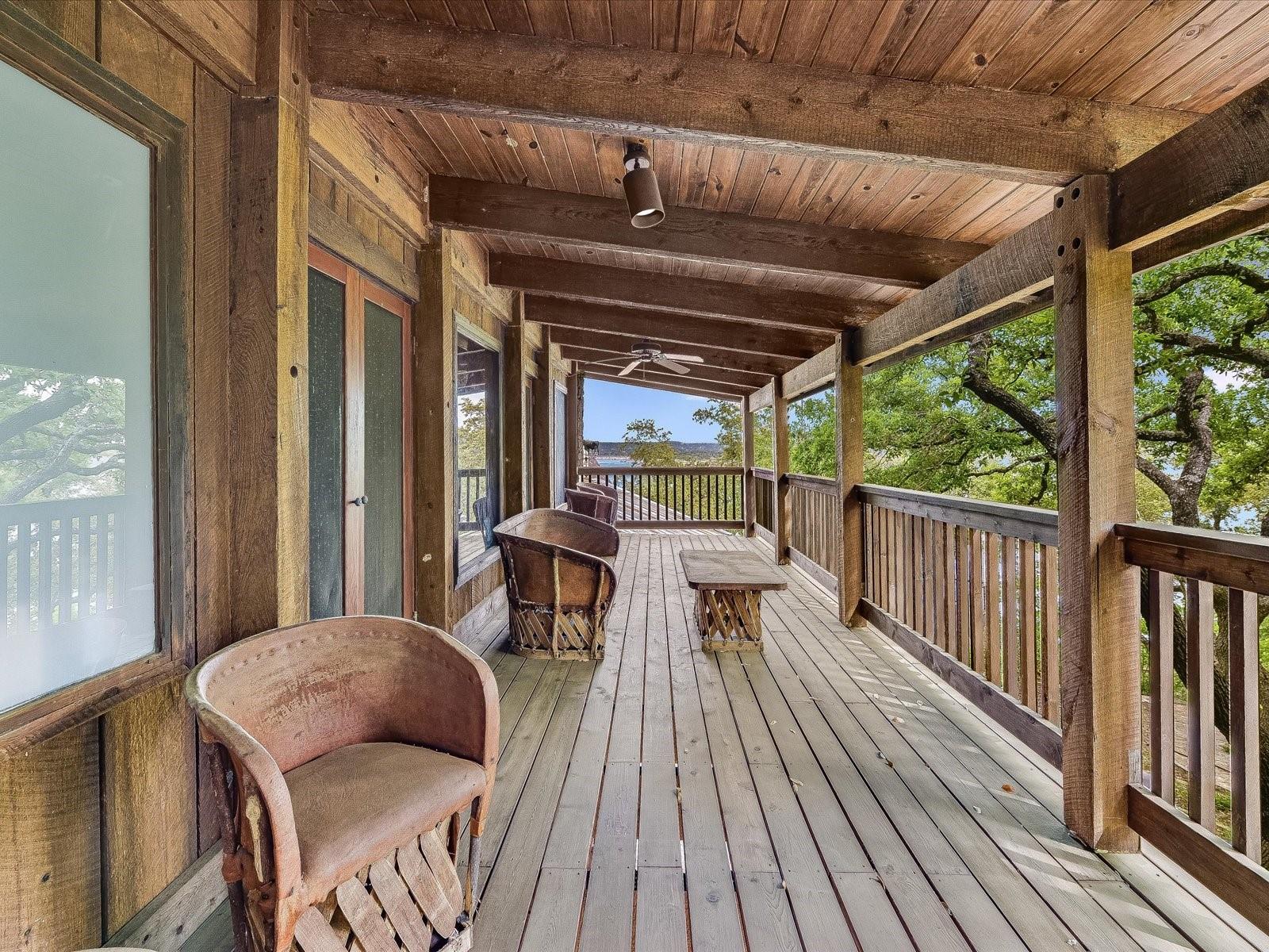 " Life's Not About The Breaths You Take, It's About The Moments That Take Your Breath Away "...(George Strait) There's simply not a better phase to convey the awe-inspiring feeling which will overcome you once you arrive to this magical lake side paradise overlooking the main basin. From your since of arrival touring past some of the most Technologically Advanced homes built today to the breath taking views you will enjoy from multiple points on this property, you will be eternally captivated by the charm & scenic beauty of this estate... Boasting over 100 linear foot of Deep Water, the possibilities are endless to install your own private tram system leading to your customized boat dock... Water, Yes we have water & plenty of it ! No need to worry about whether your water front property will dry up from one year to the next... If water recreation is not your true passion, immerse yourself with endless beauty of the native hardwoods which cover virtually the entire estate and provide a canopy for outdoor enjoyment on those hot Texas summer days. As the day evolves from work & play to relaxation, treat yourself to one of the many sitting areas & enjoy the mesmerizing view of the lake & distant Hill Country views... Warning, This could be habit forming & will result in the reduction of stress! But wait, There's more, Much more to this Pearl Of The Main Basin... We call it " The JW House ", for short ! ... Nicknamed " The John Wayne House " for it's timeless rustic beauty... It's where New meets Old & the Craftsmanship of days gone by blend with modern day technology & architecture ranging from custom Hand Inlaid Cypress flooring to Wolf & Kitchen-Aid Appliances... It is truly a Unique & Special Residence, one that can be enjoyed for generations to come... The Estate conveys fully furnished with many one of a kind Fixtures, Art, & Wood Work...