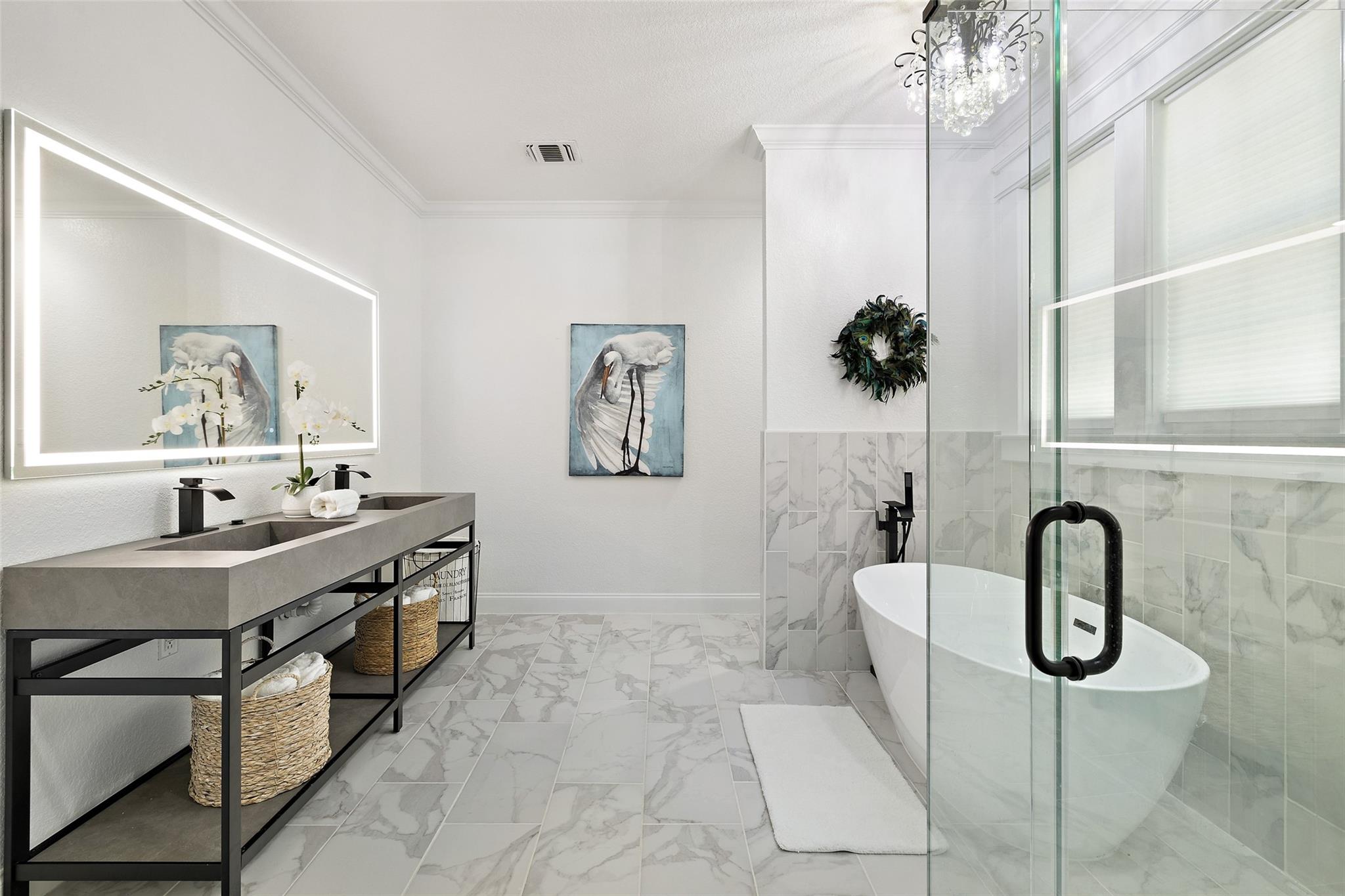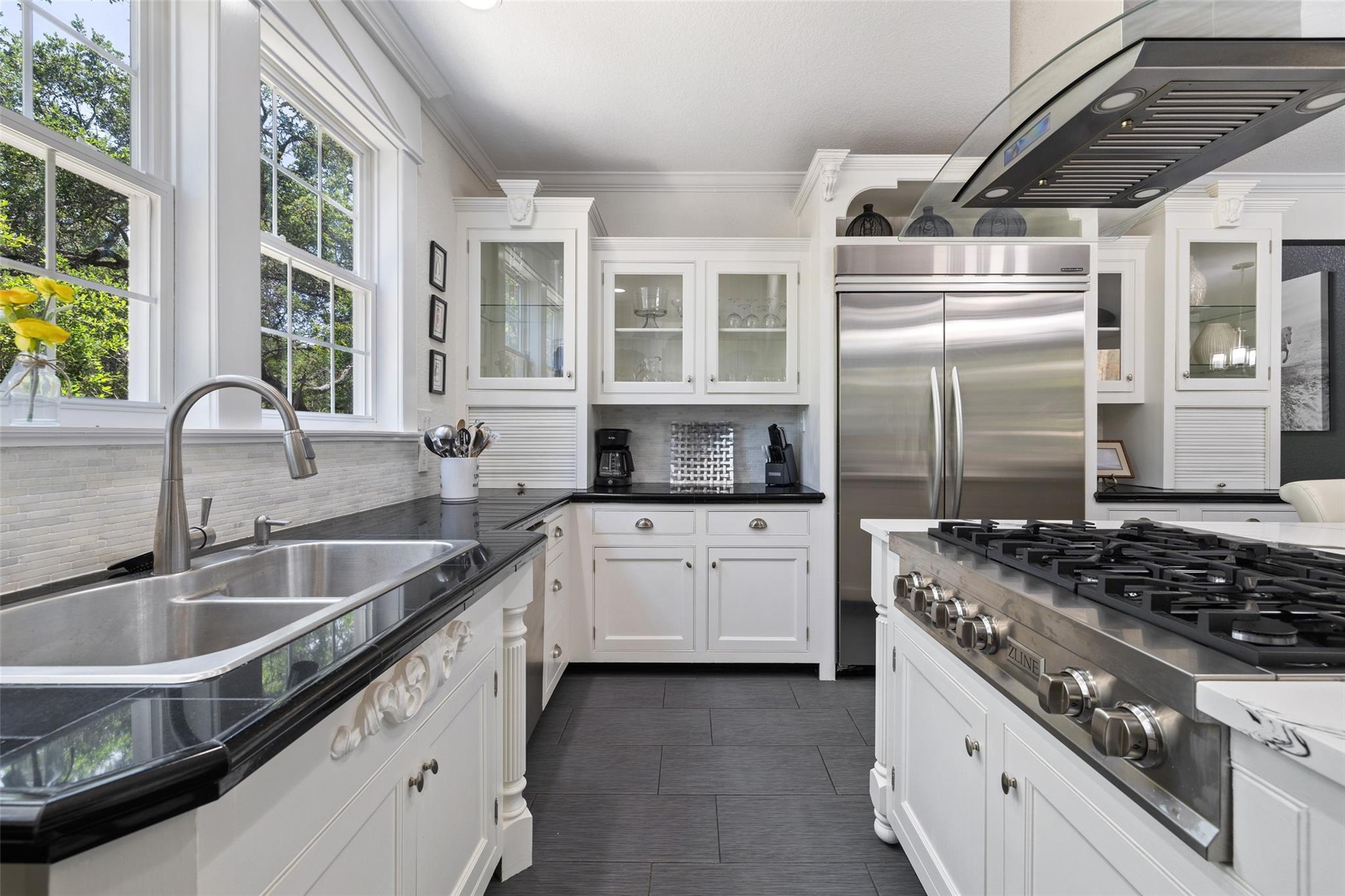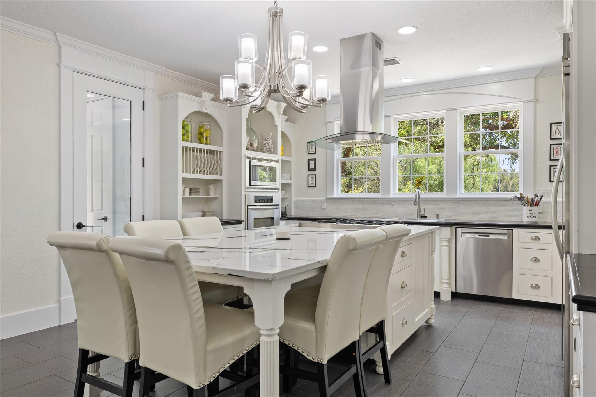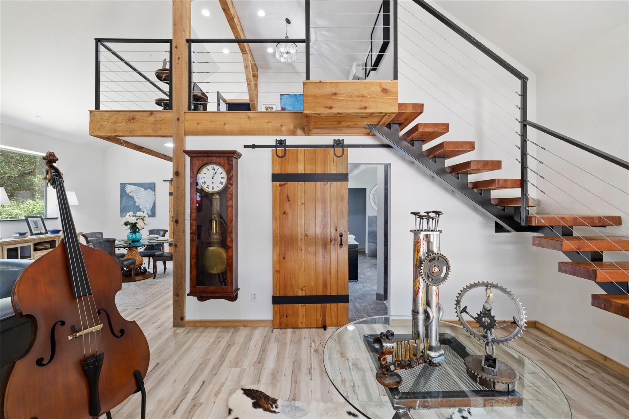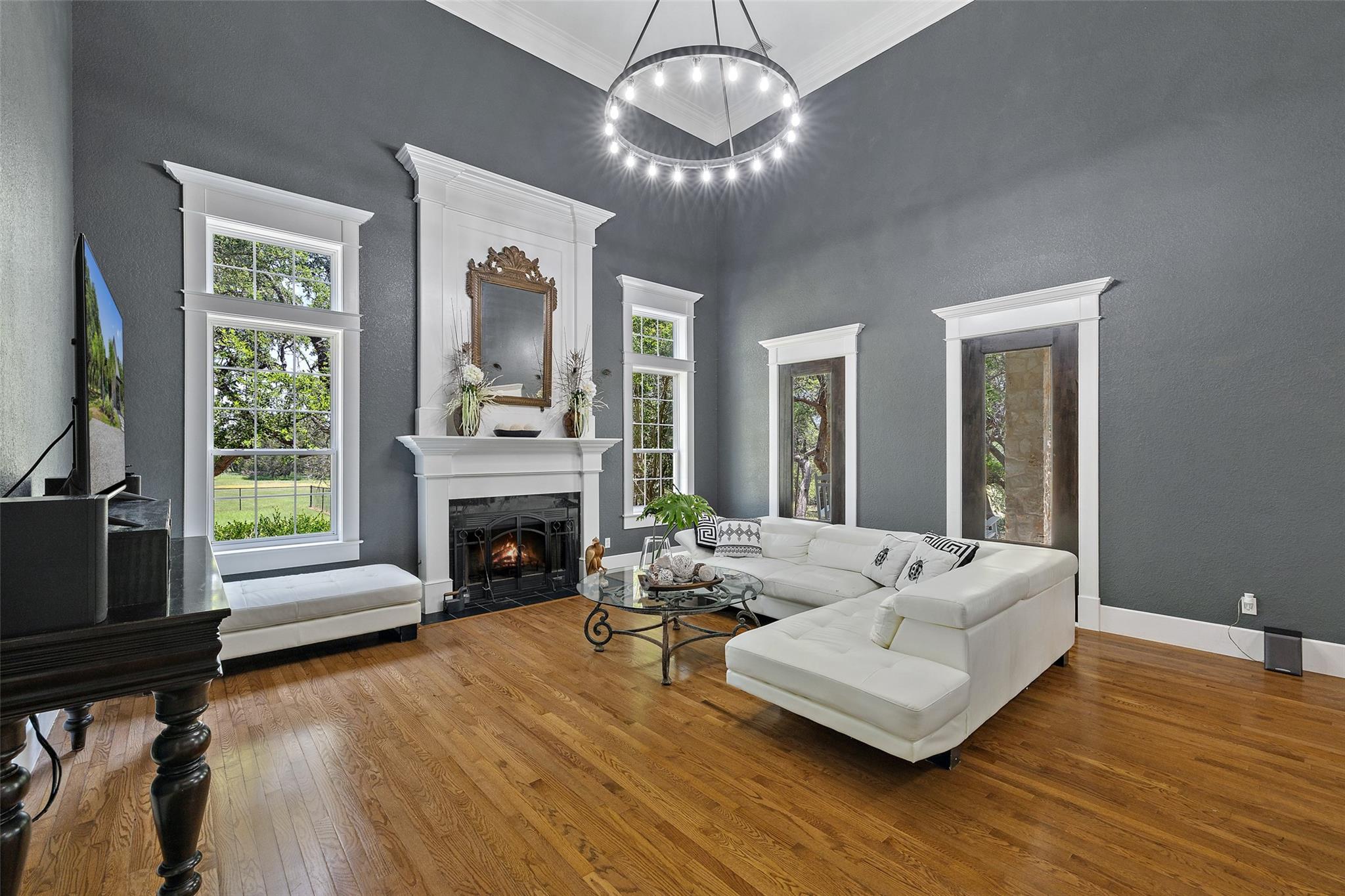 Nestled in the heart of the Texas Hill Country, this breathtaking rural estate spans 25.59+/- acres, offering endless possibilities for enjoyment. The main house, covering 3,200 square feet, features 5 bedrooms and 3.5 baths. With soaring 20 and 9 ceilings and two dining areas, it exudes spaciousness and elegance. A wide front porch overlooks serene, scenic views, perfect for relaxation. Inside, the chef’s kitchen is a dream come true with custom cabinetry, a gas cooktop, quartz countertops, a large island, and a cozy breakfast area with a fireplace. Throughout the home, you'll find beautifully crafted, upscale features. Outside, a covered patio opens to a stunning swimming pool, complete with a rock wall, waterfalls, and a slide. The estate offers multiple outdoor dining and relaxation areas, along with a paved carport. High fencing surrounds the home and pool and home area. The guest house, approximately 2,200 square feet, includes 2 bedrooms, 2 bathrooms, 2 living areas, and a dining area. Custom metal and pine stairs lead to the loft. The kitchen is newly updated with quartz countertops, a large island, pine ceilings, and walls of retractable floor-to-ceiling glass doors that seamlessly blend indoor and outdoor living. Like the main house, the guest house features custom, high-end designs and inviting outdoor areas, along with a nearby 3-car carport. Additional amenities include a 2,400-square-foot metal building with epoxy floors, two overhead doors, 190 square feet of climate-controlled space, and another 2,400 square feet of covered area for RVs, boats, and other equipment. The land boasts a gated entrance, a water well, a 10,000-gallon rainwater collection system, and Middle Creek. It is adorned with mature oak and madrone trees, as well as fruit trees, and is teeming with abundant wildlife. A wildlife agricultural exemption ensures low property taxes.