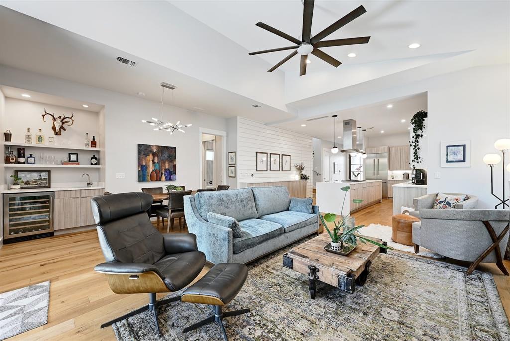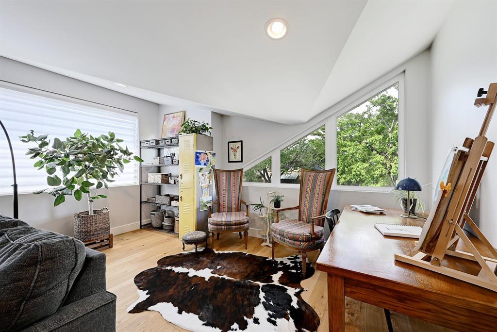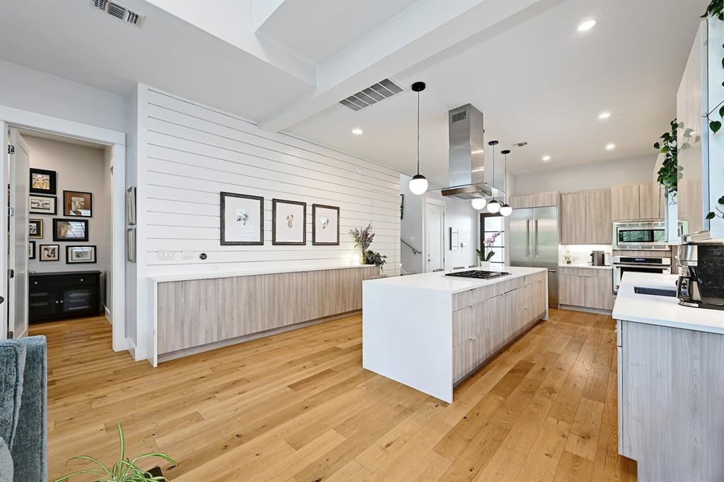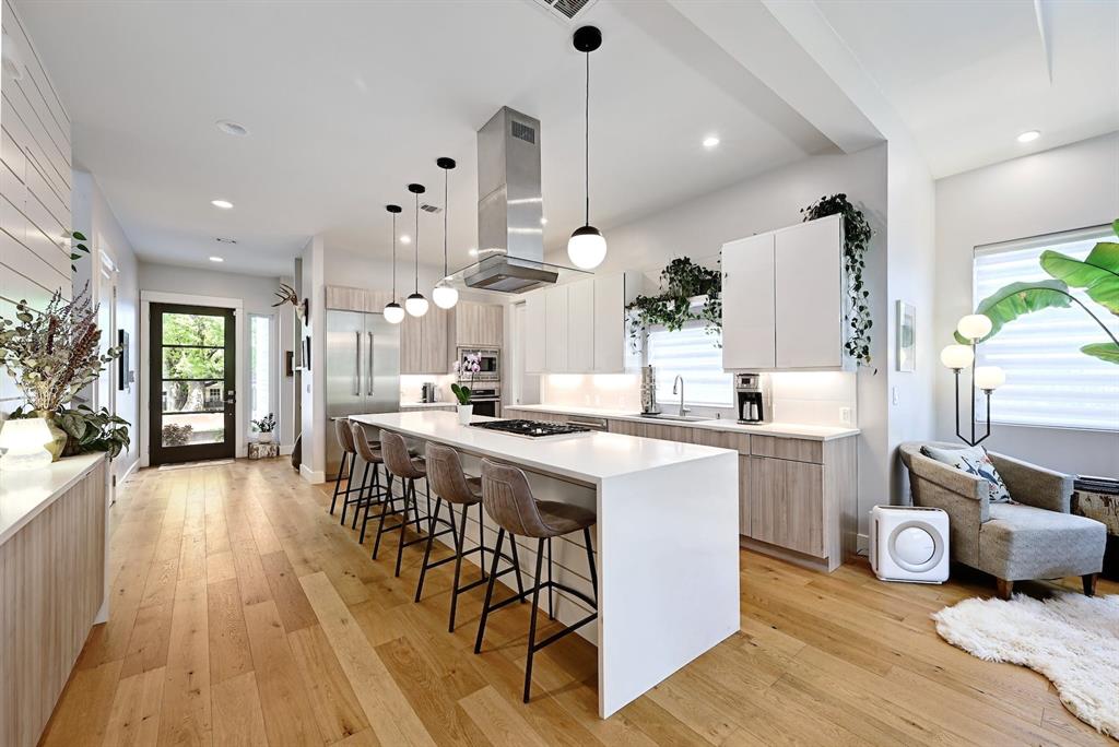 Beautiful, modern haven in the heart of Tarrytown! This 2016-built home features soaring ceilings, incredible natural light, and spacious rooms. Stunning hardwood floors run throughout the home beginning in the front entry, private study, and powder bath, through into the kitchen and main living areas. The kitchen is truly the heart of this home with a stunning 12-foot center island with a Quartz waterfall edge, stainless Thermador appliances, walk-in pantry, statement range hood, incredible built-in storage. The lush and private backyard provides the perfect backdrop to indoor and outdoor living. The primary bedroom suite is on the main level as well including the large spa-like bathroom, walk-in closet, hidden laundry room with storage, and sliding doors to the backyard. Upstairs you'll find the second living area perfect for cozy movie nights, a study niche with built-in desks, three secondary bedrooms, two full bathrooms, and plenty of storage, including a second laundry area with room for stackables. This highly sought after neighborhood feeds into top-rated nearby public schools and is just a stones throw from Downtown Austin, Lady Bird Lake, Lions Municipal, and all that Central Austin has to offer.