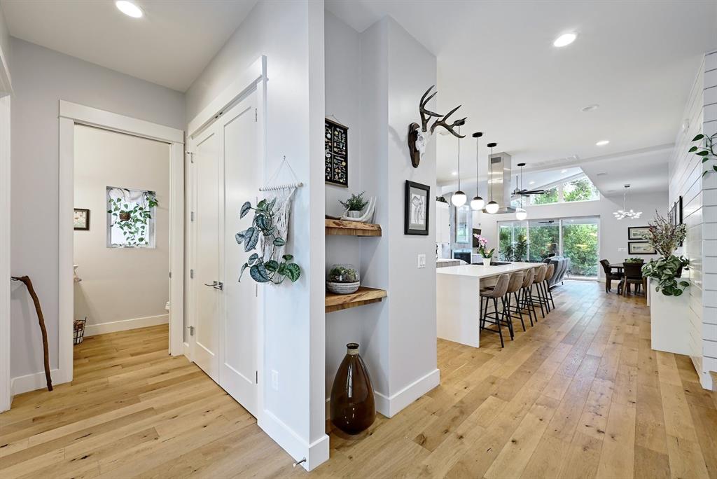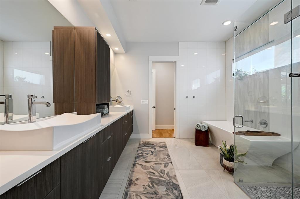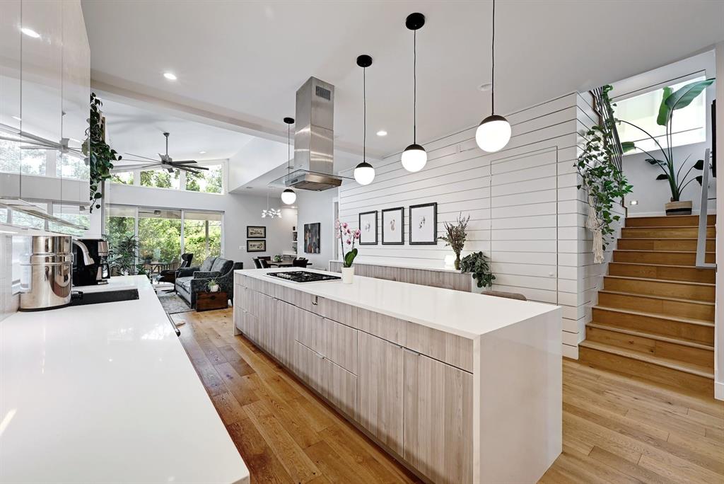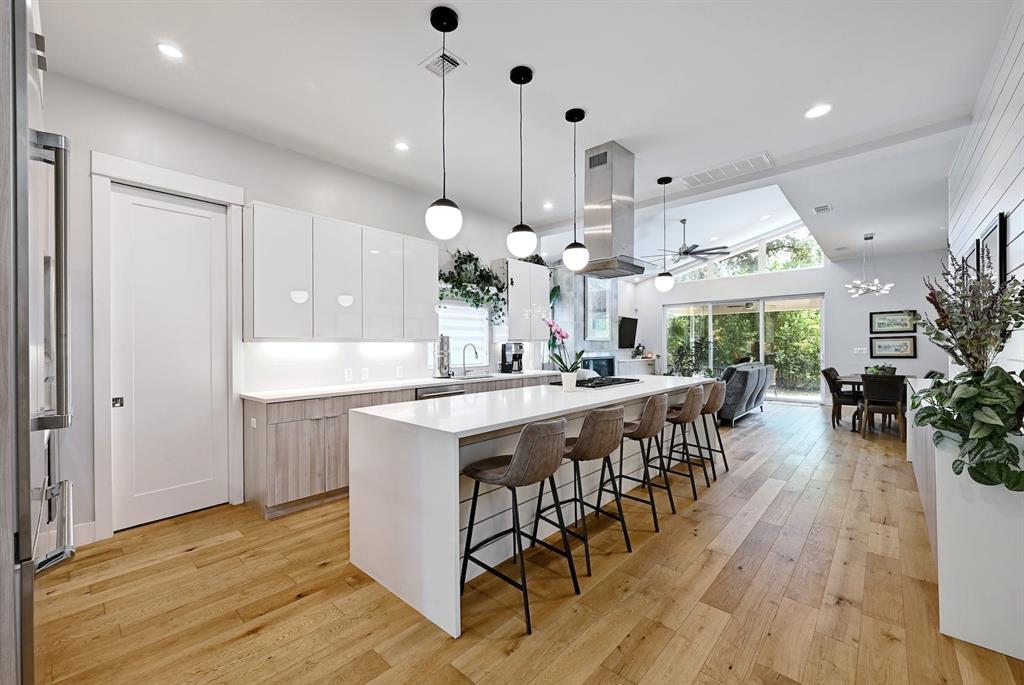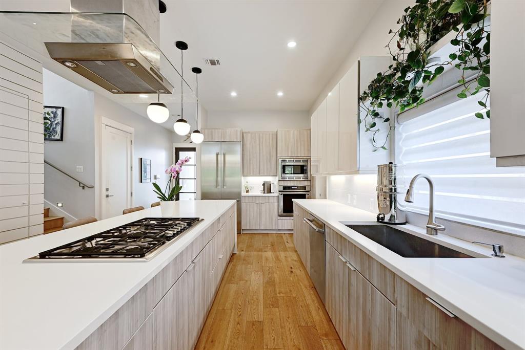 Beautiful, modern haven in the heart of Tarrytown! This 2016-built home features soaring ceilings, incredible natural light, and spacious rooms. Stunning hardwood floors run throughout the home beginning in the front entry, private study, and powder bath, through into the kitchen and main living areas. The kitchen is truly the heart of this home with a stunning 12-foot center island with a Quartz waterfall edge, stainless Thermador appliances, walk-in pantry, statement range hood, incredible built-in storage. The lush and private backyard provides the perfect backdrop to indoor and outdoor living. The primary bedroom suite is on the main level as well including the large spa-like bathroom, walk-in closet, hidden laundry room with storage, and sliding doors to the backyard. Upstairs you'll find the second living area perfect for cozy movie nights, a study niche with built-in desks, three secondary bedrooms, two full bathrooms, and plenty of storage, including a second laundry area with room for stackables. This highly sought after neighborhood feeds into top-rated nearby public schools and is just a stones throw from Downtown Austin, Lady Bird Lake, Lions Municipal, and all that Central Austin has to offer.