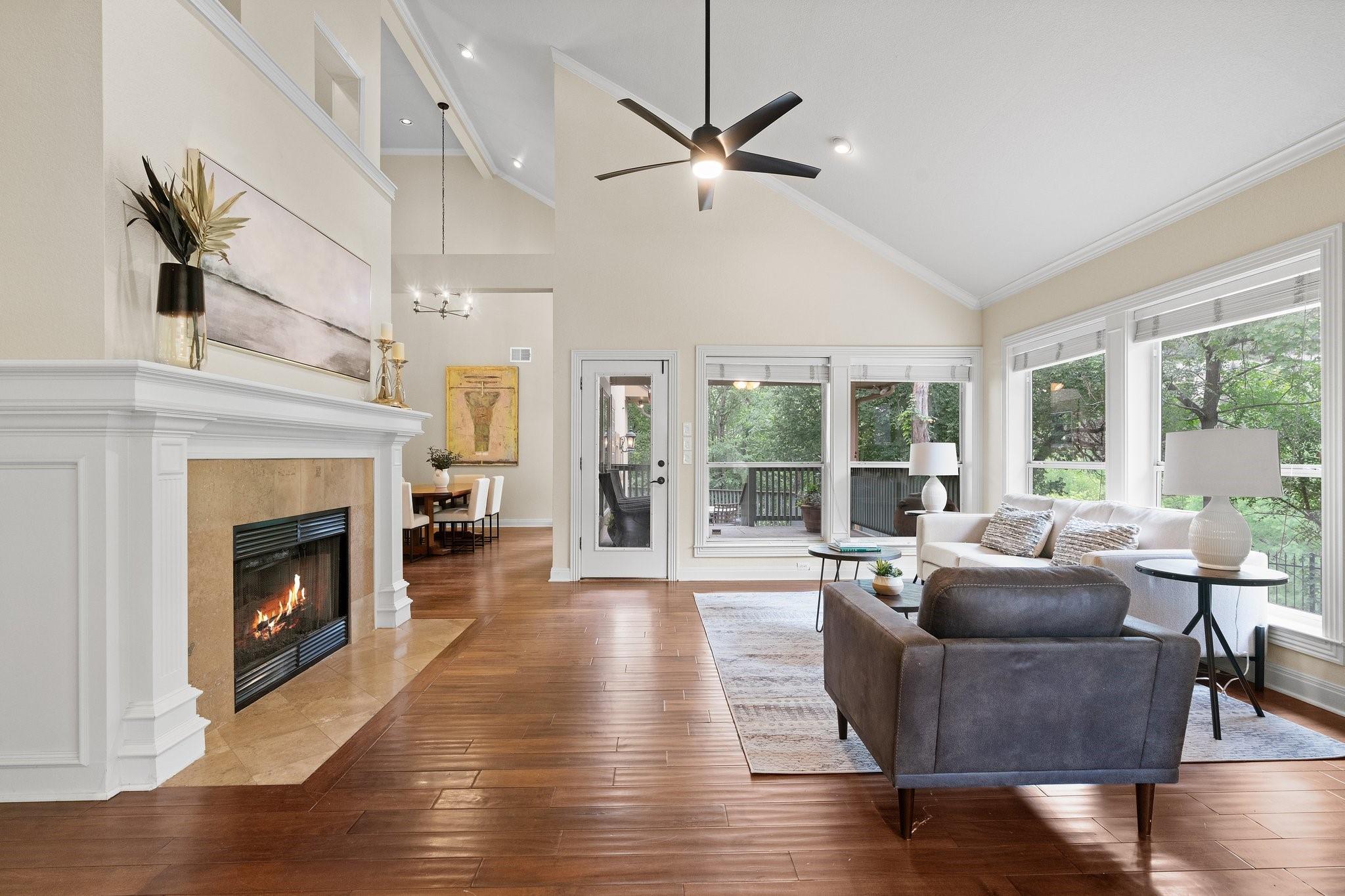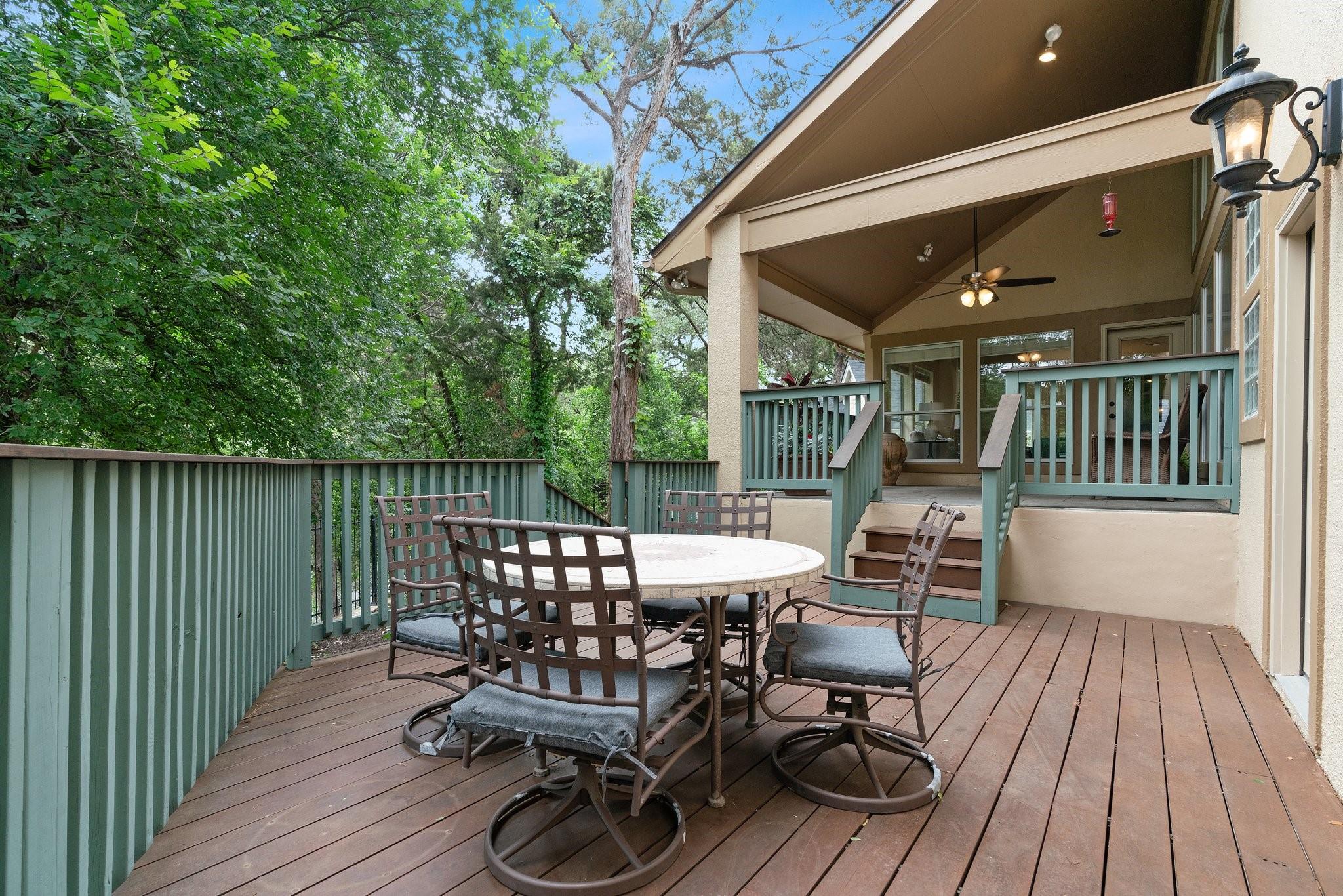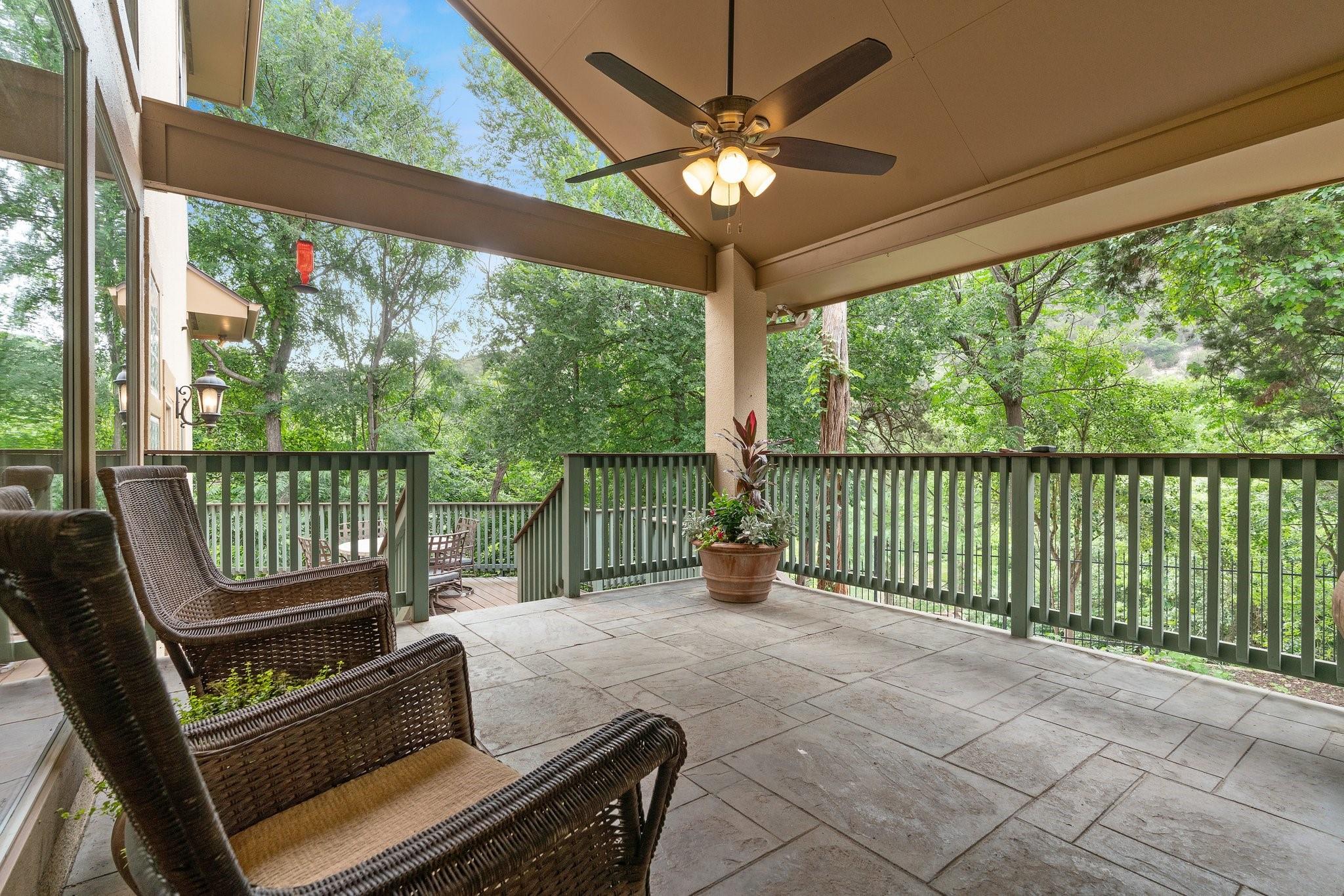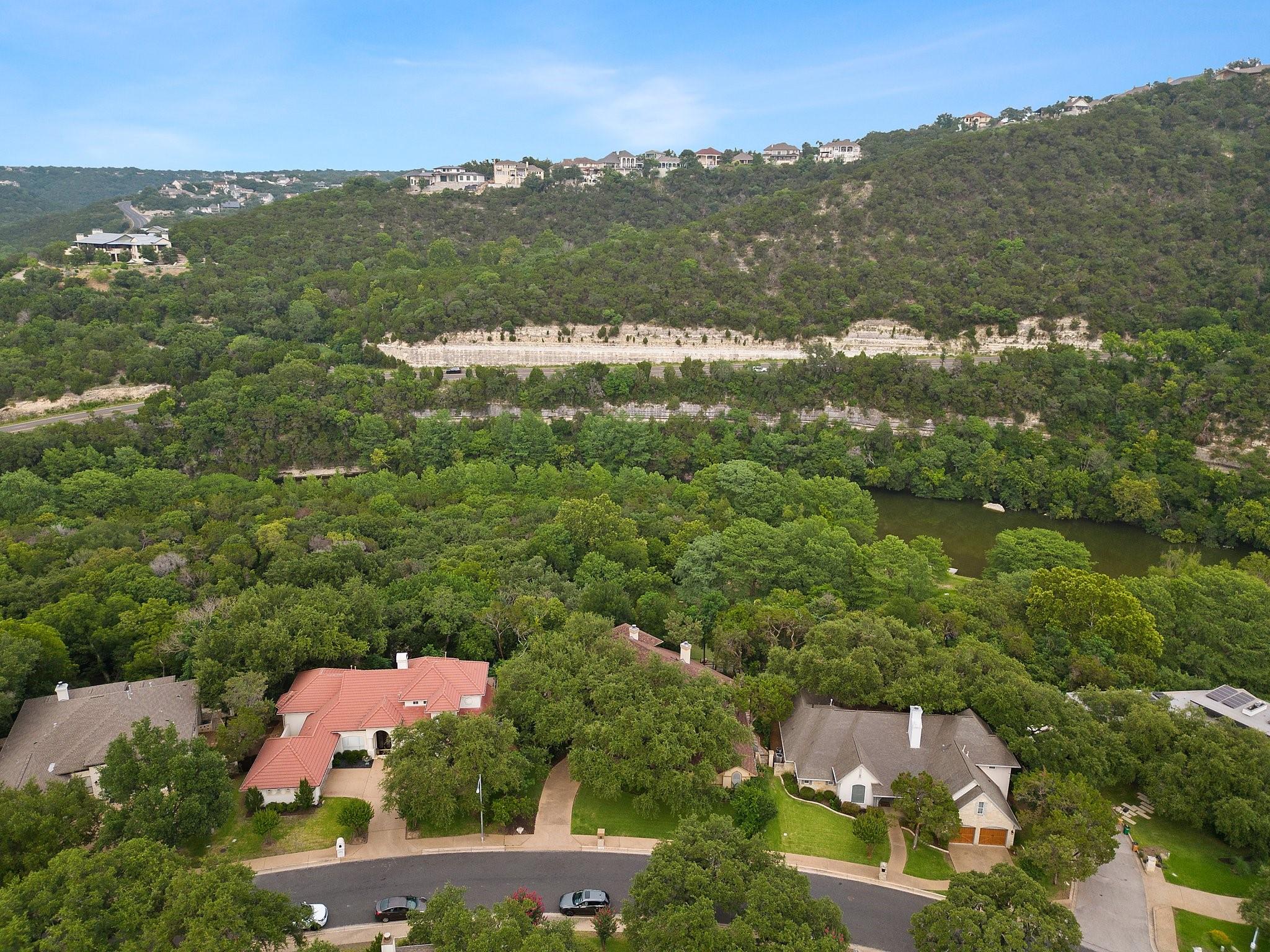 Exquisite luxury residence nestled along Lake Austin’s picturesque Bull Creek Tributary in the highly sought-after Courtyard community of NW Austin. Positioned along a tranquil section of the lake, the home features spectacular views of the private lakefront park and majestic Cat Mountain cliffs. A rare gem, it boasts exclusive access to Lake Austin through its DEEDED BOAT SLIP. Captivating curb appeal incorporates elegant stucco with arched windows, professionally landscaped grounds with majestic live oaks, and a 3-car garage. The expansive interior encompasses 3 beds, 2.5 baths, a home office, a formal parlor, multiple living and dining areas, and a gourmet kitchen. Every corner exudes charm, boasting tall ceilings, tasteful fixtures, crown molding, recessed lighting, and stunning hardwood floors. The chef-inspired gourmet kitchen is replete with timeless cabinetry, high-end ubatuba granite countertops, a SubZero refrigerator, and a Thermador SS gas range. Flowing seamlessly from the kitchen, the welcoming family room invites relaxation beneath its soaring vaulted ceilings, with an elegant wood-burning fireplace serving as its centerpiece. The breathtaking outdoor areas include a covered back porch, al fresco dining deck, and an expansive brick patio with hill country and creek views. A luxurious gas fireplace seamlessly rests between the oversized owner’s suite and spa-like ensuite bath featuring a soaking tub, walk-in shower, dual vanity, and private entry to the back deck. The second-floor welcomes you to a versatile game room with a built-in desk and bookcases, two secondary bedrooms, and a guest bathroom. For a low monthly HOA fee, residents of the Courtyard enjoy a park on Lake Austin, dock, playground, picnic facilities, nature trails, and kayak storage. Come enjoy the unparalleled luxury lifestyle at this remarkable residence where natural beauty, refined elegance, and serene surroundings seamlessly merge to create a truly enchanting living experience.
